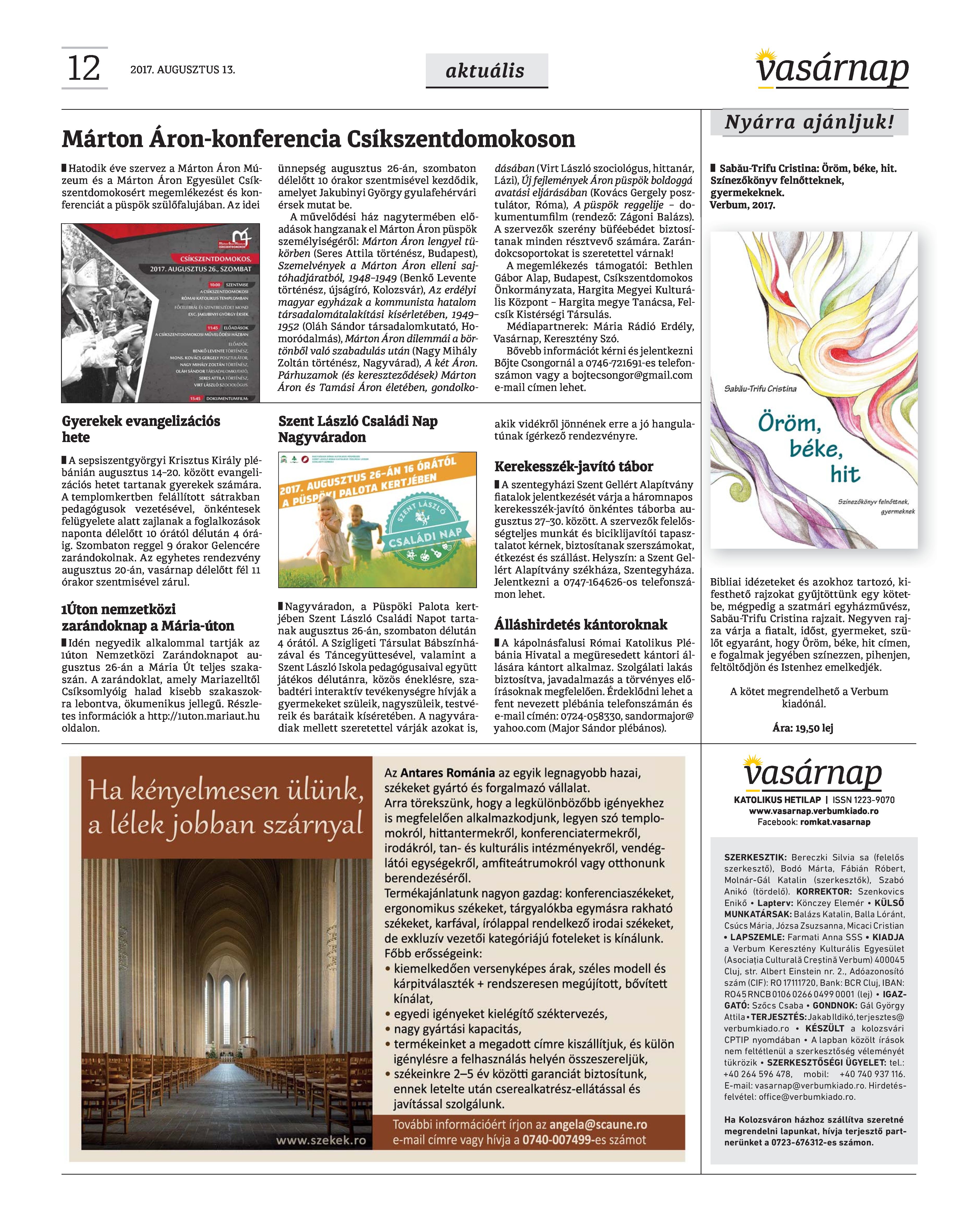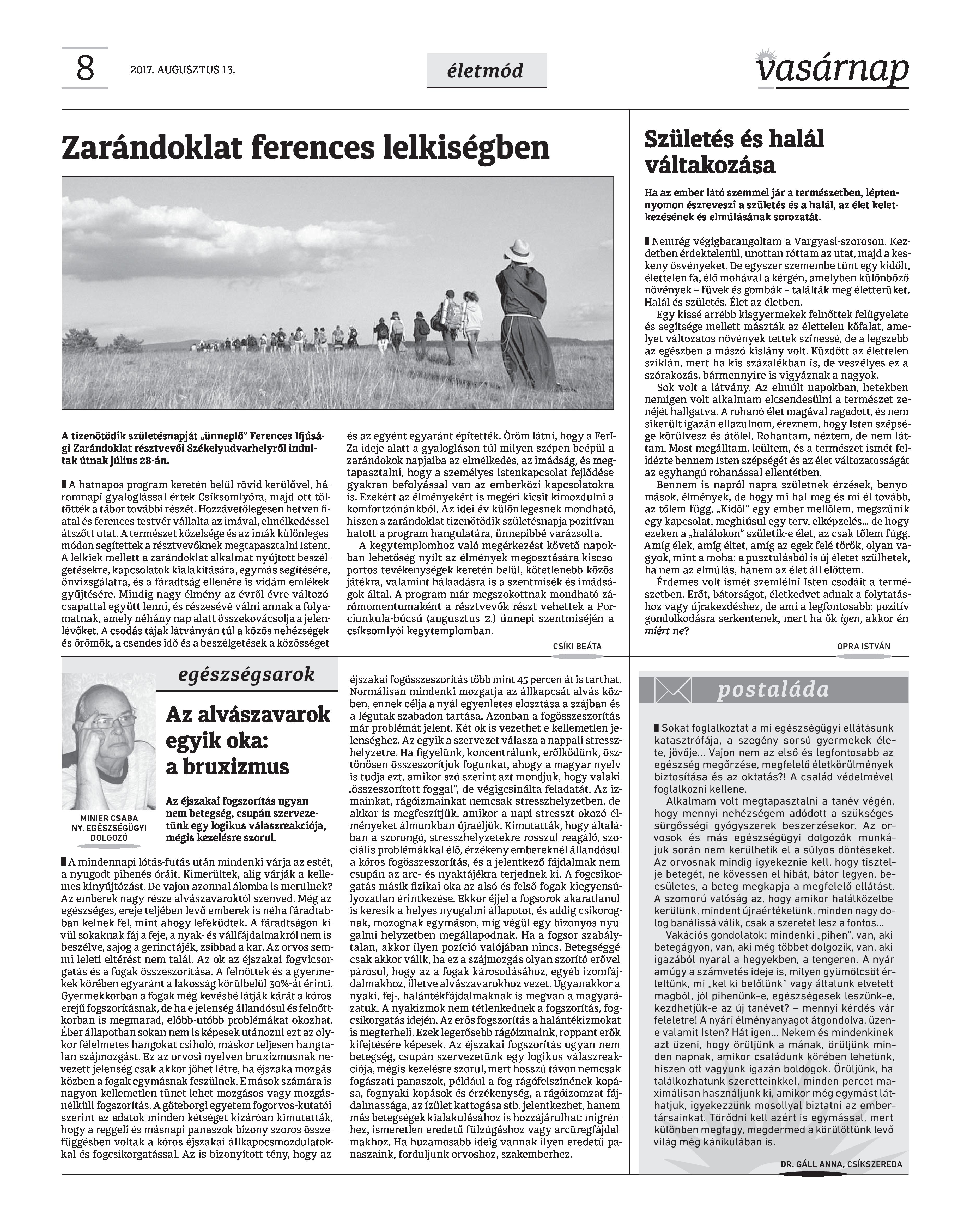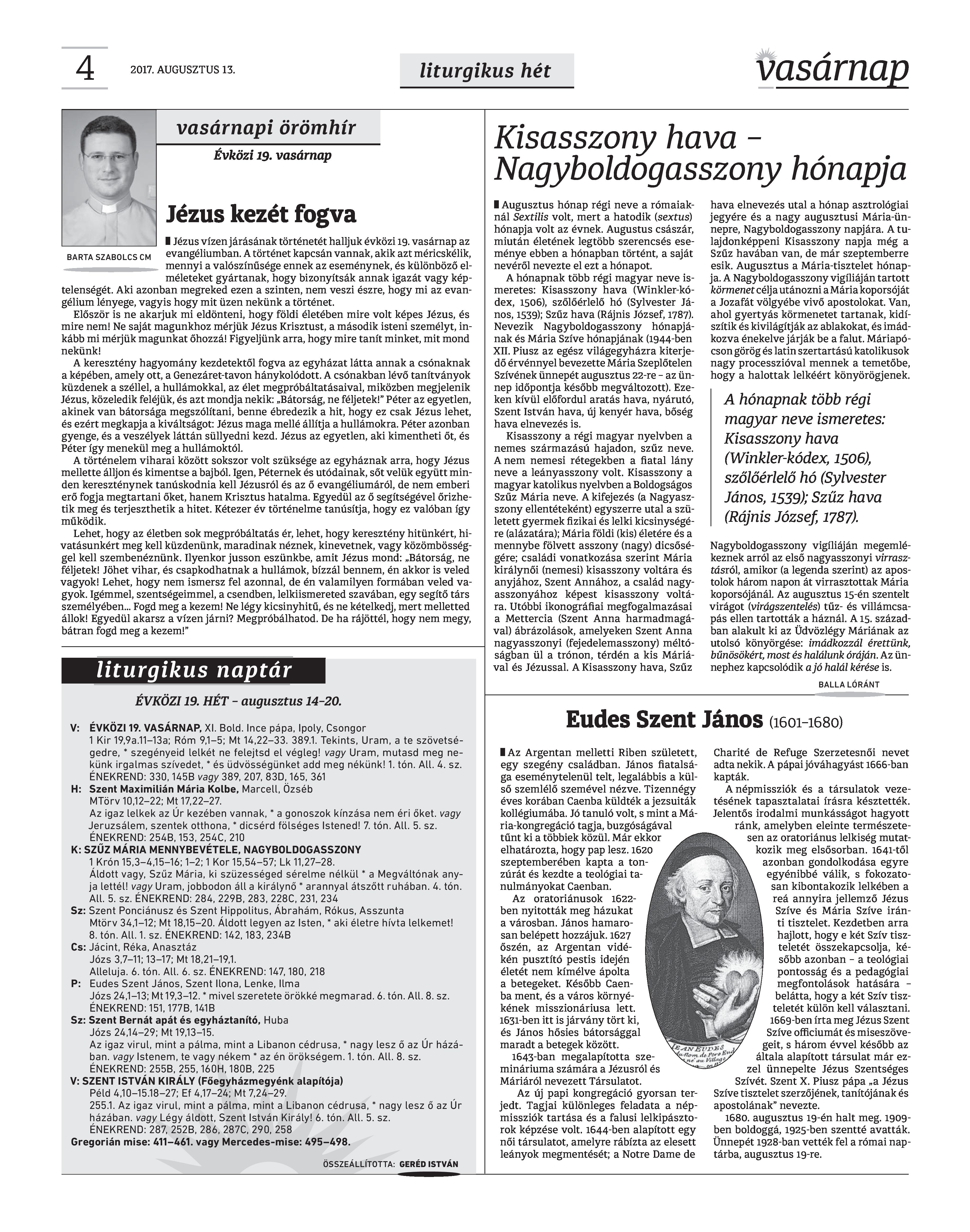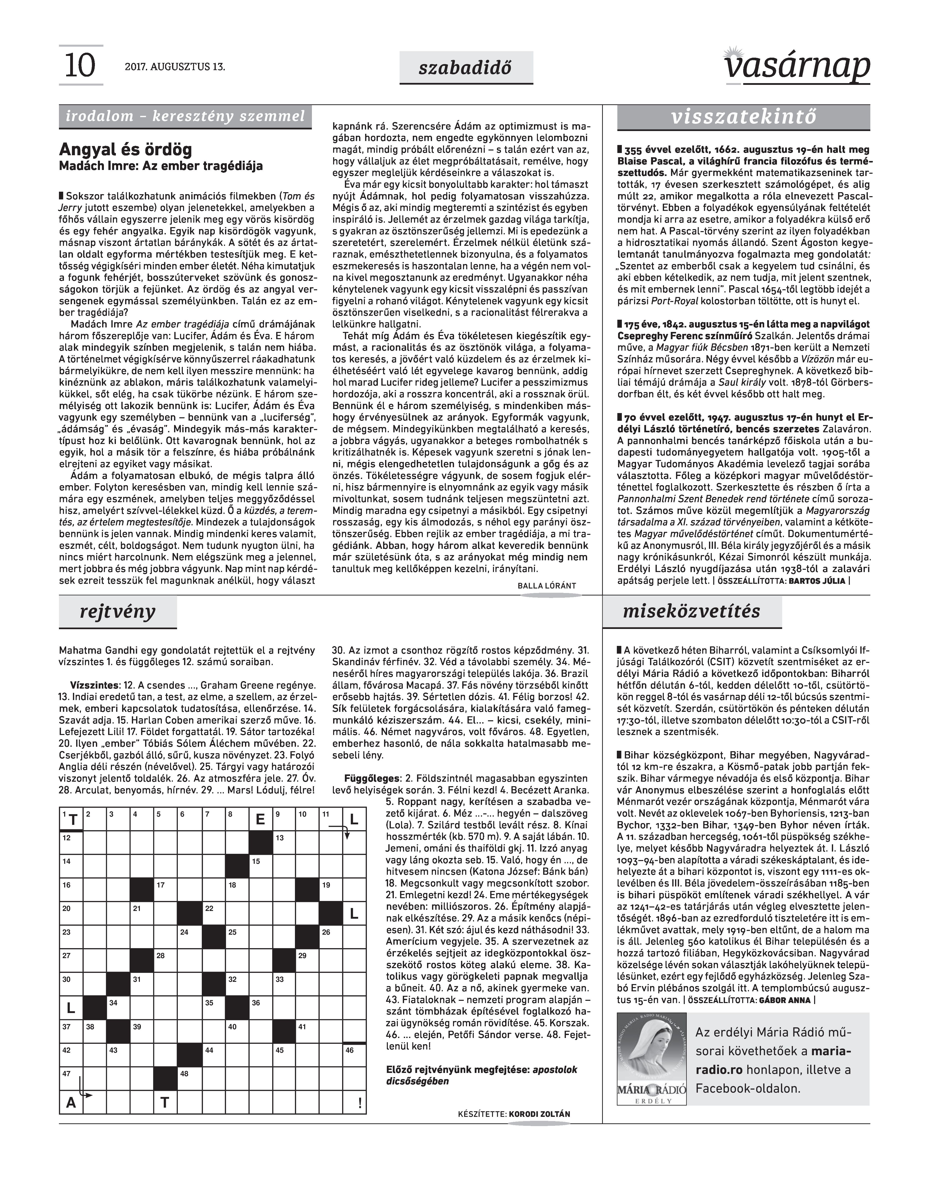 VASÁRNAP - 2017. AUGUSZTUS 13. A Vasárnap Katolikus Hetilap 2017. augusztus 13. / XXVII. évf. / 33. számának digitális változata. 1 / 12 2 & 3 / 12 4 & 5 / 12 6 & 7 / 12 8 & 9 / 12 10 & 11 / 12 12 / 12