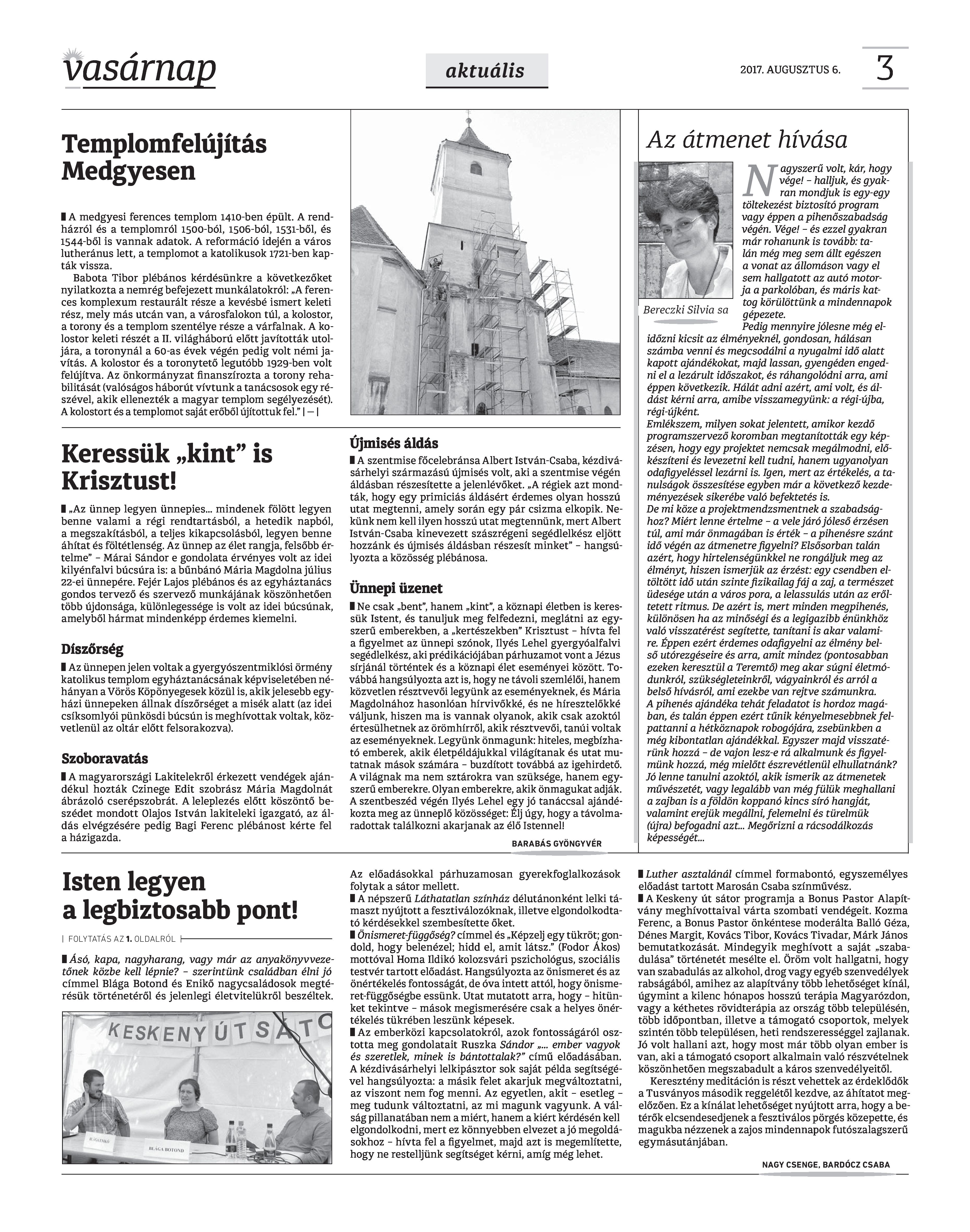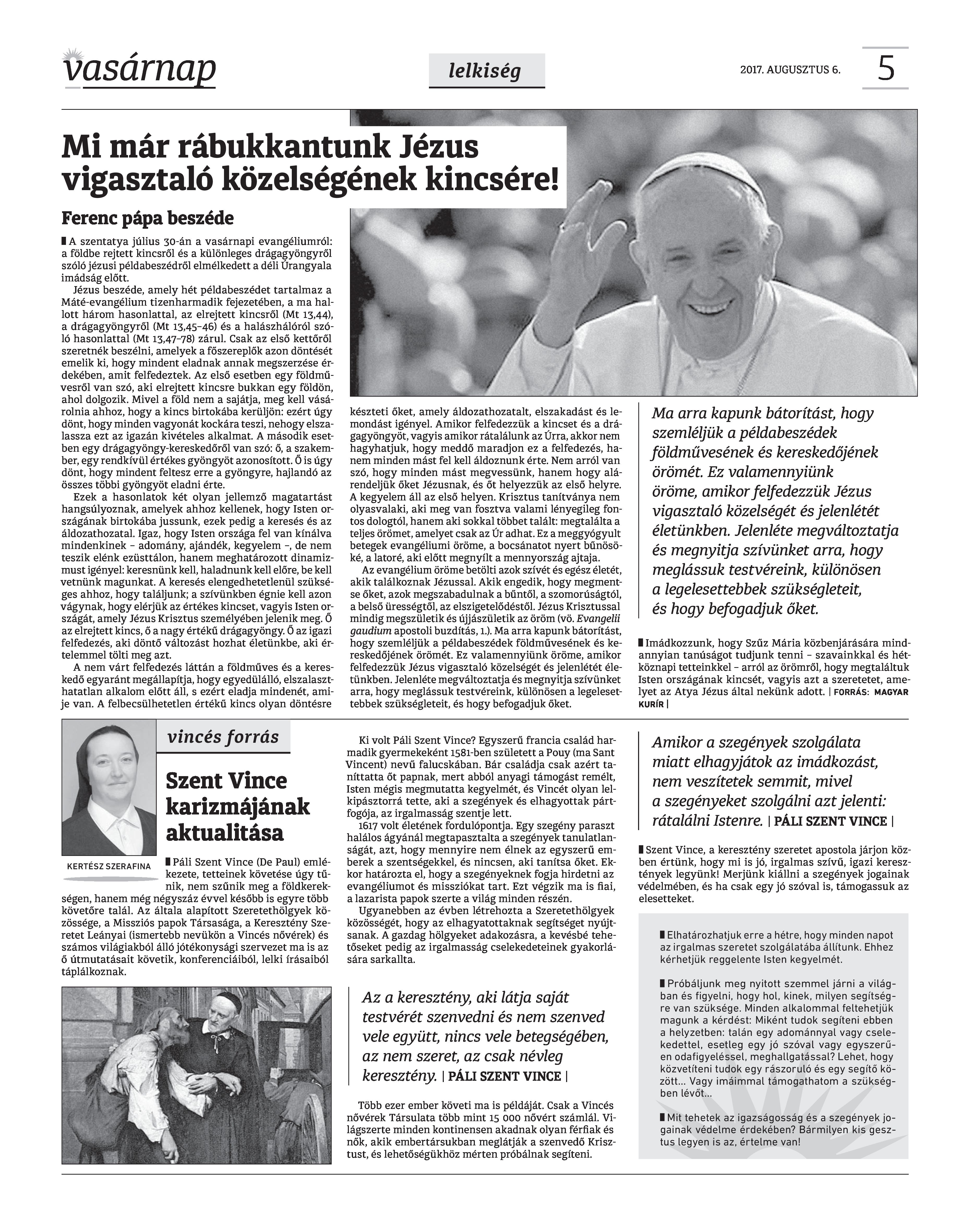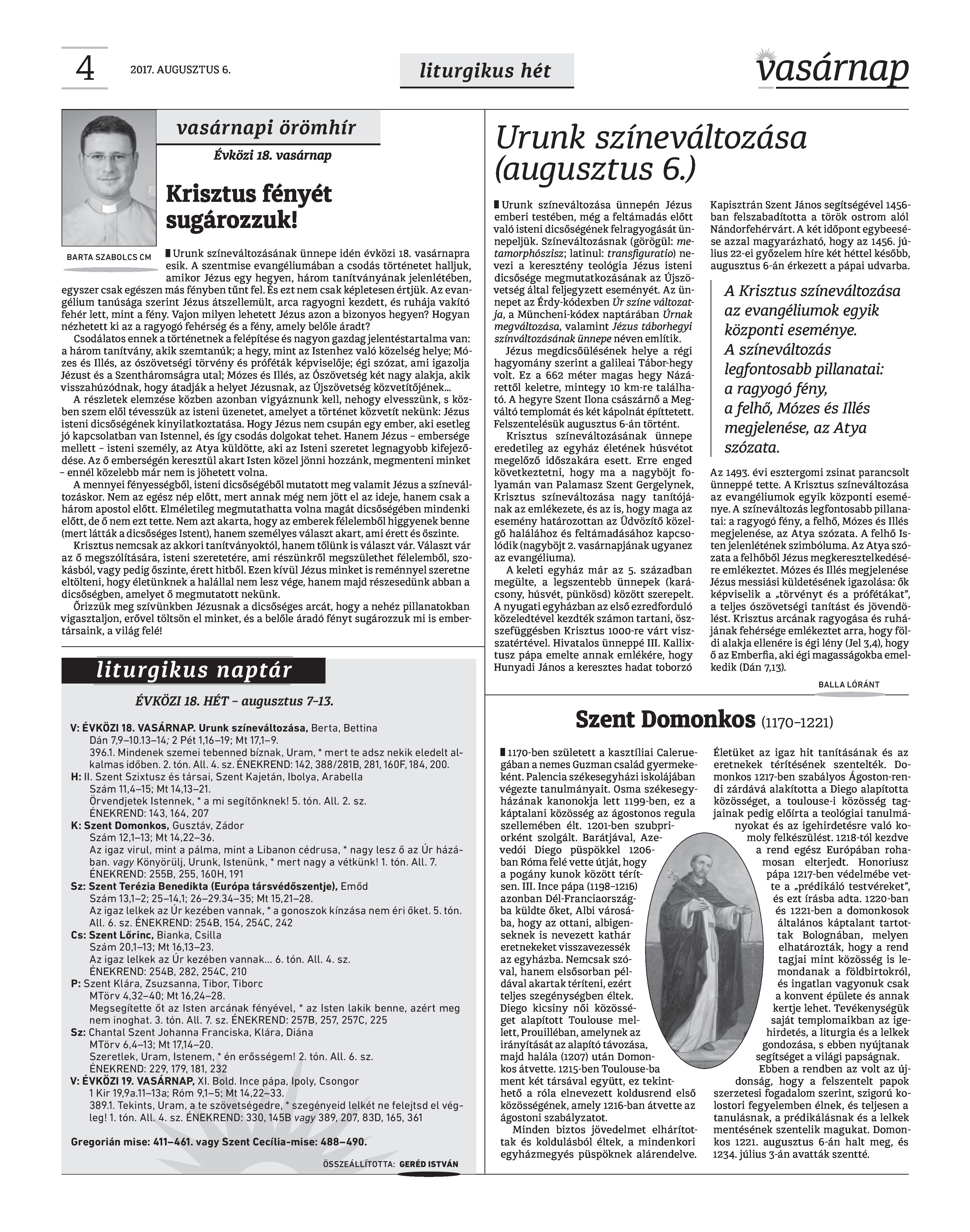 VASÁRNAP - 2017. AUGUSZTUS 6. A Vasárnap Katolikus Hetilap 2017. augusztus 6. / XXVII. évf. / 32. számának digitális változata. 1 / 12 2 & 3 / 12 4 & 5 / 12 6 & 7 / 12 8 & 9 / 12 10 & 11 / 12 12 / 12