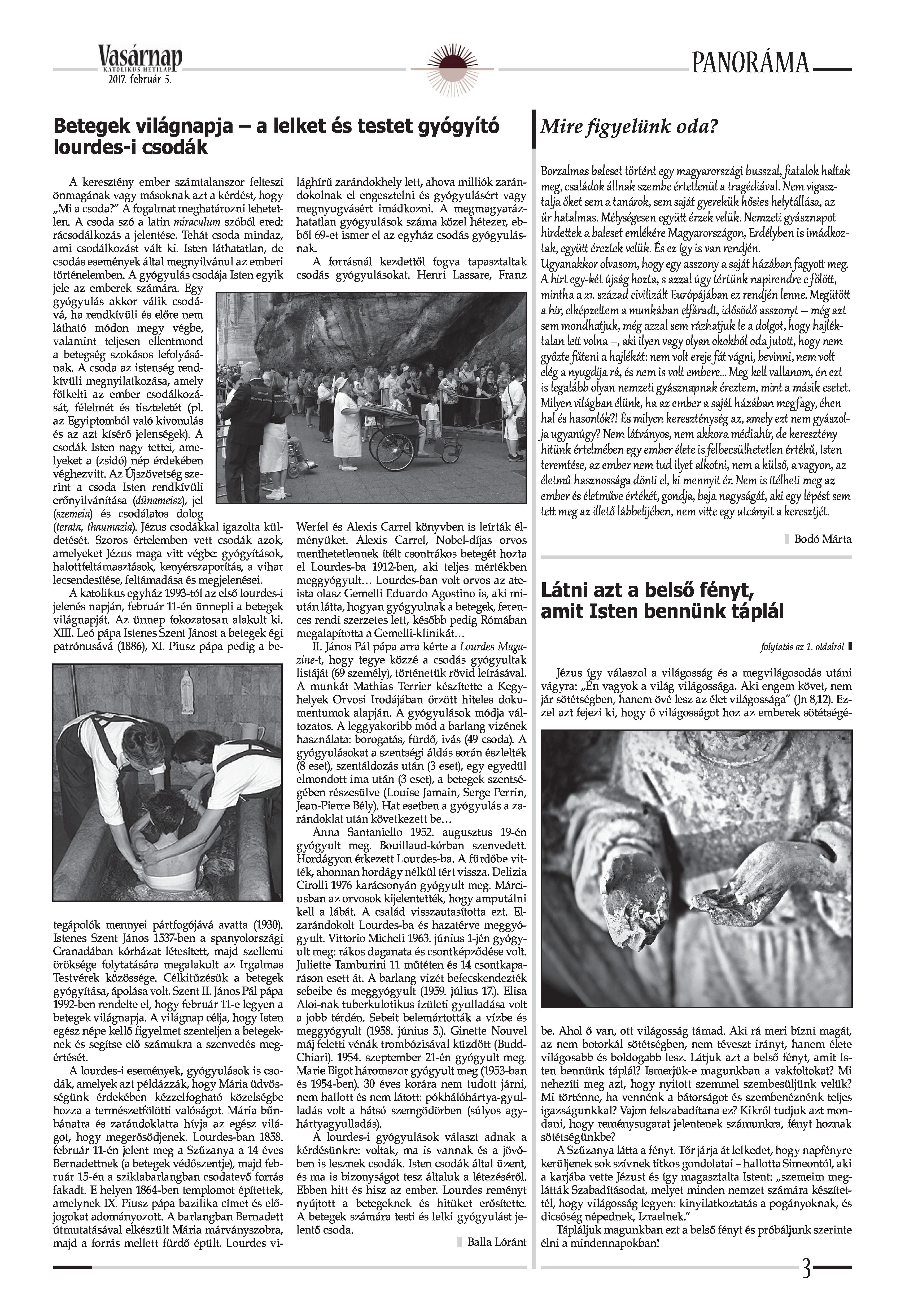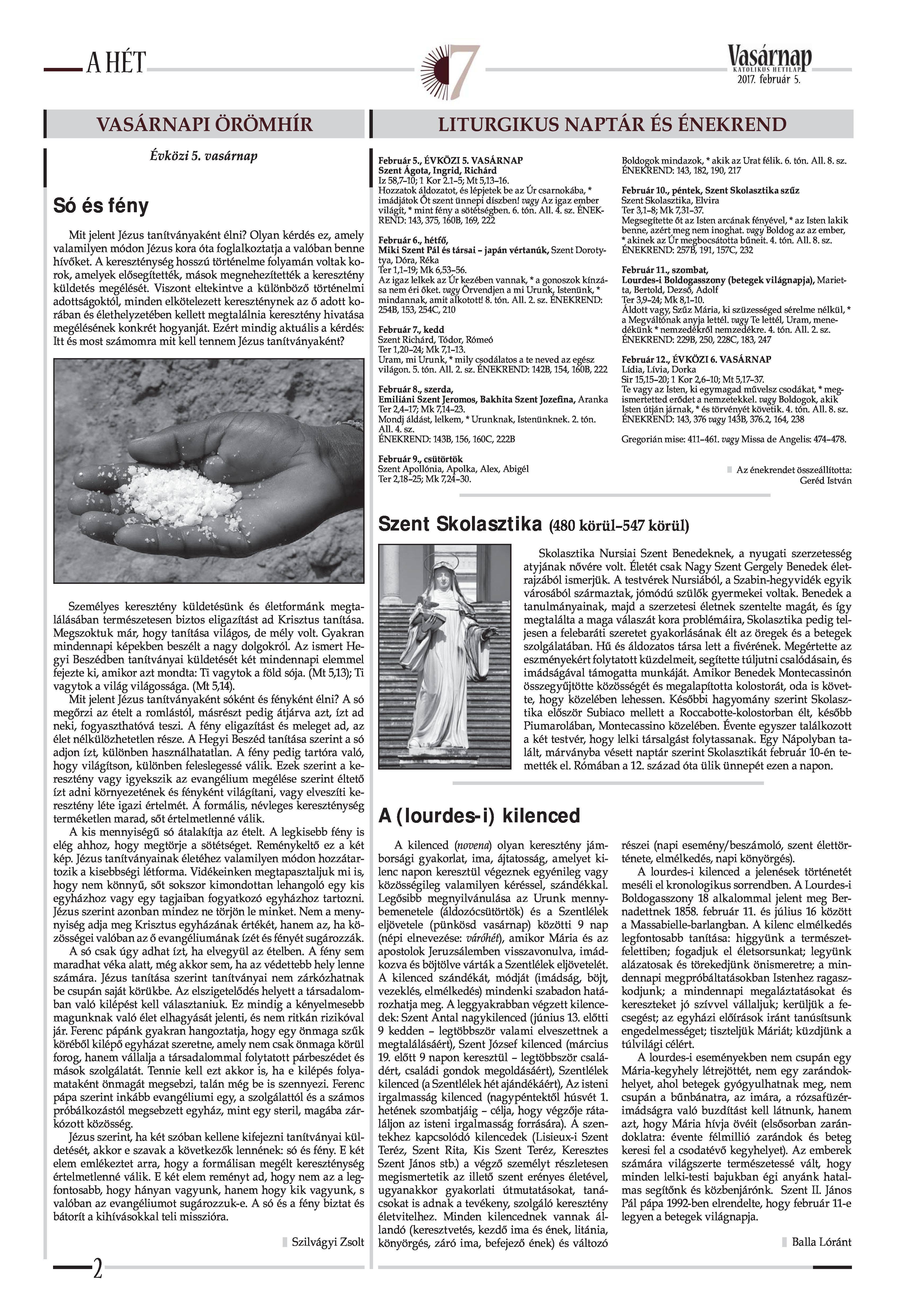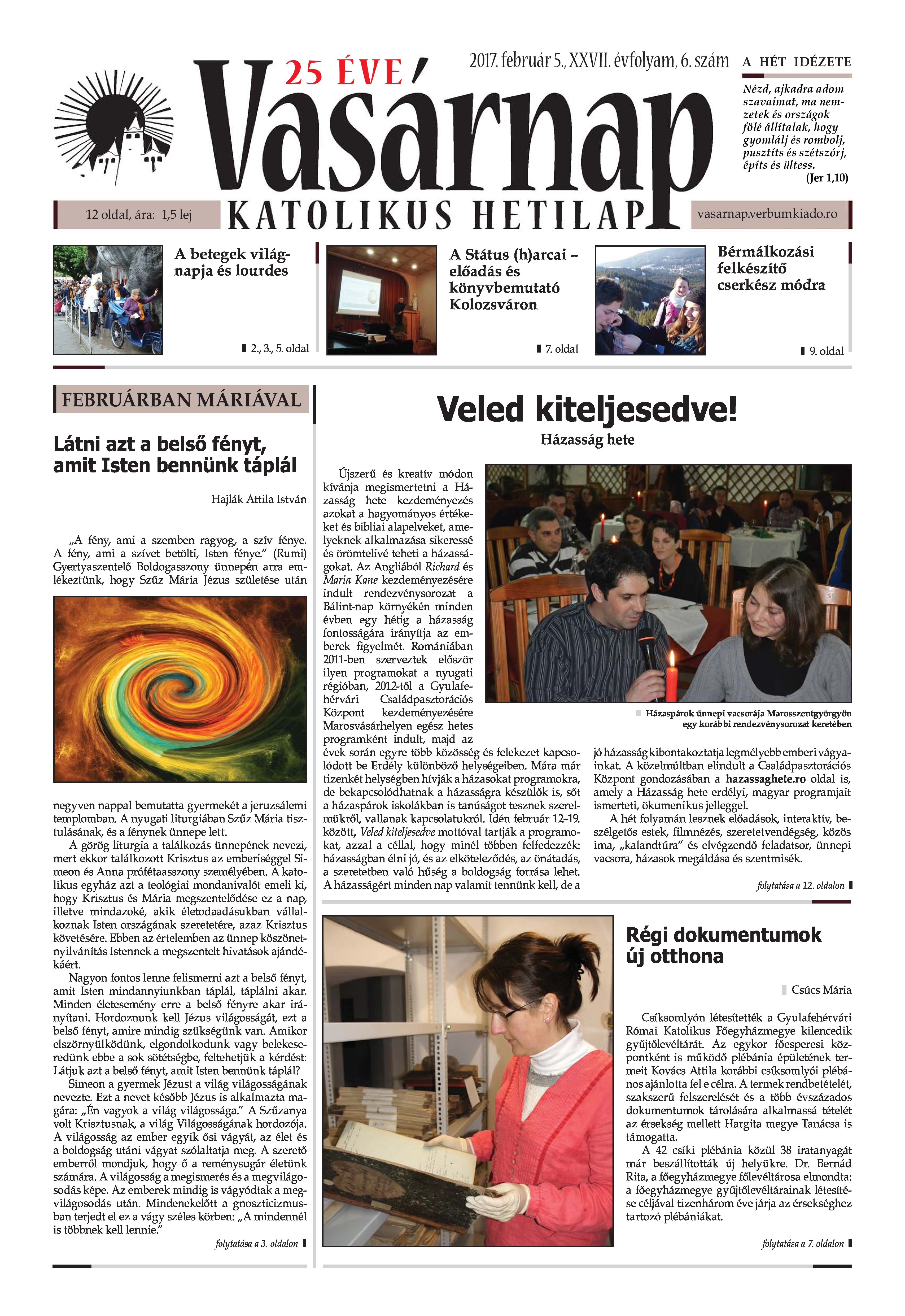 VASÁRNAP - 2017. FEBRUÁR 5. A Vasárnap Katolikus Hetilap 2017. február 5. / XXVII. évf. / 6. számának digitális változata. 1 / 12 2 & 3 / 12 4 & 5 / 12 6 & 7 / 12 8 & 9 / 12 10 & 11 / 12 12 / 12