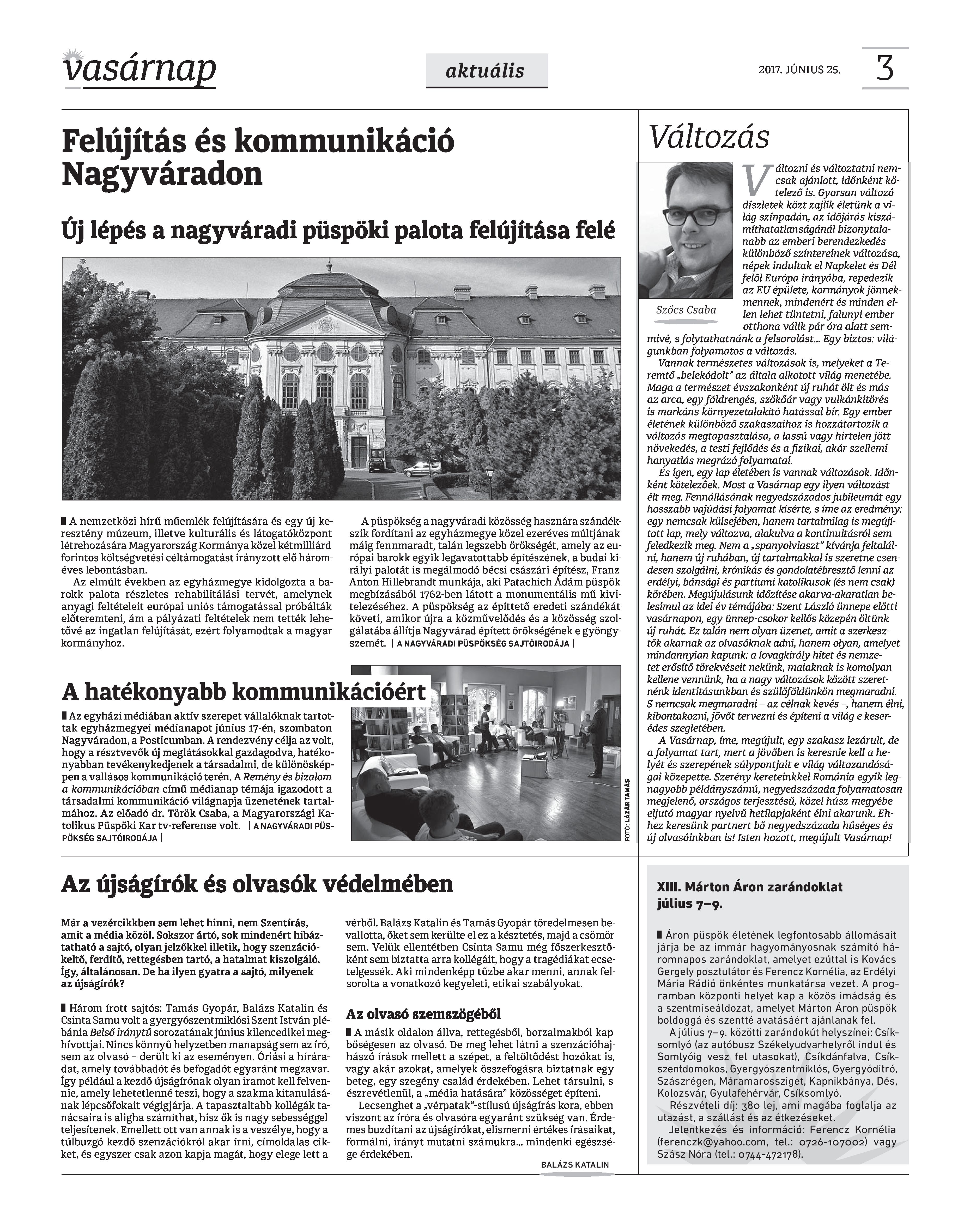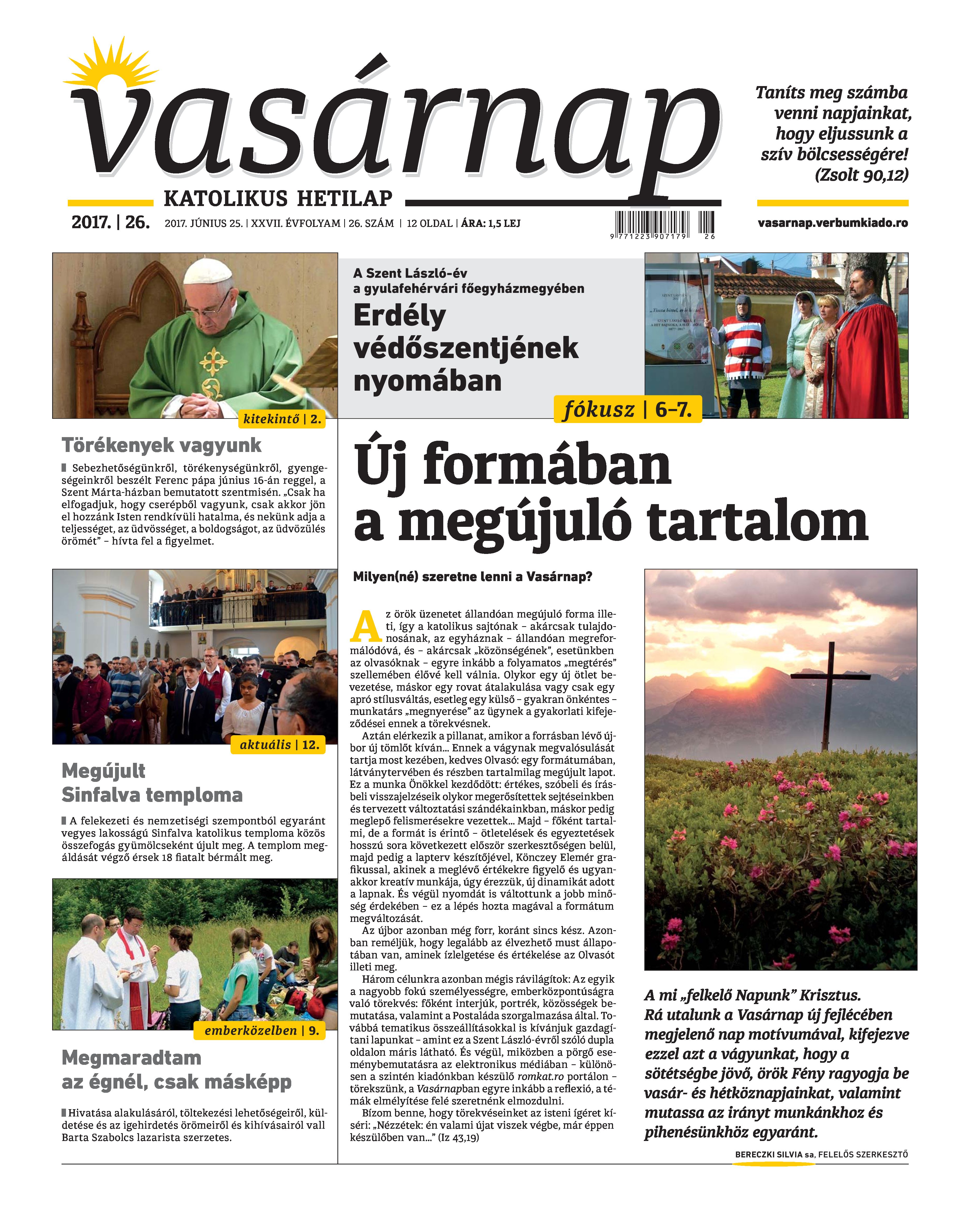 VASÁRNAP - 2017. JÚNIUS 25. A Vasárnap Katolikus Hetilap 2017. június 25. / XXVII. évf. / 26. számának digitális változata. 1 / 12 2 & 3 / 12 4 & 5 / 12 6 & 7 / 12 8 & 9 / 12 10 & 11 / 12 12 / 12
