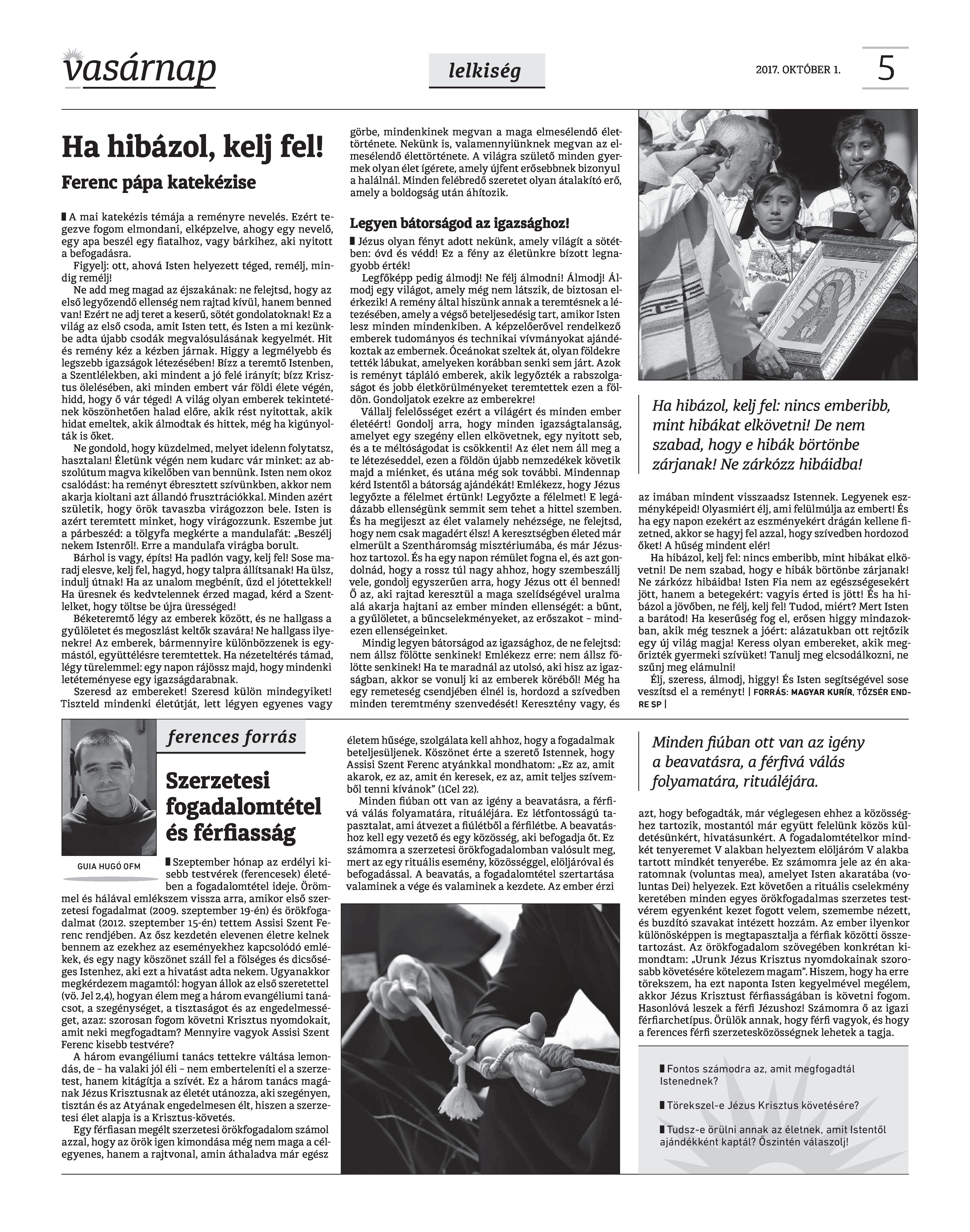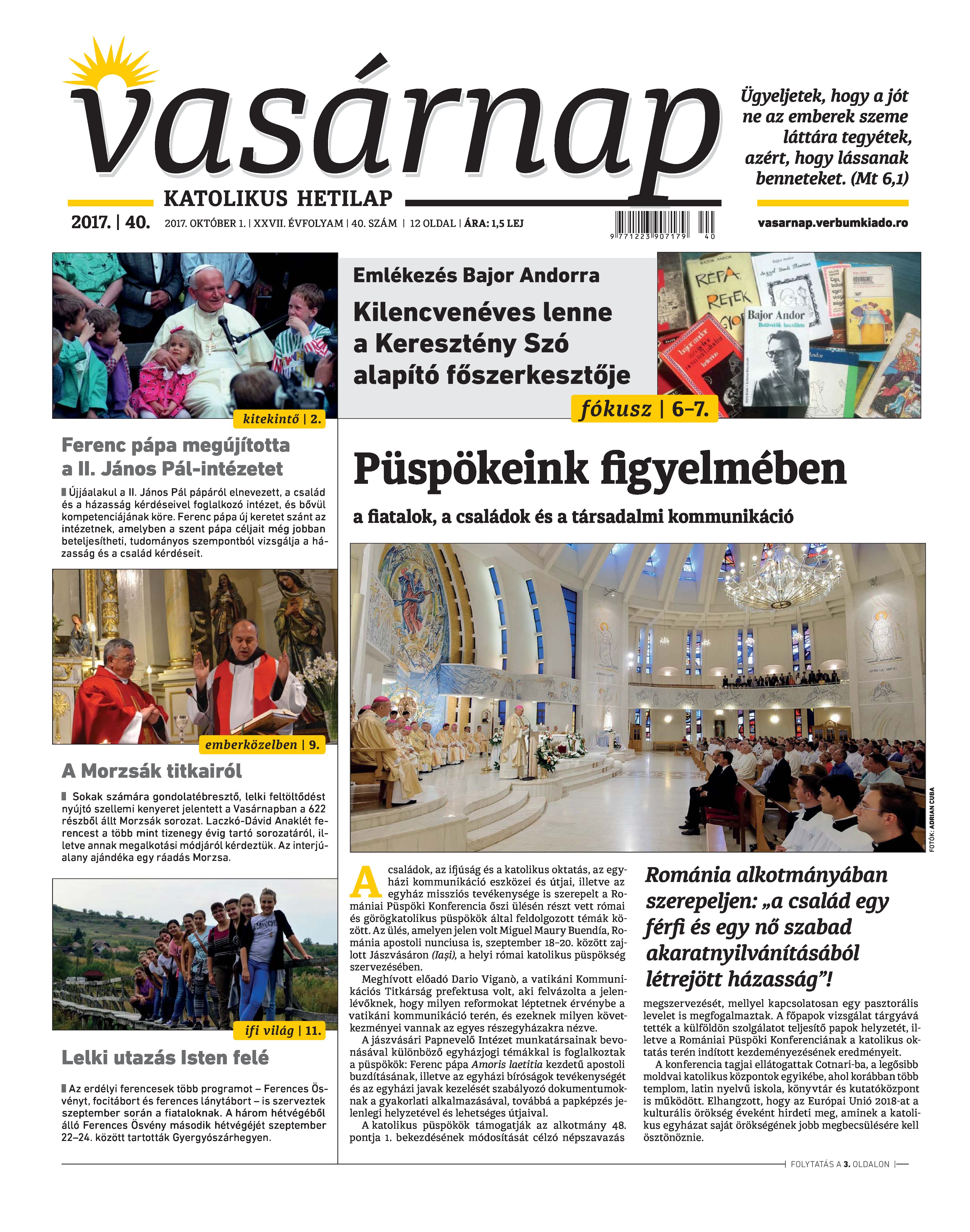 Vasárnap Katolikus Hetilap 2017. október 1. / XXVII. évf. / 40. számának digitális változata.