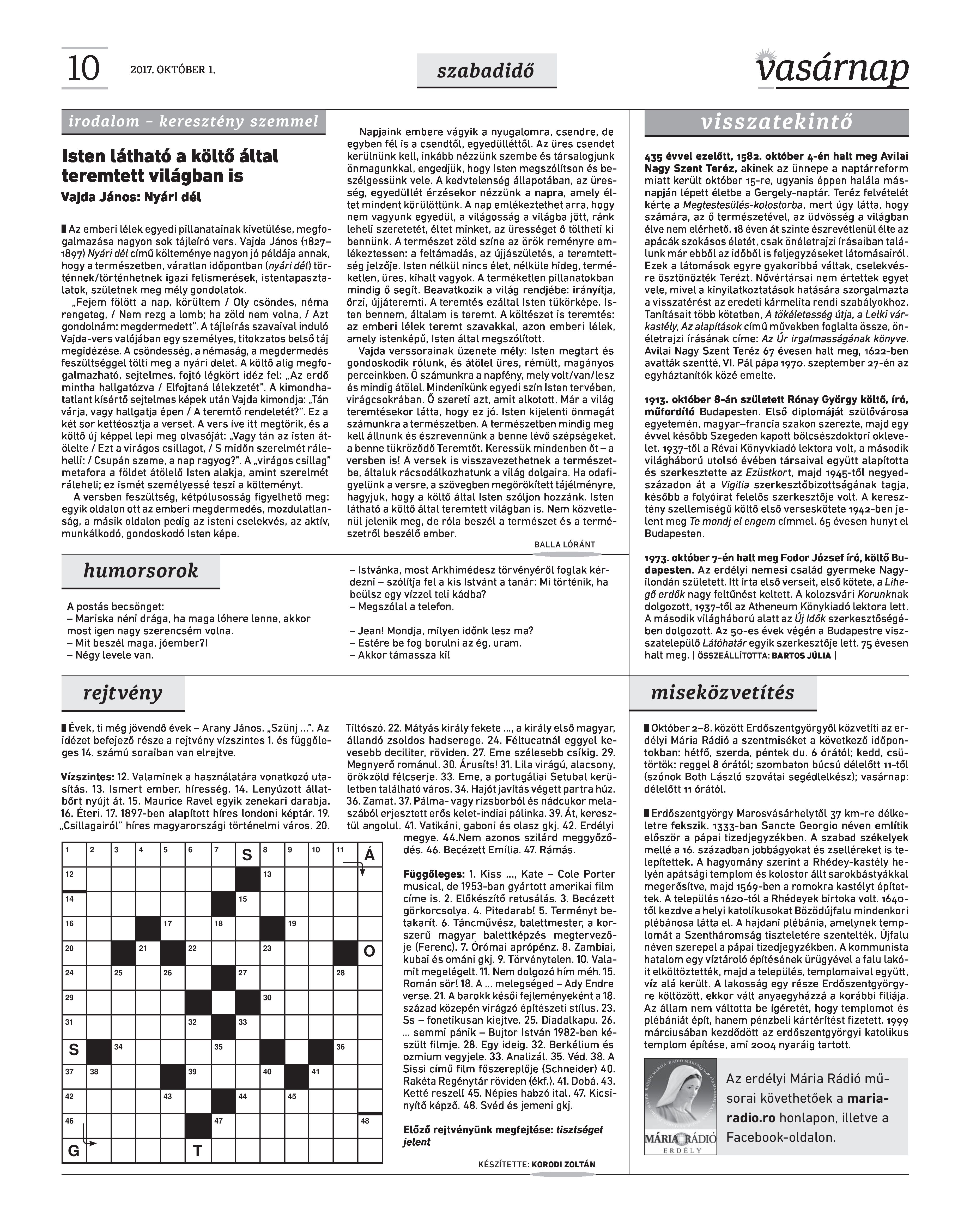 VASÁRNAP - 2017. OKTÓBER 1.