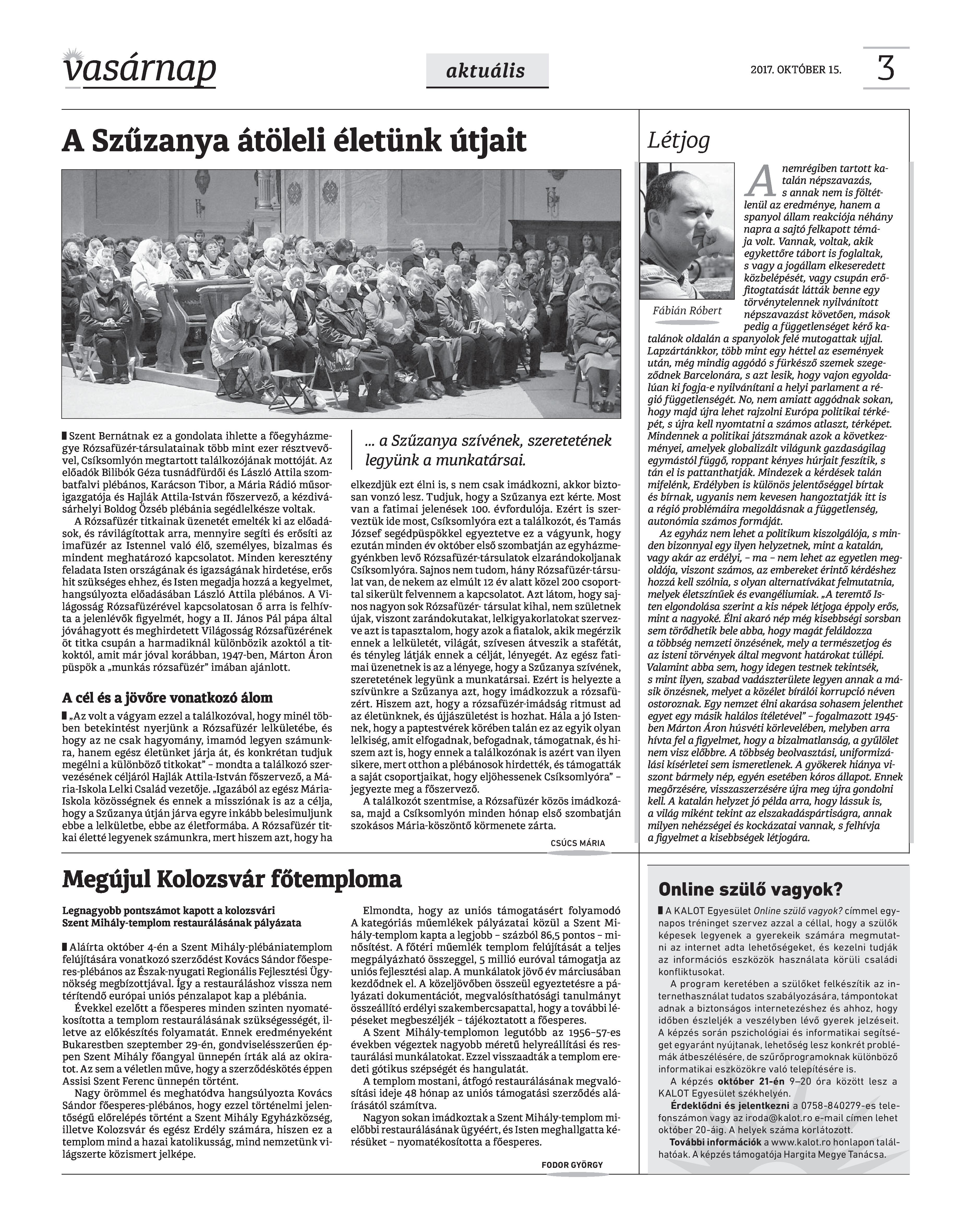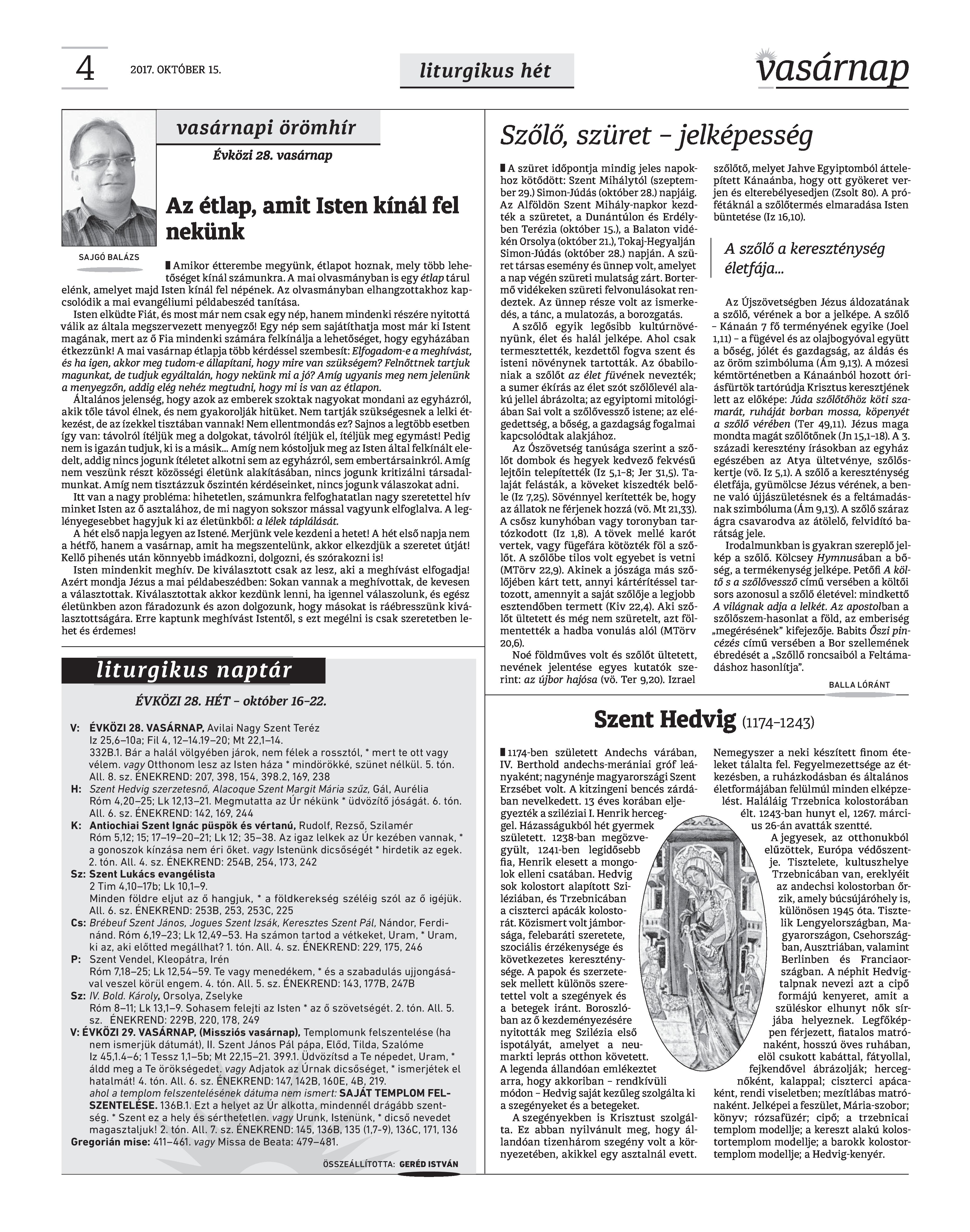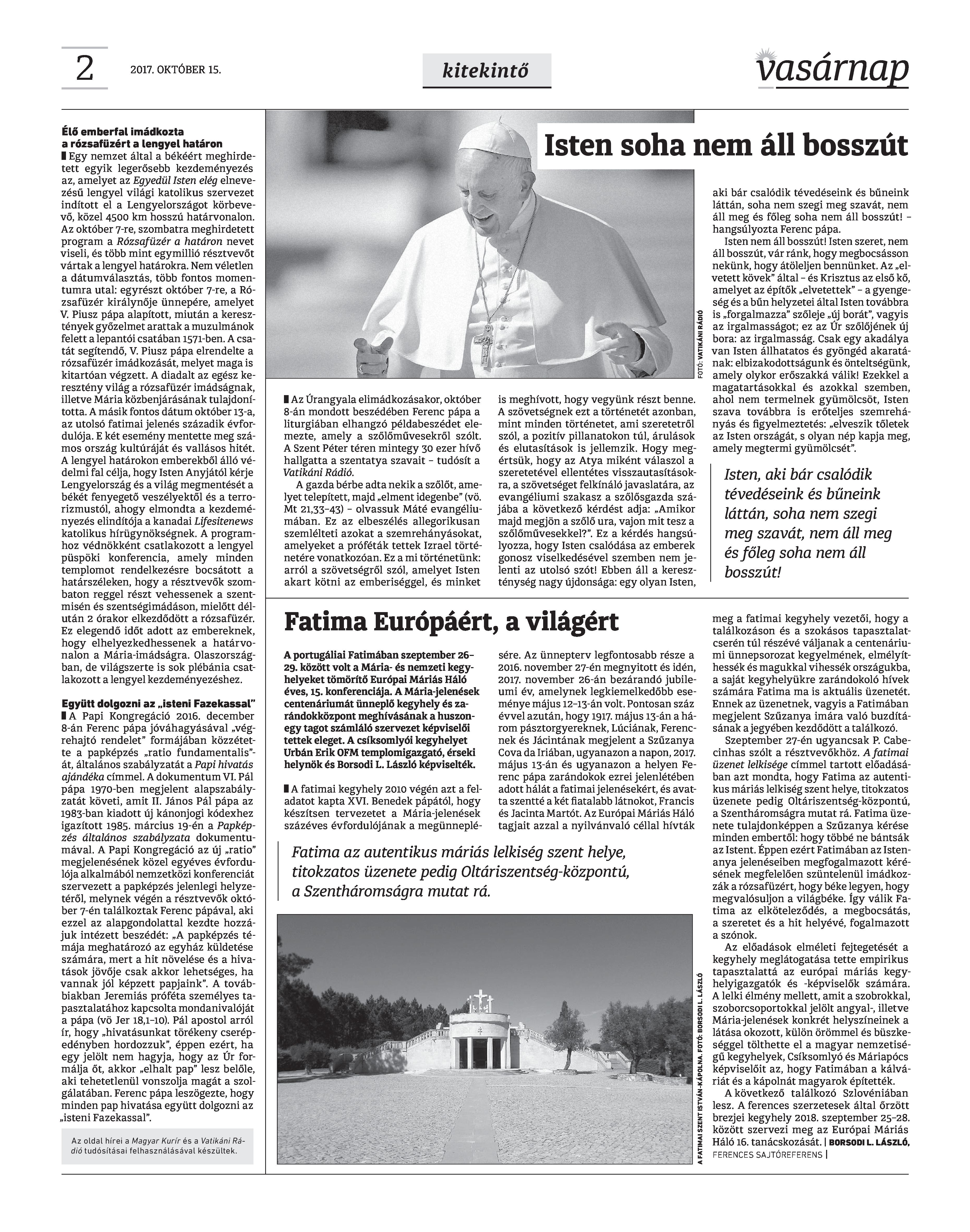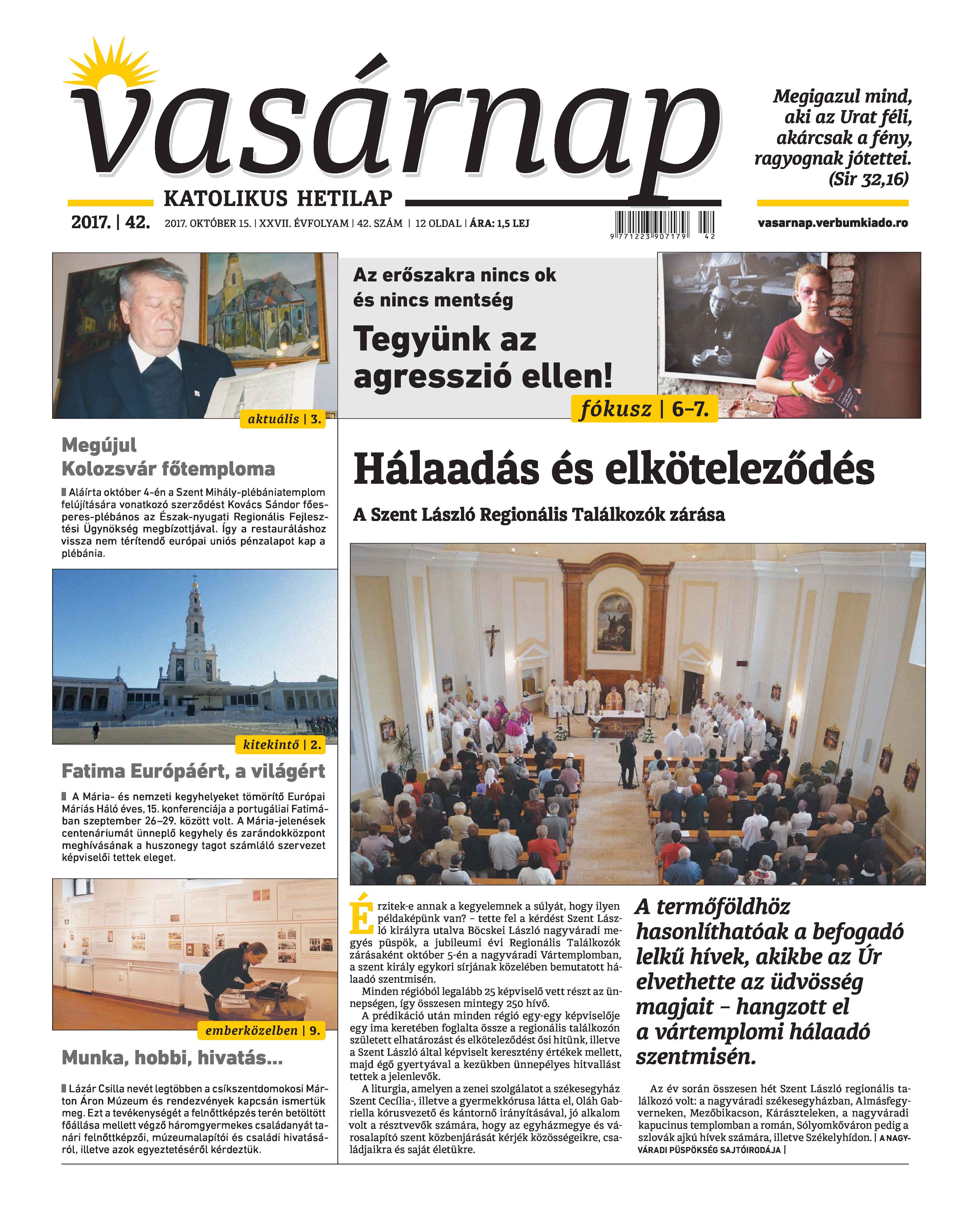 Vasárnap Katolikus Hetilap 2017. október 15. / XXVII. évf. / 42. számának digitális változata.