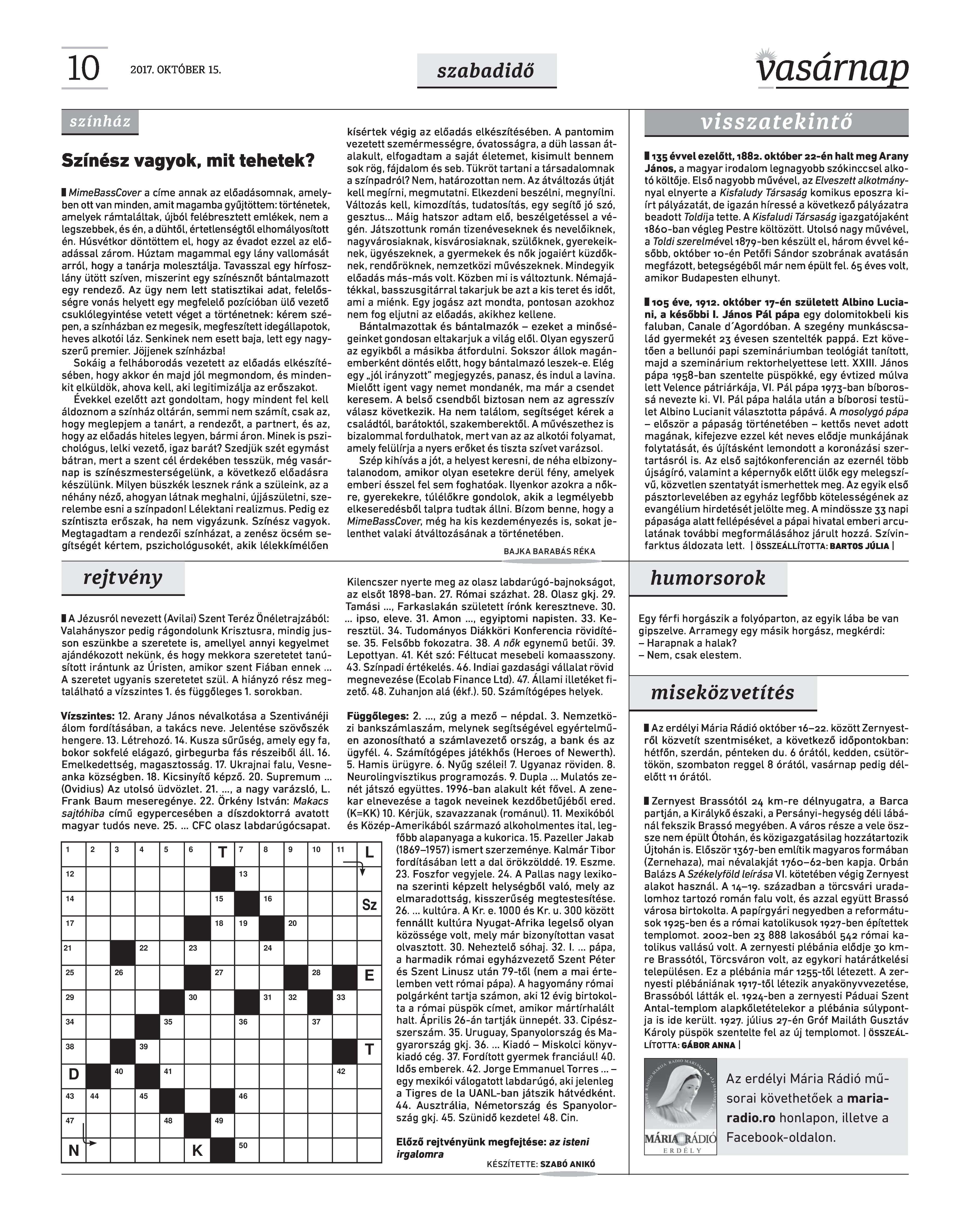 VASÁRNAP - 2017. OKTÓBER 15.
