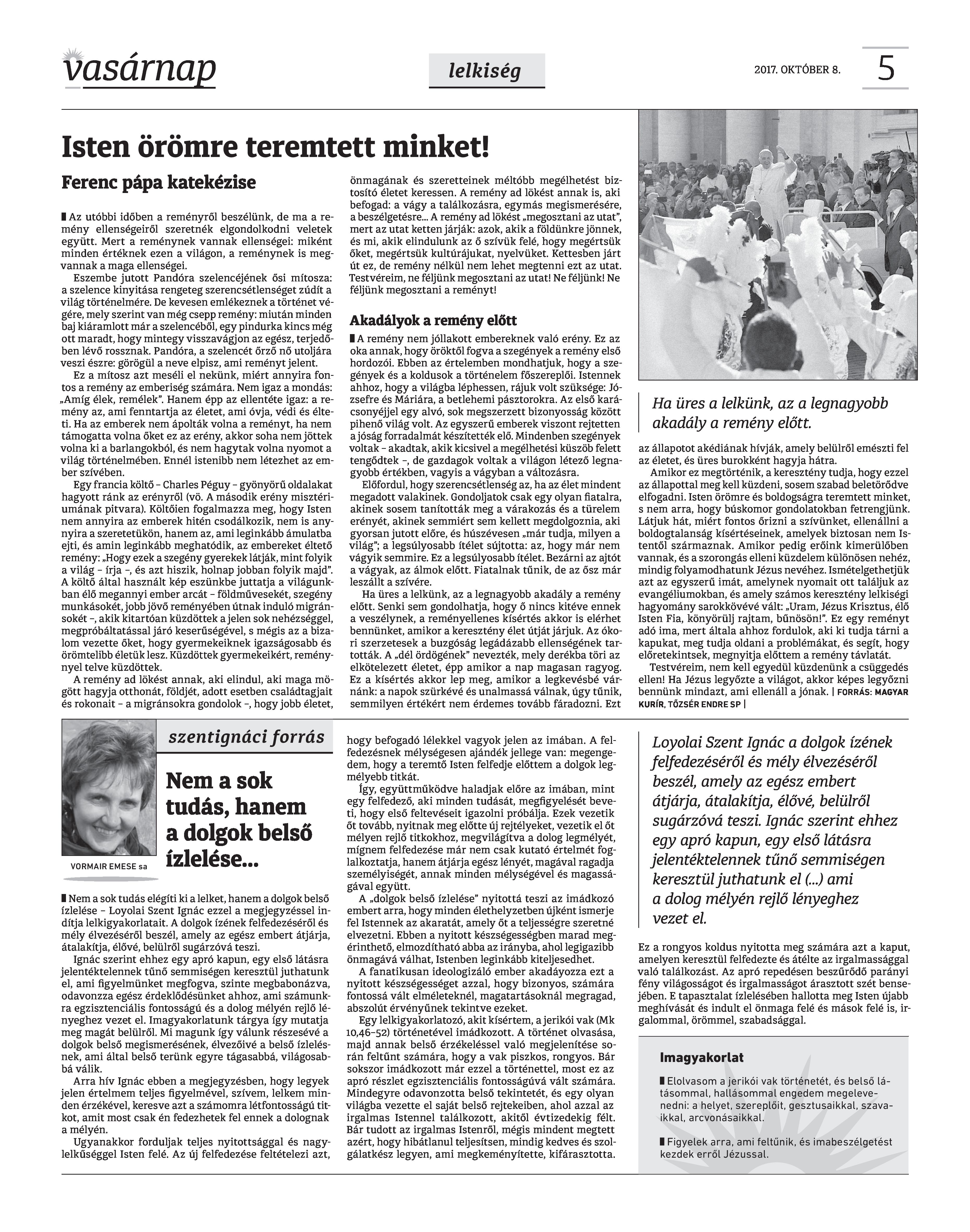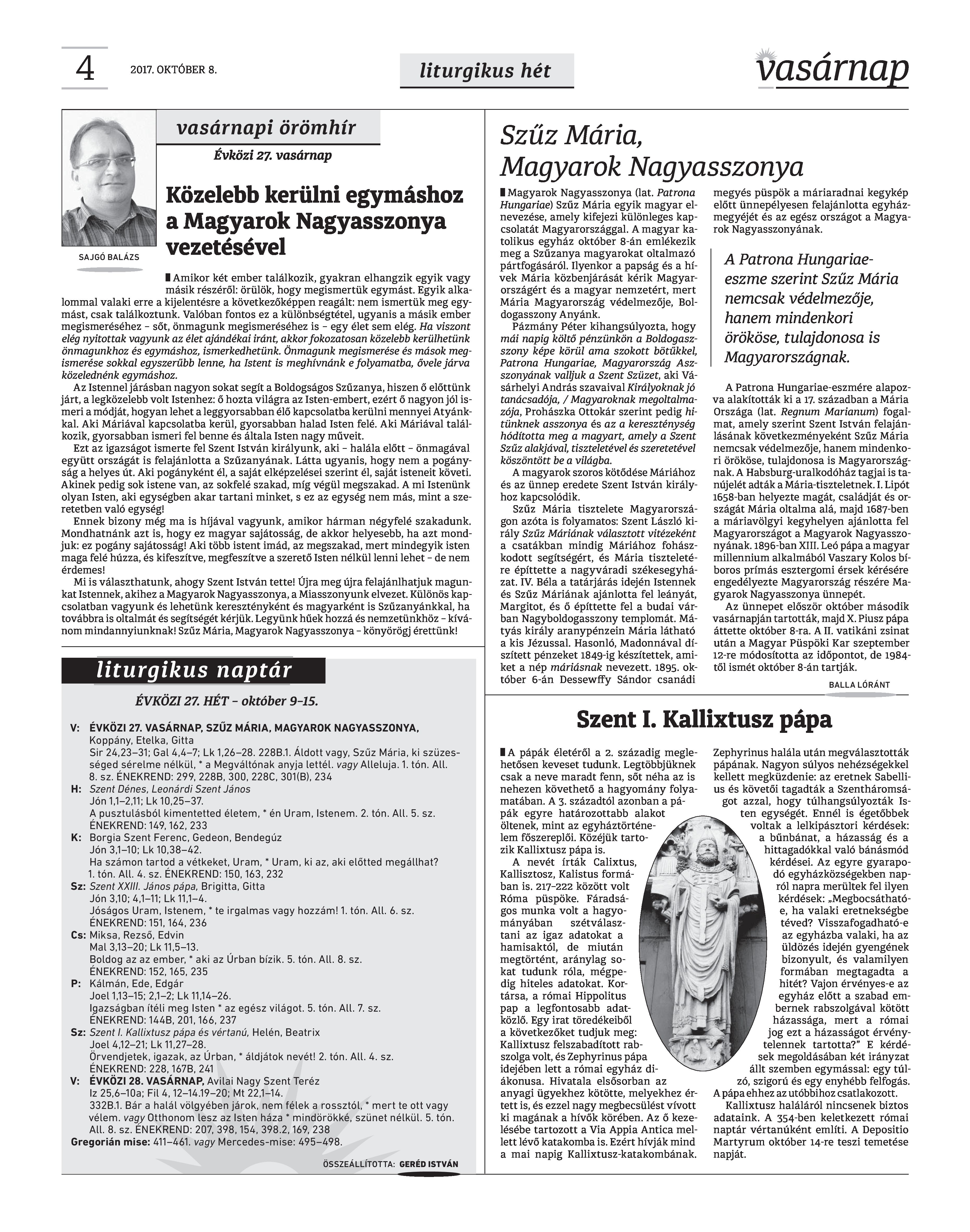 Vasárnap Katolikus Hetilap 2017. október 8. / XXVII. évf. / 41. számának digitális változata.