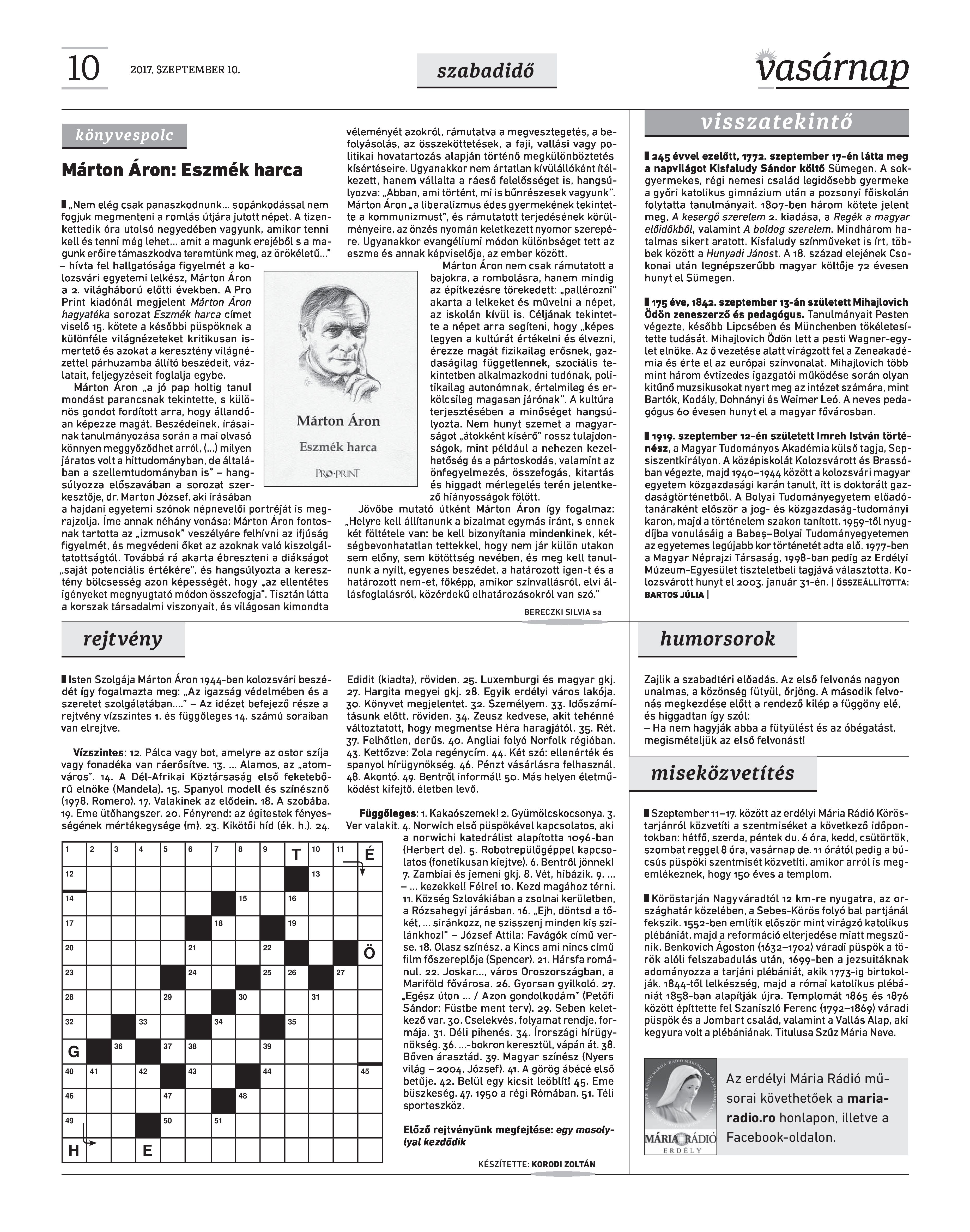 Vasárnap Katolikus Hetilap 2017. szeptember 10. / XXVII. évf. / 37. számának digitális változata.