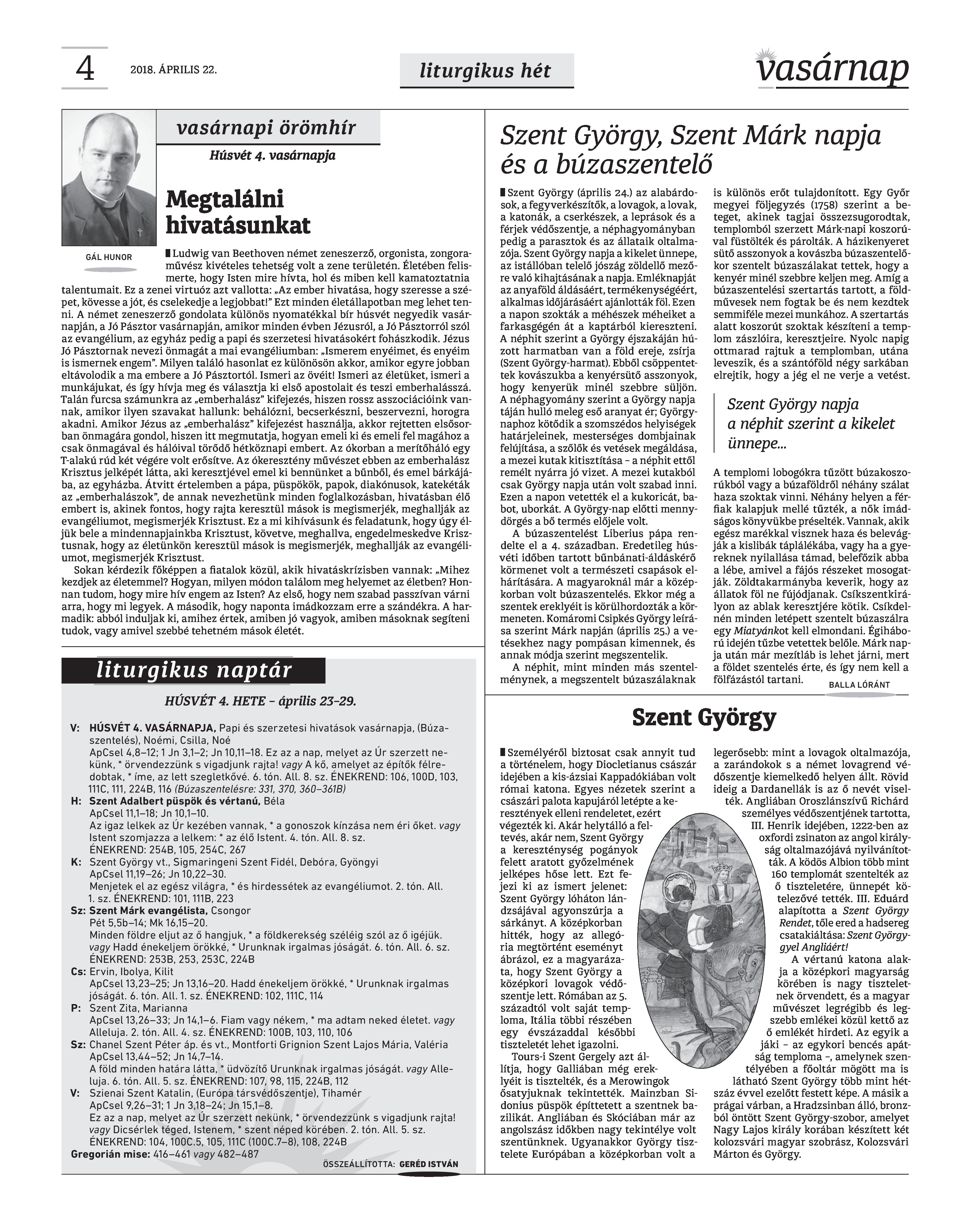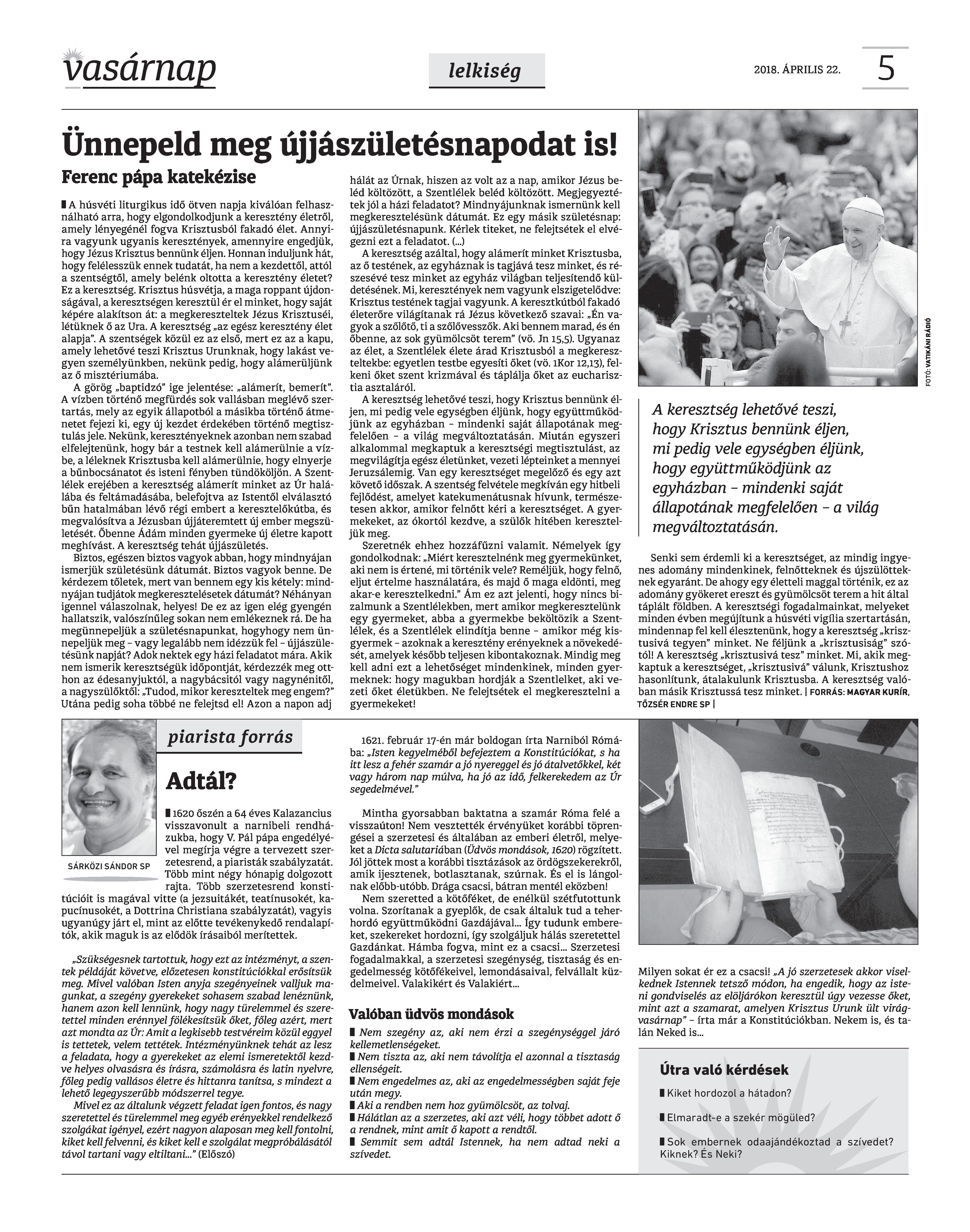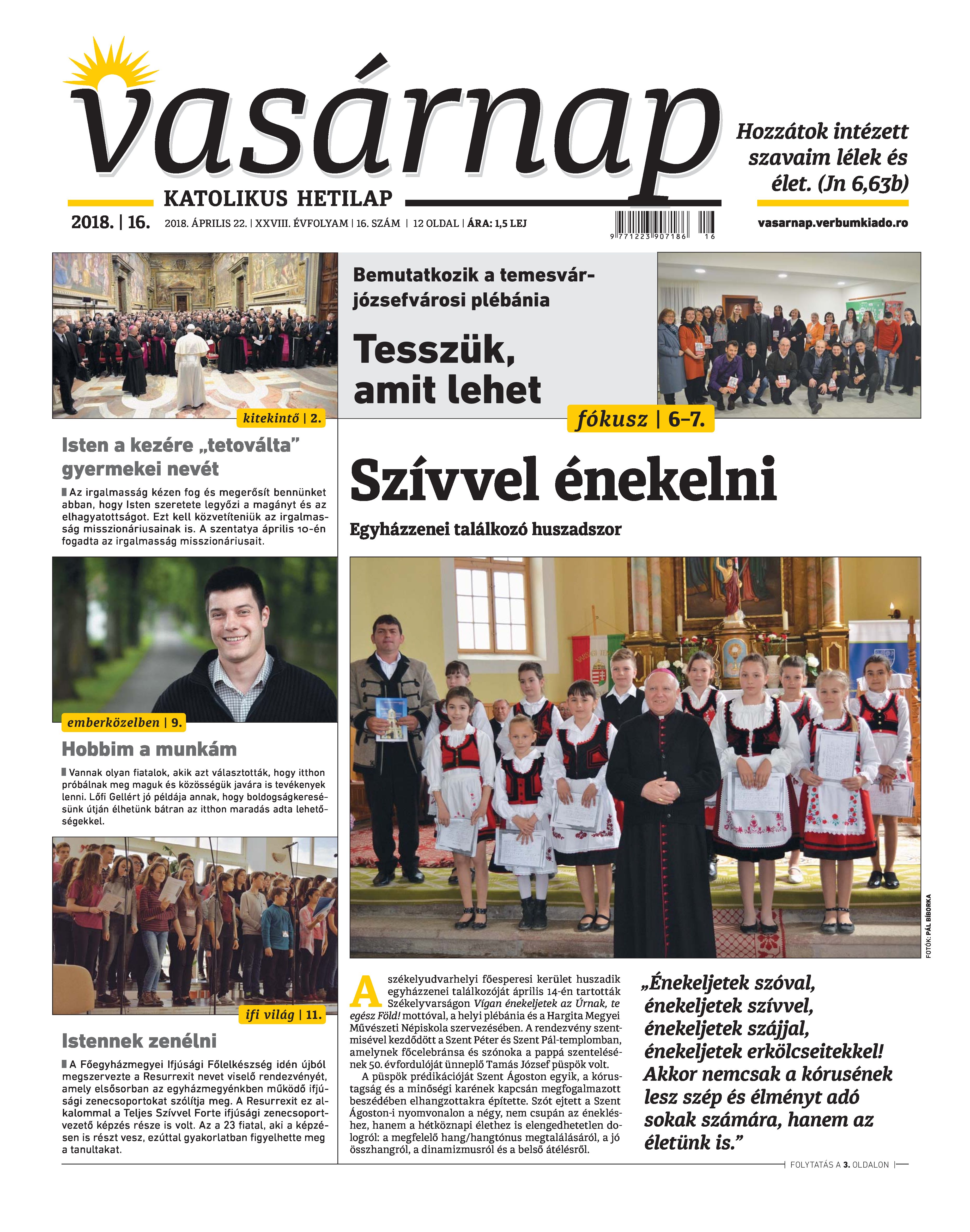 VASÁRNAP - 2018. ÁPRILIS 22. A Vasárnap Katolikus Hetilap 2018. április 22. / XXVIII. évf. / 16. számának digitális változata. 1 / 12 2 & 3 / 12 4 & 5 / 12 6 & 7 / 12 8 & 9 / 12 10 & 11 / 12 12 / 12