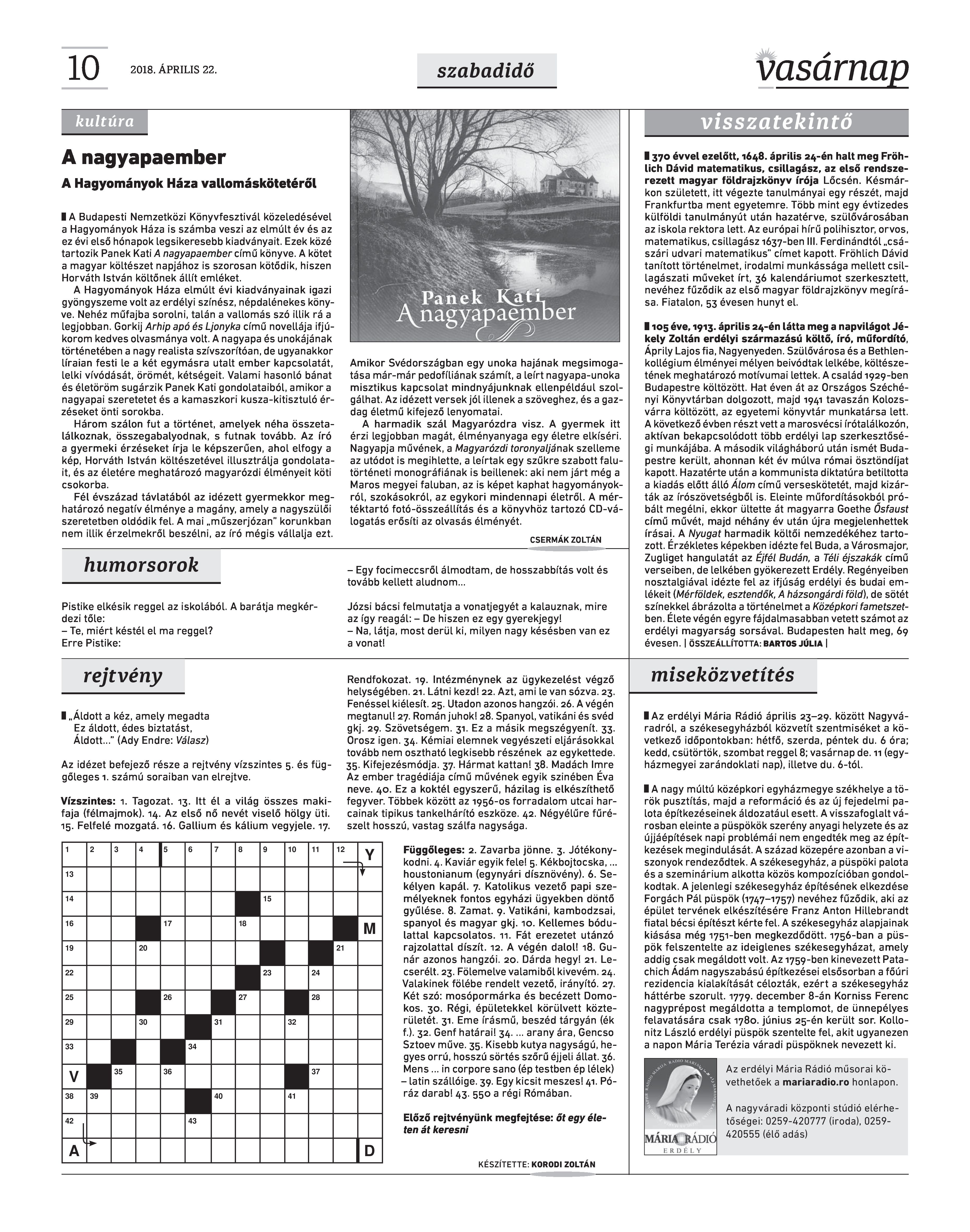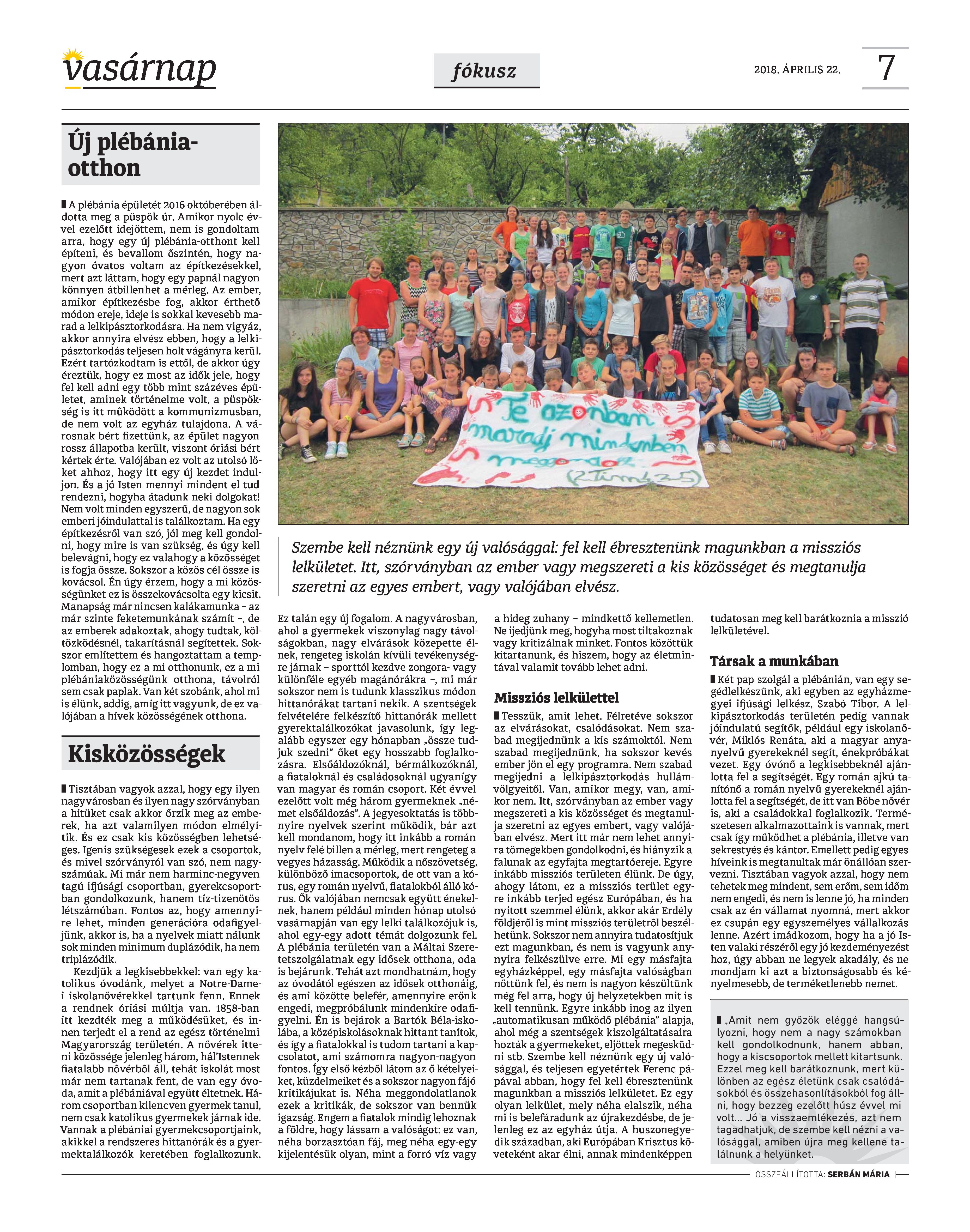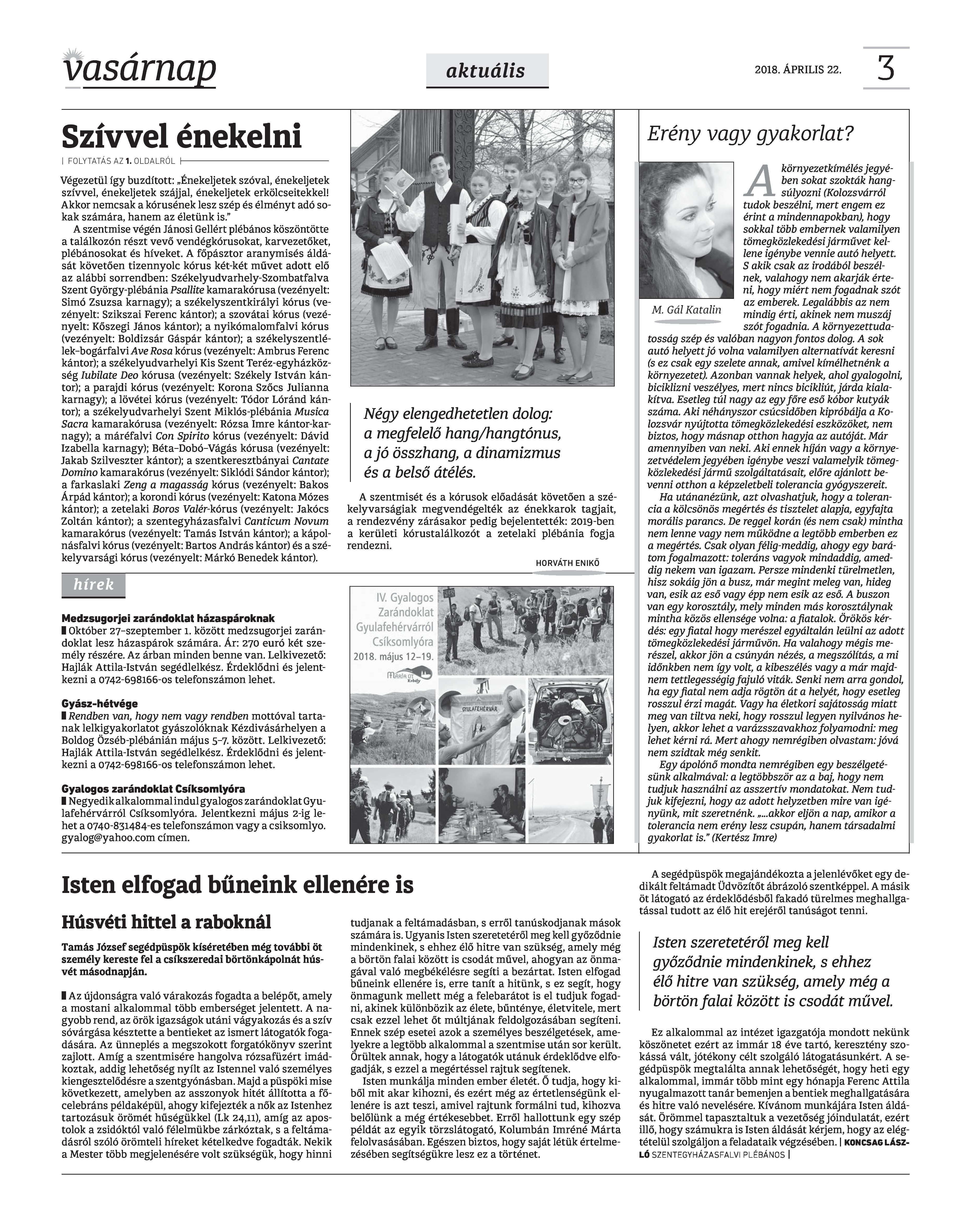 VASÁRNAP - 2018. ÁPRILIS 22. A Vasárnap Katolikus Hetilap 2018. április 22. / XXVIII. évf. / 16. számának digitális változata. 1 / 12 2 & 3 / 12 4 & 5 / 12 6 & 7 / 12 8 & 9 / 12 10 & 11 / 12 12 / 12