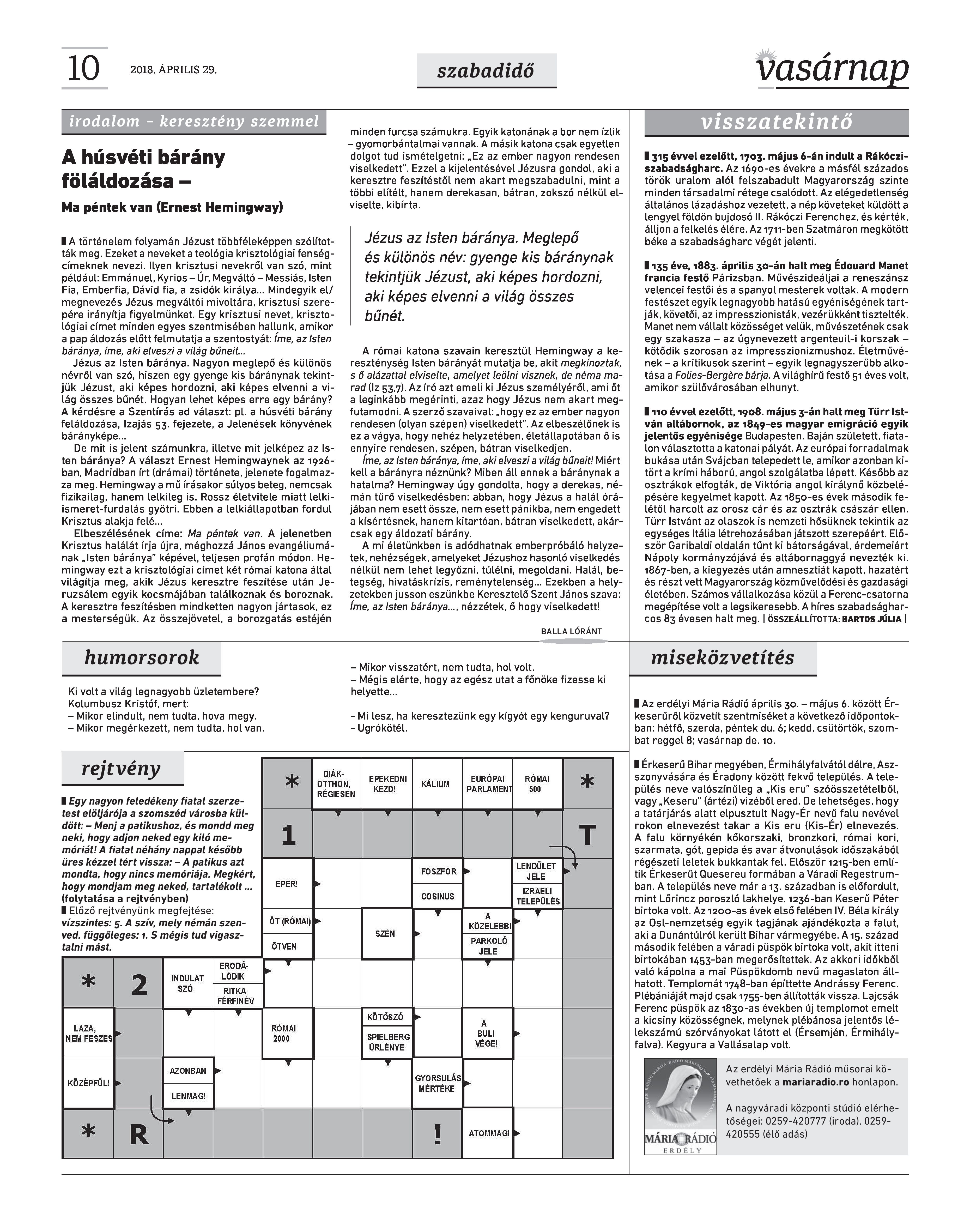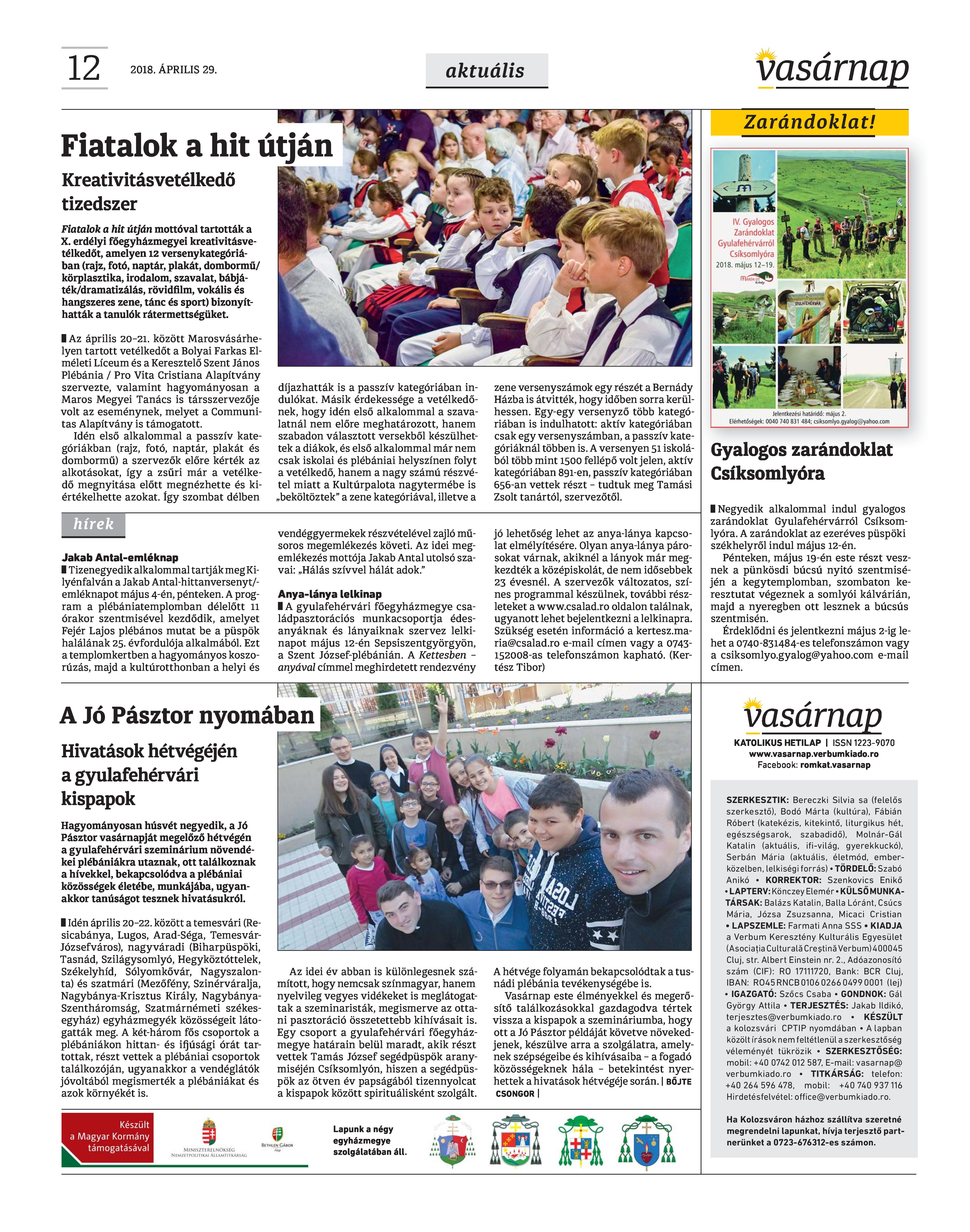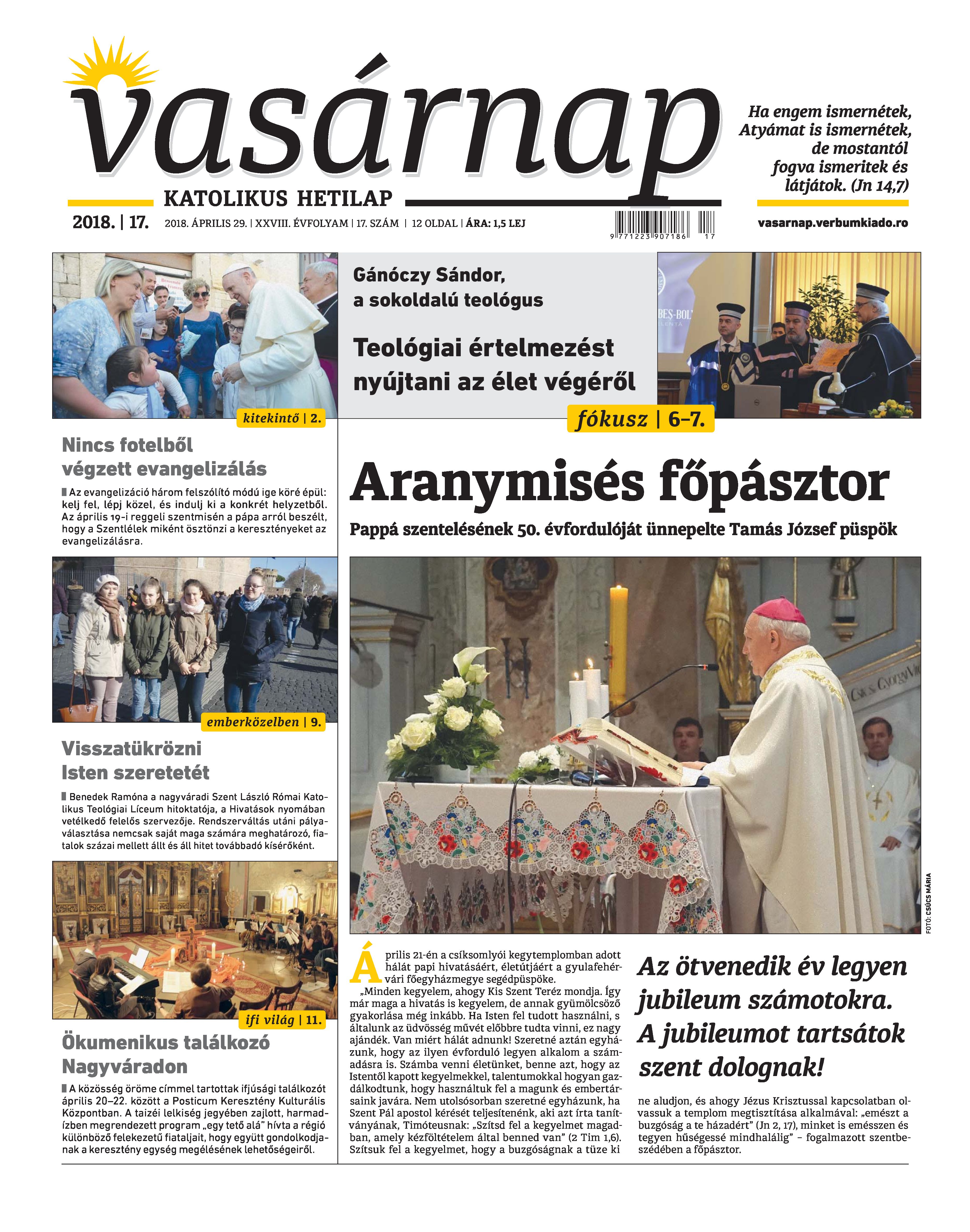 VASÁRNAP - 2018. ÁPRILIS 29. A Vasárnap Katolikus Hetilap 2018. április 29. / XXVIII. évf. / 17. számának digitális változata. 1 / 12 2 & 3 / 12 4 & 5 / 12 6 & 7 / 12 8 & 9 / 12 10 & 11 / 12 12 / 12
