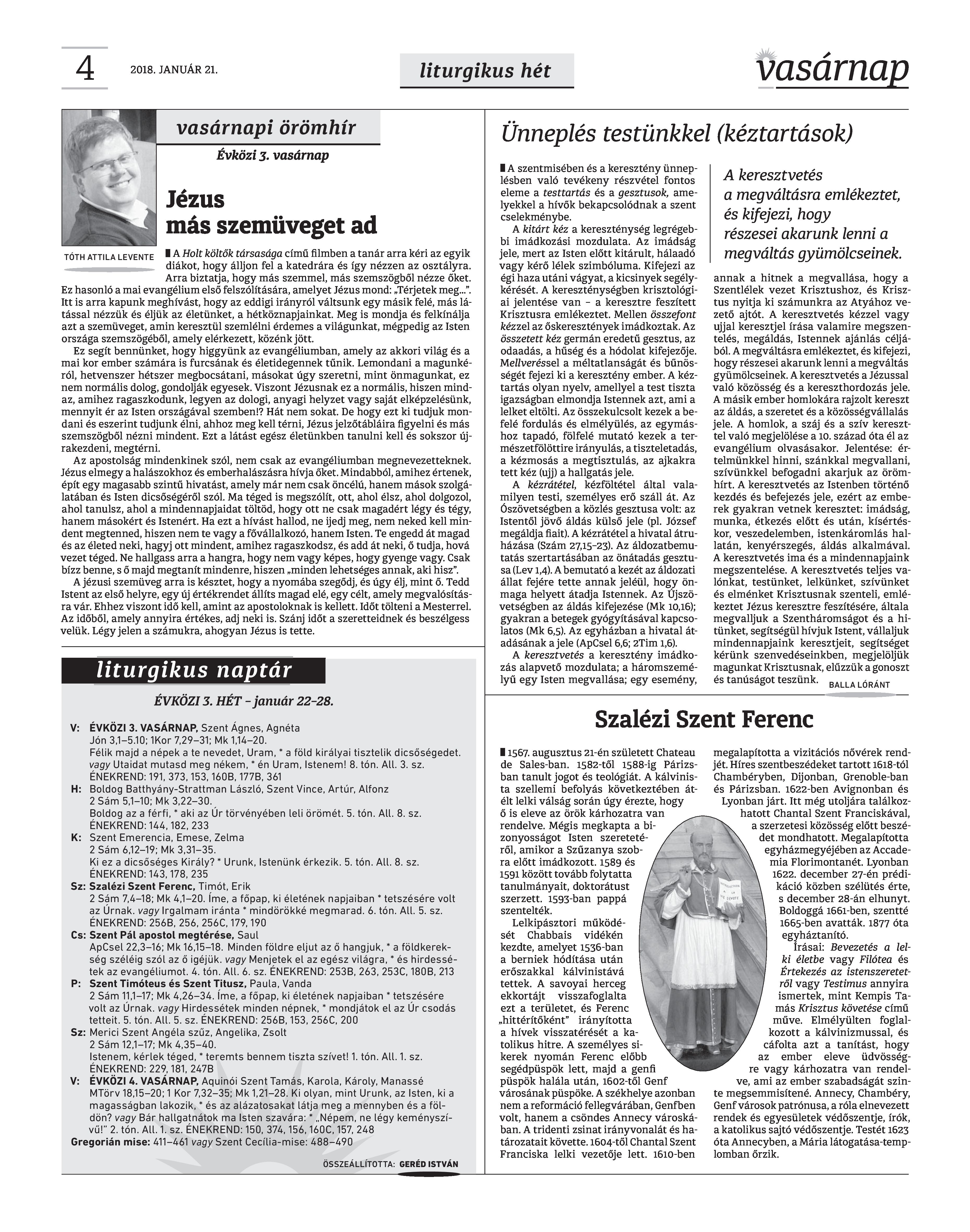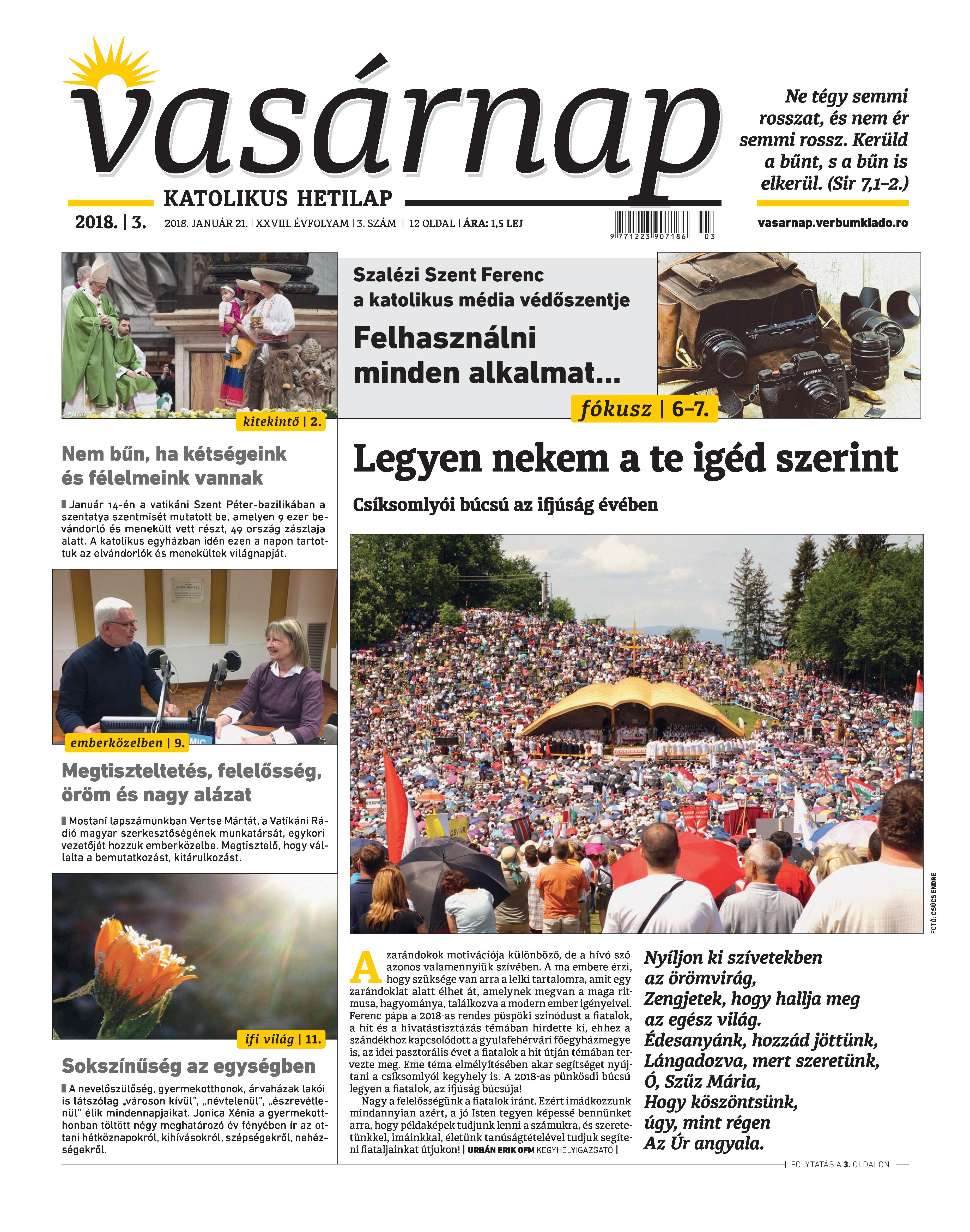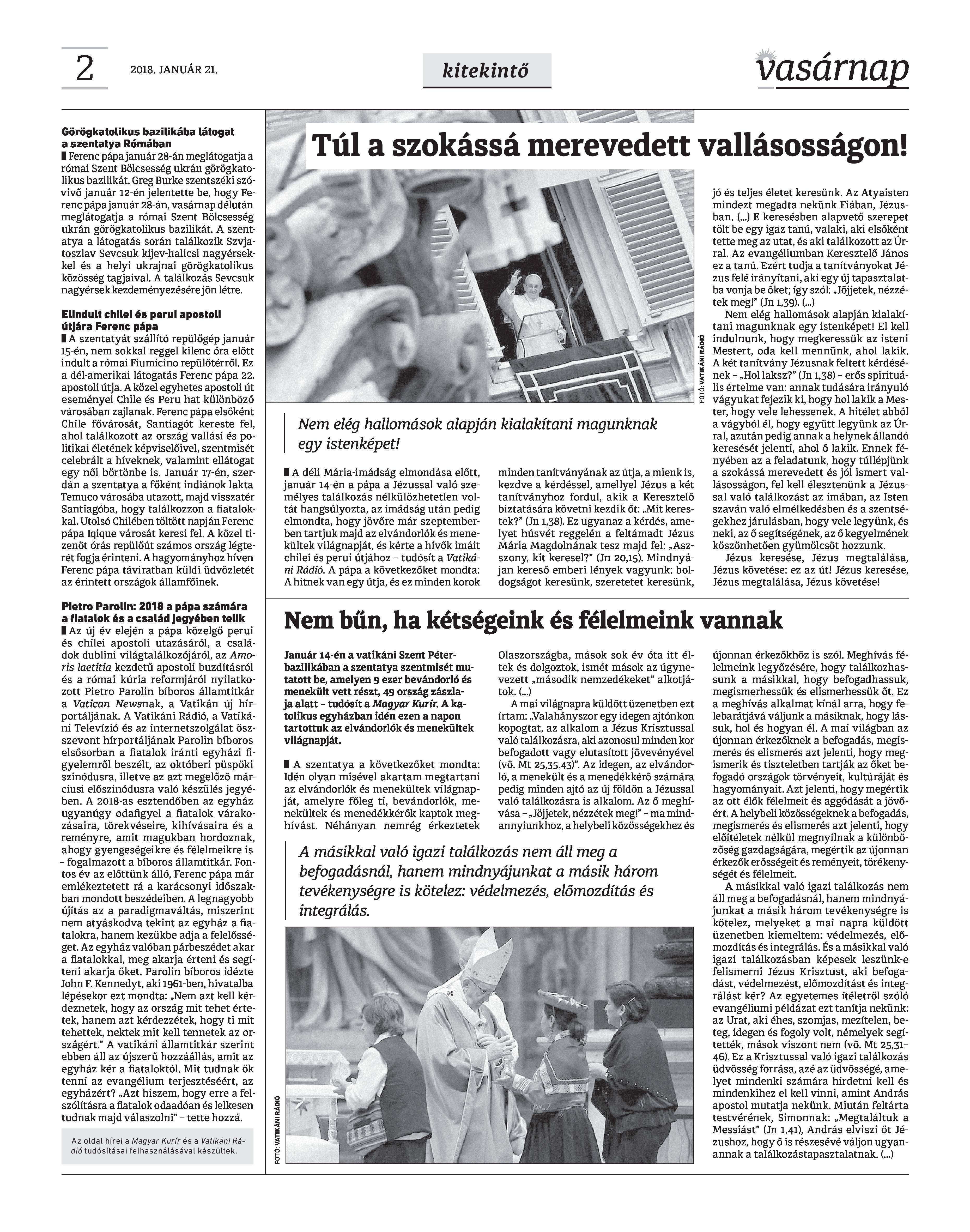 VASÁRNAP - 2018. JANUÁR 21. A Vasárnap Katolikus Hetilap 2018. január 21. / XXVIII. évf. / 3. számának digitális változata. 1 / 12 2 & 3 / 12 4 & 5 / 12 6 & 7 / 12 8 & 9 / 12 10 & 11 / 12 12 / 12
