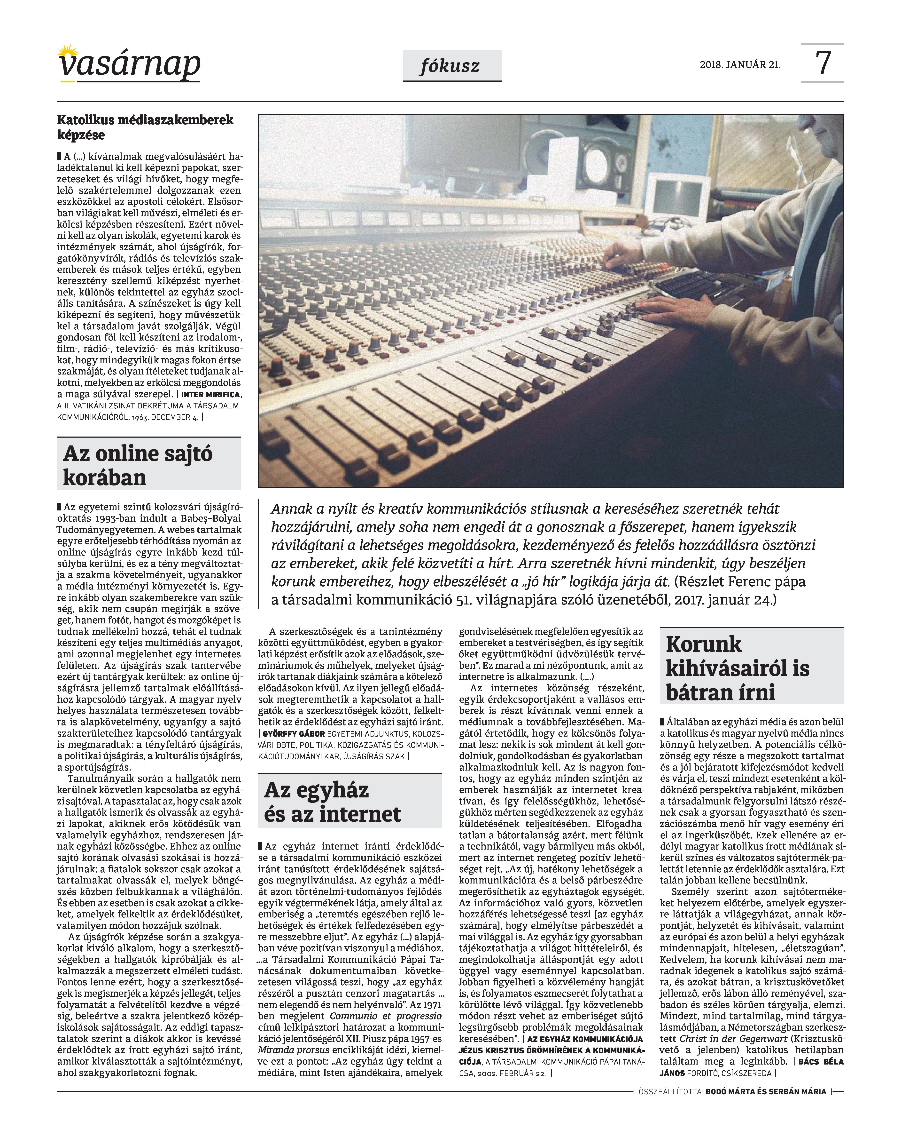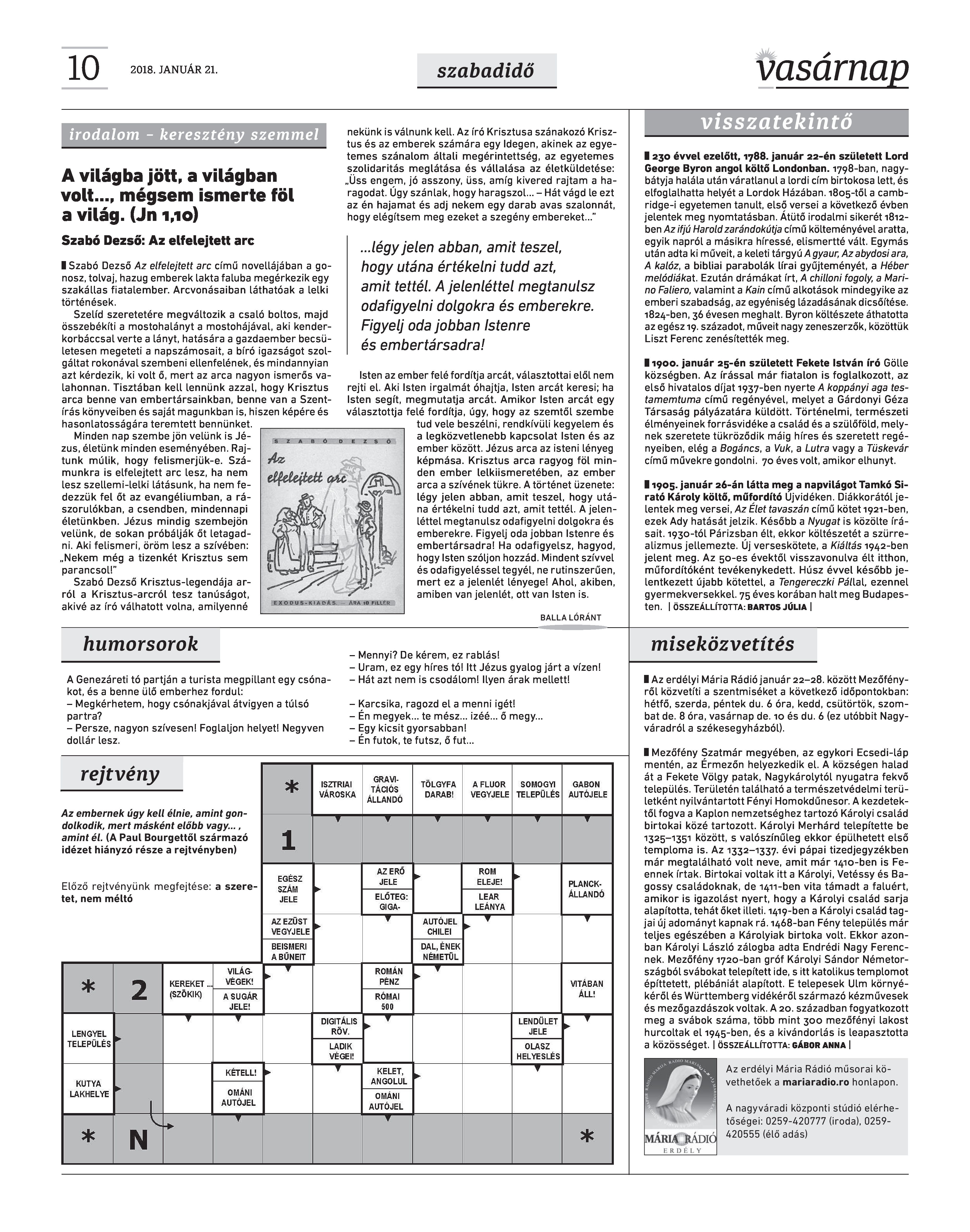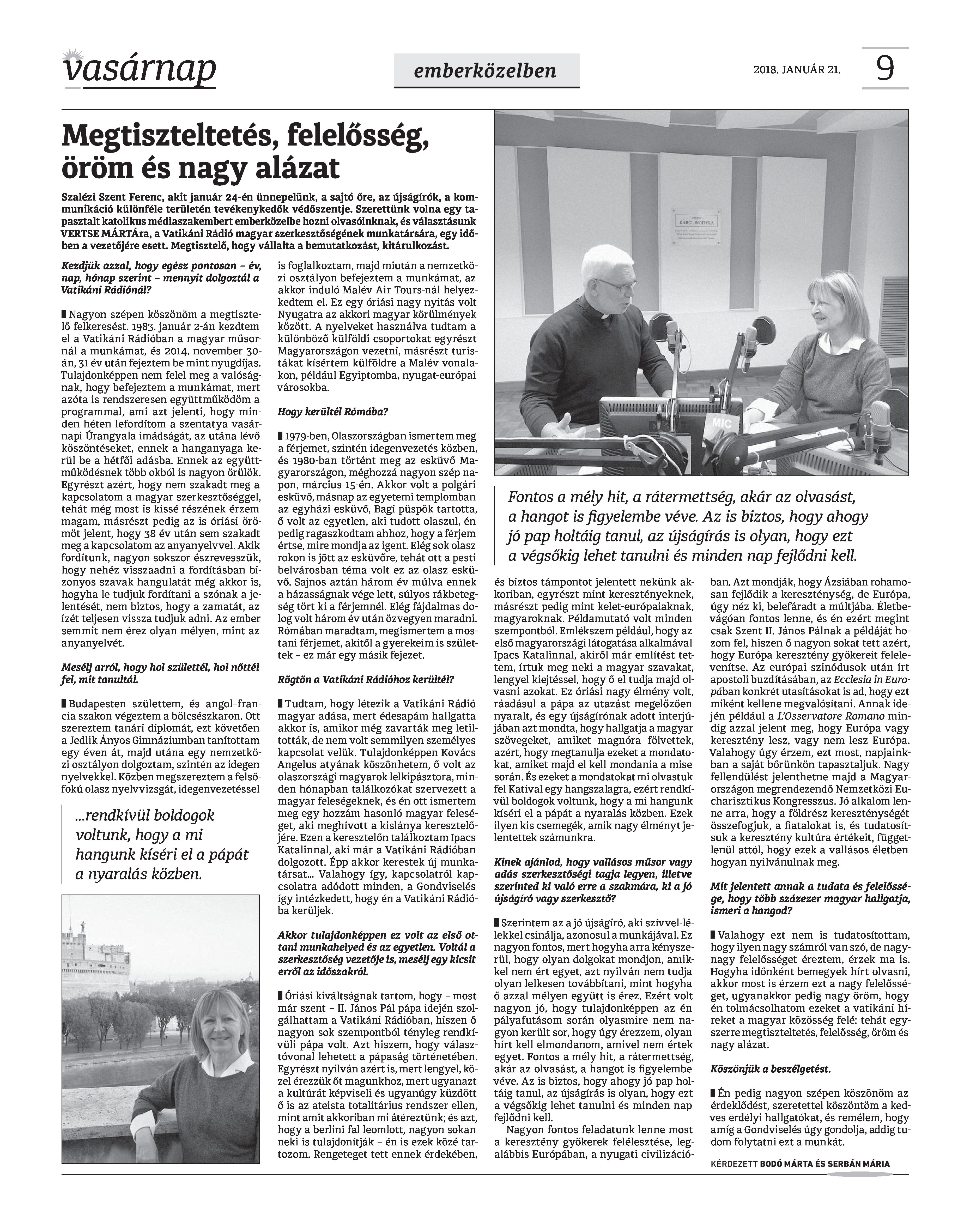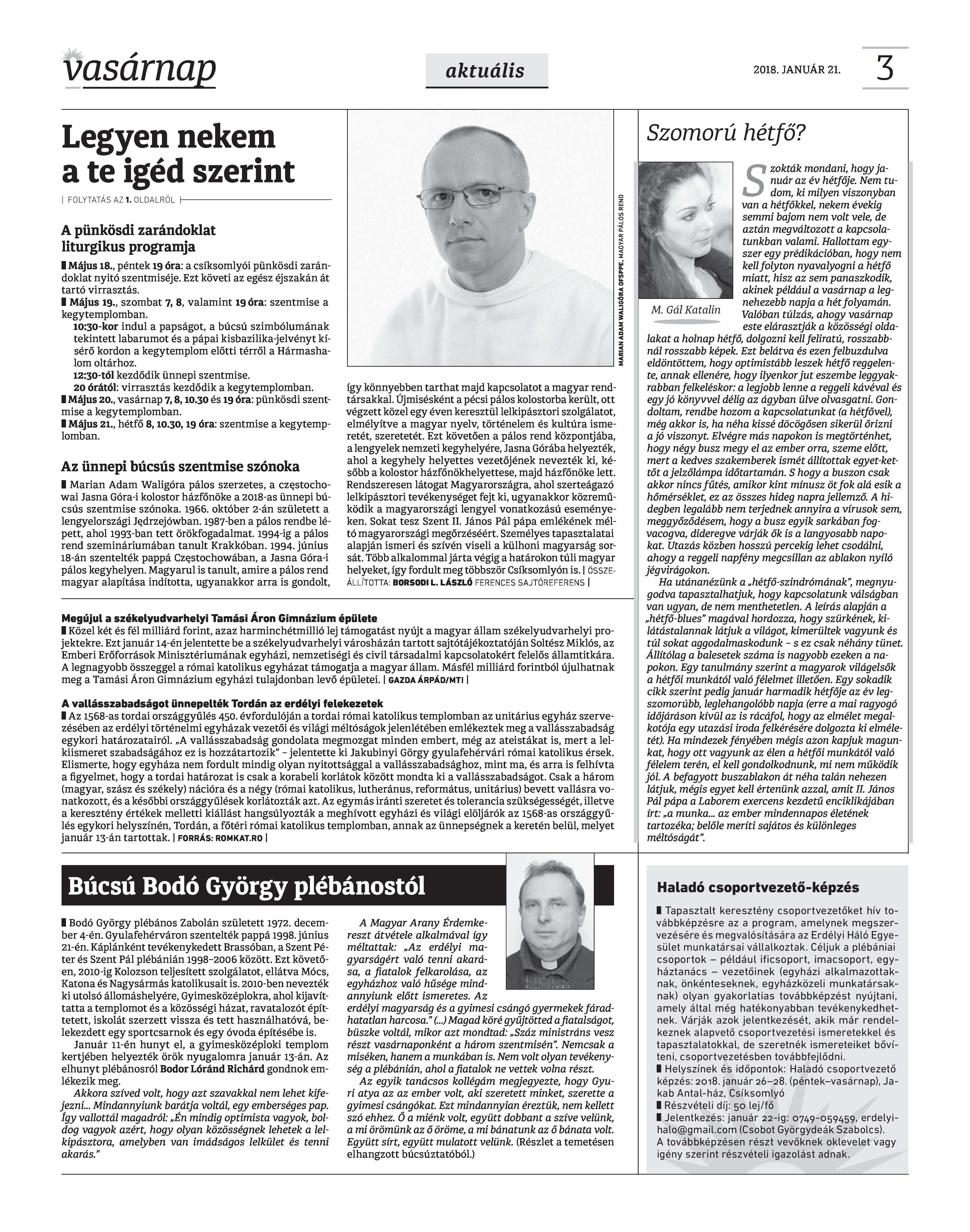 VASÁRNAP - 2018. JANUÁR 21. A Vasárnap Katolikus Hetilap 2018. január 21. / XXVIII. évf. / 3. számának digitális változata. 1 / 12 2 & 3 / 12 4 & 5 / 12 6 & 7 / 12 8 & 9 / 12 10 & 11 / 12 12 / 12