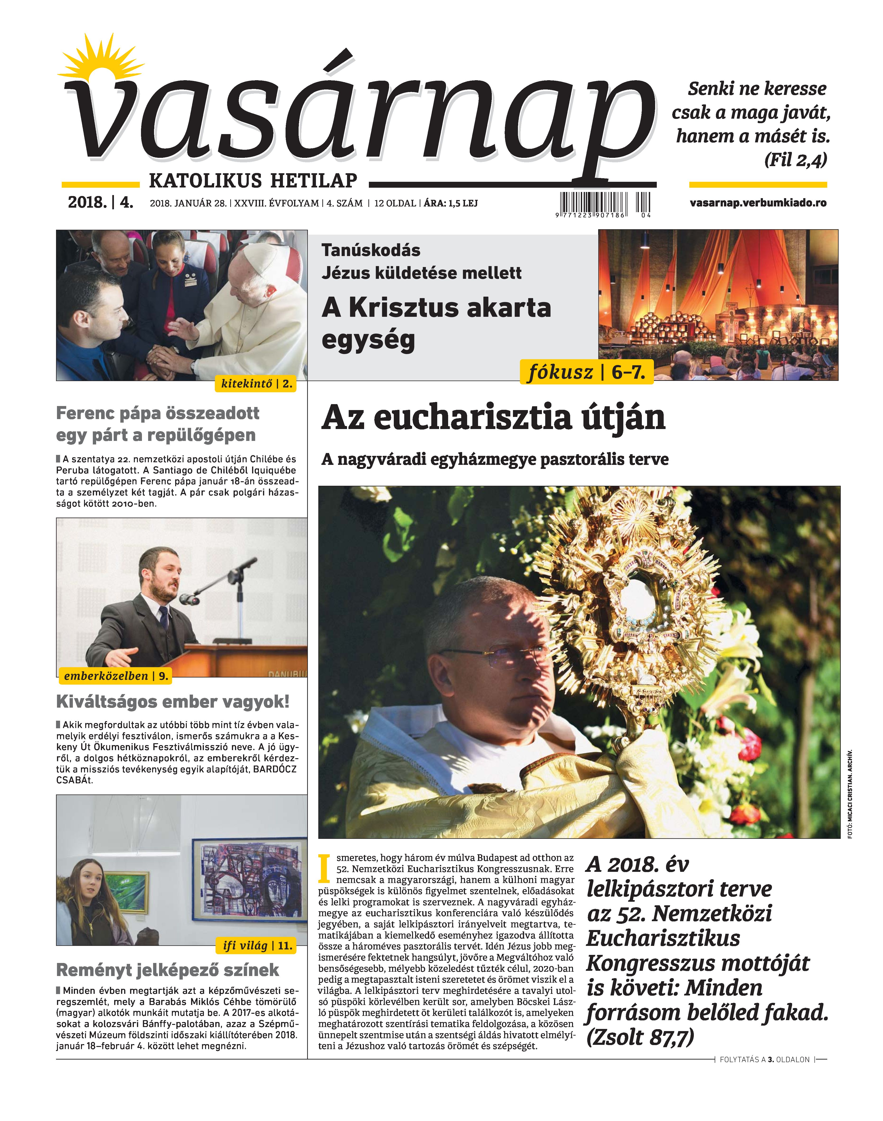 VASÁRNAP - 2018. JANUÁR 28. A Vasárnap Katolikus Hetilap 2018. január 28. / XXVIII. évf. / 4. számának digitális változata. 1 / 12 2 & 3 / 12 4 & 5 / 12 6 & 7 / 12 8 & 9 / 12 10 & 11 / 12 12 / 12