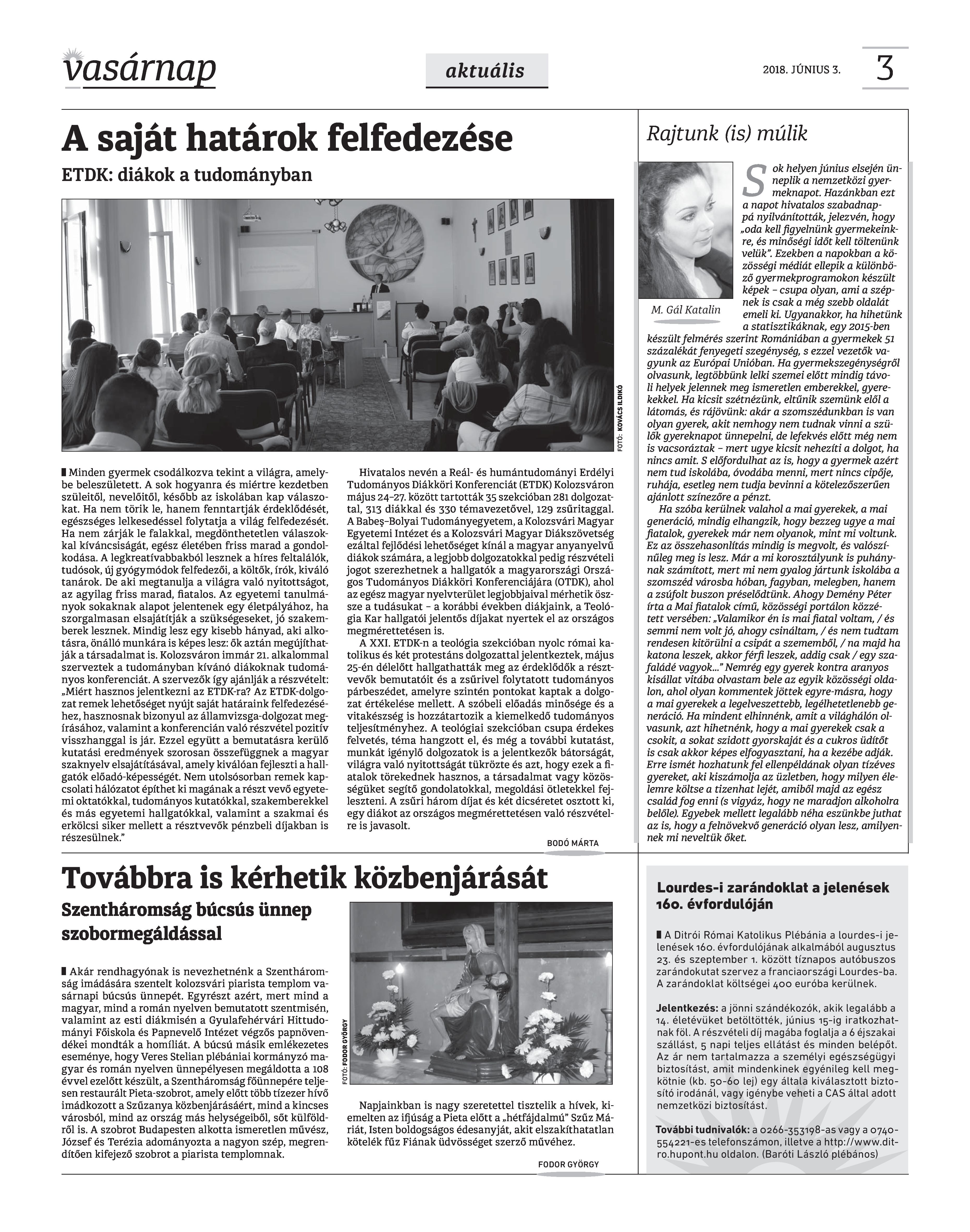 VASÁRNAP - 2018. JÚNIUS 3. A Vasárnap Katolikus Hetilap 2018. június 3. / XXVIII. évf. / 22. számának digitális változata. 1 / 12 2 & 3 / 12 4 & 5 / 12 6 & 7 / 12 8 & 9 / 12 10 & 11 / 12 12 / 12