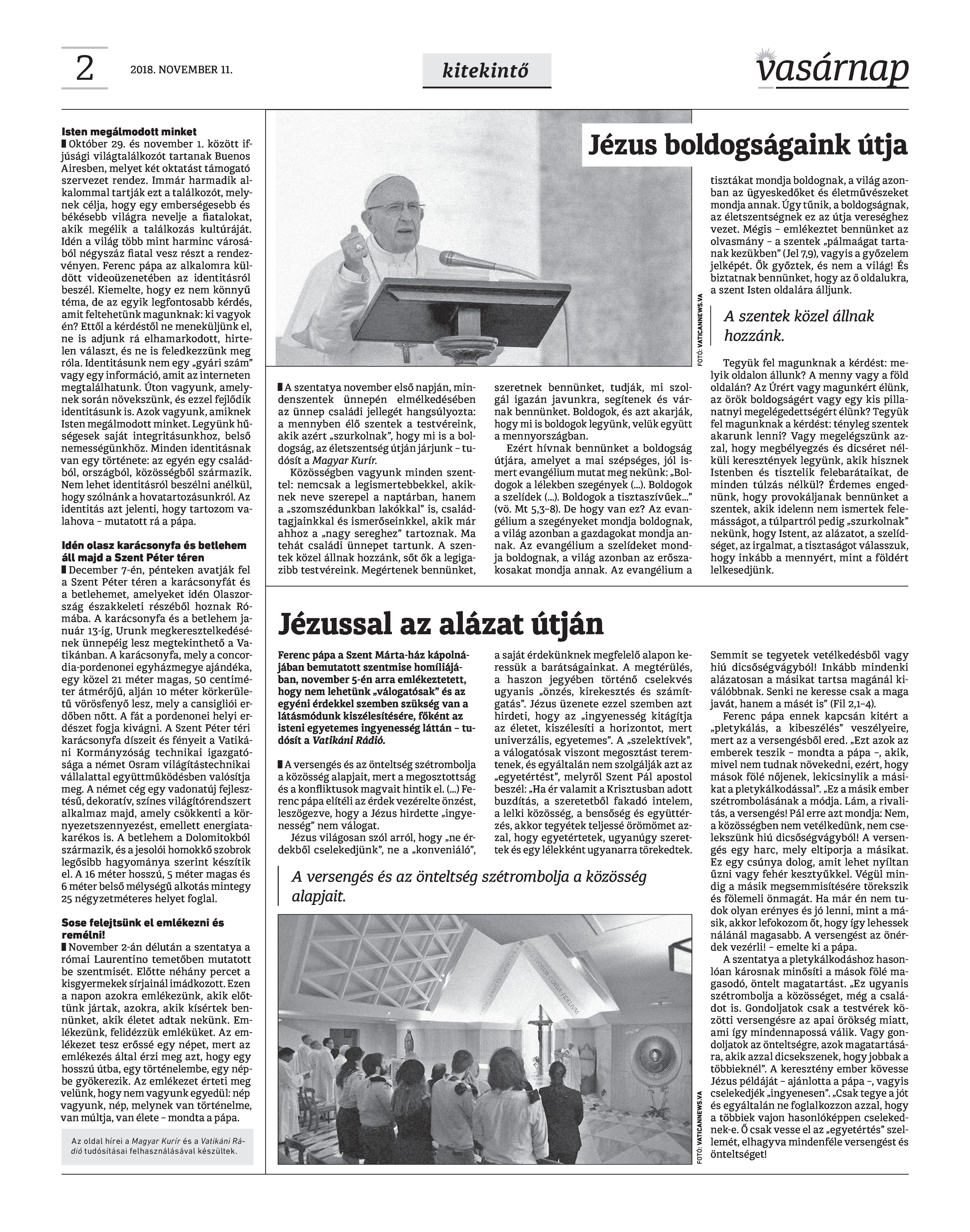 VASÁRNAP - 2018. NOVEMBER 11. A Vasárnap Katolikus Hetilap 2018. november 11. / XXVIII. évf. / 45. számának digitális változata. 1 / 12 2 & 3 / 12 4 & 5 / 12 6 & 7 / 12 8 & 9 / 12 10 & 11 / 12 12 / 12