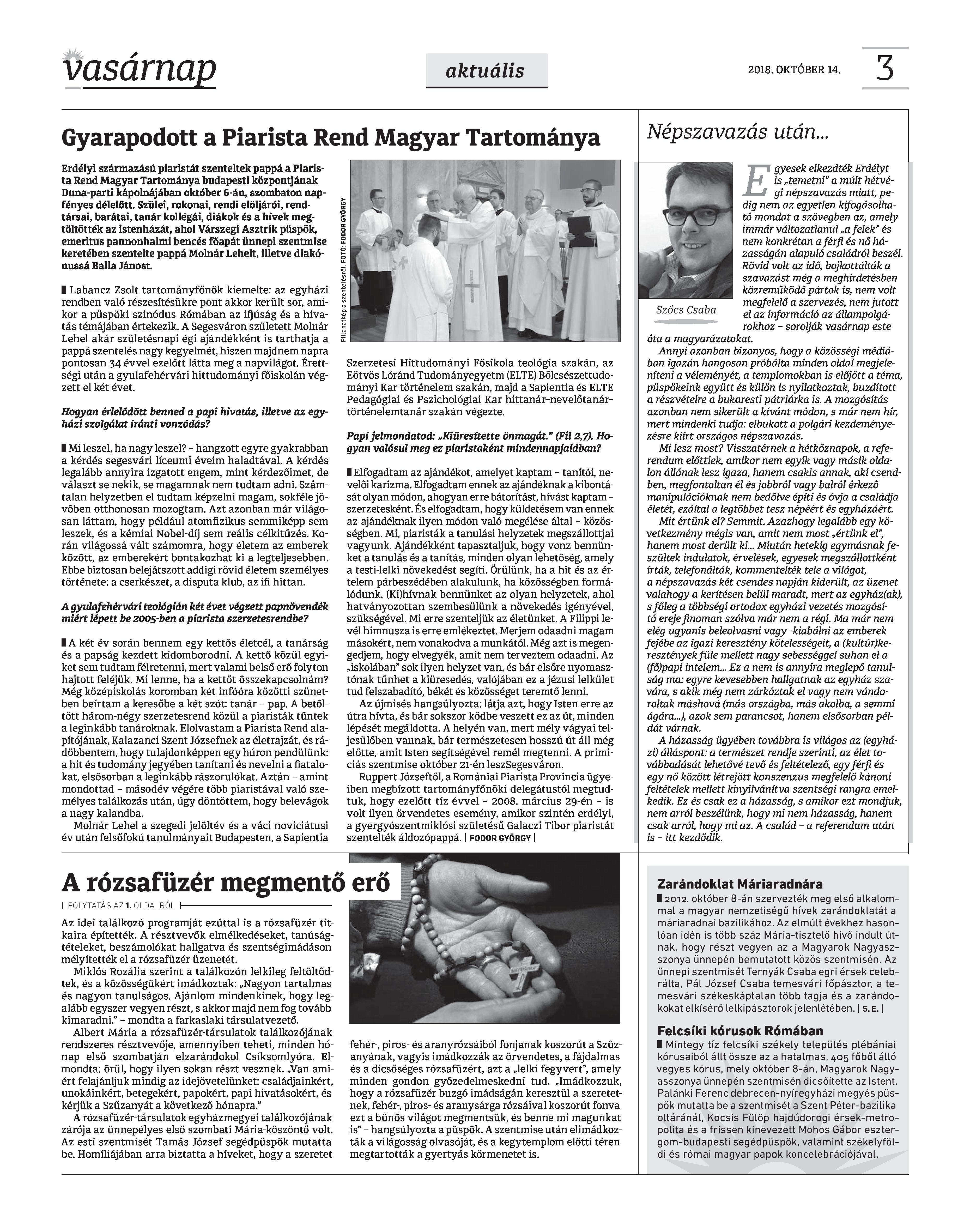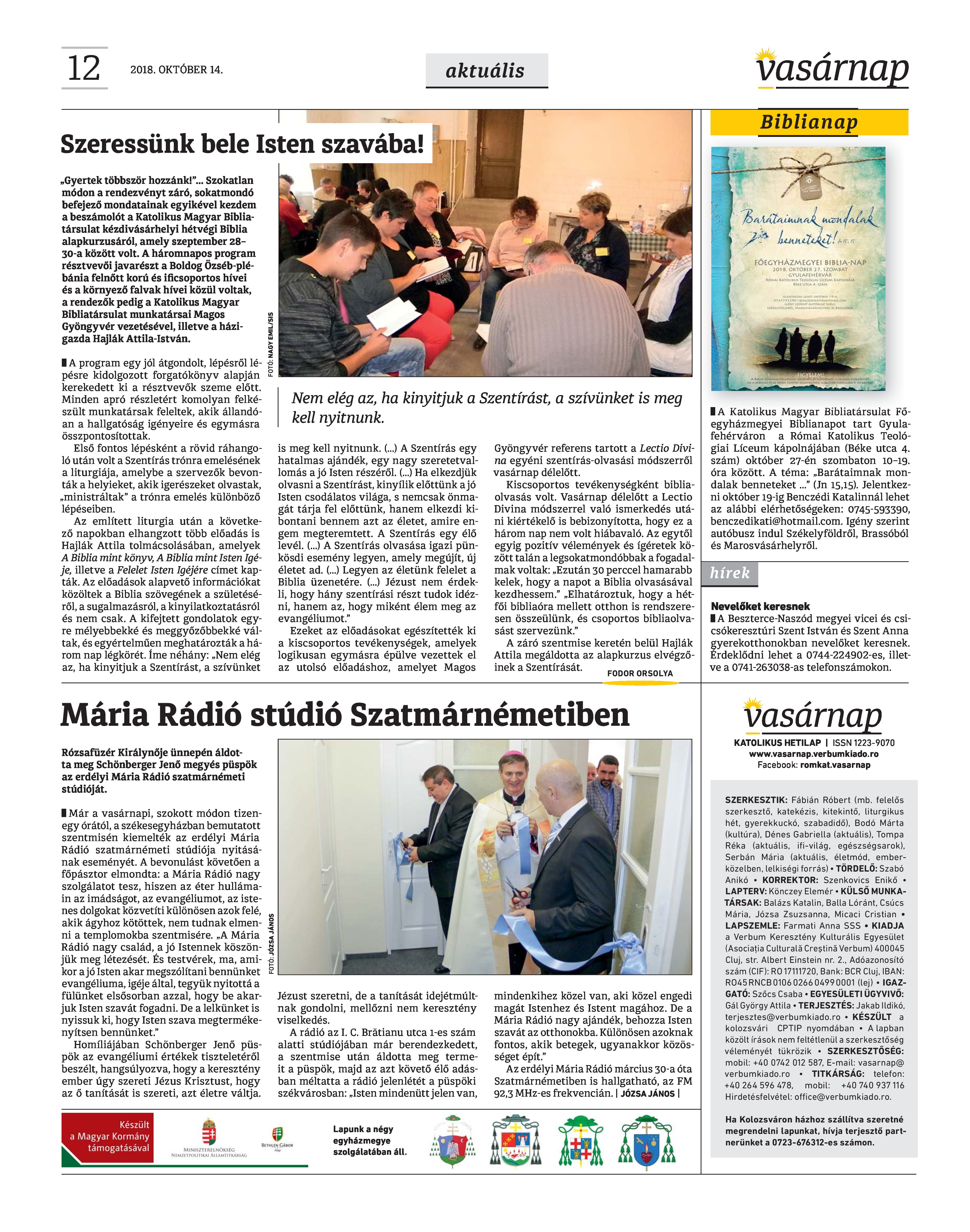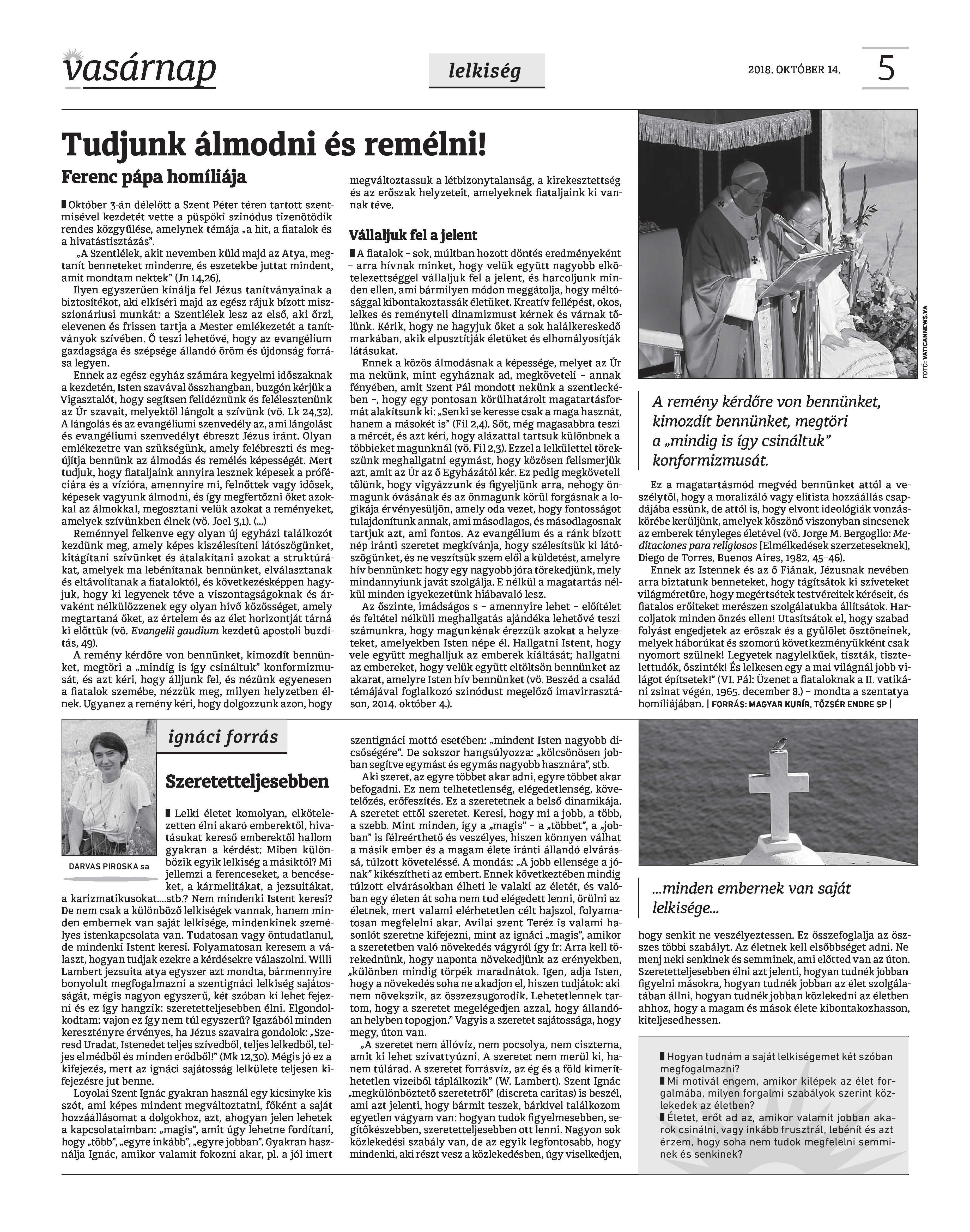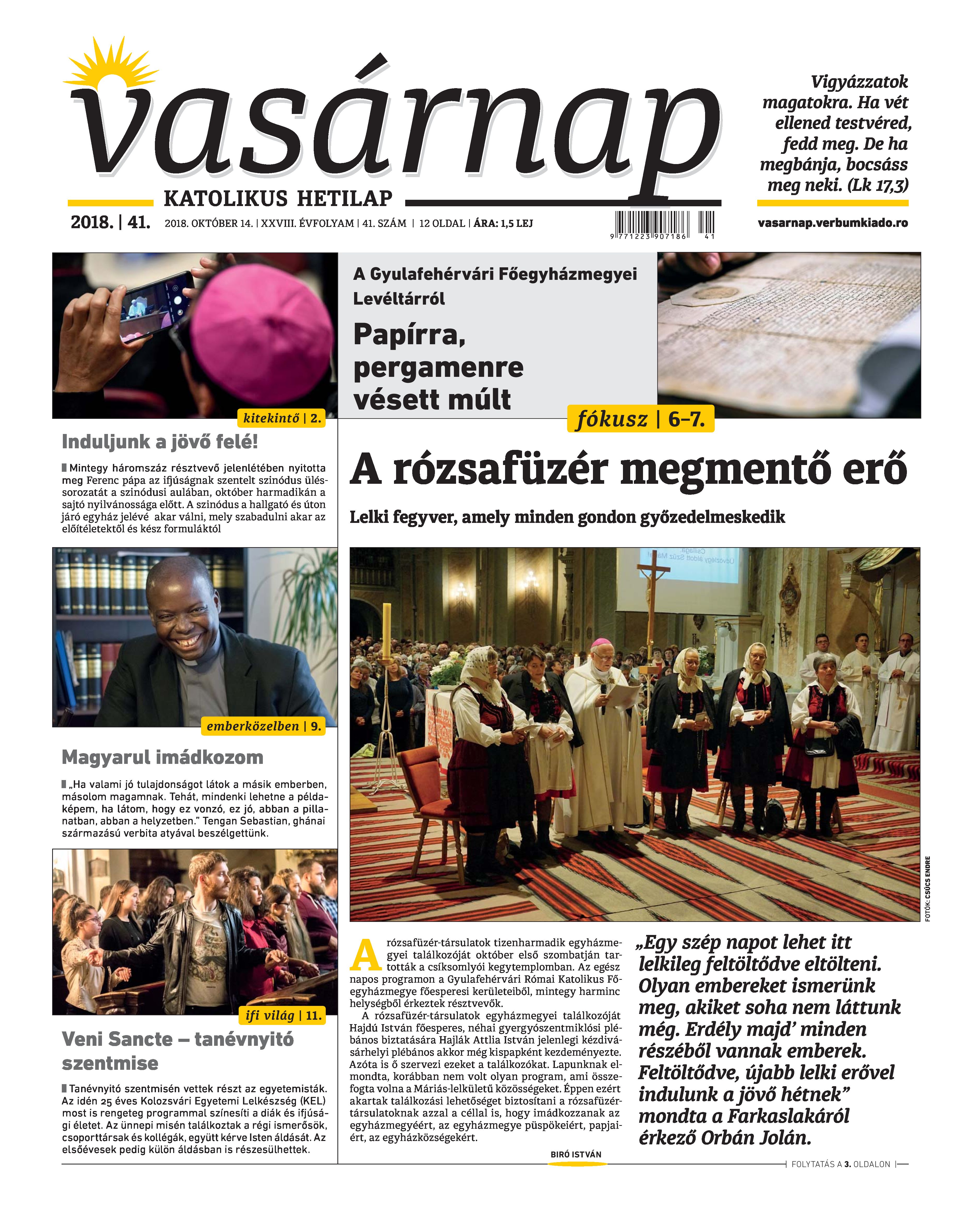 VASÁRNAP - 2018. OKTÓBER 14. A Vasárnap Katolikus Hetilap 2018. október 14. / XXVIII. évf. / 41. számának digitális változata. 1 / 12 2 & 3 / 12 4 & 5 / 12 6 & 7 / 12 8 & 9 / 12 10 & 11 / 12 12 / 12