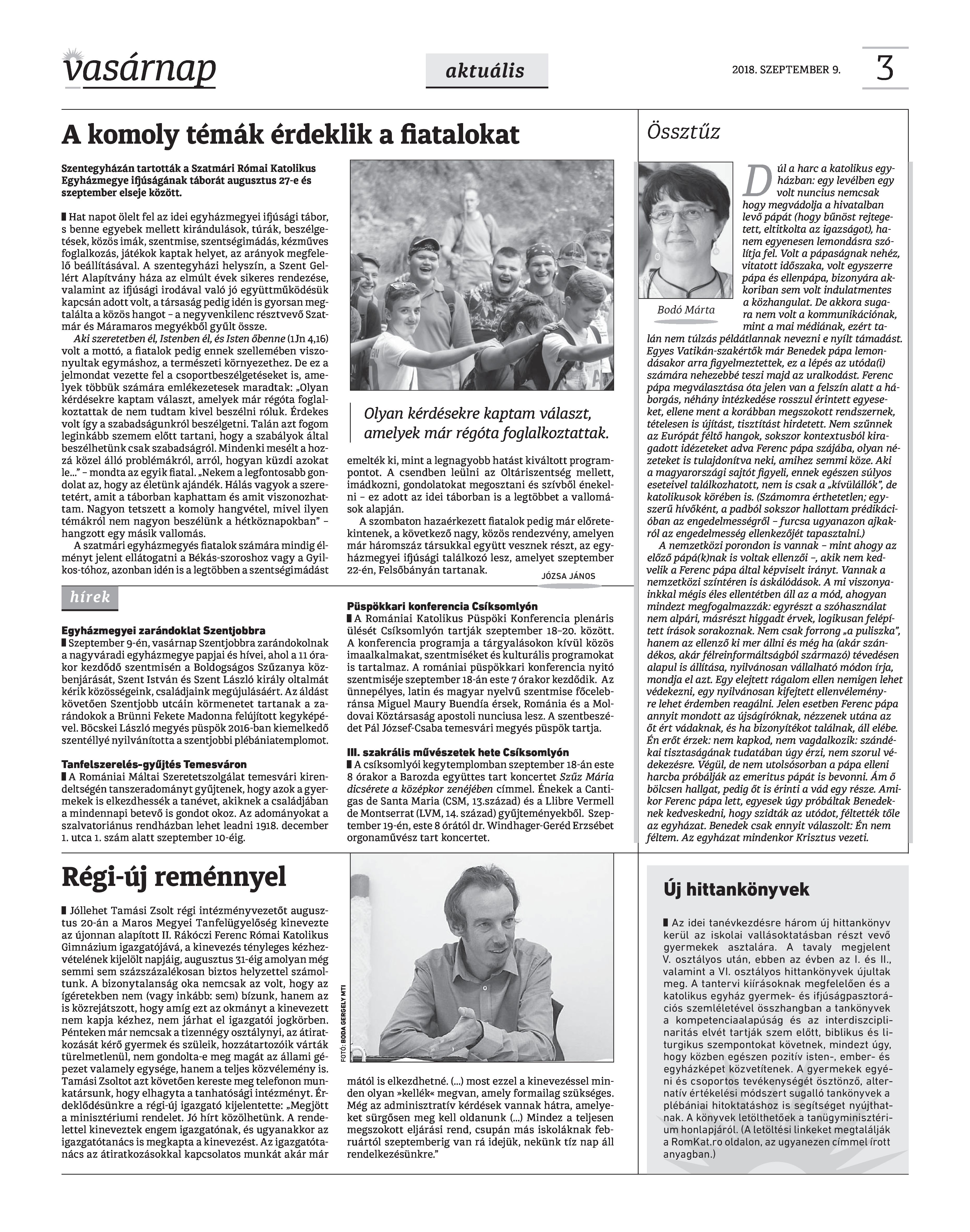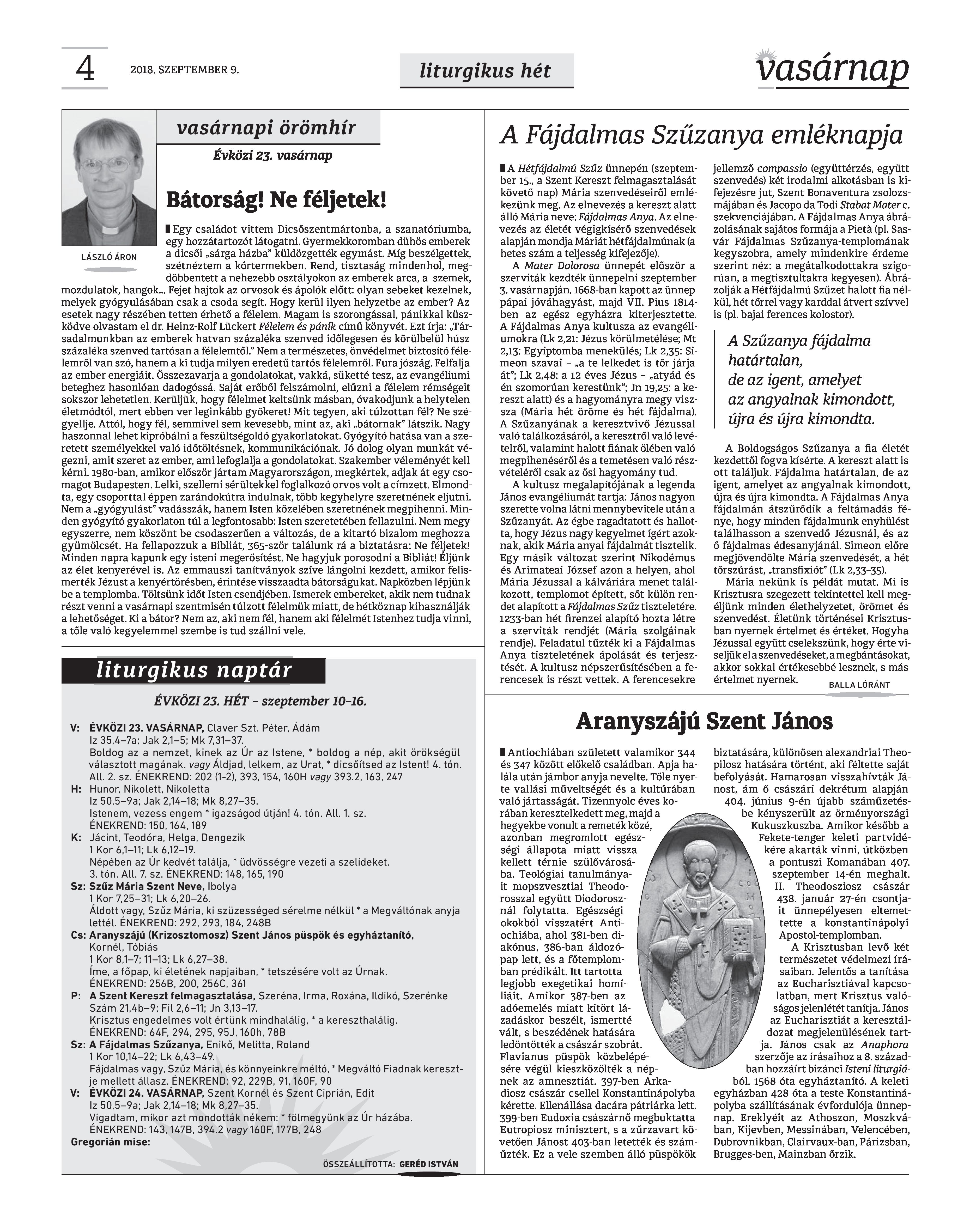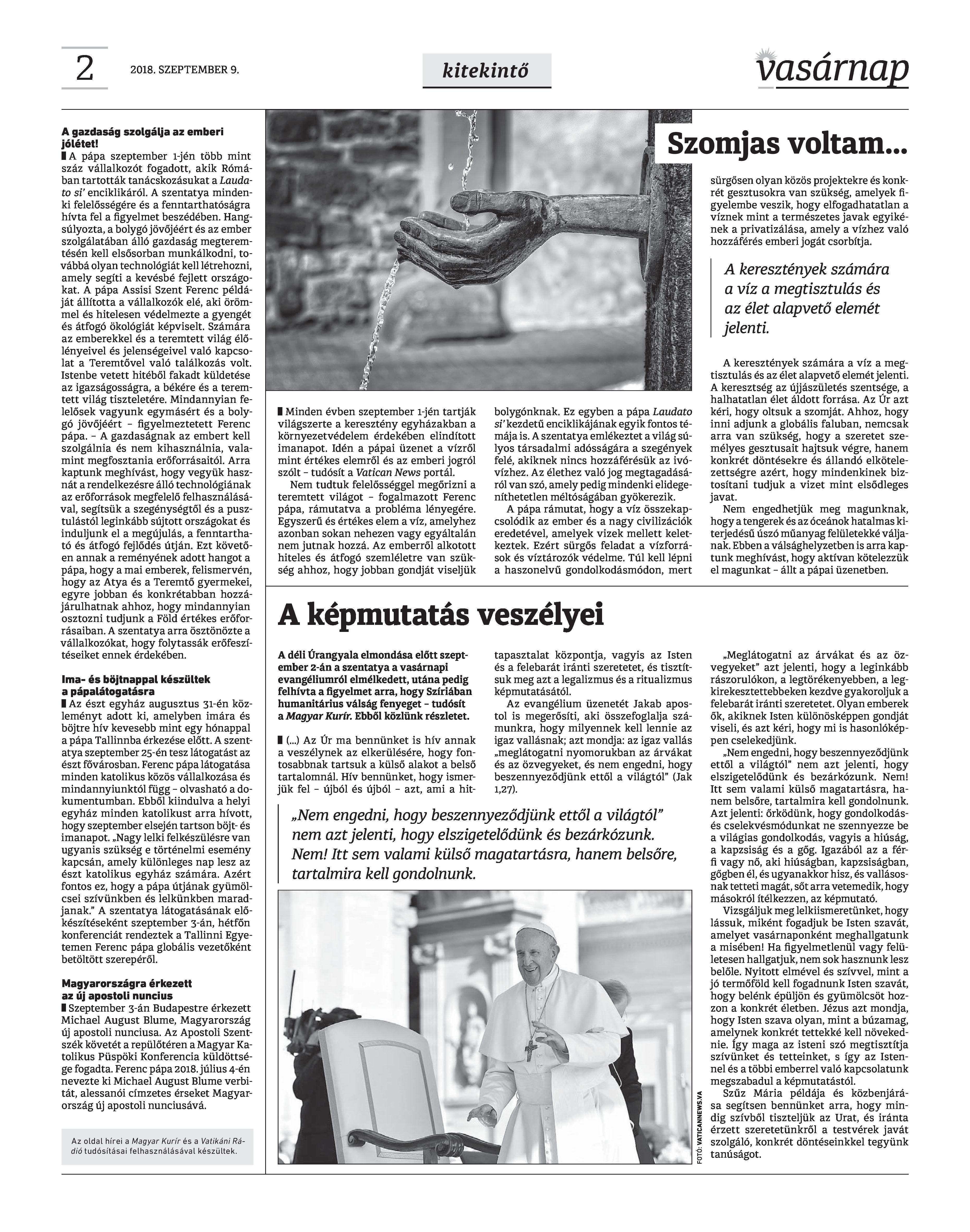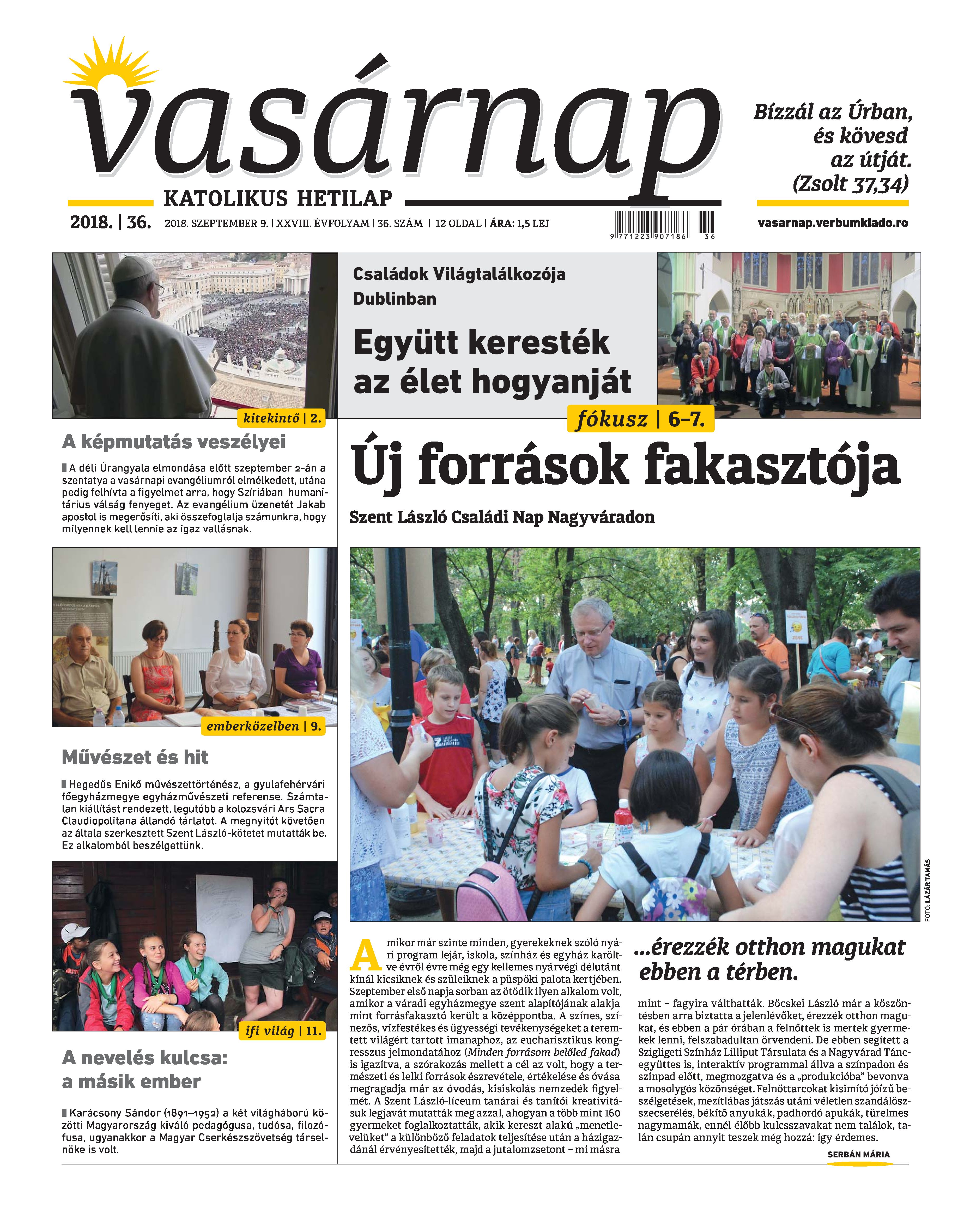 VASÁRNAP - 2018. SZEPTEMBER 9. A Vasárnap Katolikus Hetilap 2018. szeptember 9. / XXVIII. évf. / 36. számának digitális változata. 1 / 12 2 & 3 / 12 4 & 5 / 12 6 & 7 / 12 8 & 9 / 12 10 & 11 / 12 12 / 12