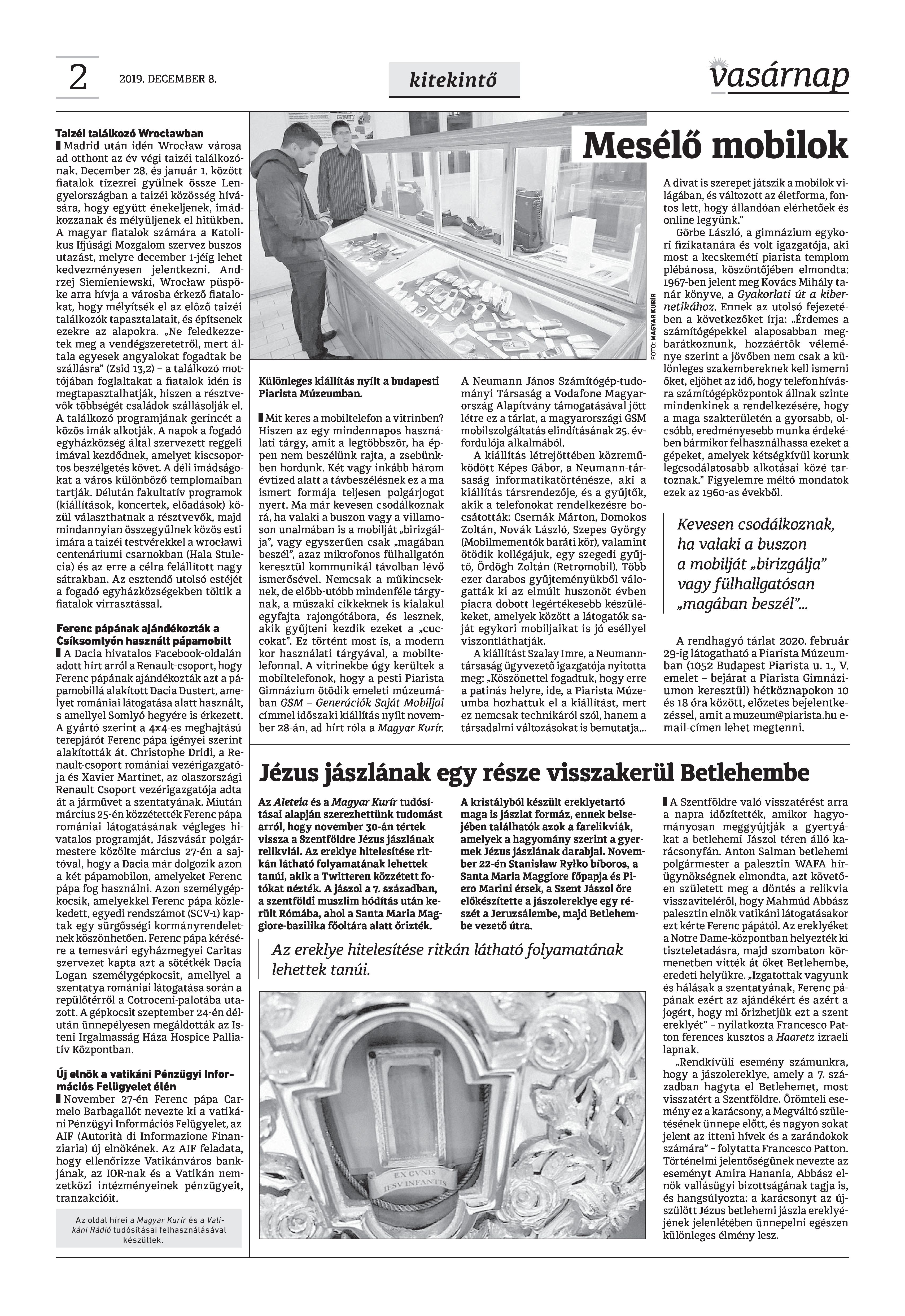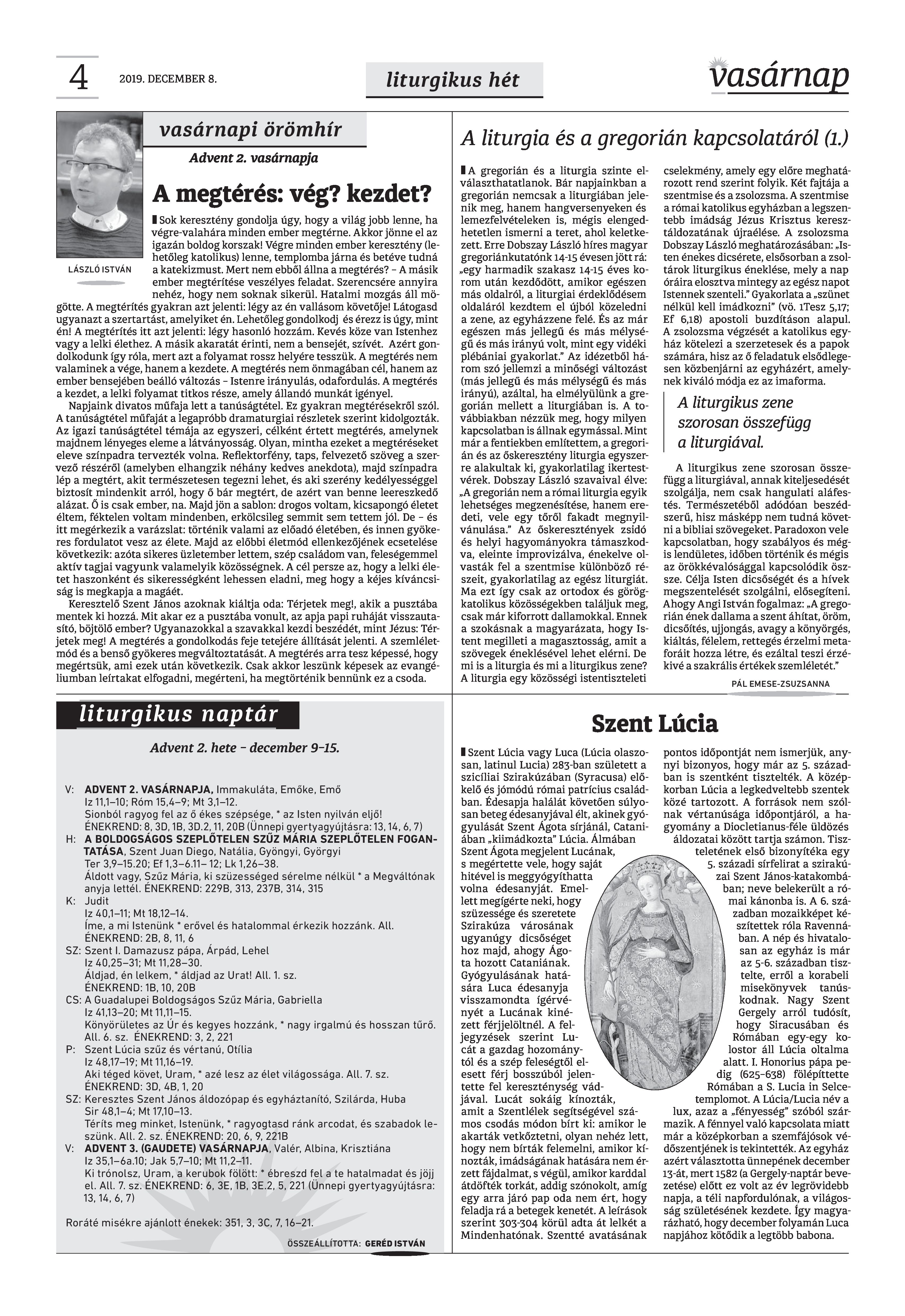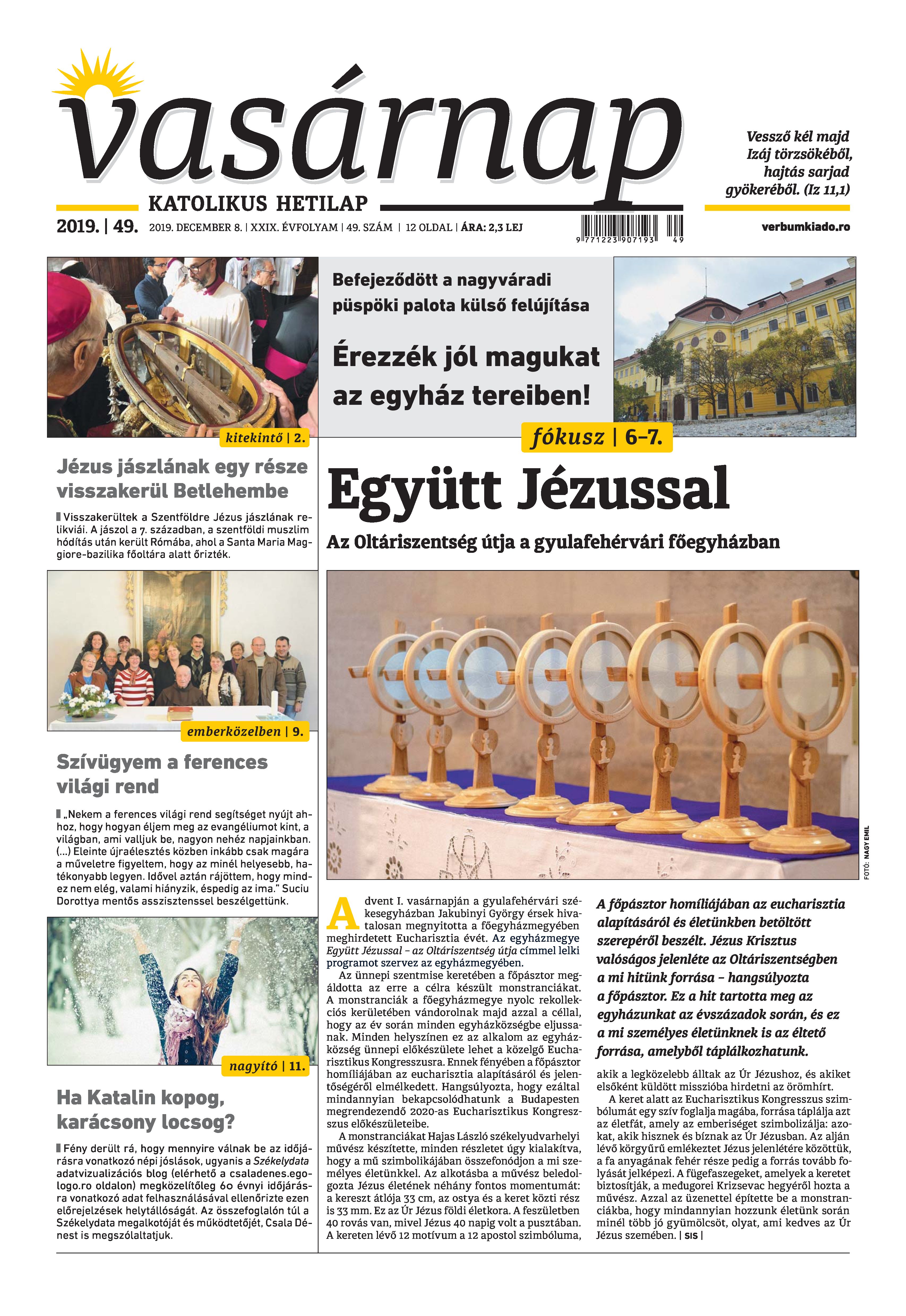 VASÁRNAP - 2019. DECEMBER 8. A Vasárnap Katolikus Hetilap 2019. december 8.. / XXIX évf. / 49. számának digitális változata. 1 / 12 2 & 3 / 12 4 & 5 / 12 6 & 7 / 12 8 & 9 / 12 10 & 11 / 12 12 / 12