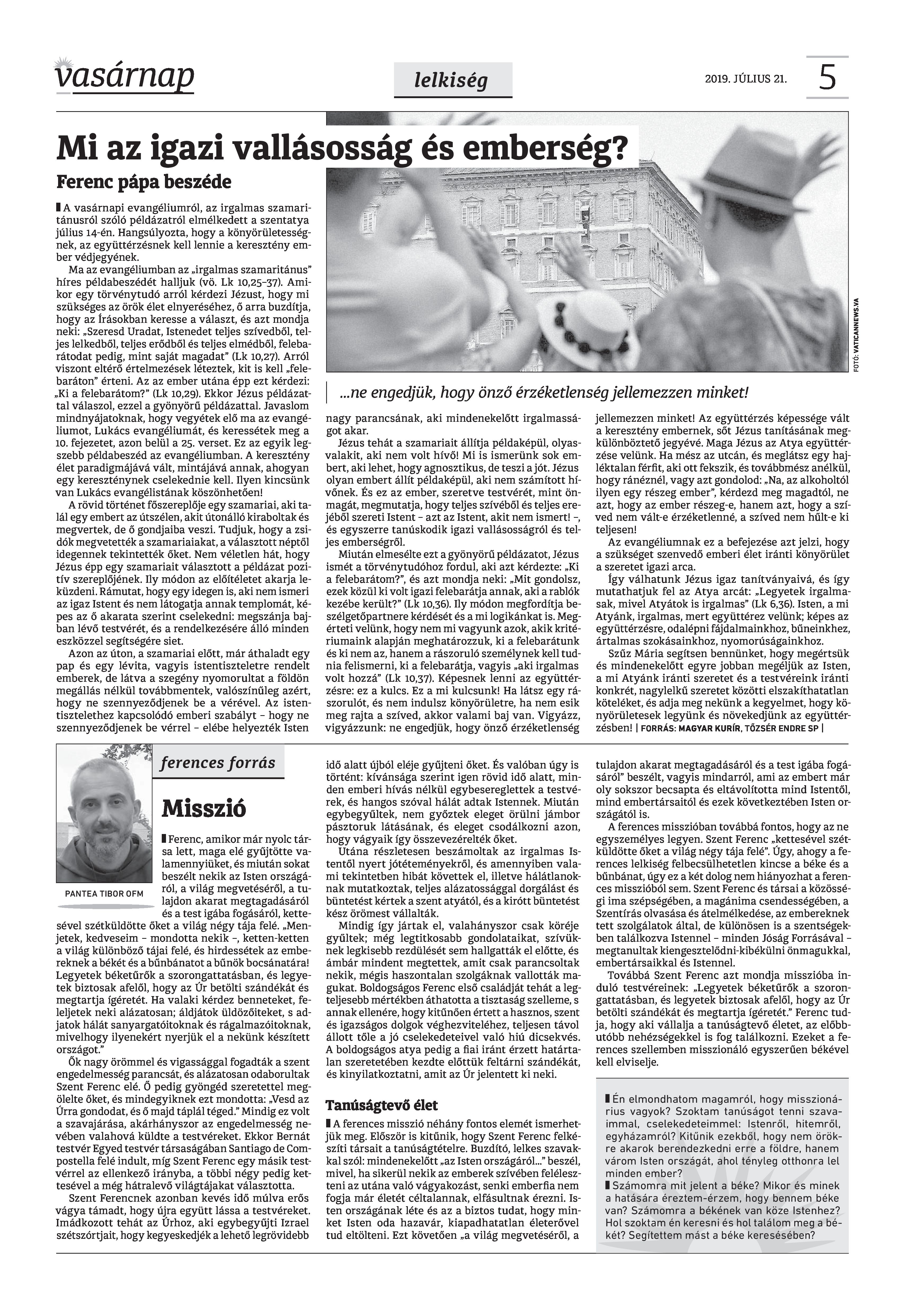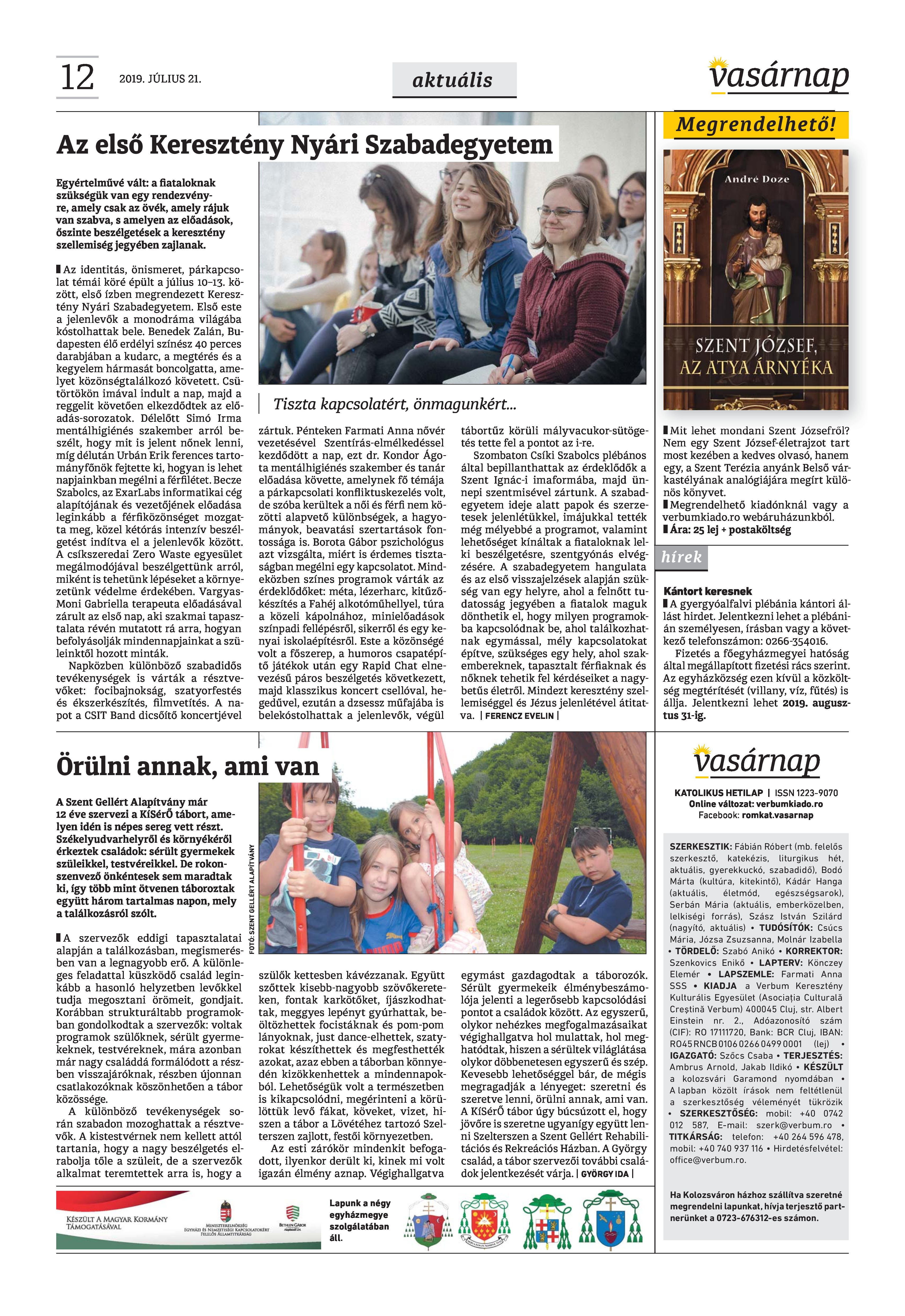 Vasárnap Katolikus Hetilap 2019. július 21.. / XXIX évf. / 29. számának digitális változata.