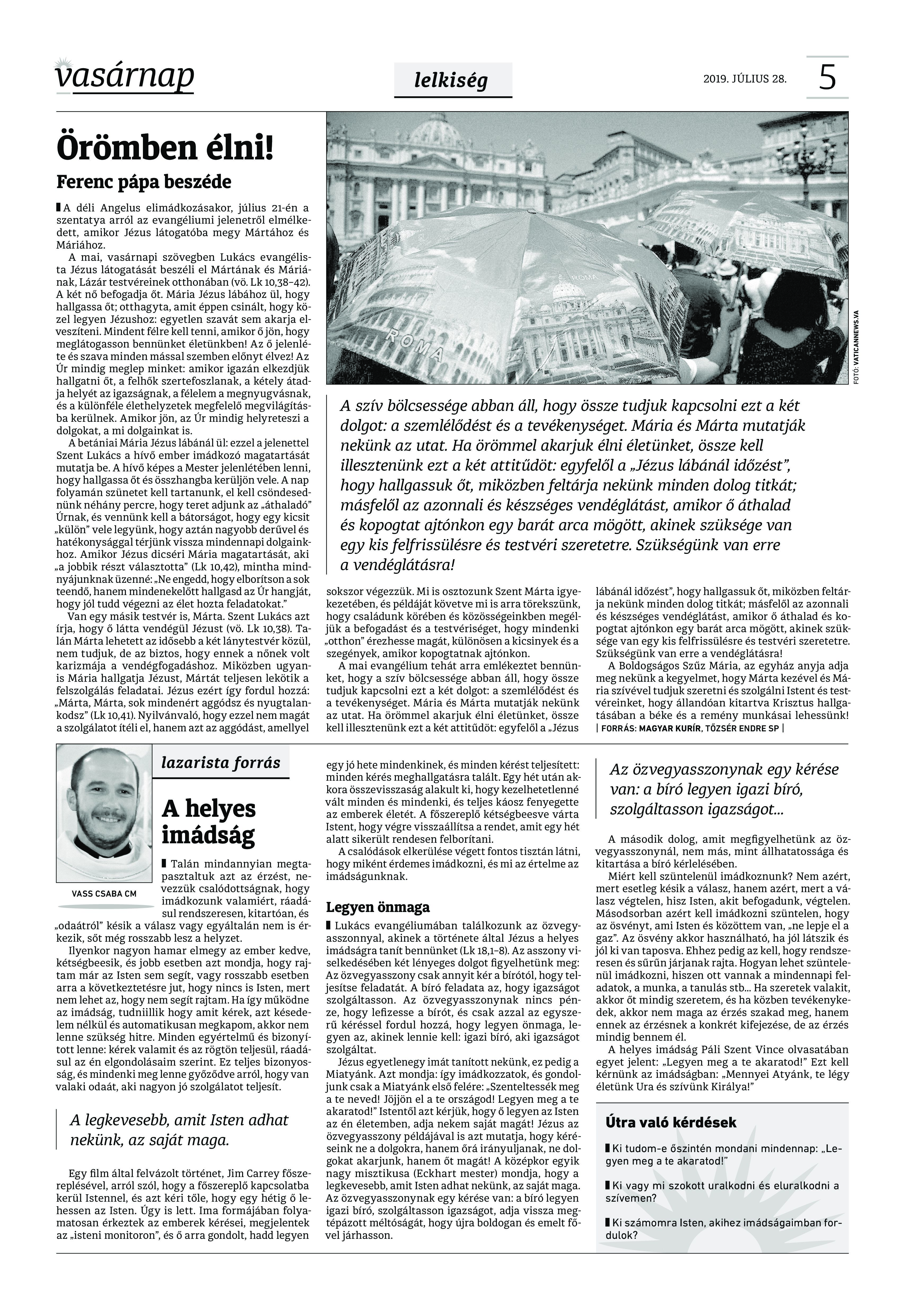 VASÁRNAP - 2019. JÚLIUS 28. A Vasárnap Katolikus Hetilap 2019. július 28.. / XXIX évf. / 30. számának digitális változata. 1 / 12 2 & 3 / 12 4 & 5 / 12 6 & 7 / 12 8 & 9 / 12 10 & 11 / 12 12 / 12