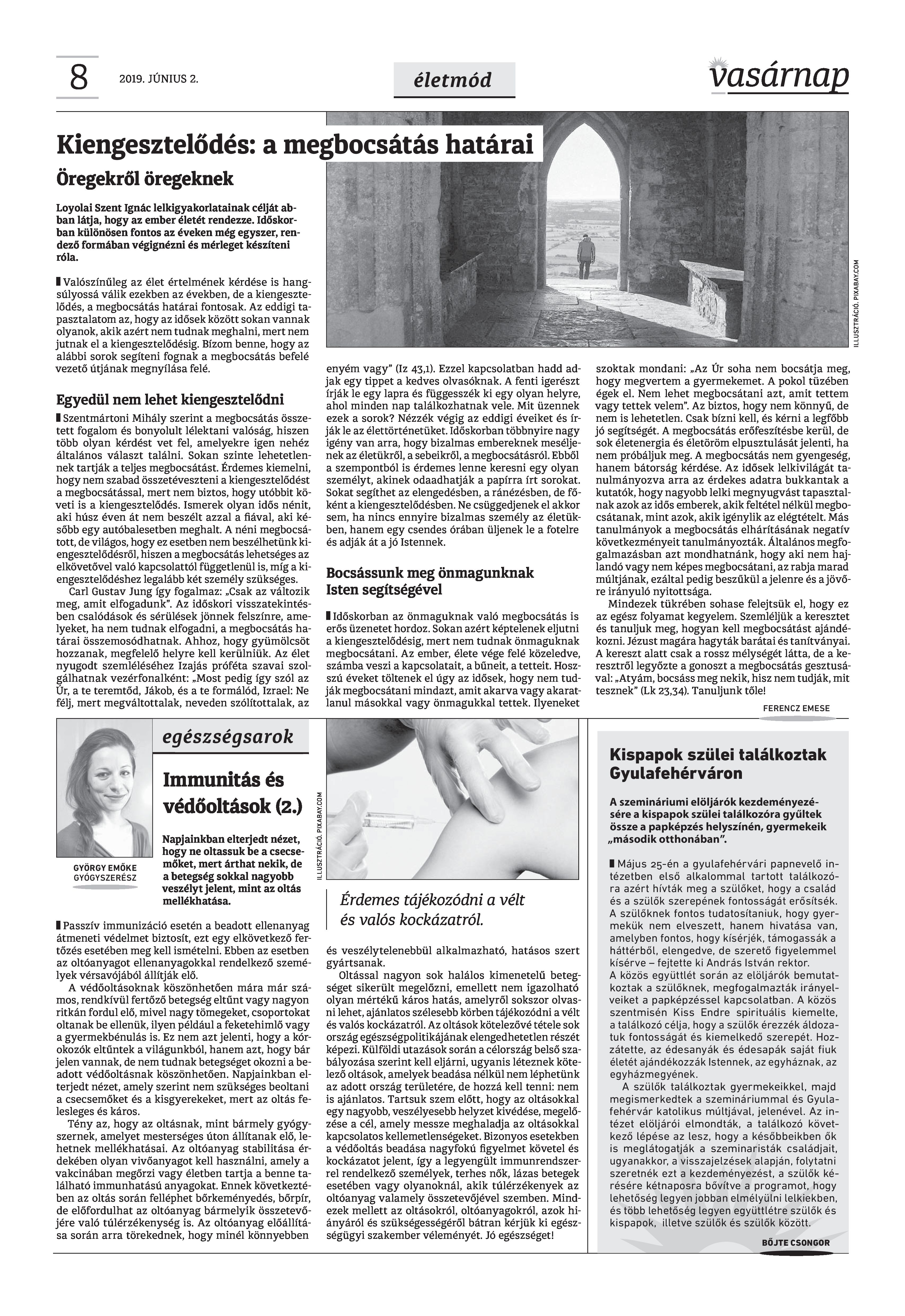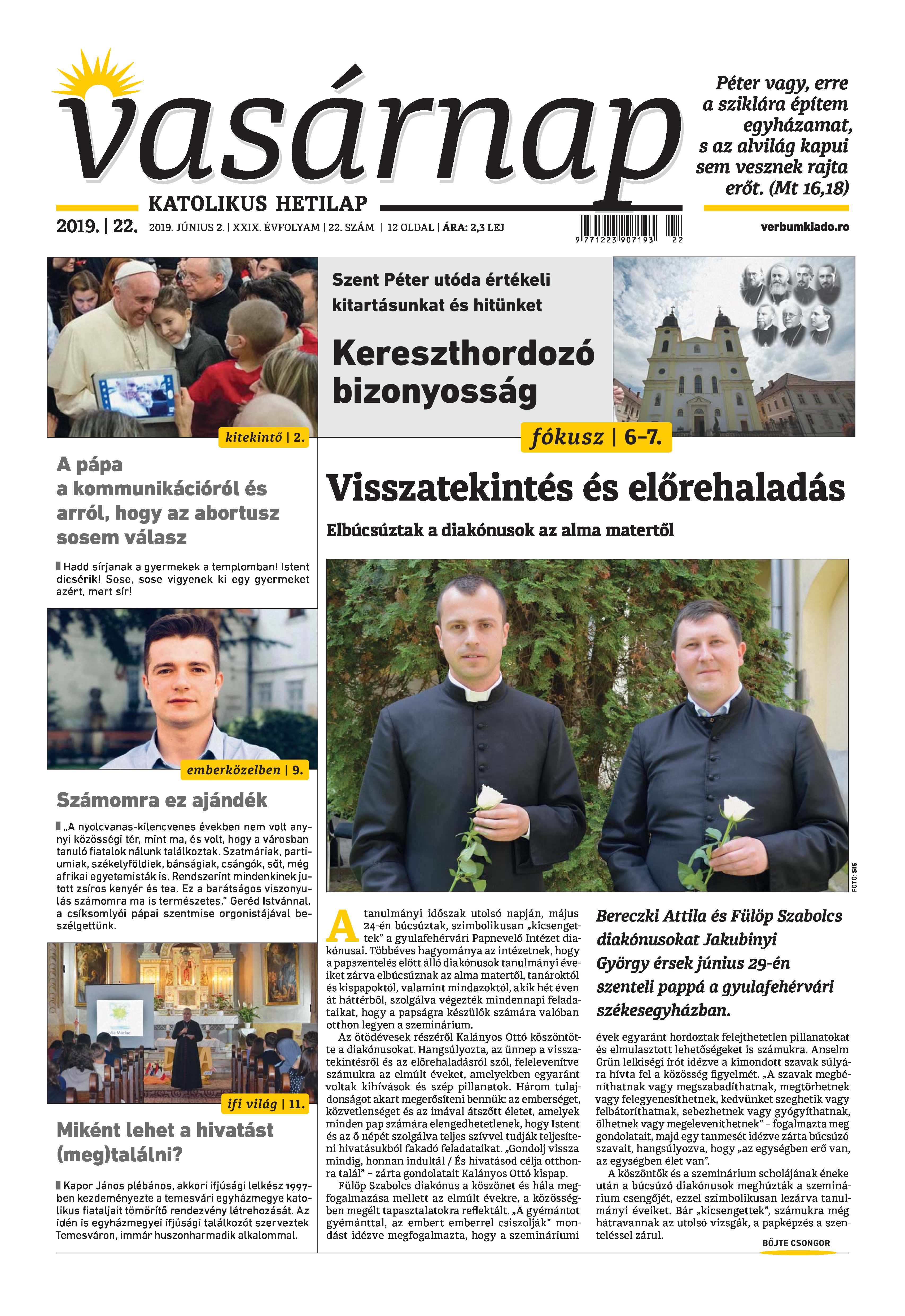 Vasárnap Katolikus Hetilap 2019. június 2. / XXIX évf. / 22. számának digitális változata.