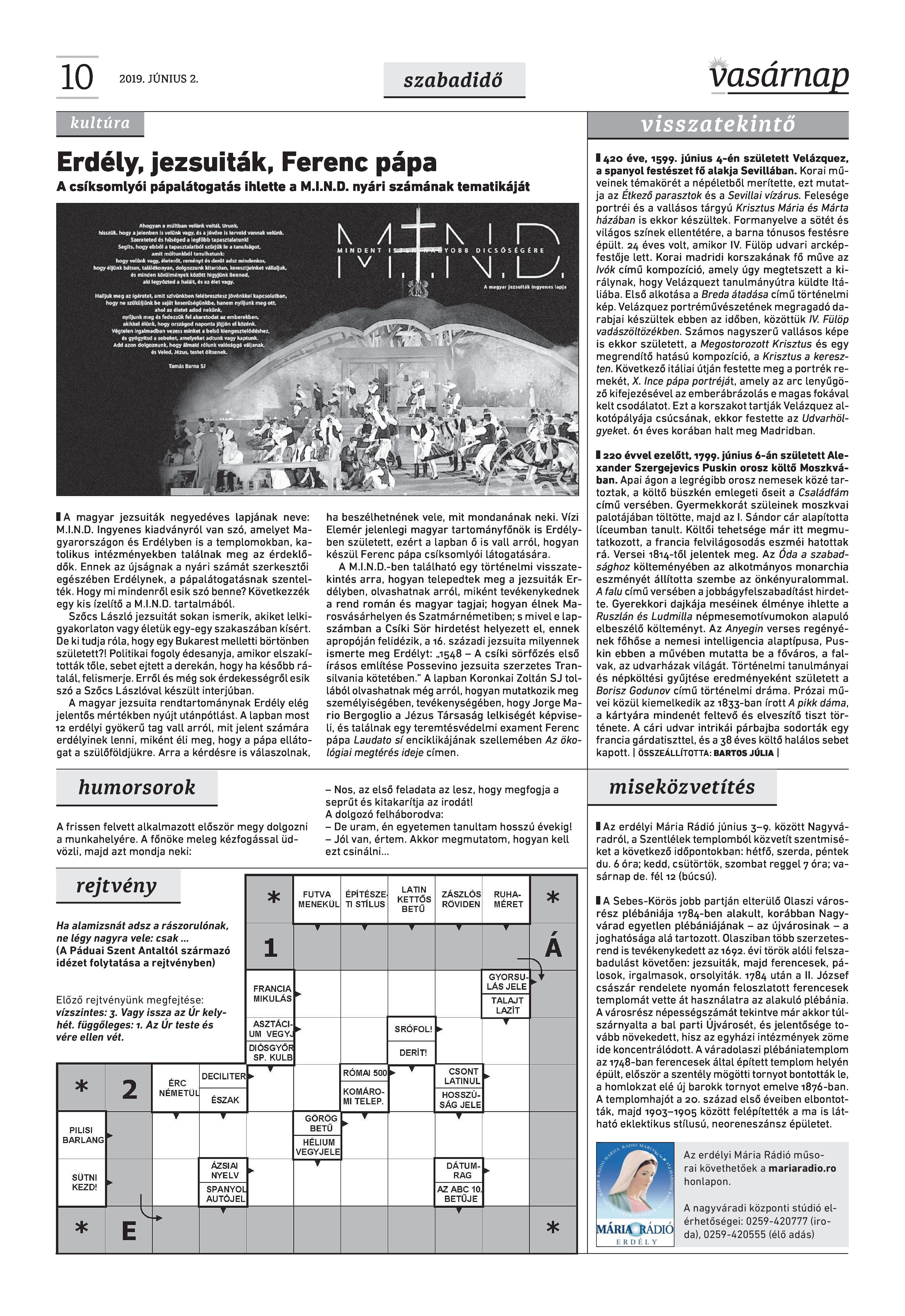 VASÁRNAP - 2019. JÚNIUS 2.