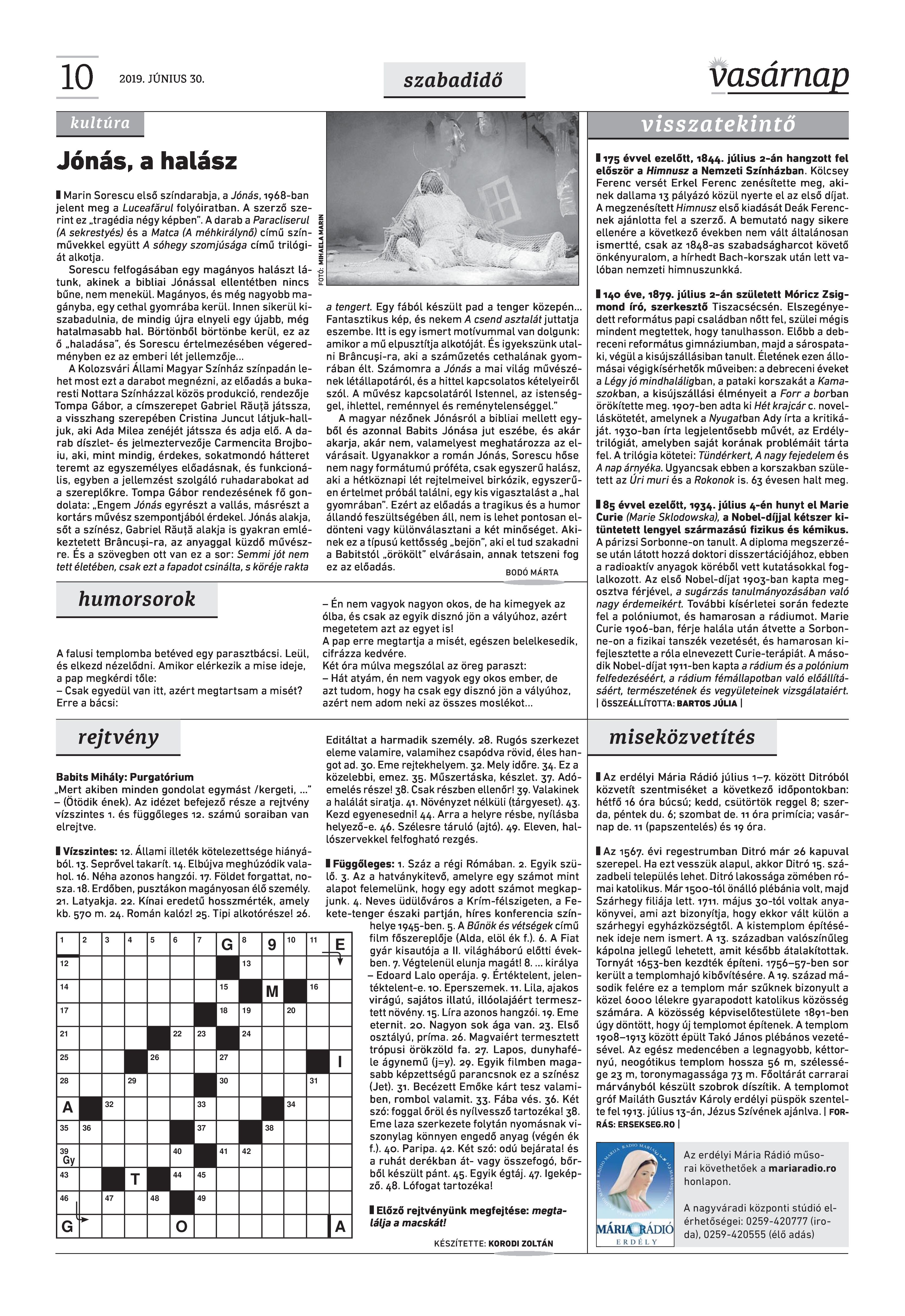 VASÁRNAP - 2019. JÚNIUS 30. A Vasárnap Katolikus Hetilap 2019. június 30. / XXIX évf. / 26. számának digitális változata. 1 / 12 2 & 3 / 12 4 & 5 / 12 6 & 7 / 12 8 & 9 / 12 10 & 11 / 12 12 / 12