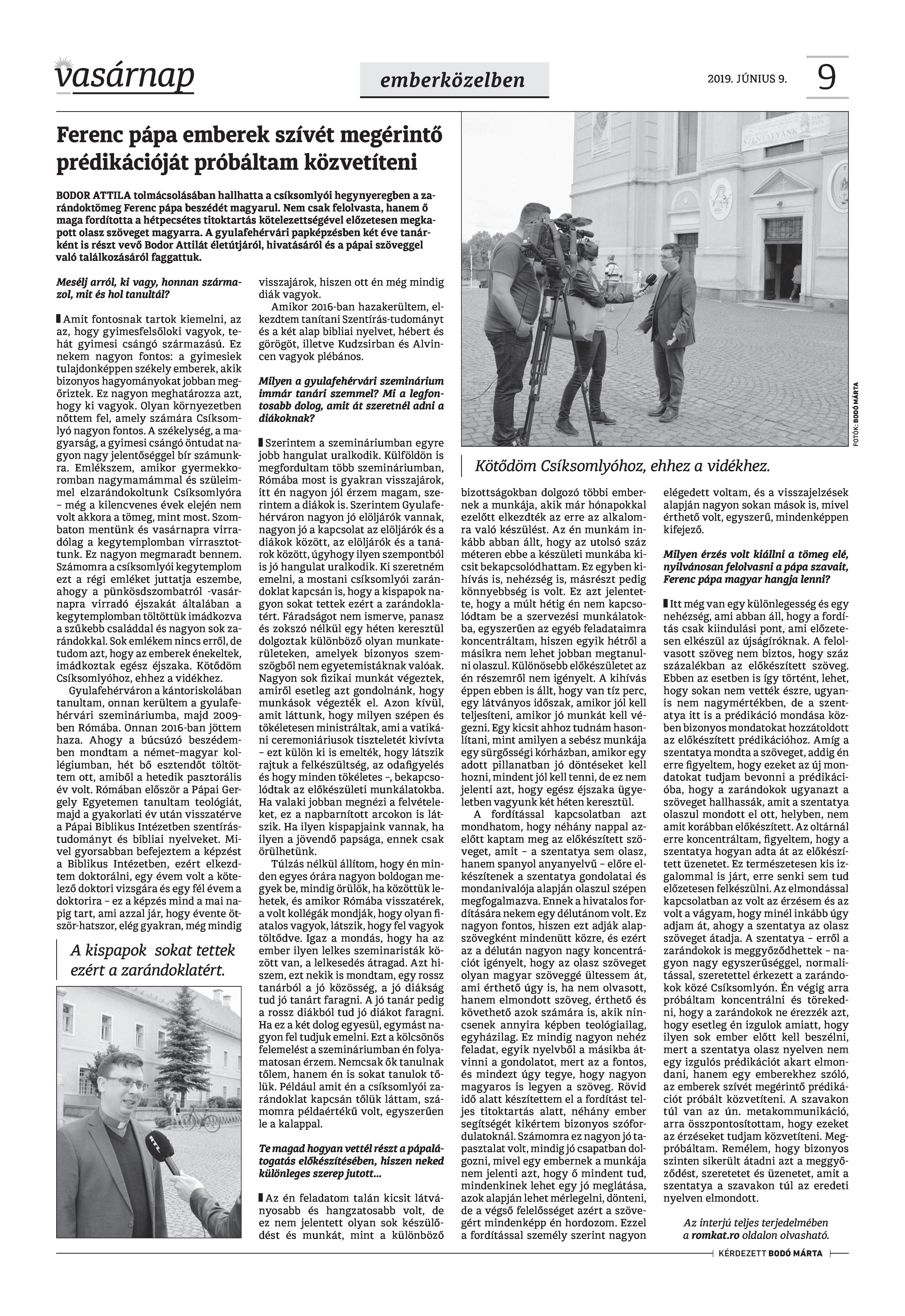 Vasárnap Katolikus Hetilap 2019. június 9. / XXIX évf. / 23. számának digitális változata.