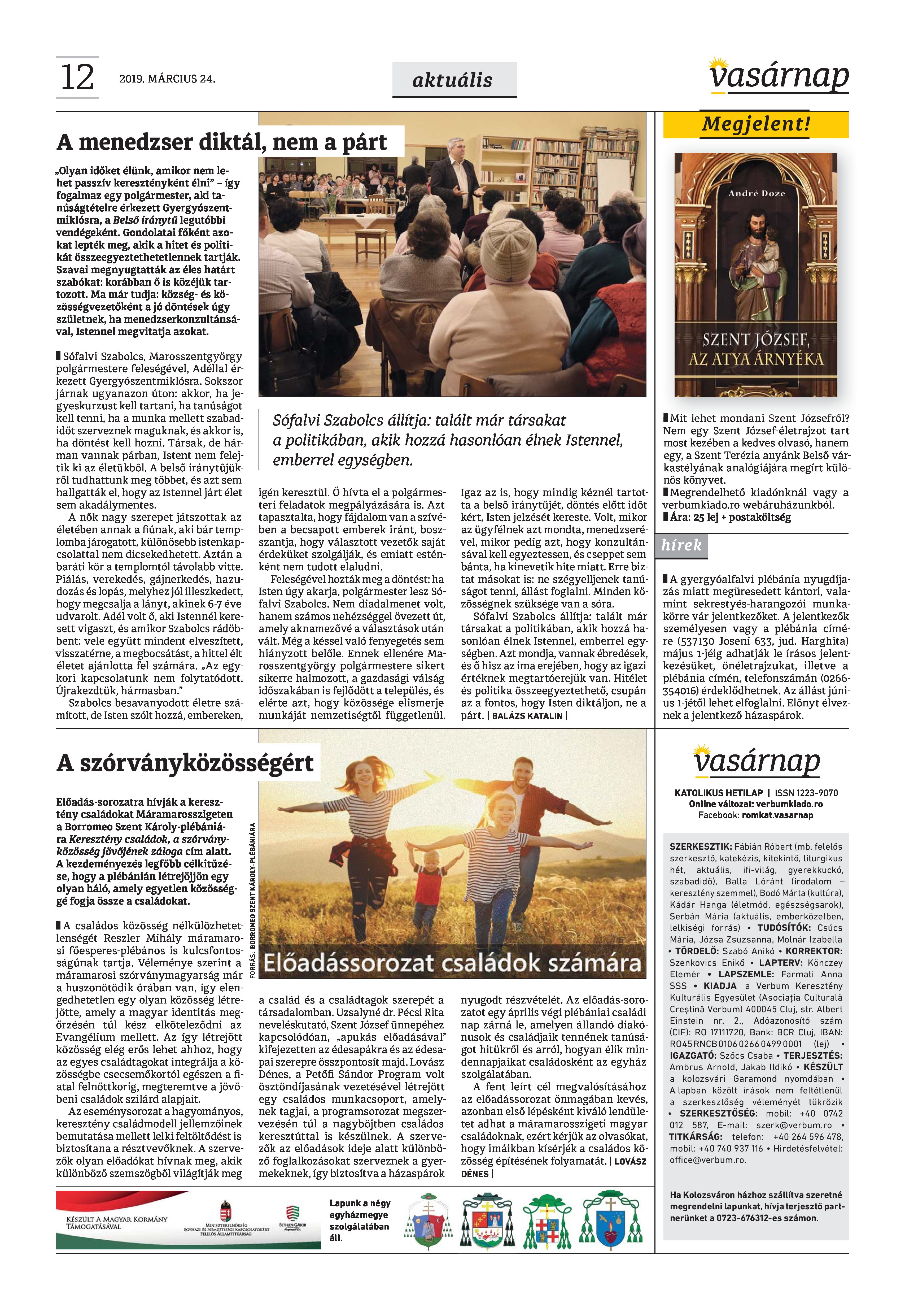 VASÁRNAP - 2019. MÁRCIUS 24. A Vasárnap Katolikus Hetilap 2019. március 24. / XXIX évf. / 12. számának digitális változata. 1 / 12 2 & 3 / 12 4 & 5 / 12 6 & 7 / 12 8 & 9 / 12 10 & 11 / 12 12 / 12