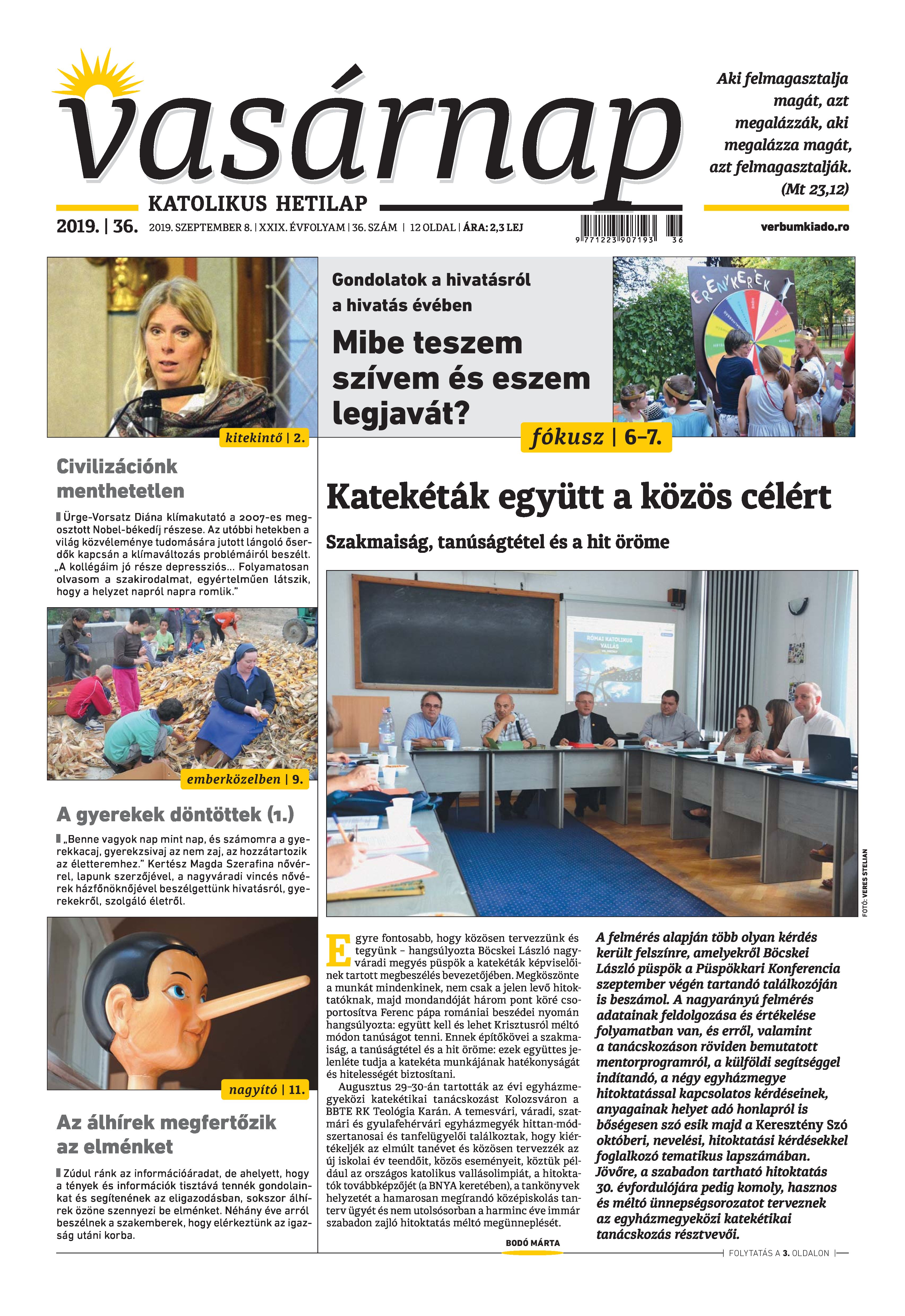 Vasárnap Katolikus Hetilap 2019. szeptember 8. / XXIX évf. / 36. számának digitális változata.