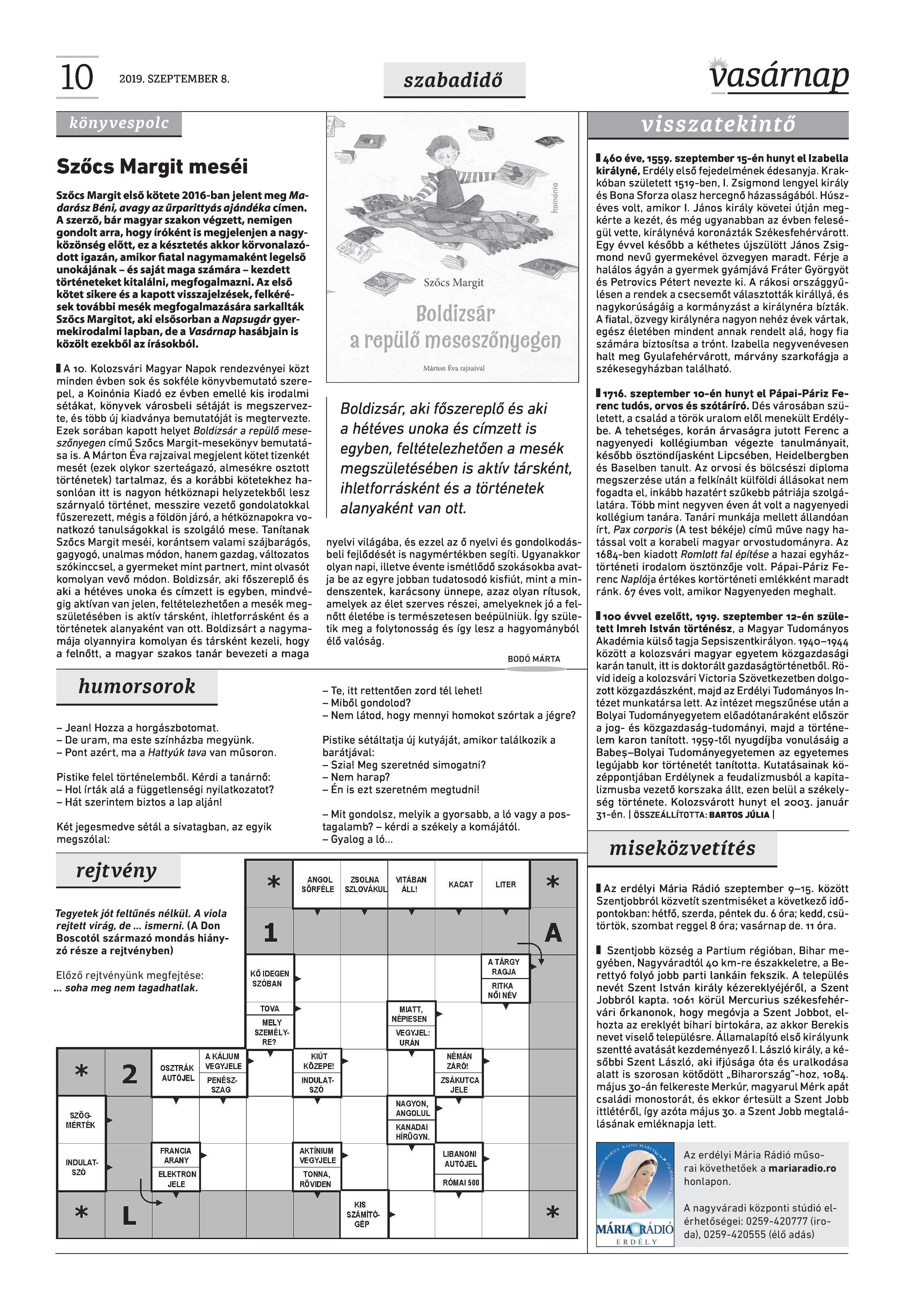 VASÁRNAP - 2019. SZEPTEMBER 8.
