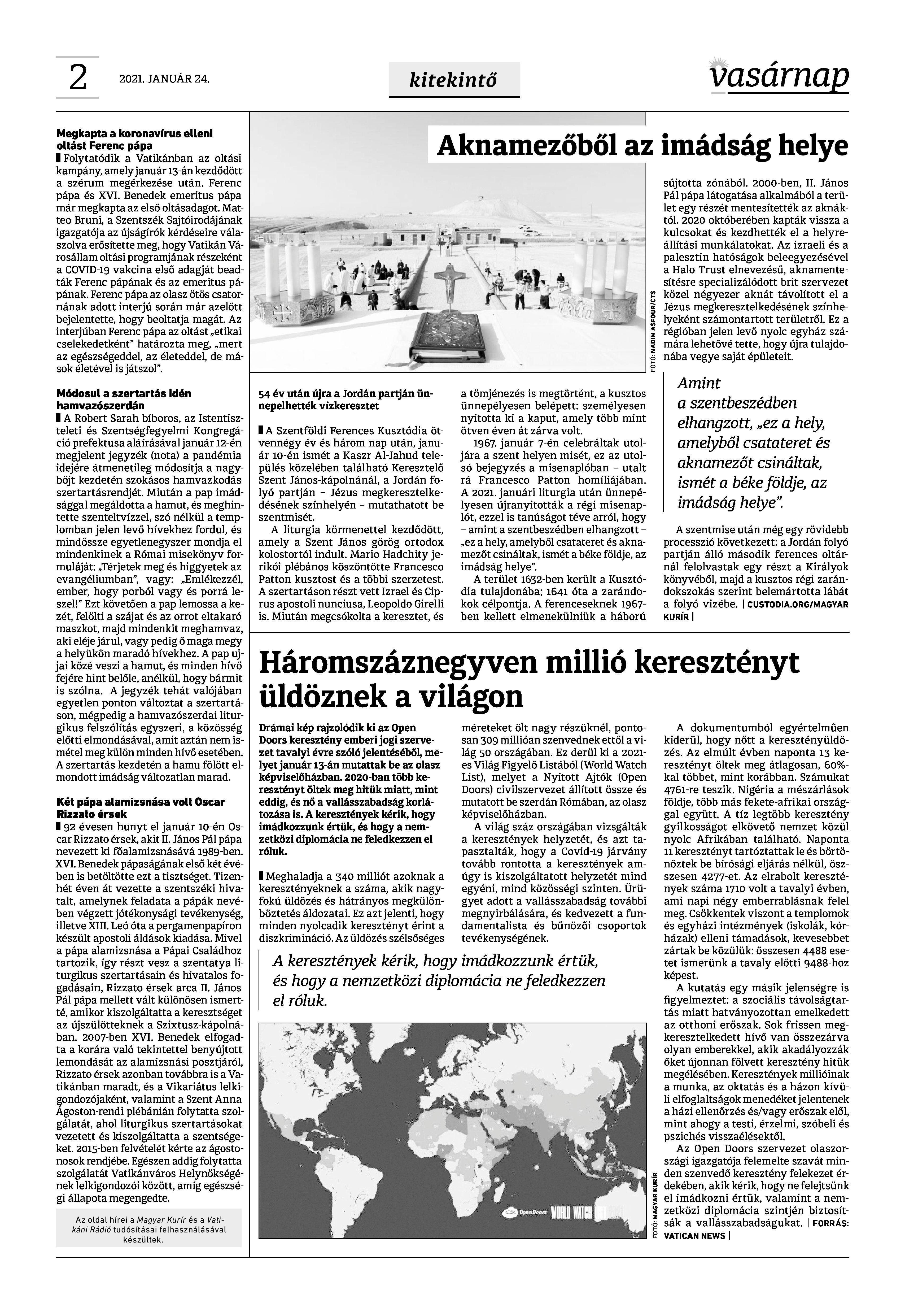 VASÁRNAP - 2021. JANUÁR 24. A Vasárnap Katolikus Hetilap 2021. január 24. / XXXI évf. / 4. számának digitális változata. 1 / 12 2 & 3 / 12 4 & 5 / 12 6 & 7 / 12 8 & 9 / 12 10 & 11 / 12 12 / 12