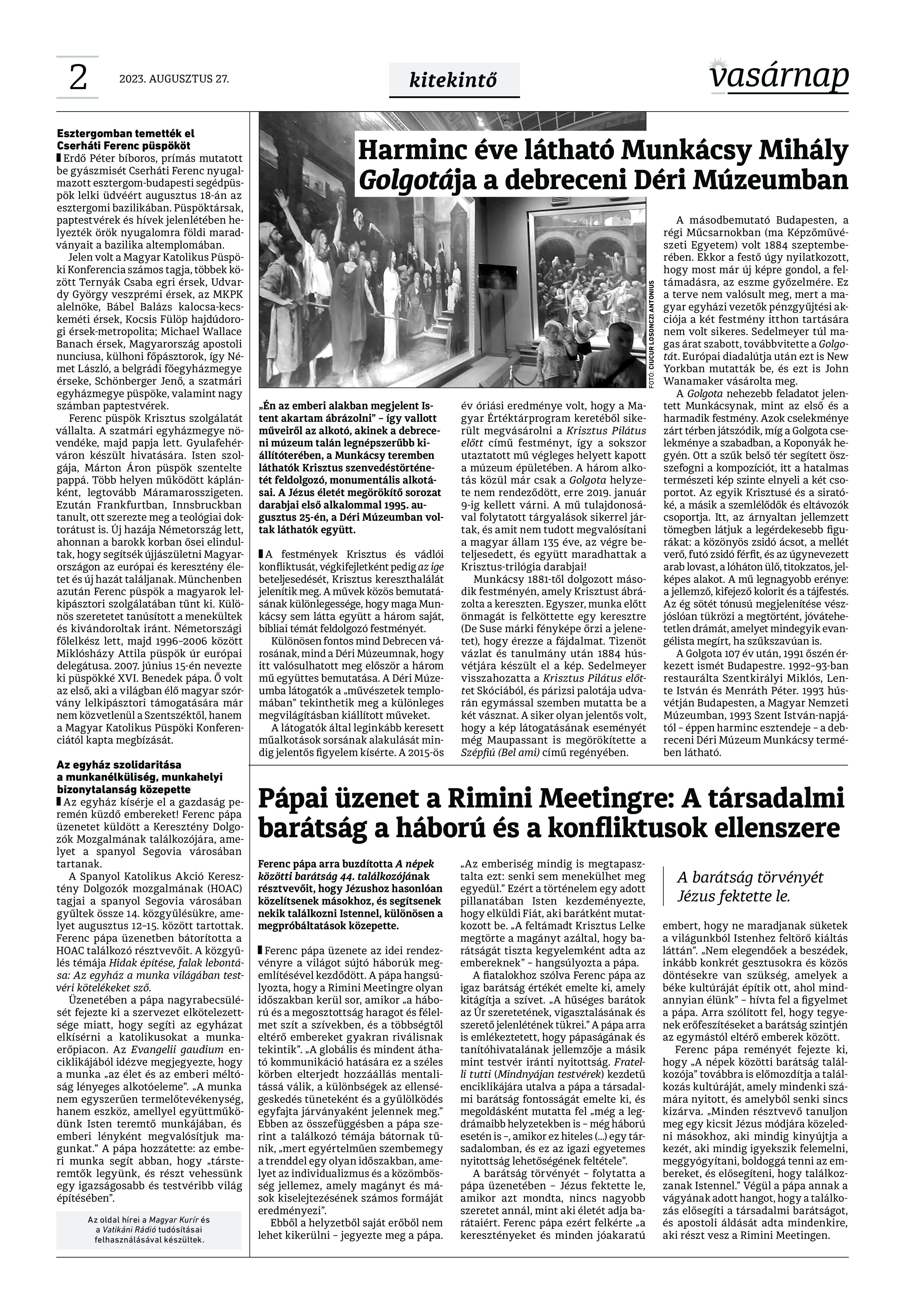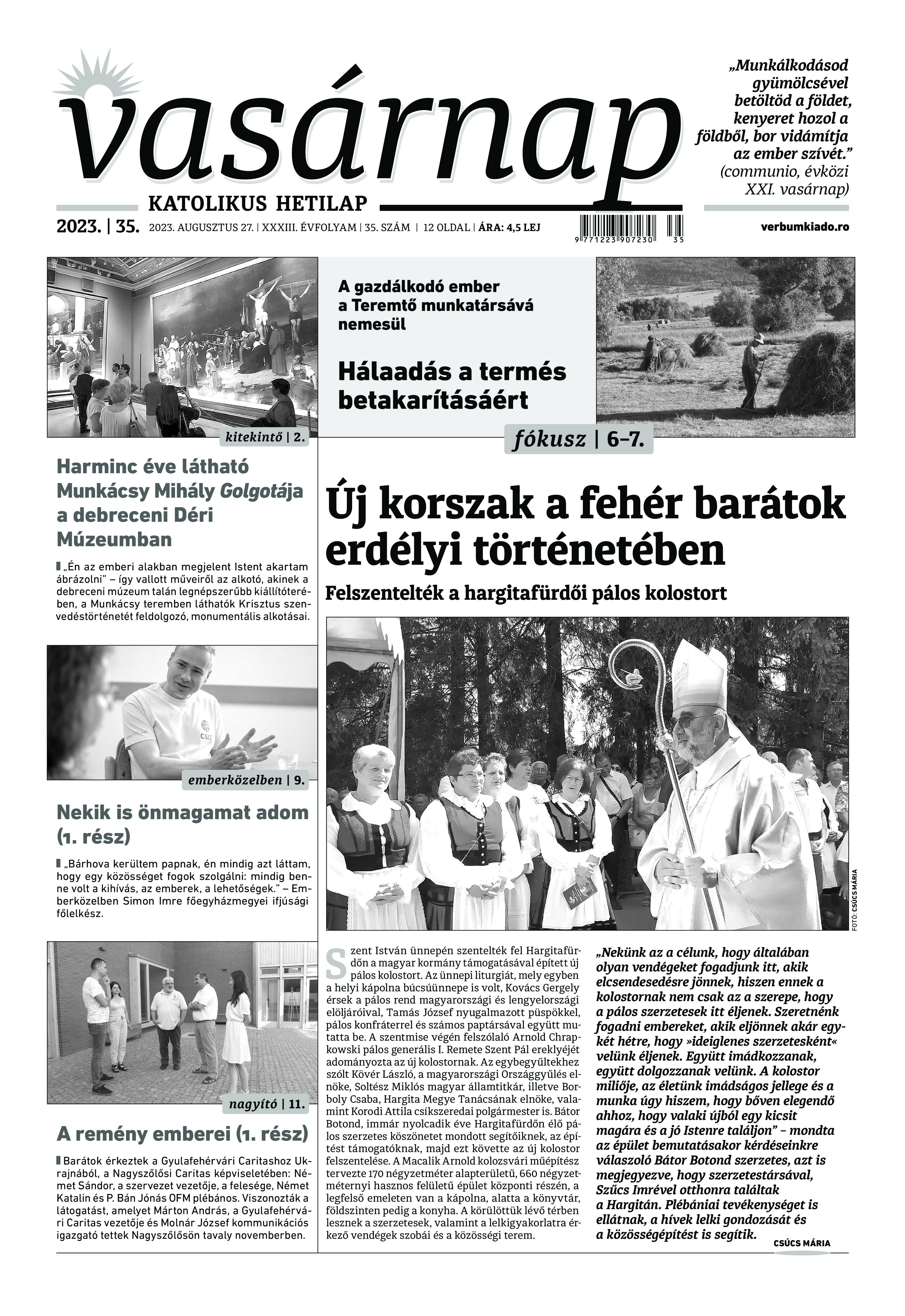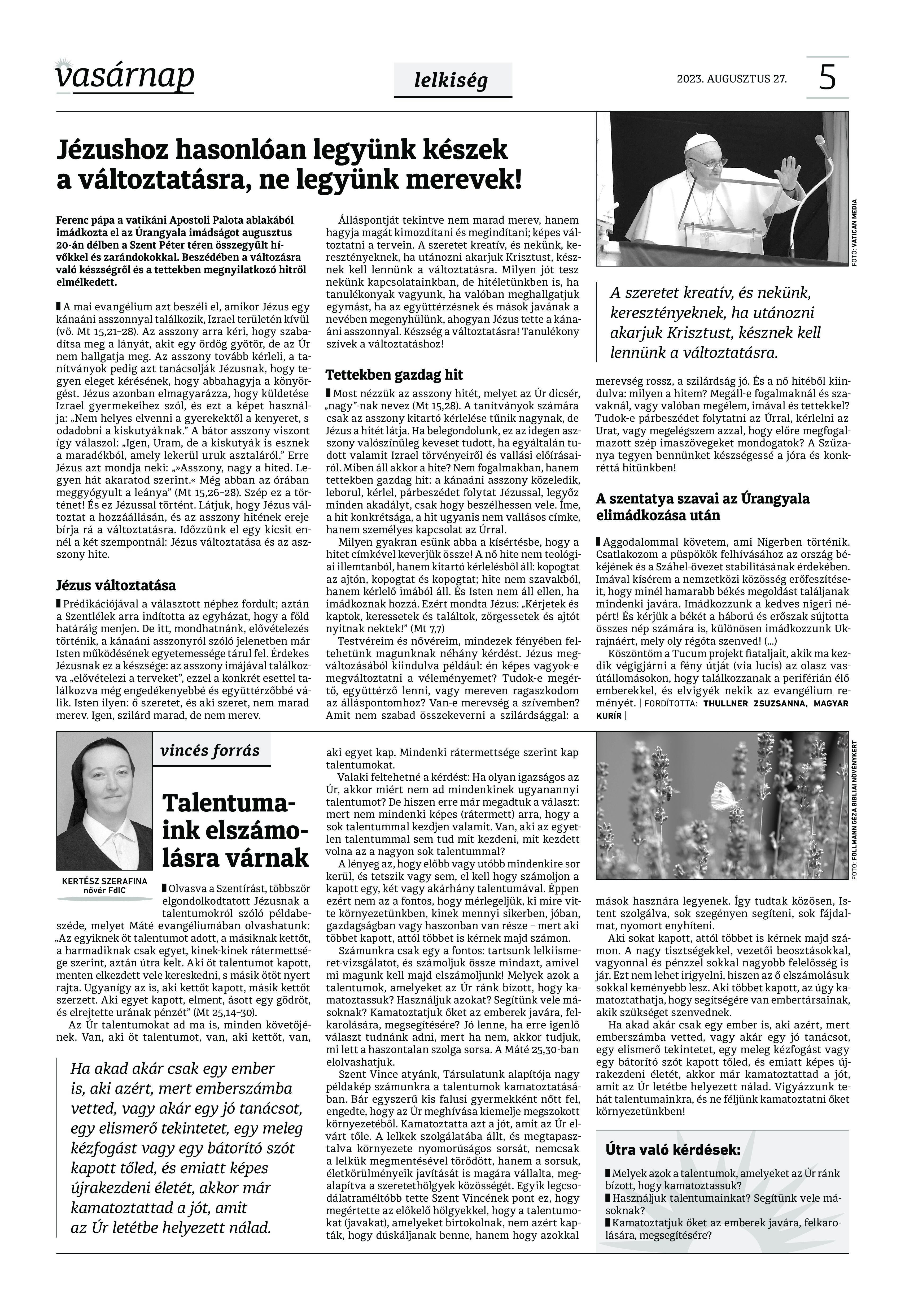 VASÁRNAP - 2023. augusztus 27. A Vasárnap Katolikus Hetilap 2023. augusztus 27. / XXXIII évf. / 35. számának digitális változata 1 / 12 2 & 3 / 12 4 & 5 / 12 6 & 7 / 12 8 & 9 / 12 10 & 11 / 12 12 / 12