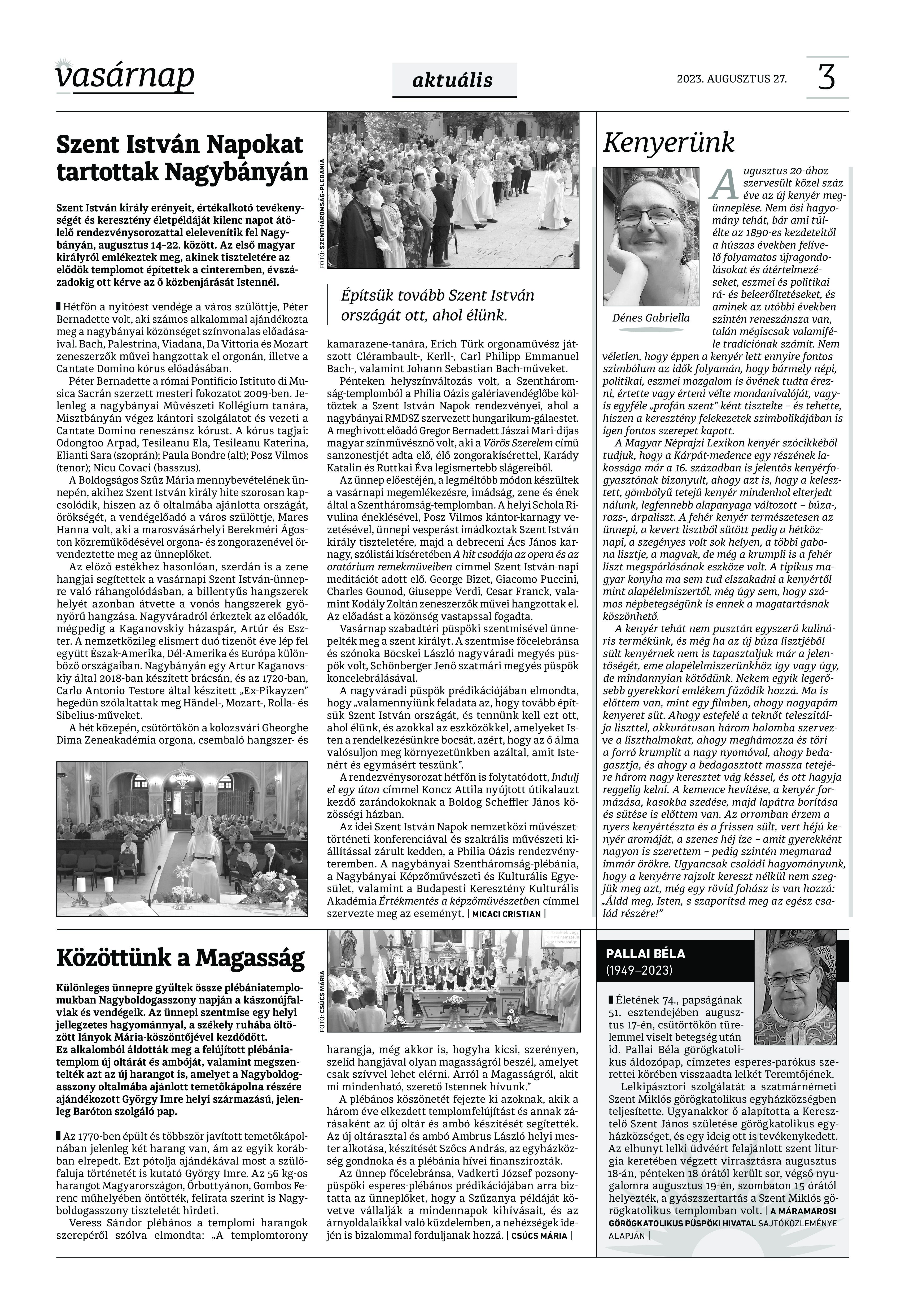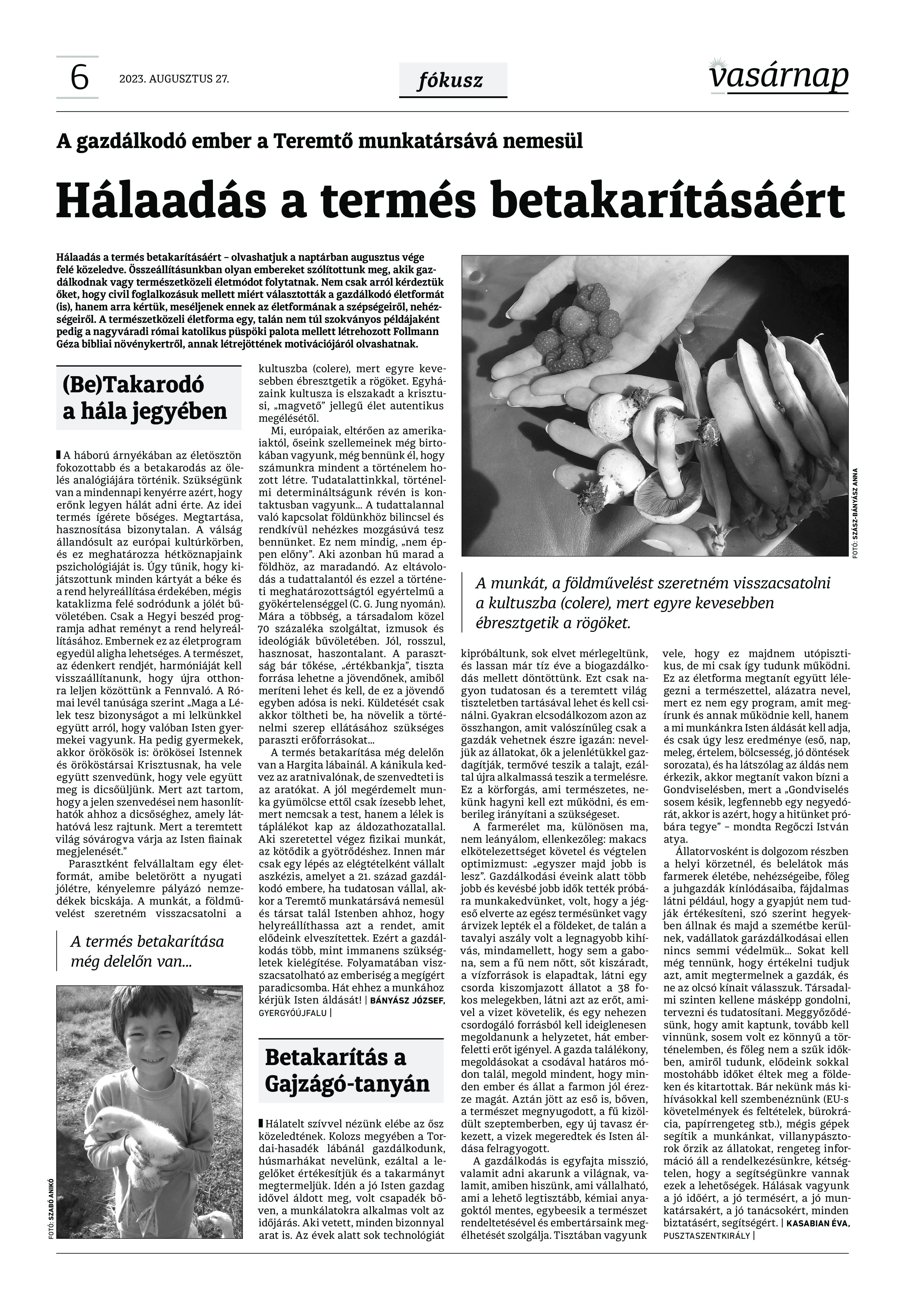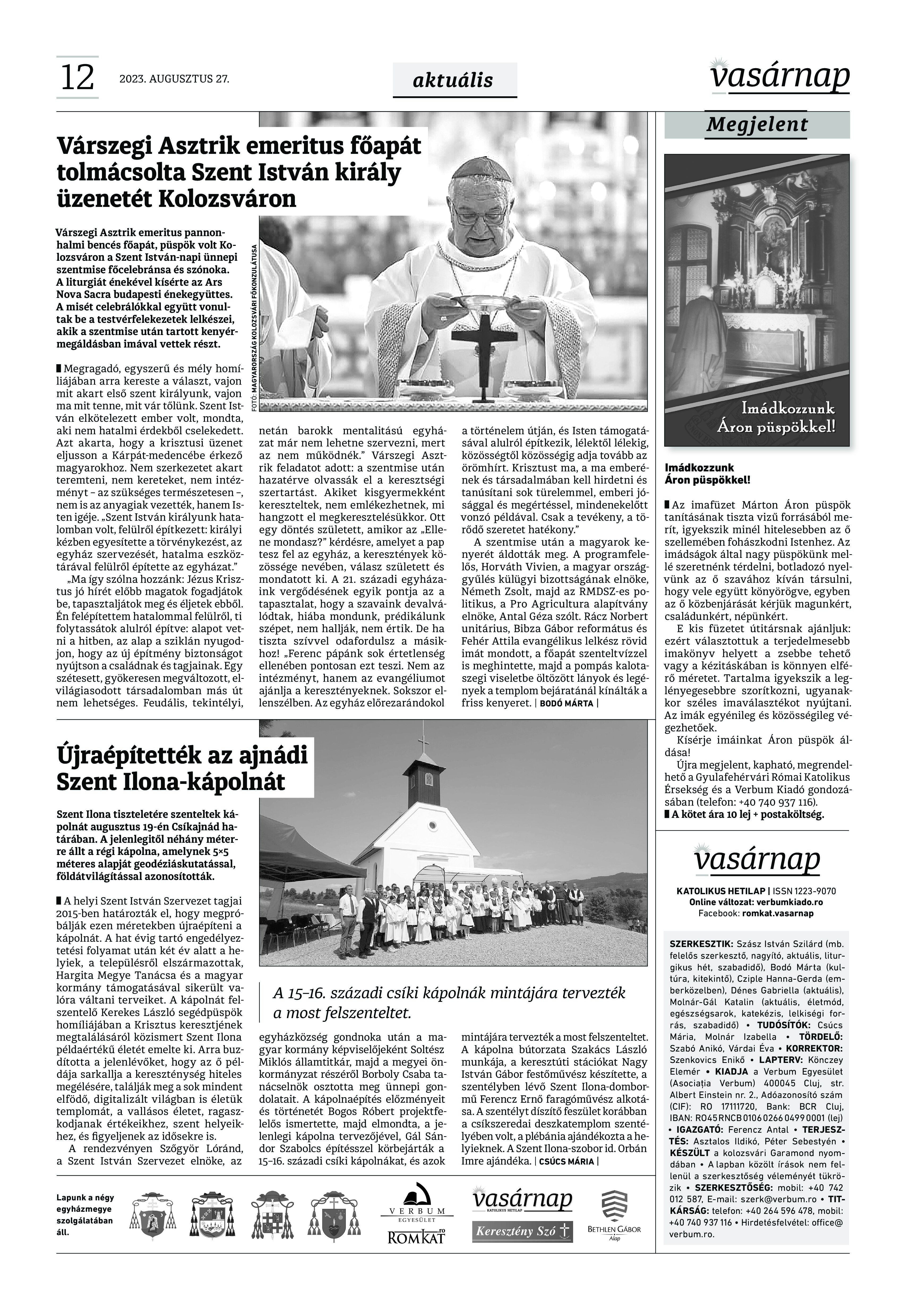 VASÁRNAP - 2023. augusztus 27. A Vasárnap Katolikus Hetilap 2023. augusztus 27. / XXXIII évf. / 35. számának digitális változata 1 / 12 2 & 3 / 12 4 & 5 / 12 6 & 7 / 12 8 & 9 / 12 10 & 11 / 12 12 / 12