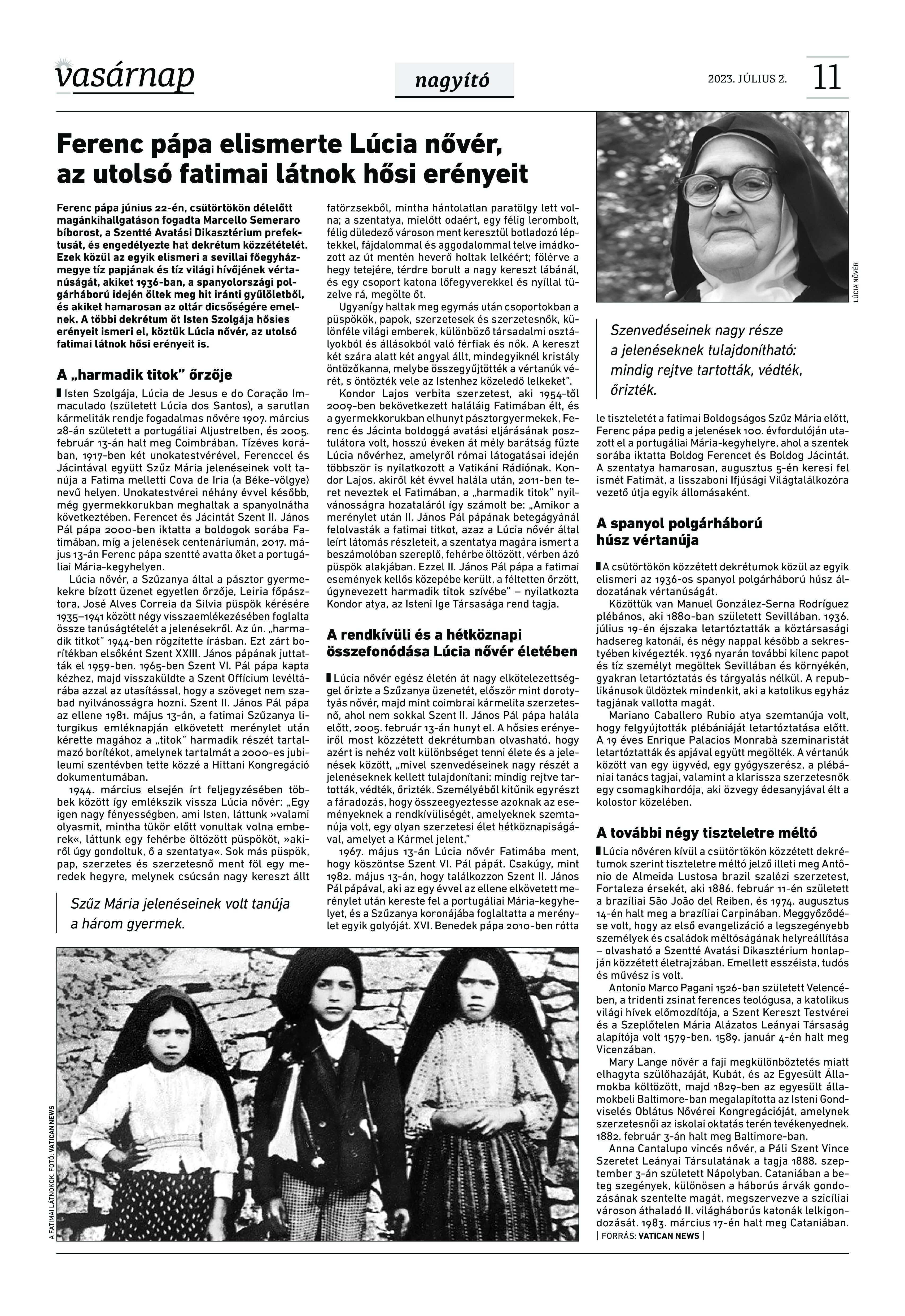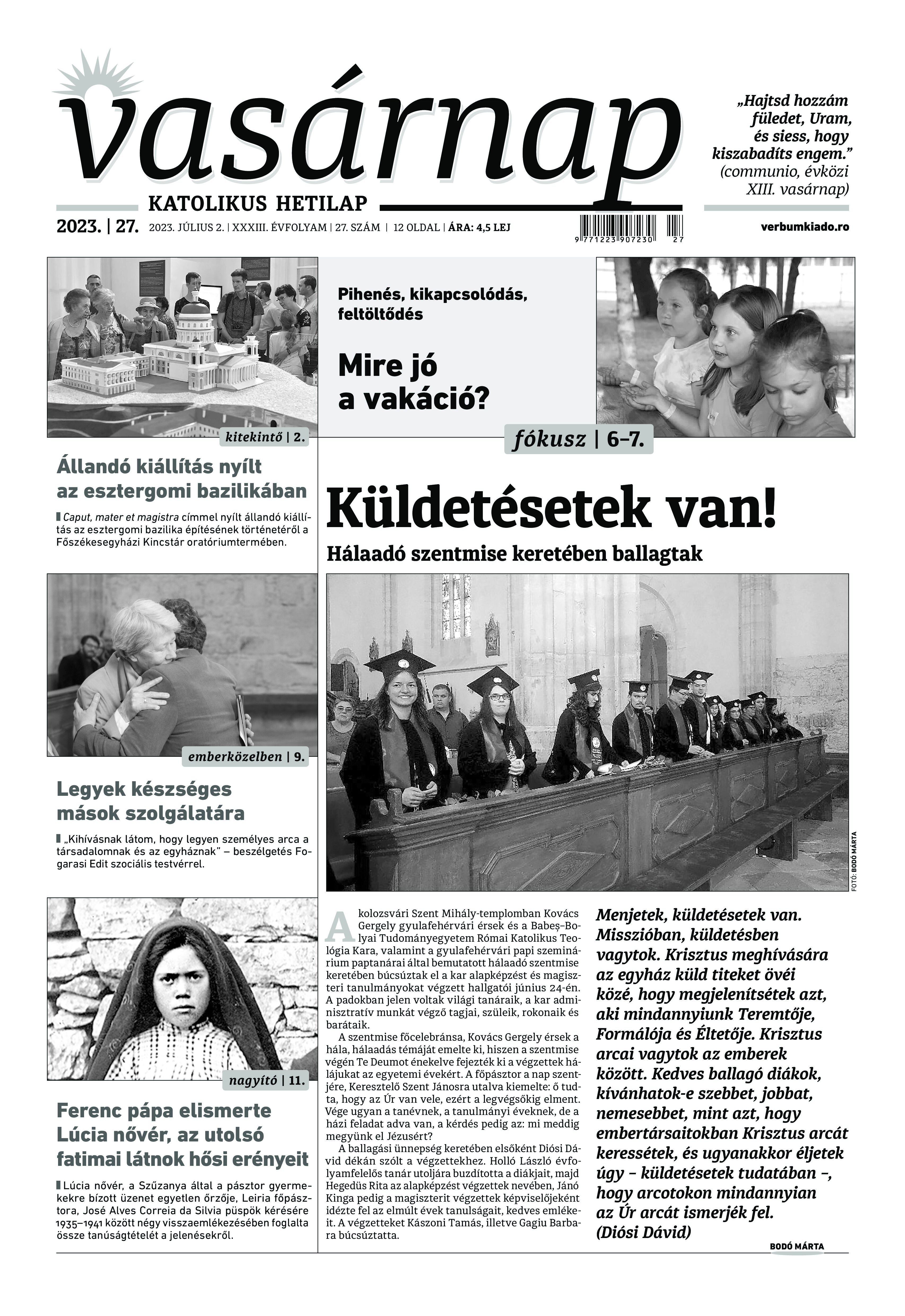 VASÁRNAP - 2023. JÚLIUS 2. A Vasárnap Katolikus Hetilap 2023. július 2. / XXXIII évf. / 27. számának digitális változata 1 / 12 2 & 3 / 12 4 & 5 / 12 6 & 7 / 12 8 & 9 / 12 10 & 11 / 12 12 / 12