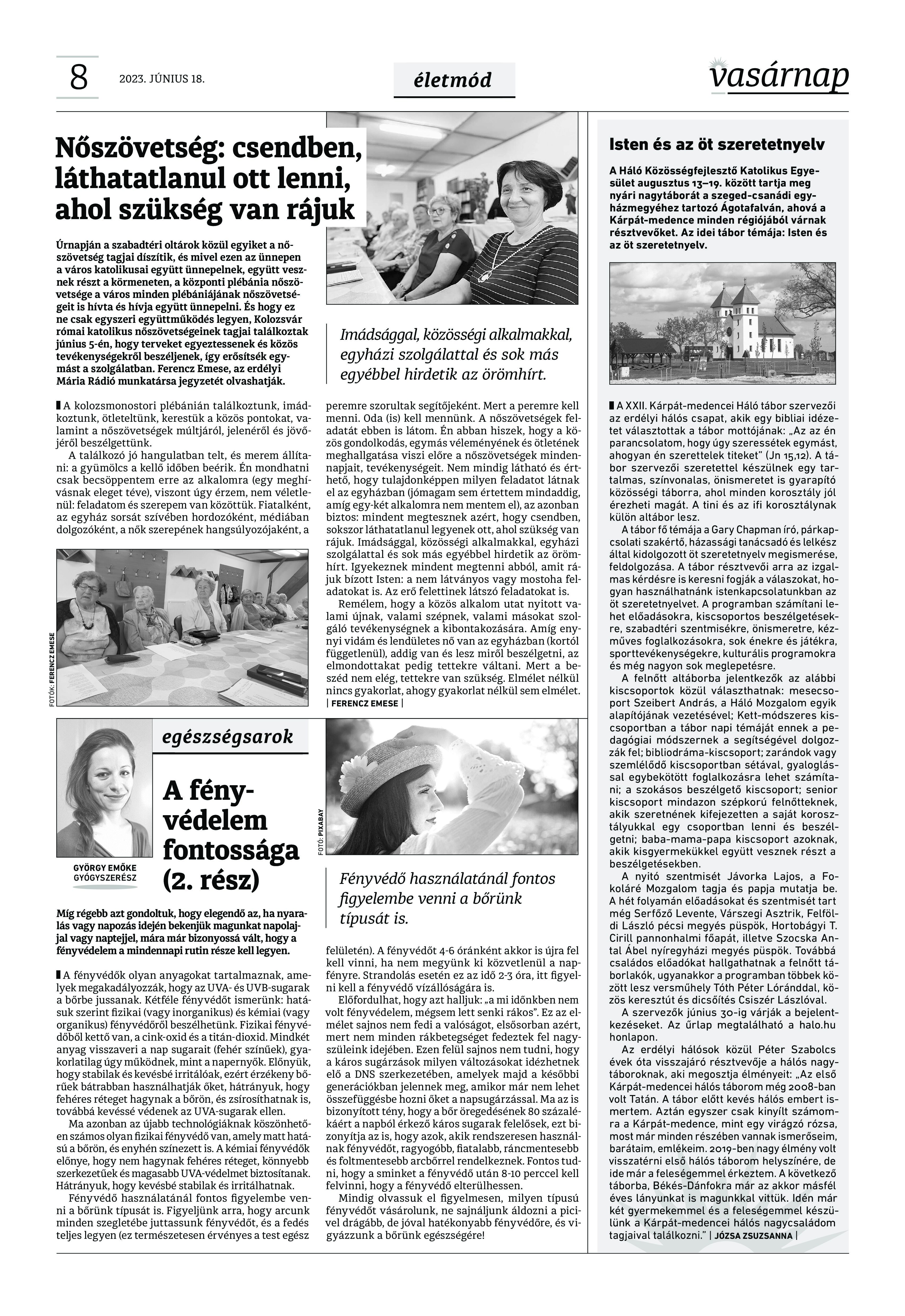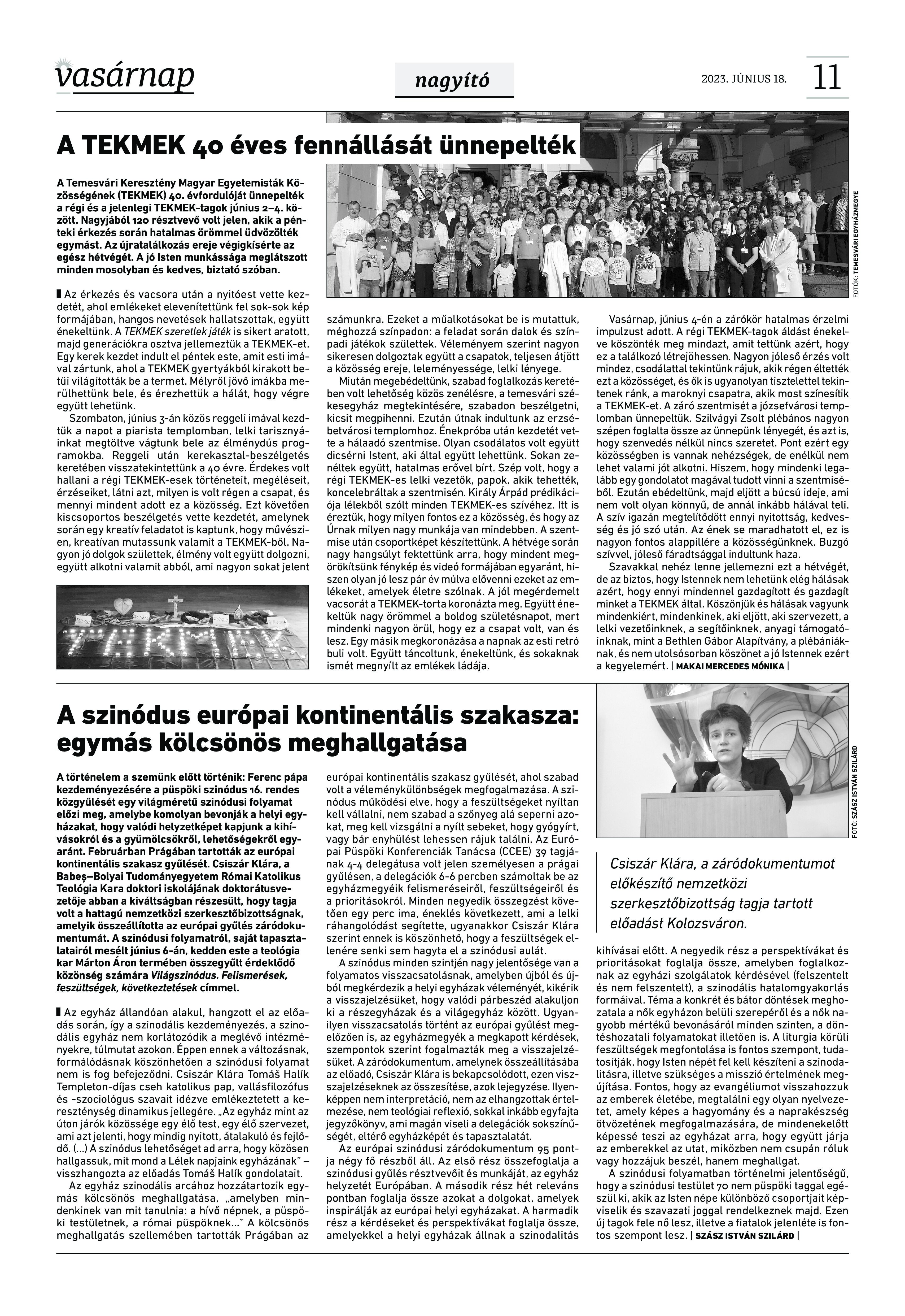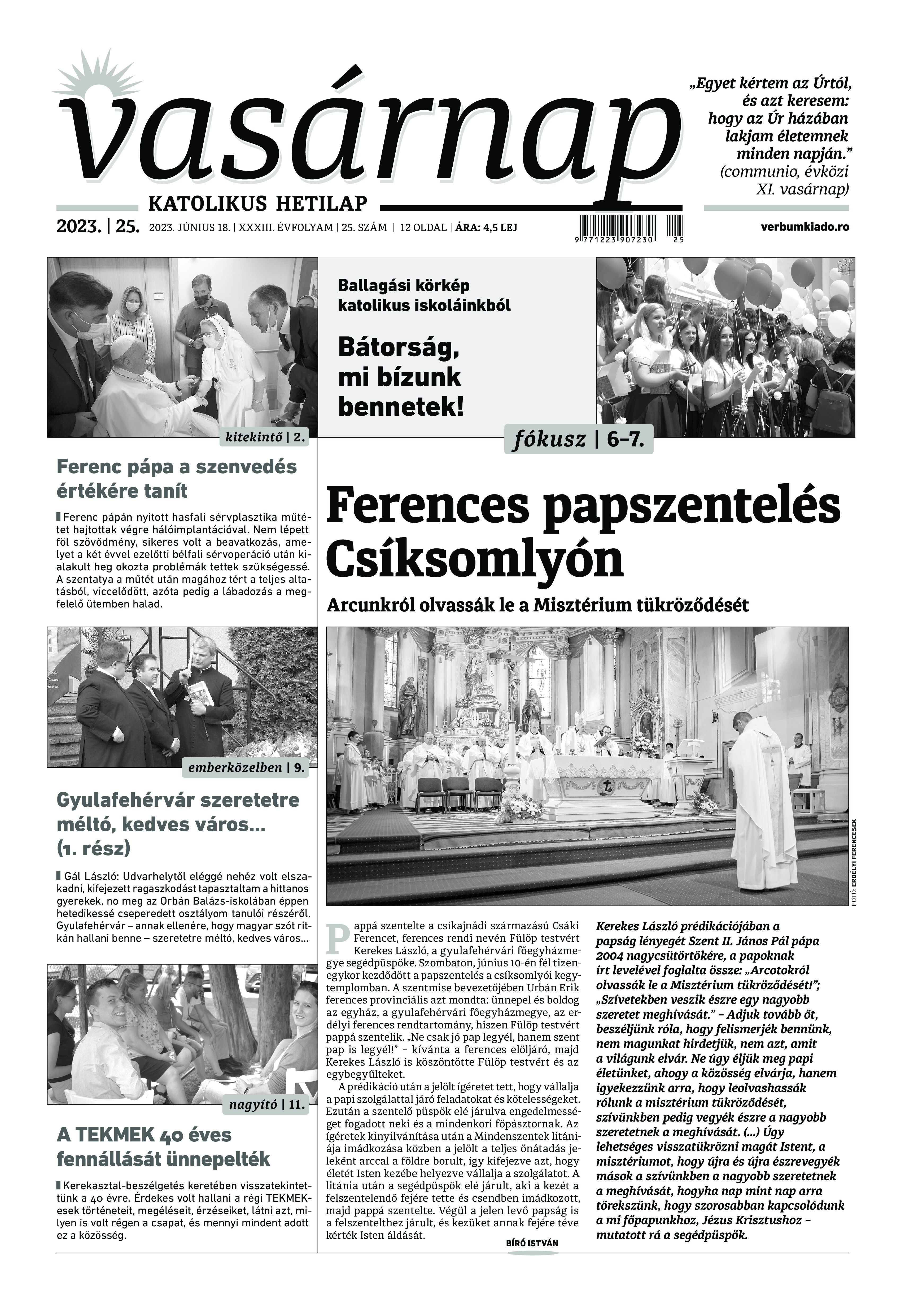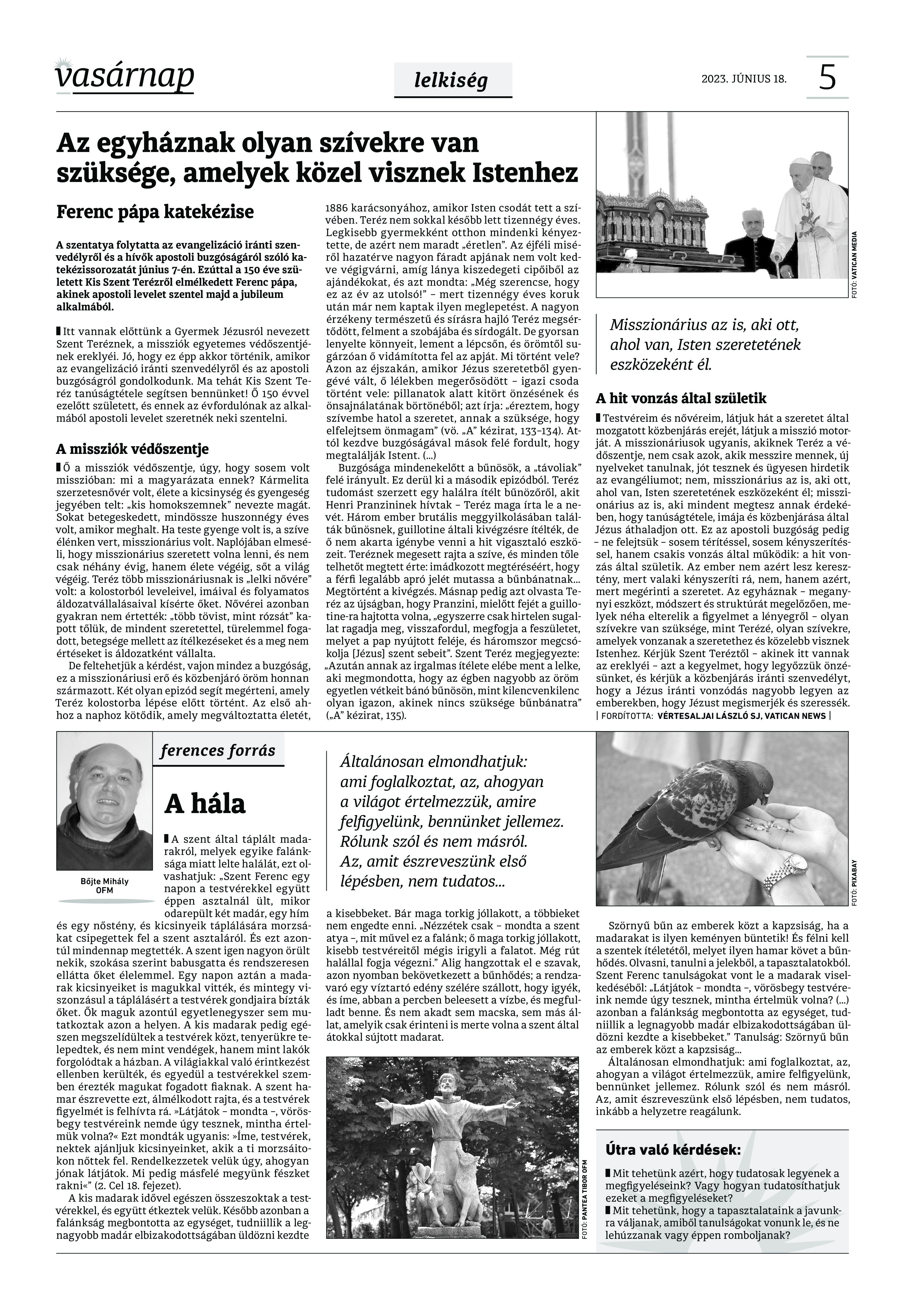 VASÁRNAP - 2023. JÚNIUS 18. A Vasárnap Katolikus Hetilap 2023. június 18. / XXXIII évf. / 25. számának digitális változata 1 / 12 2 & 3 / 12 4 & 5 / 12 6 & 7 / 12 8 & 9 / 12 10 & 11 / 12 12 / 12