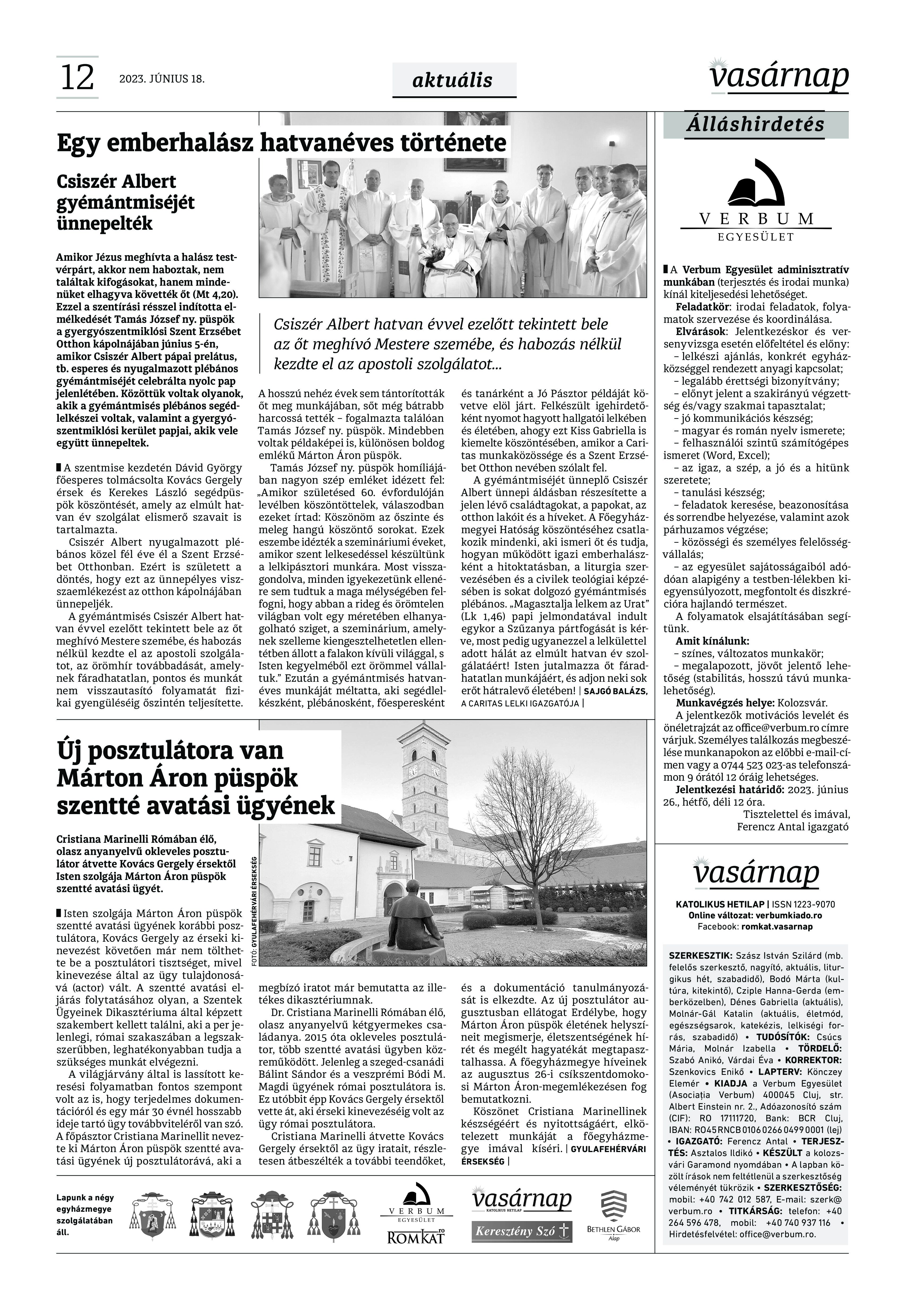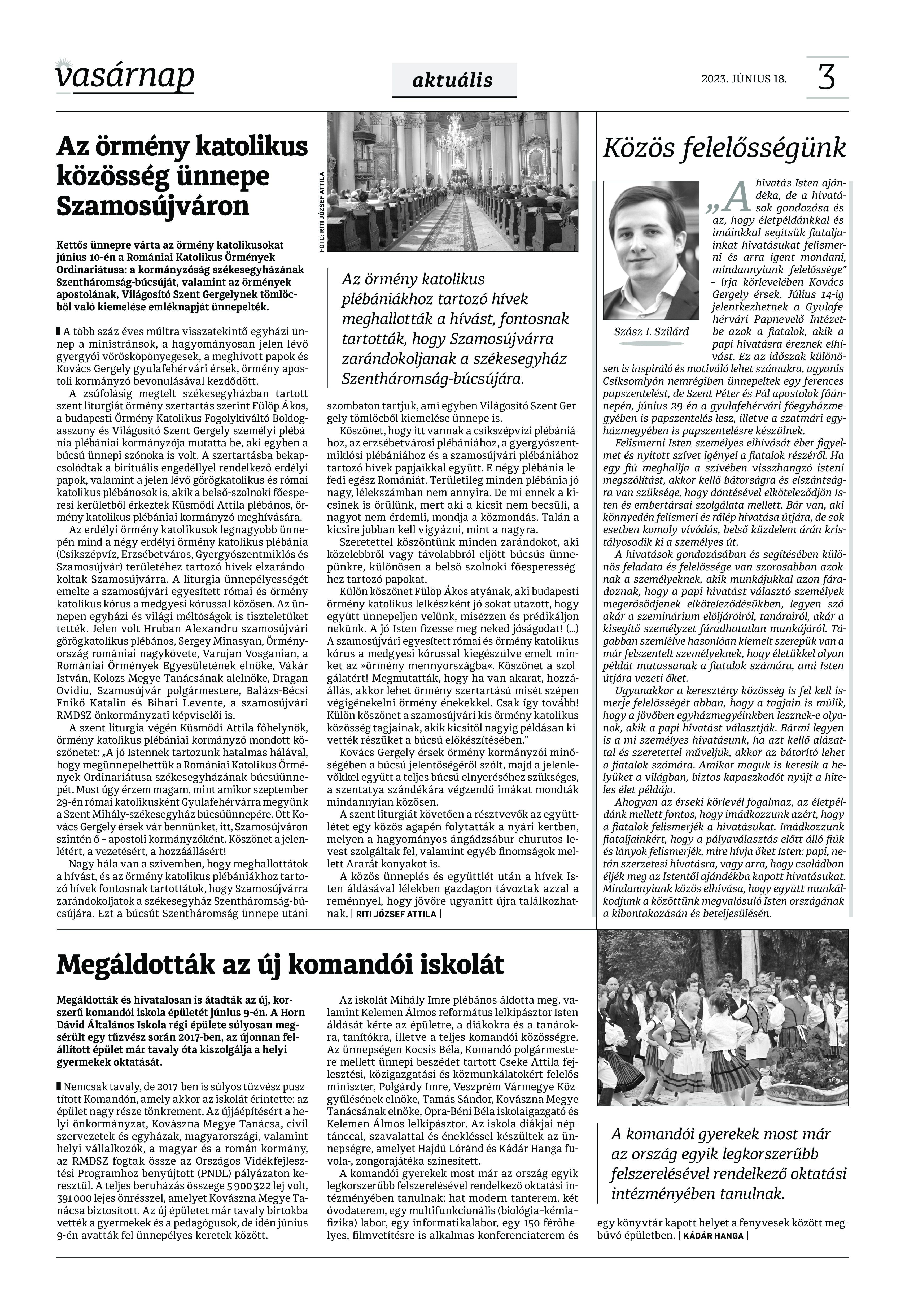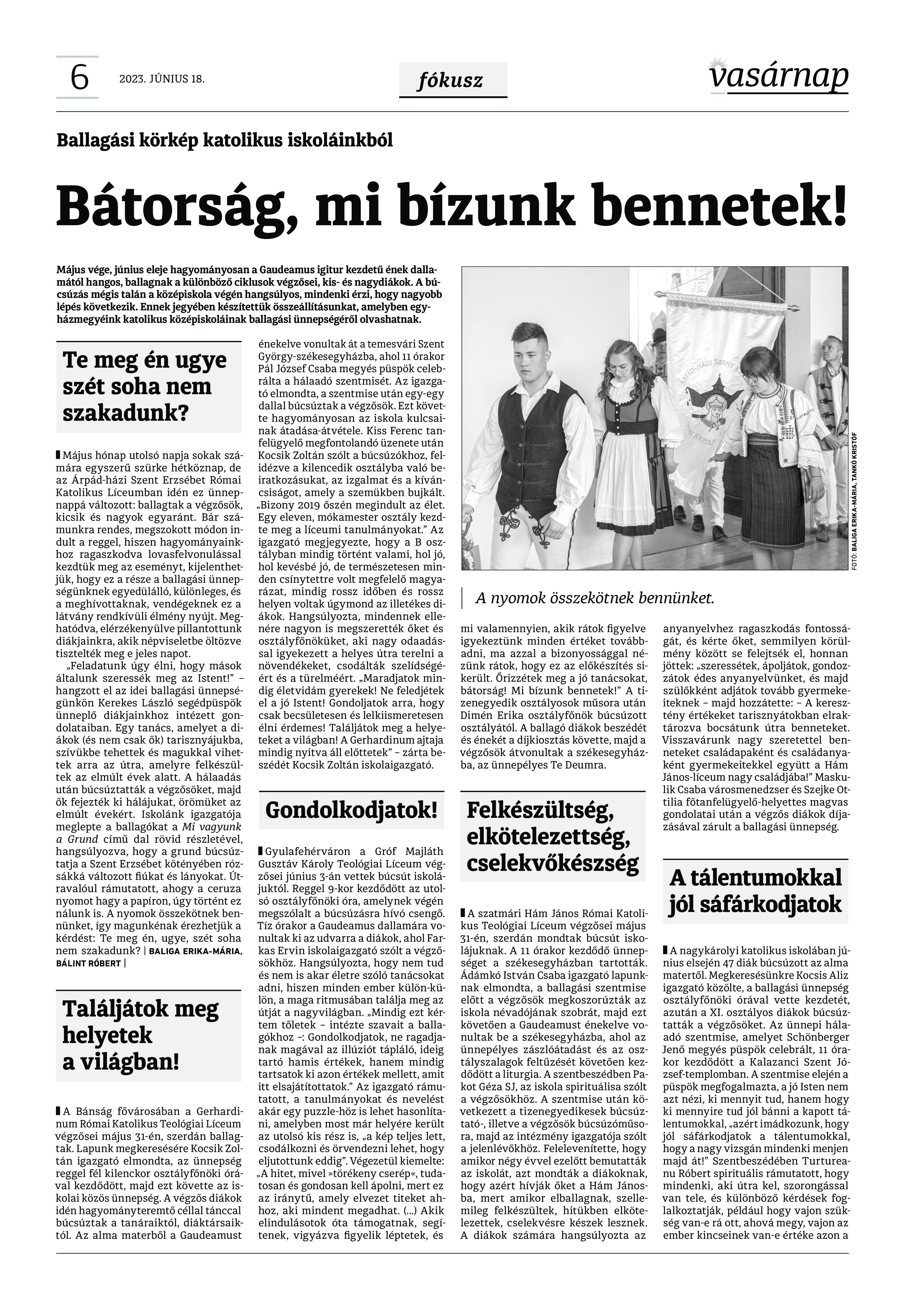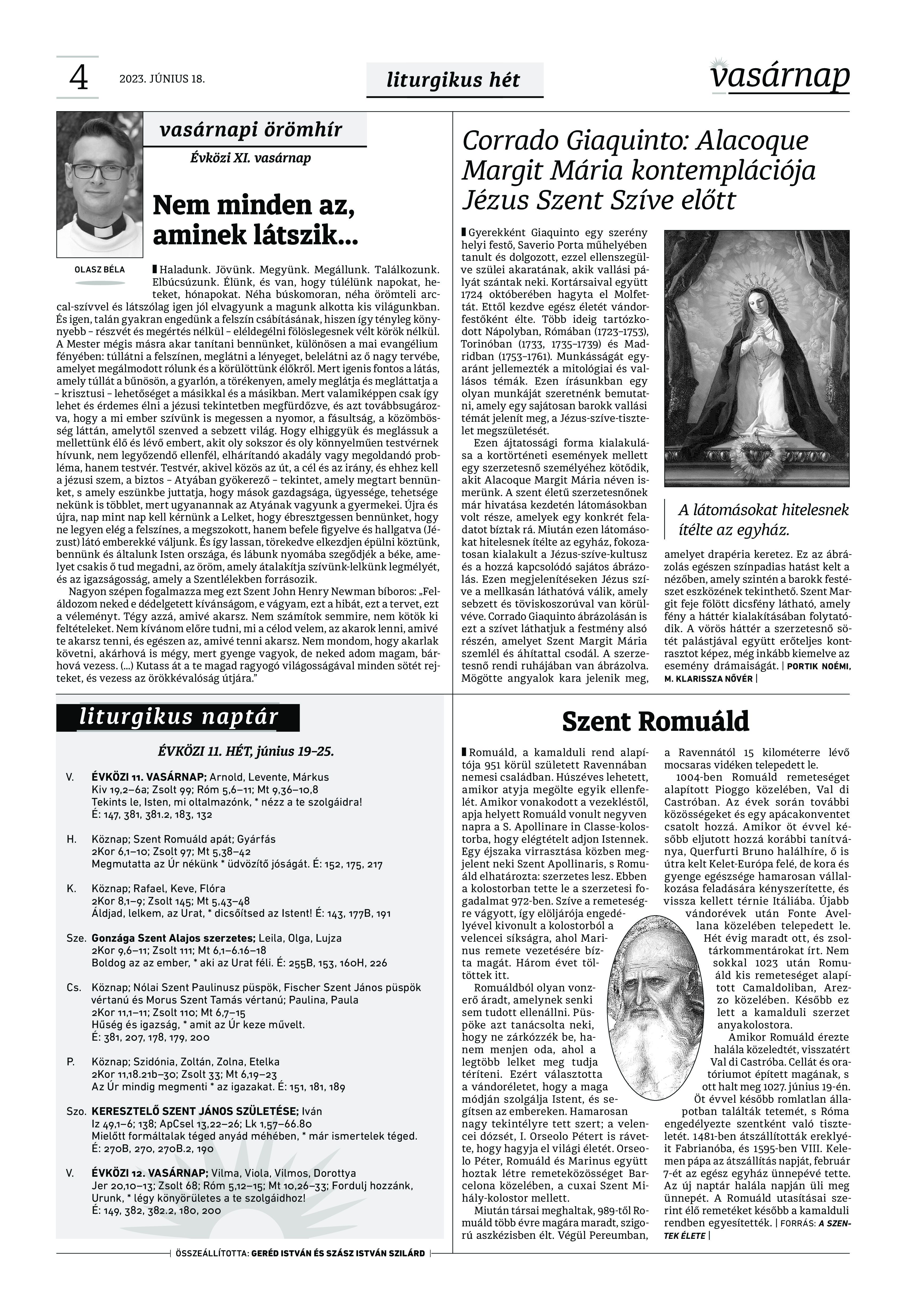 VASÁRNAP - 2023. JÚNIUS 18. A Vasárnap Katolikus Hetilap 2023. június 18. / XXXIII évf. / 25. számának digitális változata 1 / 12 2 & 3 / 12 4 & 5 / 12 6 & 7 / 12 8 & 9 / 12 10 & 11 / 12 12 / 12