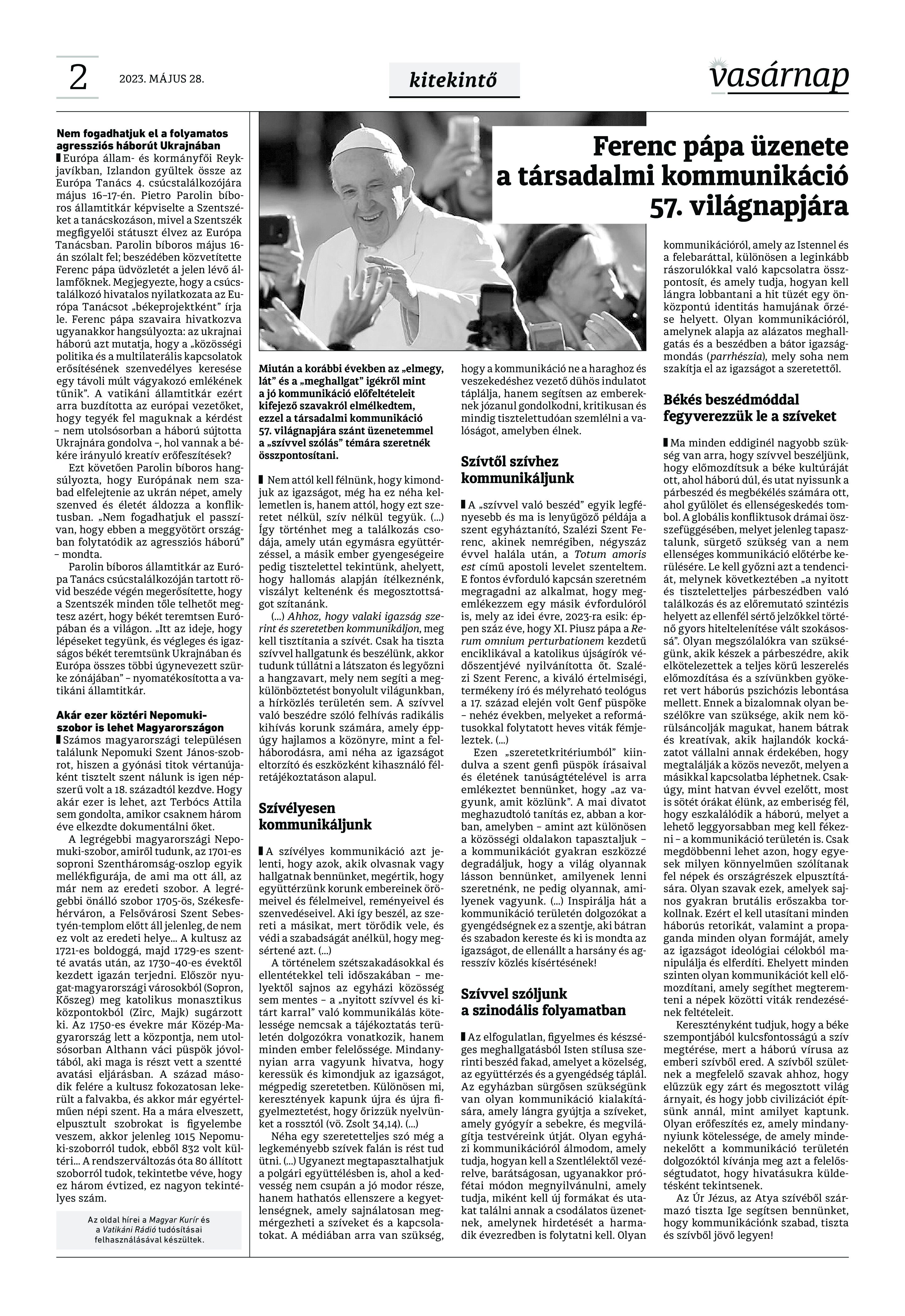 VASÁRNAP - 2023. MÁJUS 28. A Vasárnap Katolikus Hetilap 2023. május 28. / XXXIII évf. / 22. számának digitális változata 1 / 12 2 & 3 / 12 4 & 5 / 12 6 & 7 / 12 8 & 9 / 12 10 & 11 / 12 12 / 12