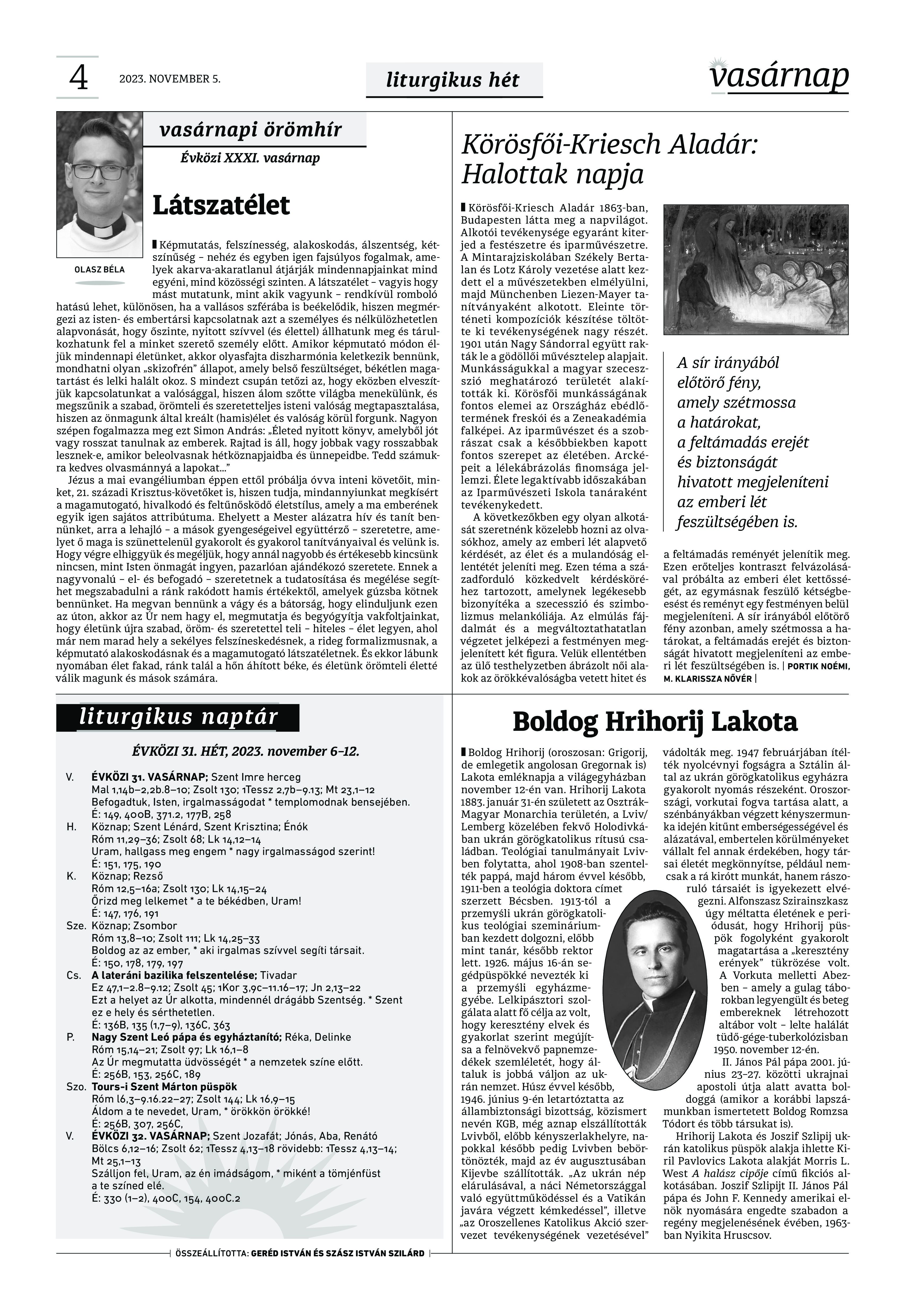 VASÁRNAP - 2023. november 5. A Vasárnap Katolikus Hetilap 2023. november 5. / XXXIII évf. / 45. számának digitális változata 1 / 12 2 & 3 / 12 4 & 5 / 12 6 & 7 / 12 8 & 9 / 12 10 & 11 / 12 12 / 12