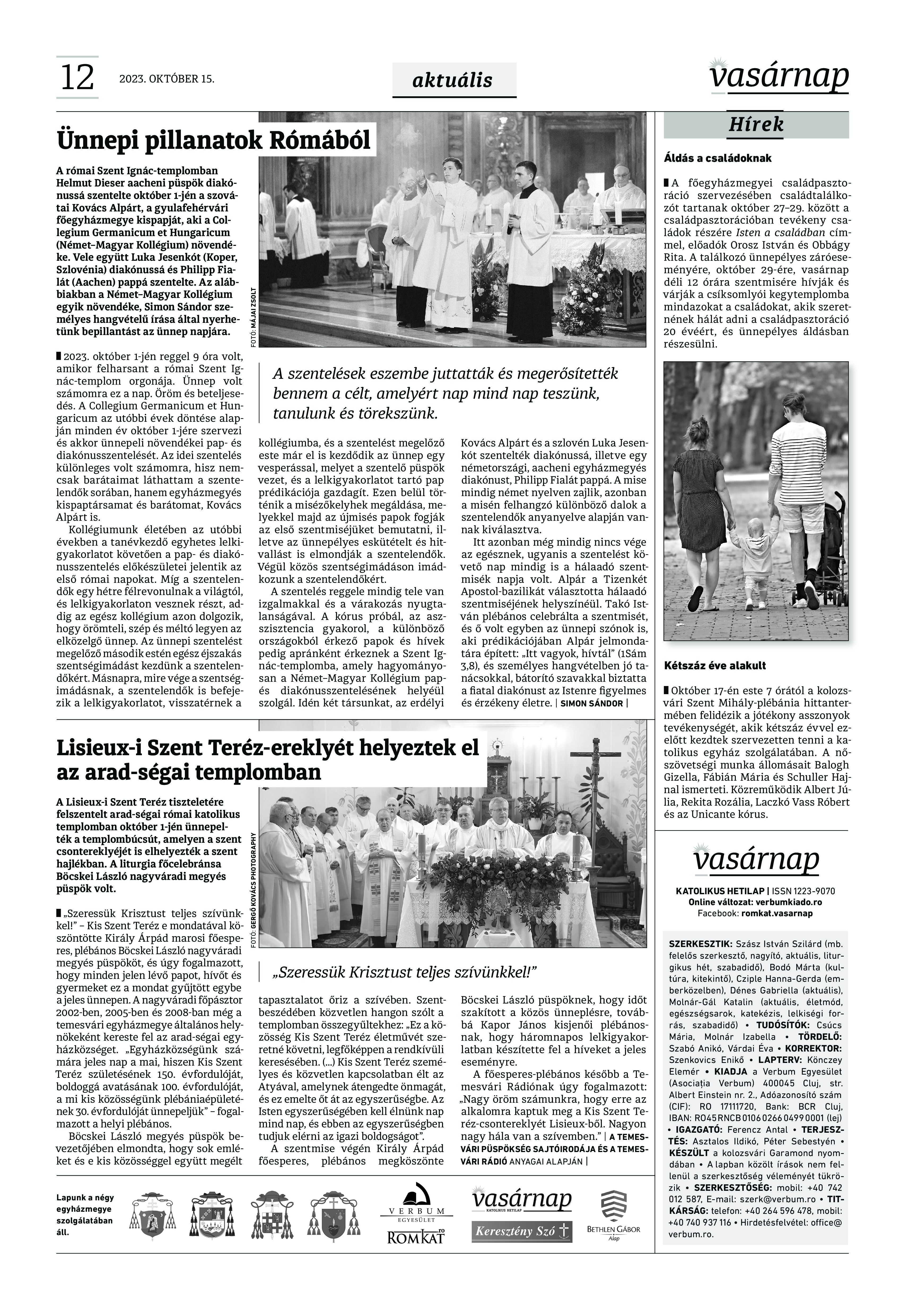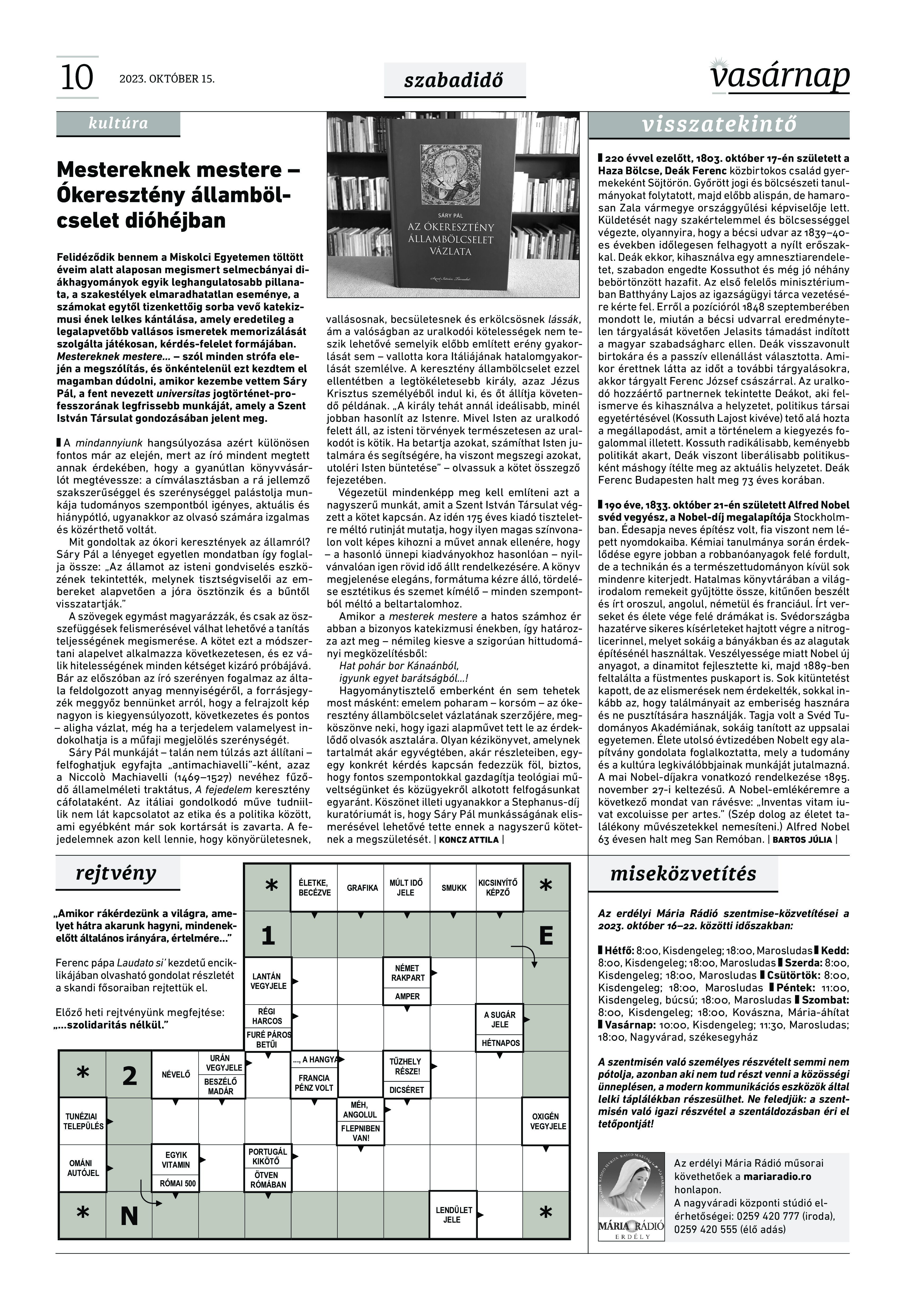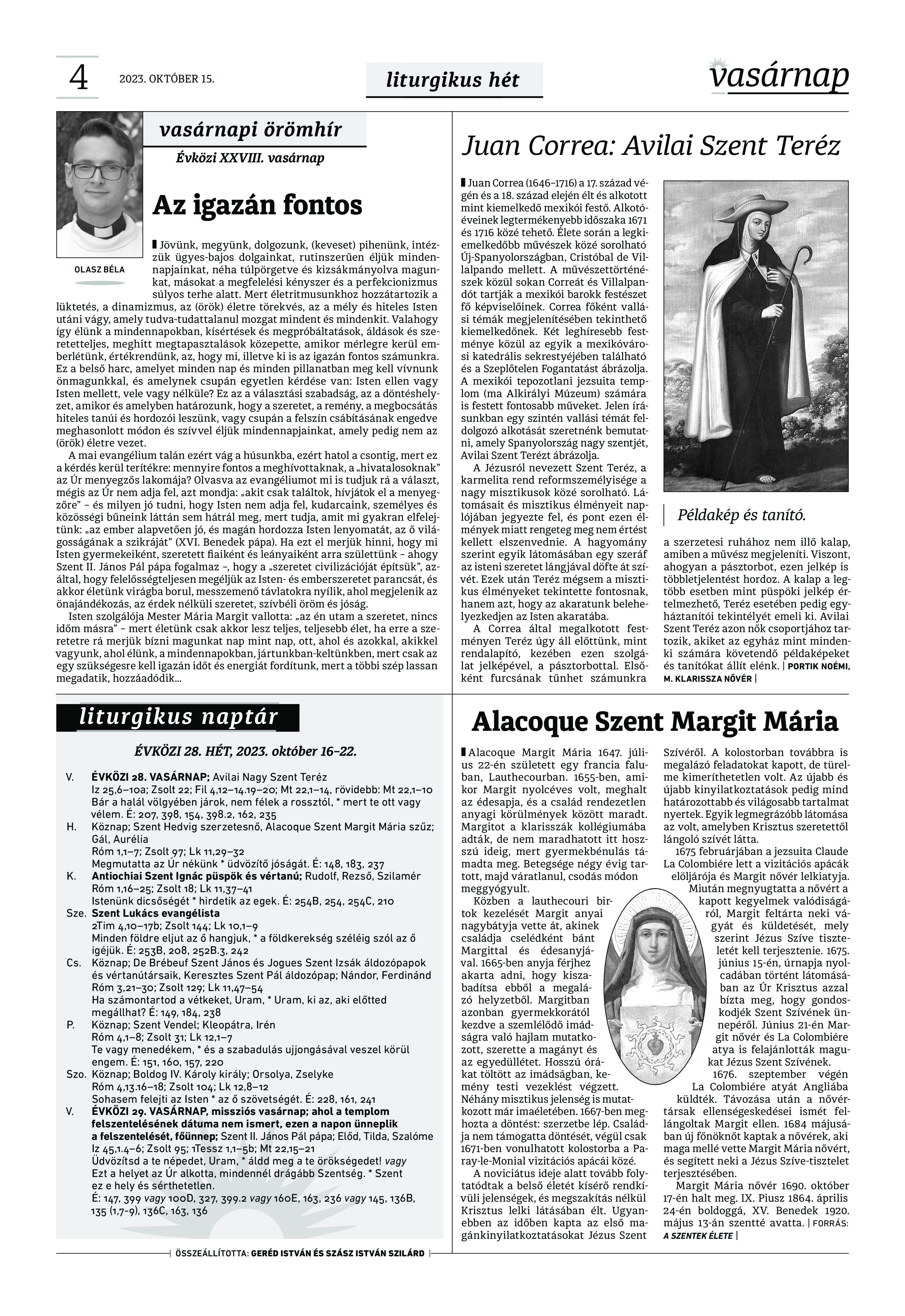 VASÁRNAP - 2023. október 15. A Vasárnap Katolikus Hetilap 2023. október 15. / XXXIII évf. / 42. számának digitális változata 1 / 12 2 & 3 / 12 4 & 5 / 12 6 & 7 / 12 8 & 9 / 12 10 & 11 / 12 12 / 12
