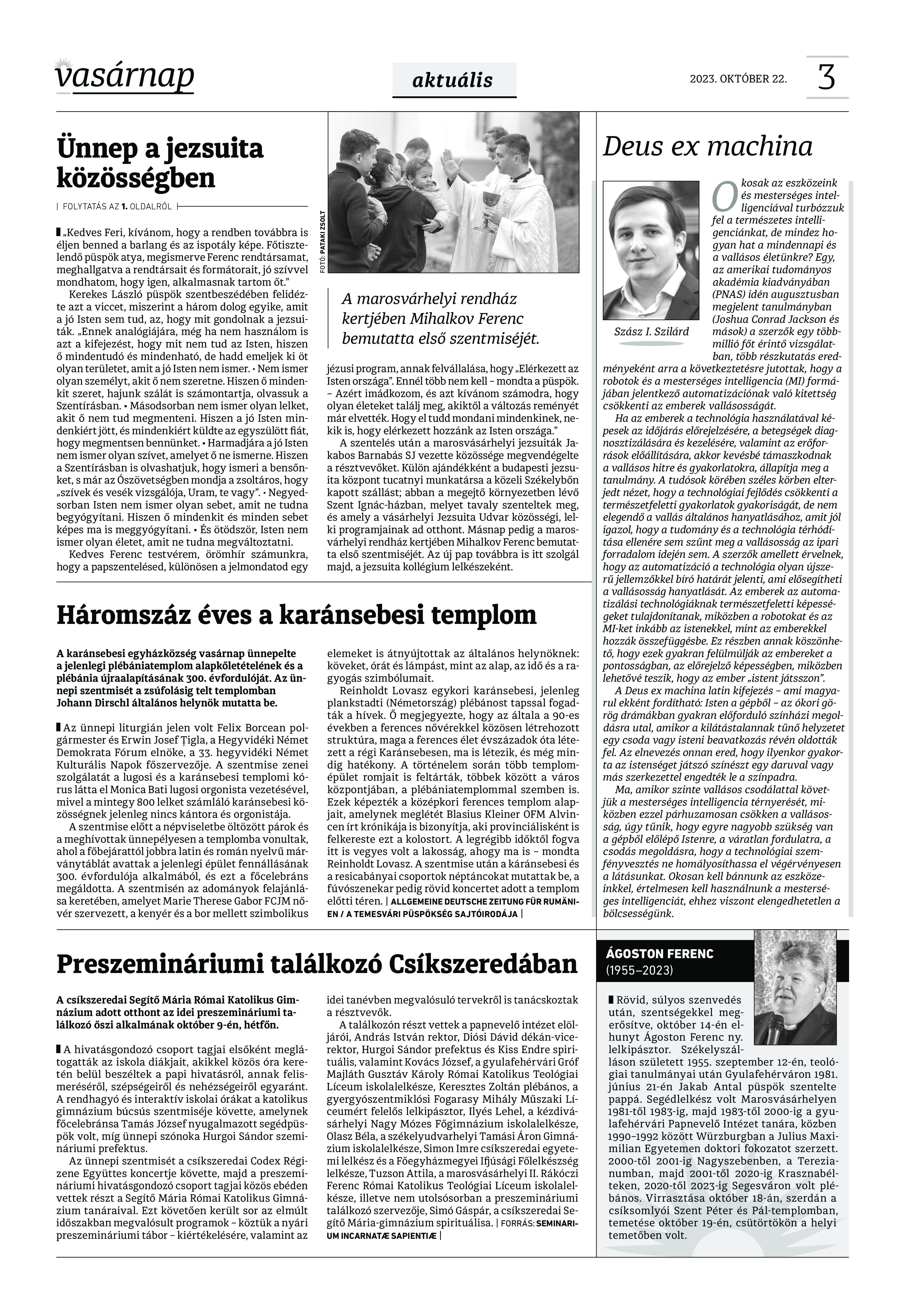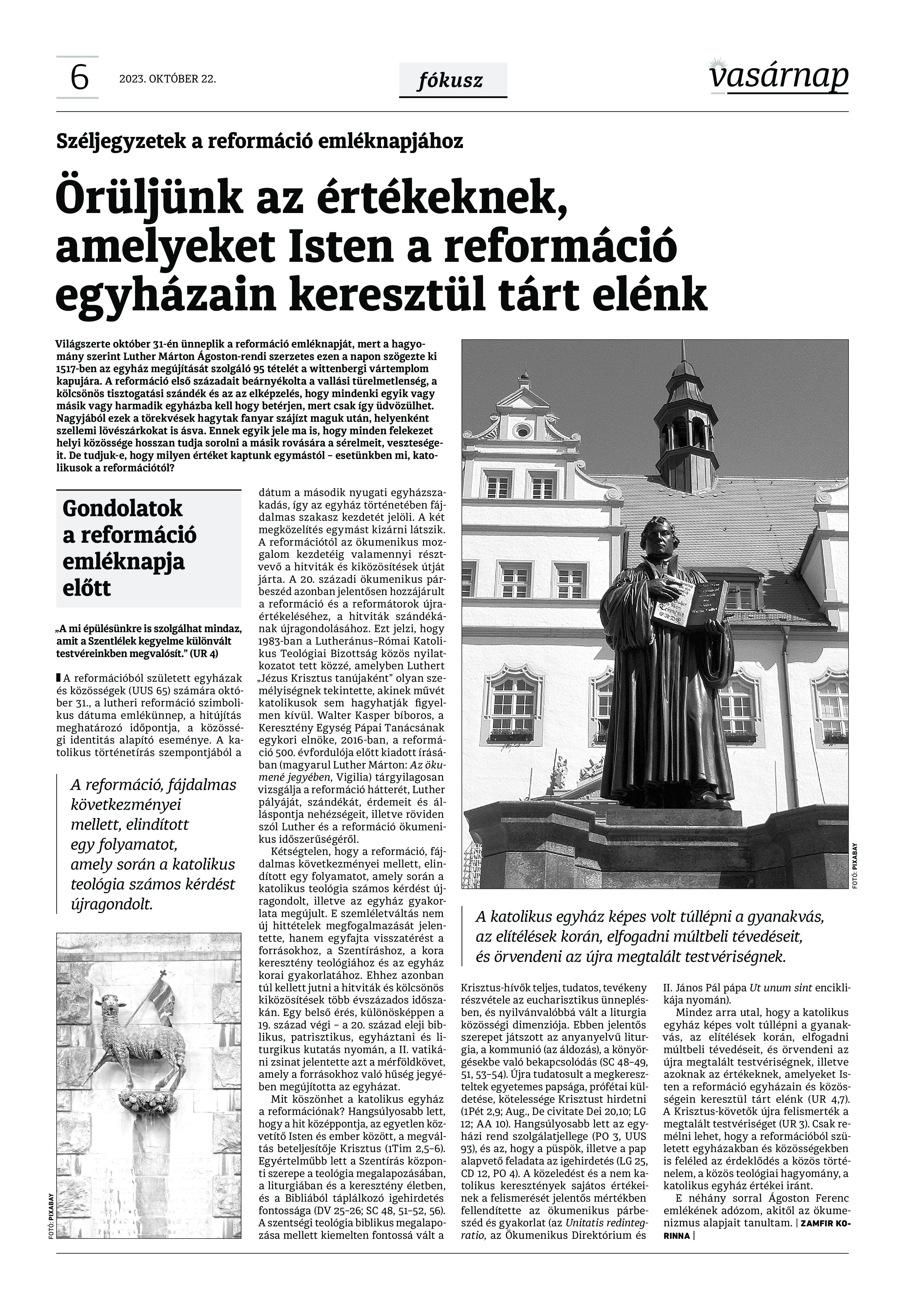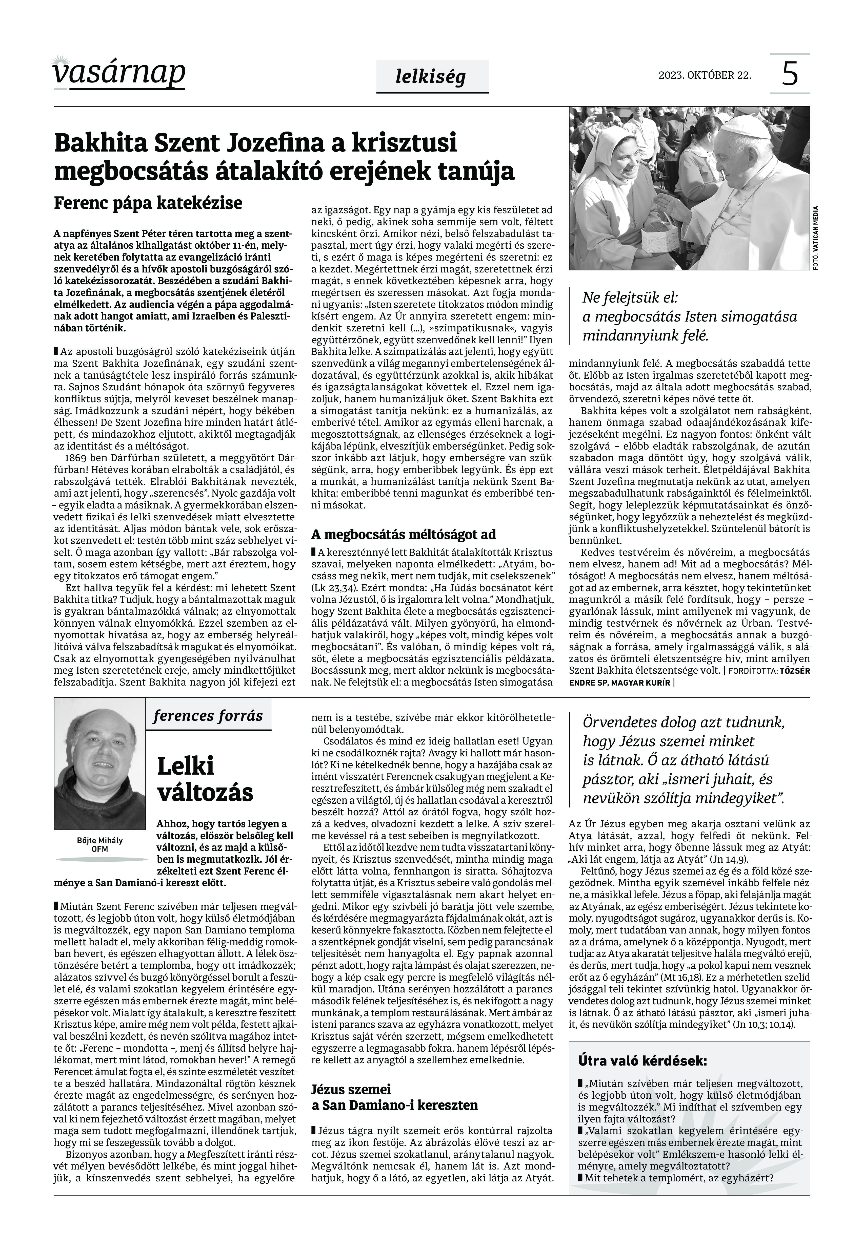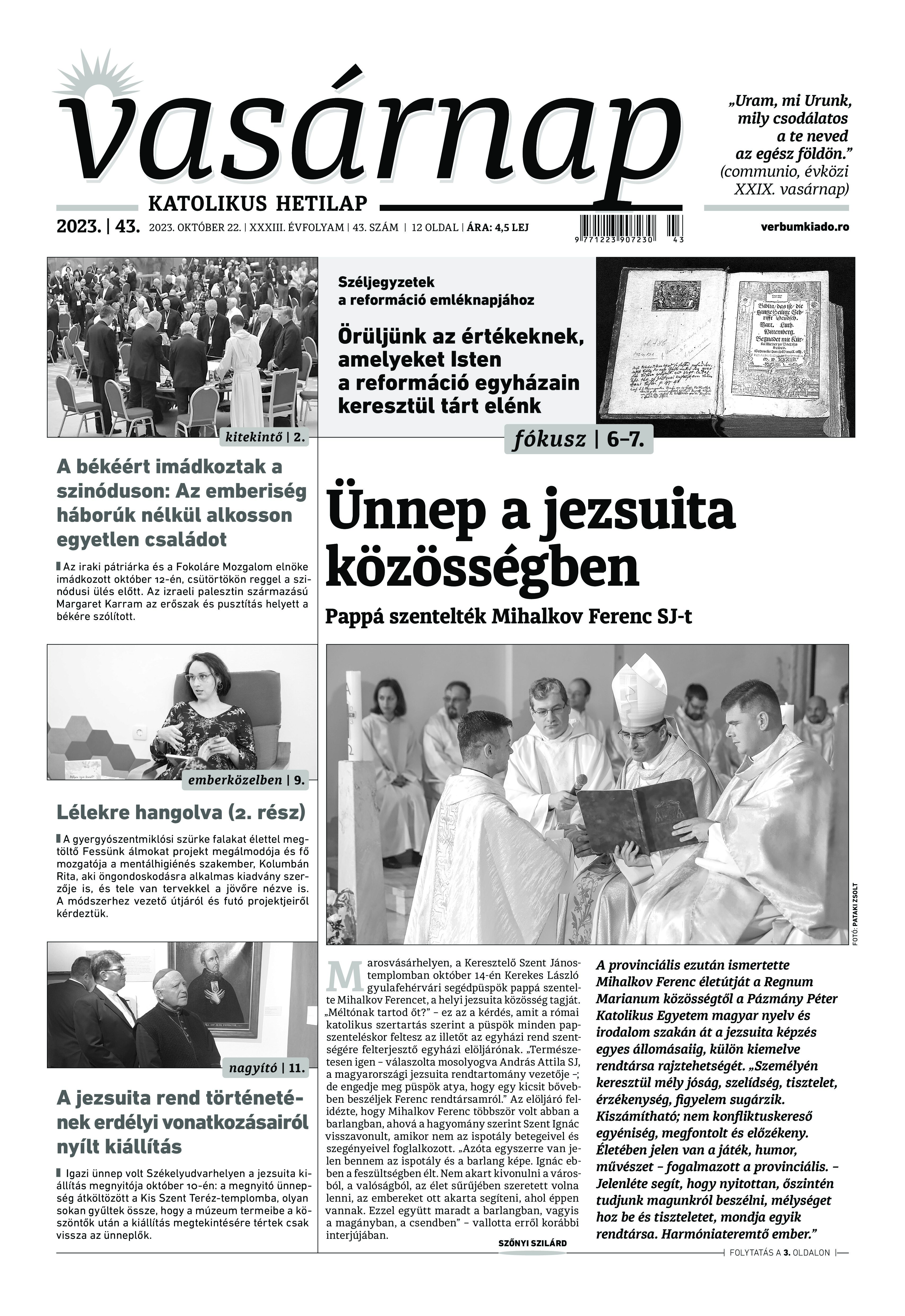 VASÁRNAP - 2023. október 22. A Vasárnap Katolikus Hetilap 2023. október 22. / XXXIII évf. / 43. számának digitális változata 1 / 12 2 & 3 / 12 4 & 5 / 12 6 & 7 / 12 8 & 9 / 12 10 & 11 / 12 12 / 12