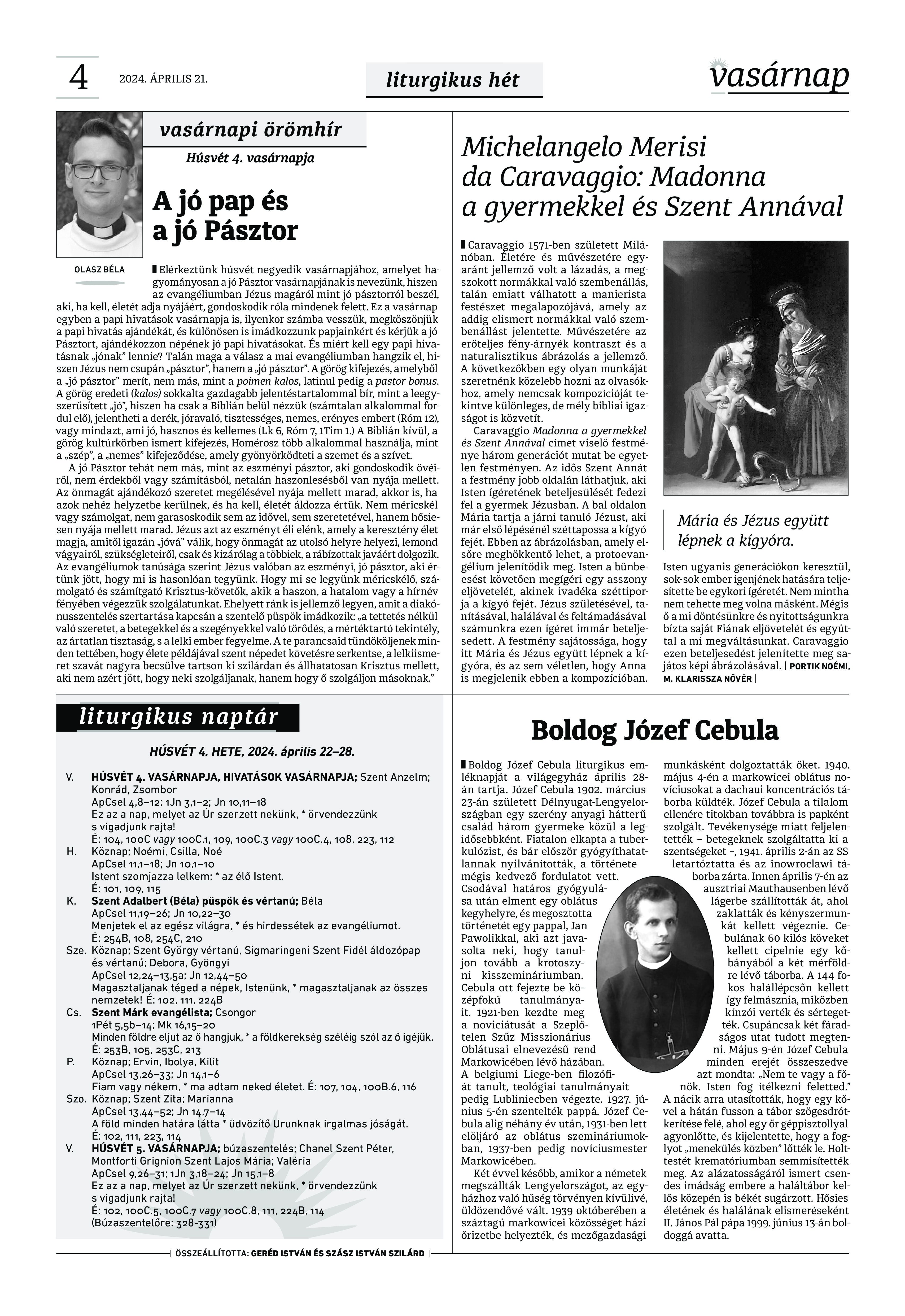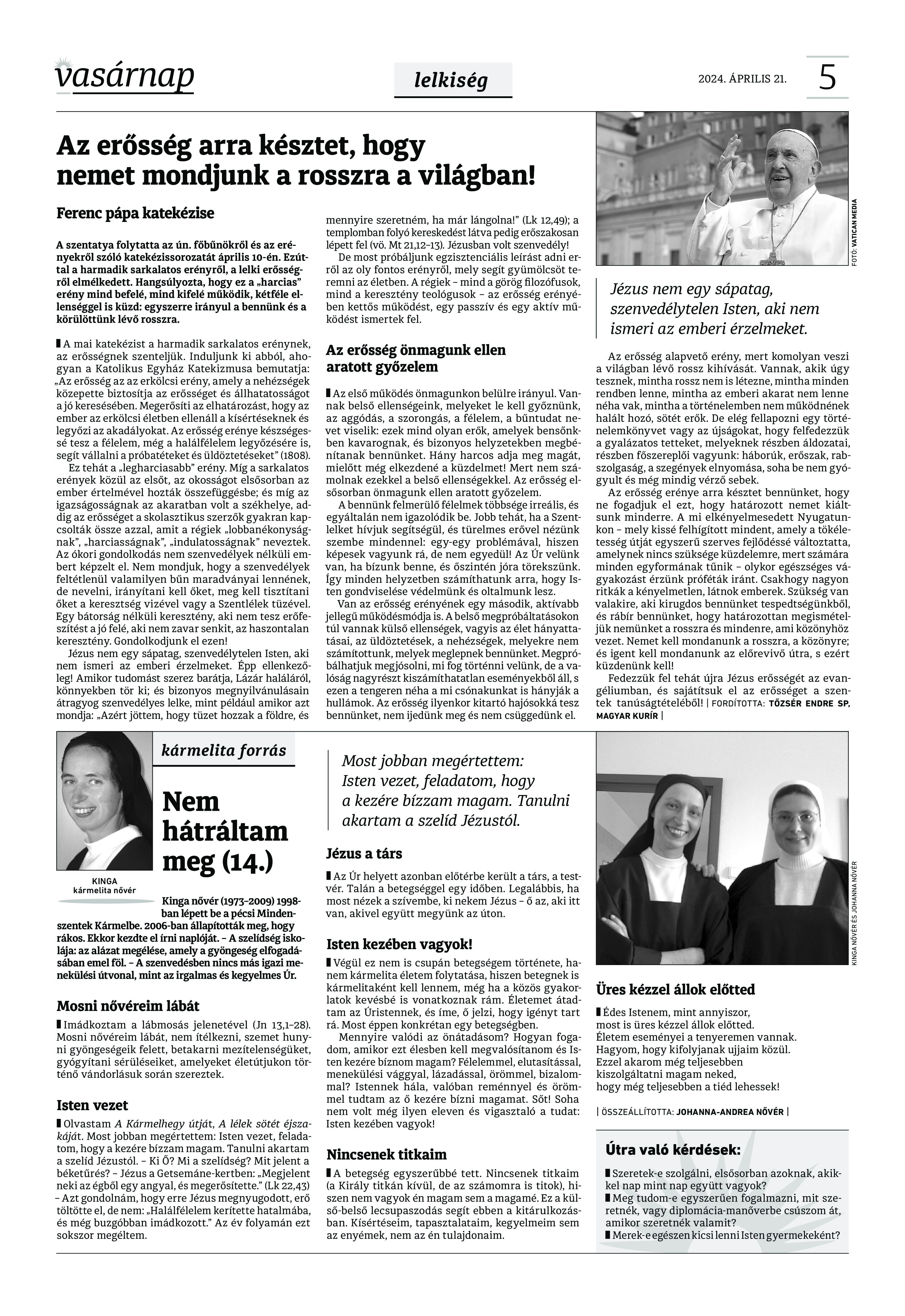 VASÁRNAP - 2024. április 21. A Vasárnap Katolikus Hetilap 2024. április 21. / XXXIV évf. / 16. számának digitális változata. 1 / 12 2 & 3 / 12 4 & 5 / 12 6 & 7 / 12 8 & 9 / 12 10 & 11 / 12 12 / 12