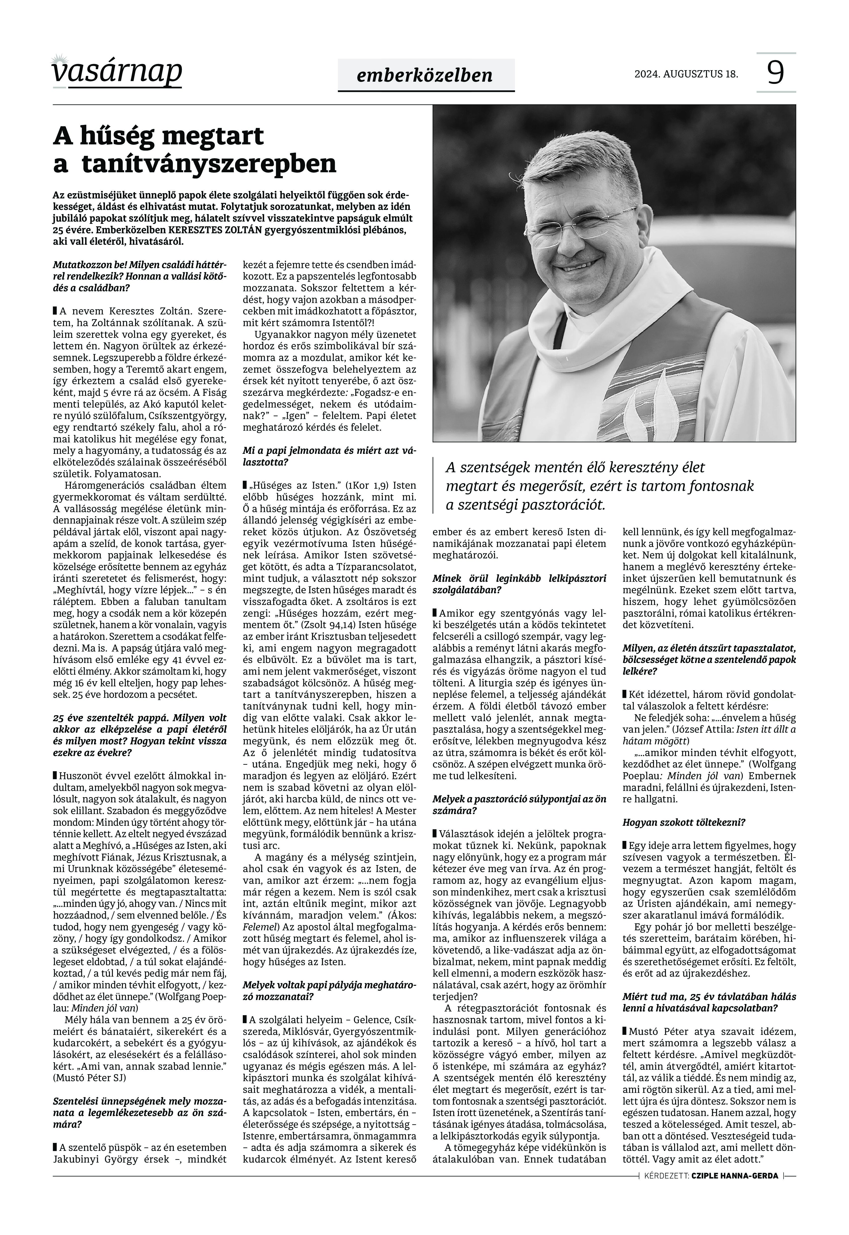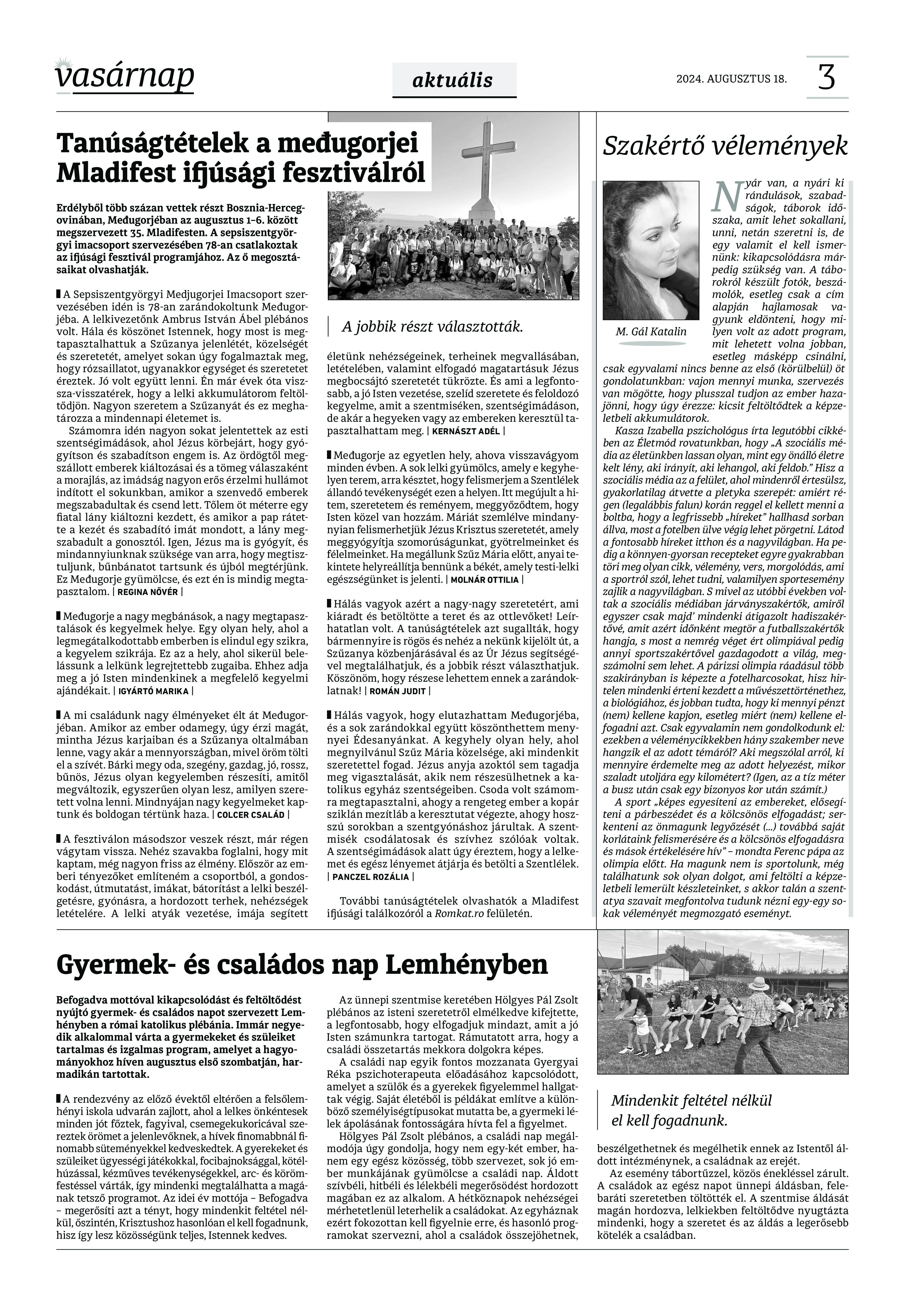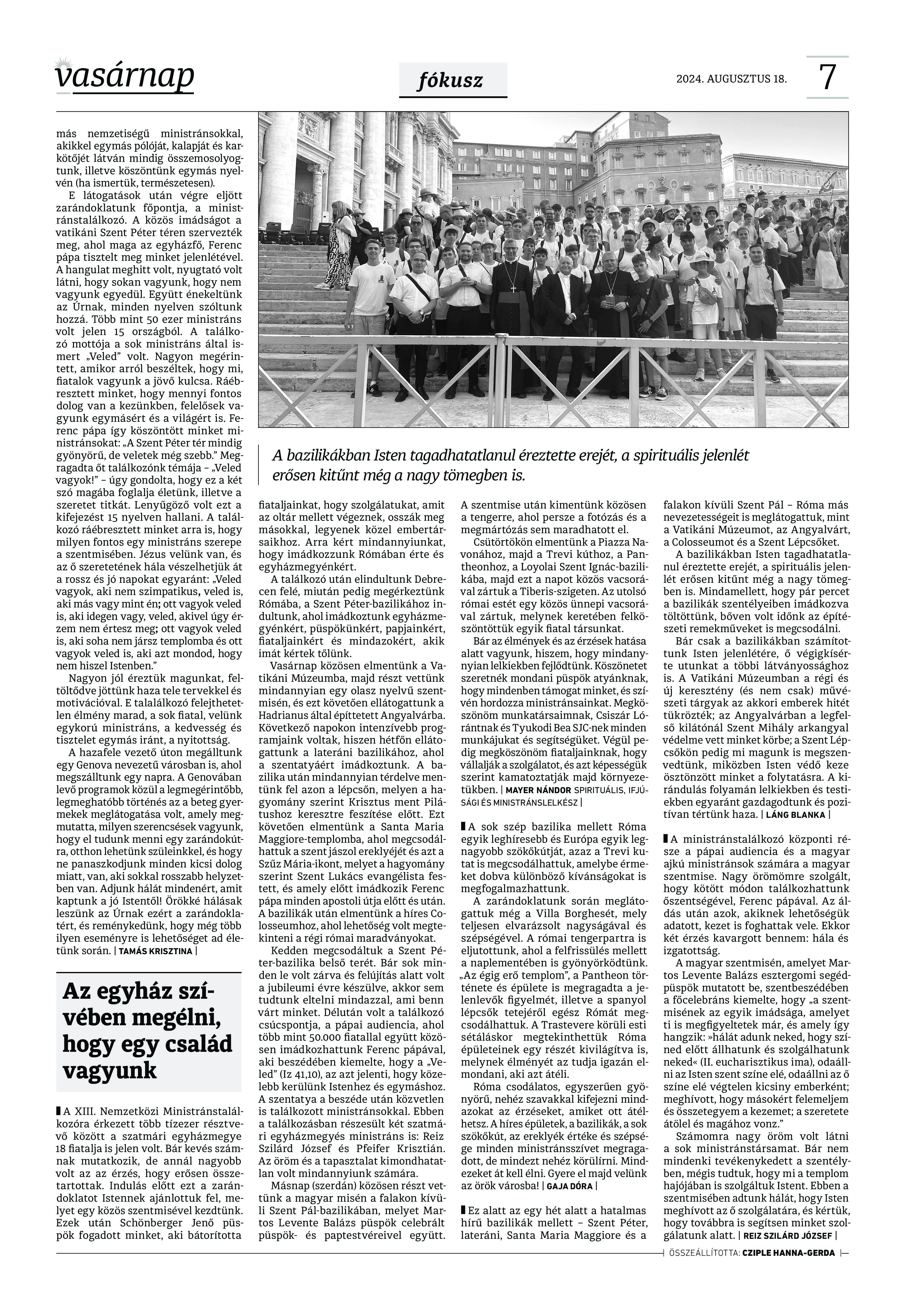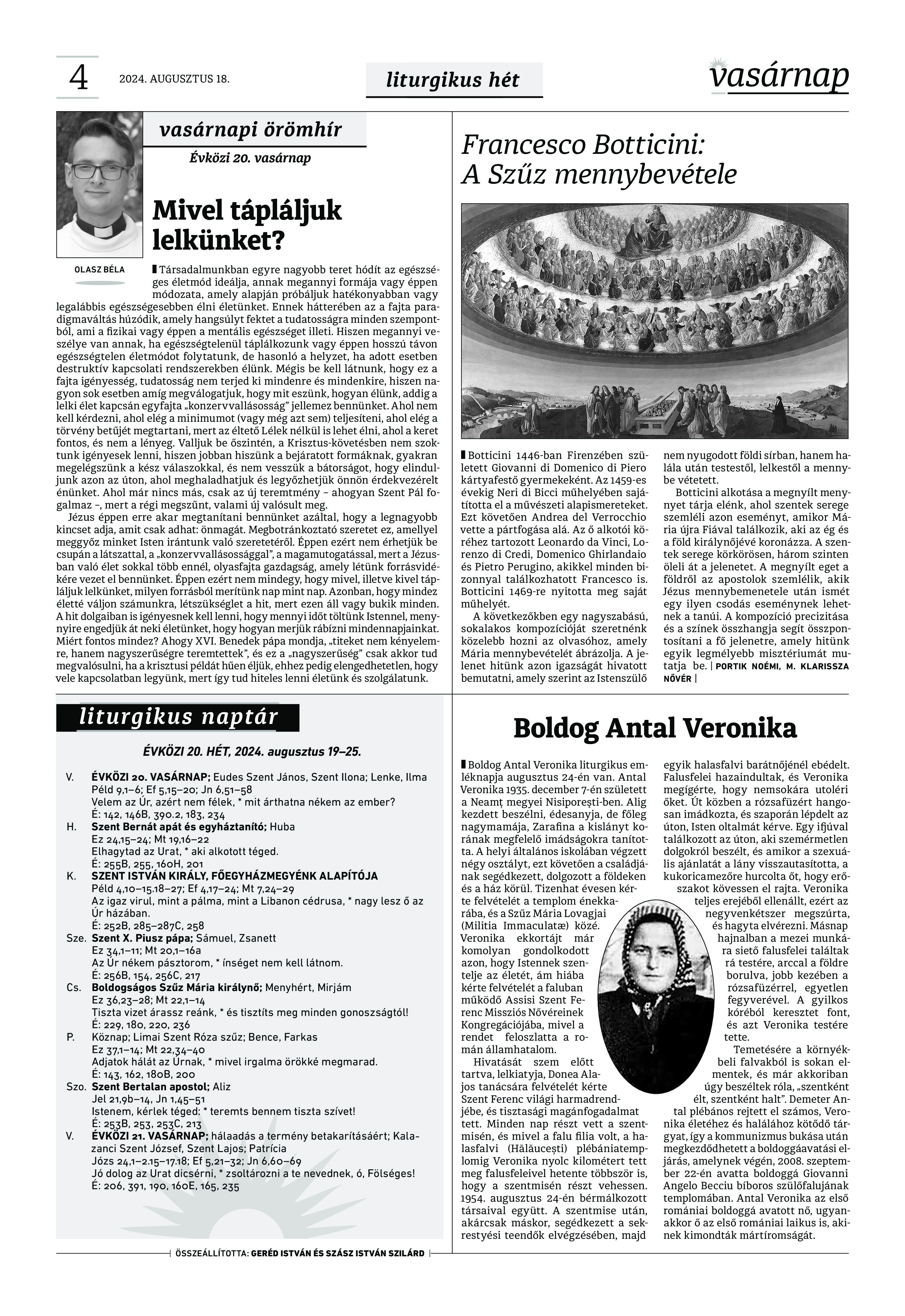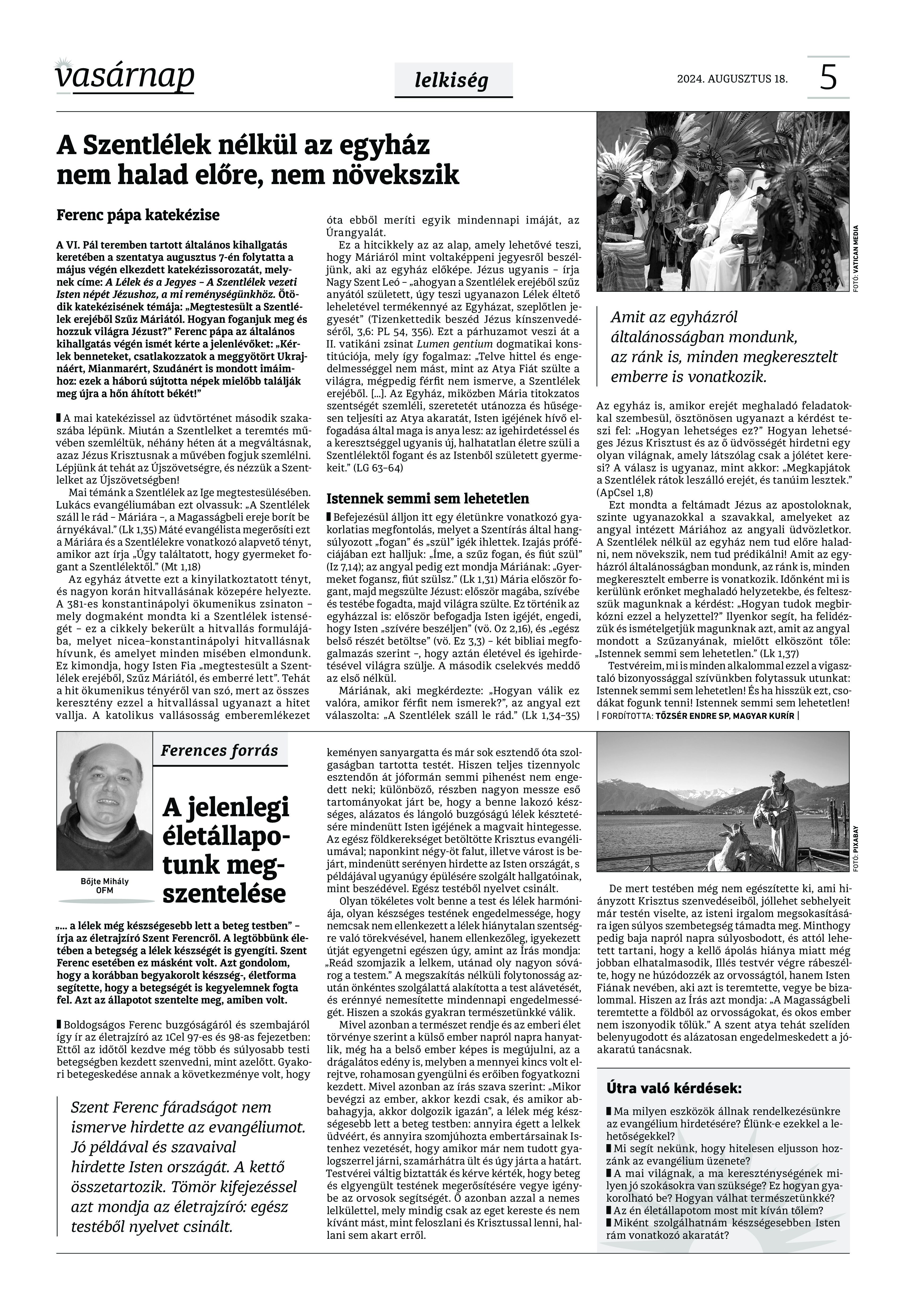 VASÁRNAP - 2024. augusztus 18. A Vasárnap Katolikus Hetilap 2024. augusztus 18. / XXXIV évf. / 33. számának digitális változata. 1 / 12 2 & 3 / 12 4 & 5 / 12 6 & 7 / 12 8 & 9 / 12 10 & 11 / 12 12 / 12