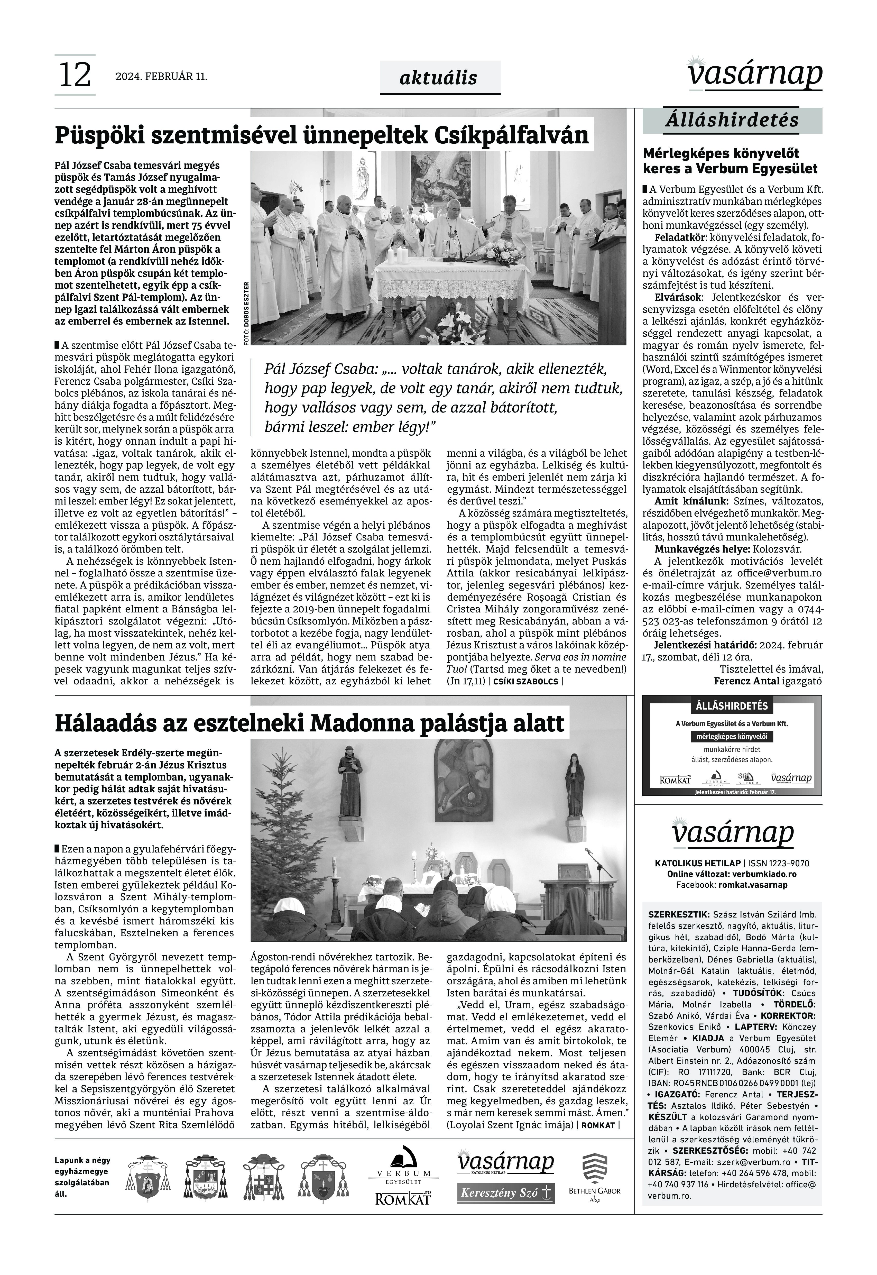 A Vasárnap Katolikus Hetilap 2024. február 11. / XXXIV évf. / 6. számának digitális változata.