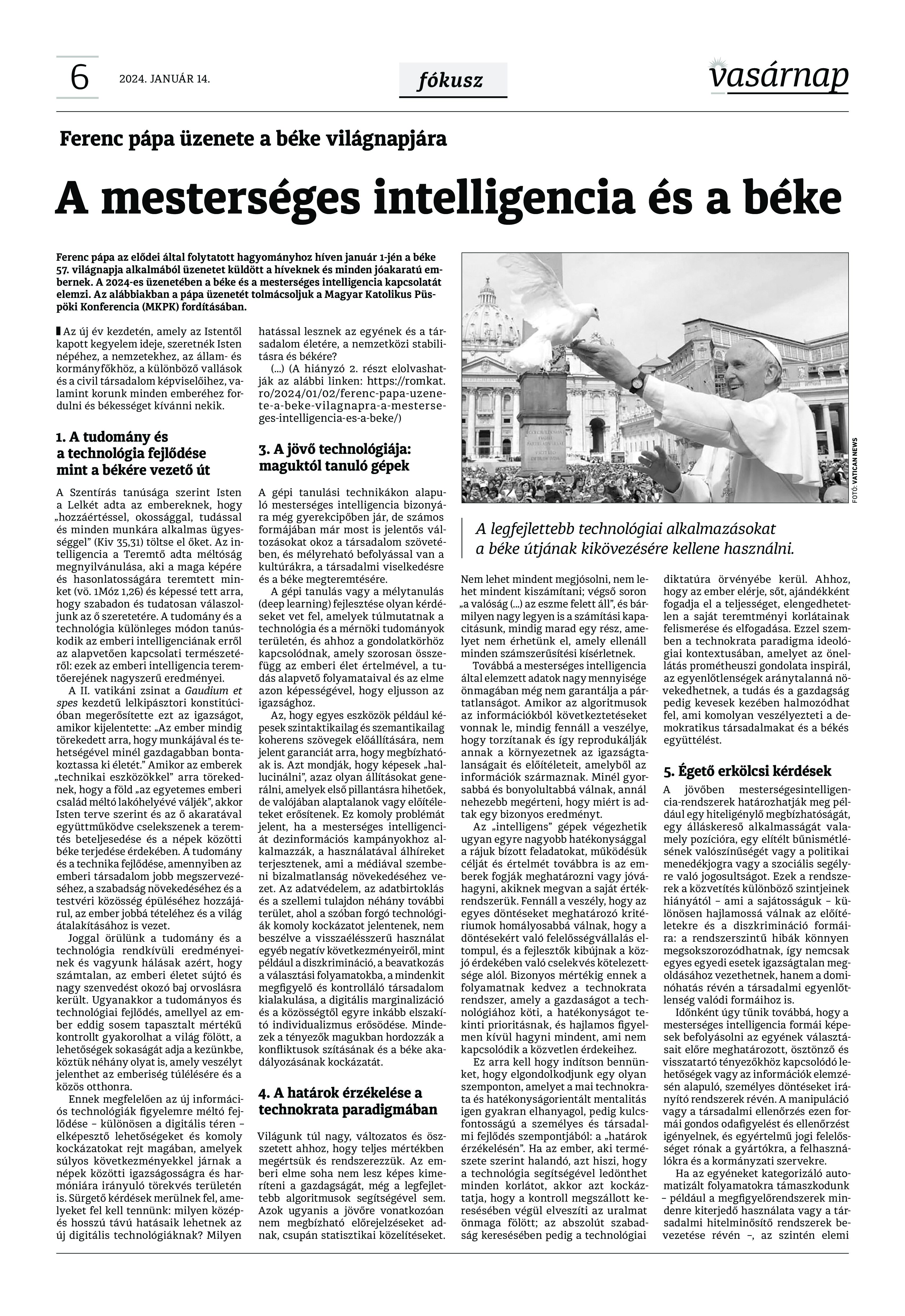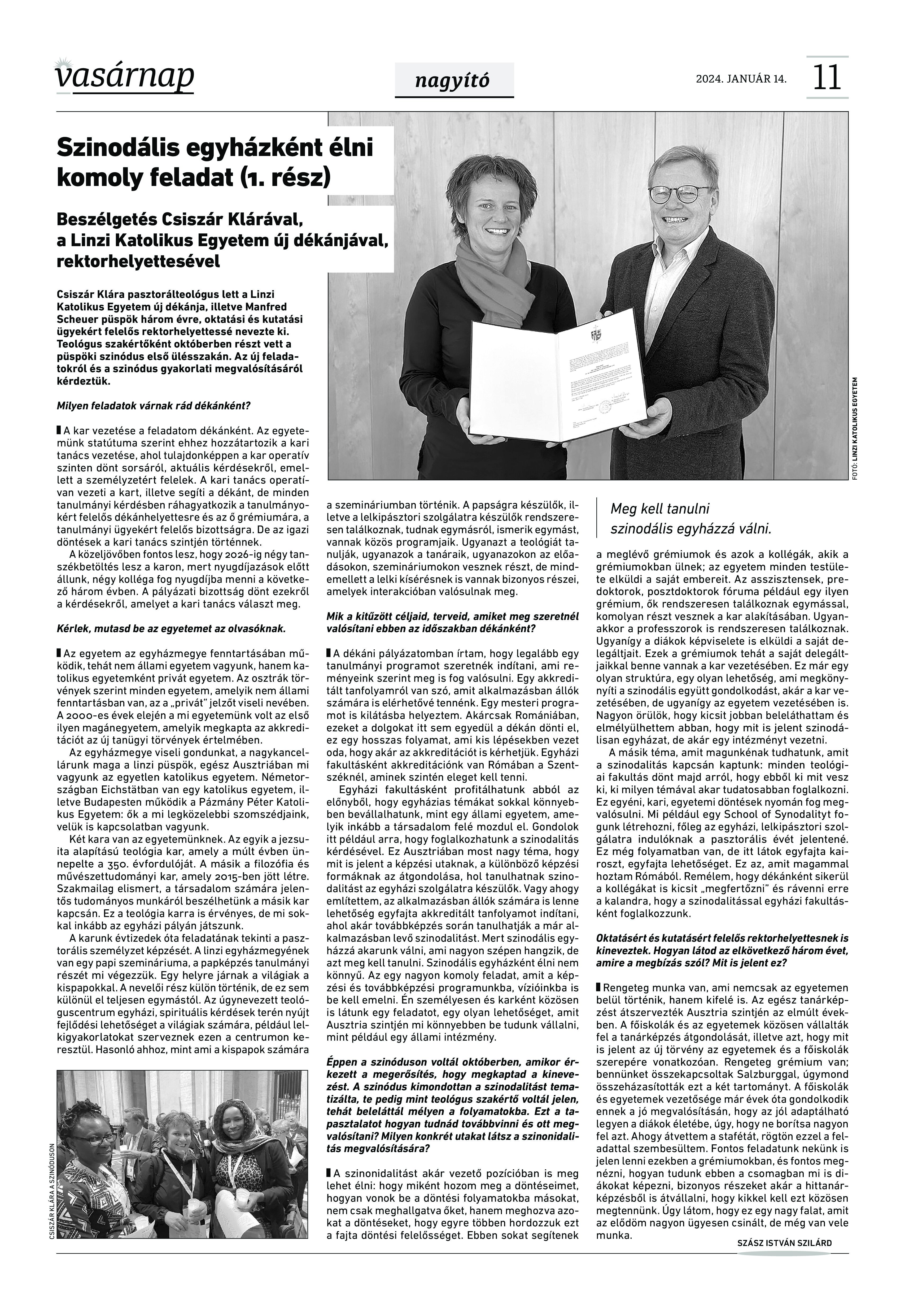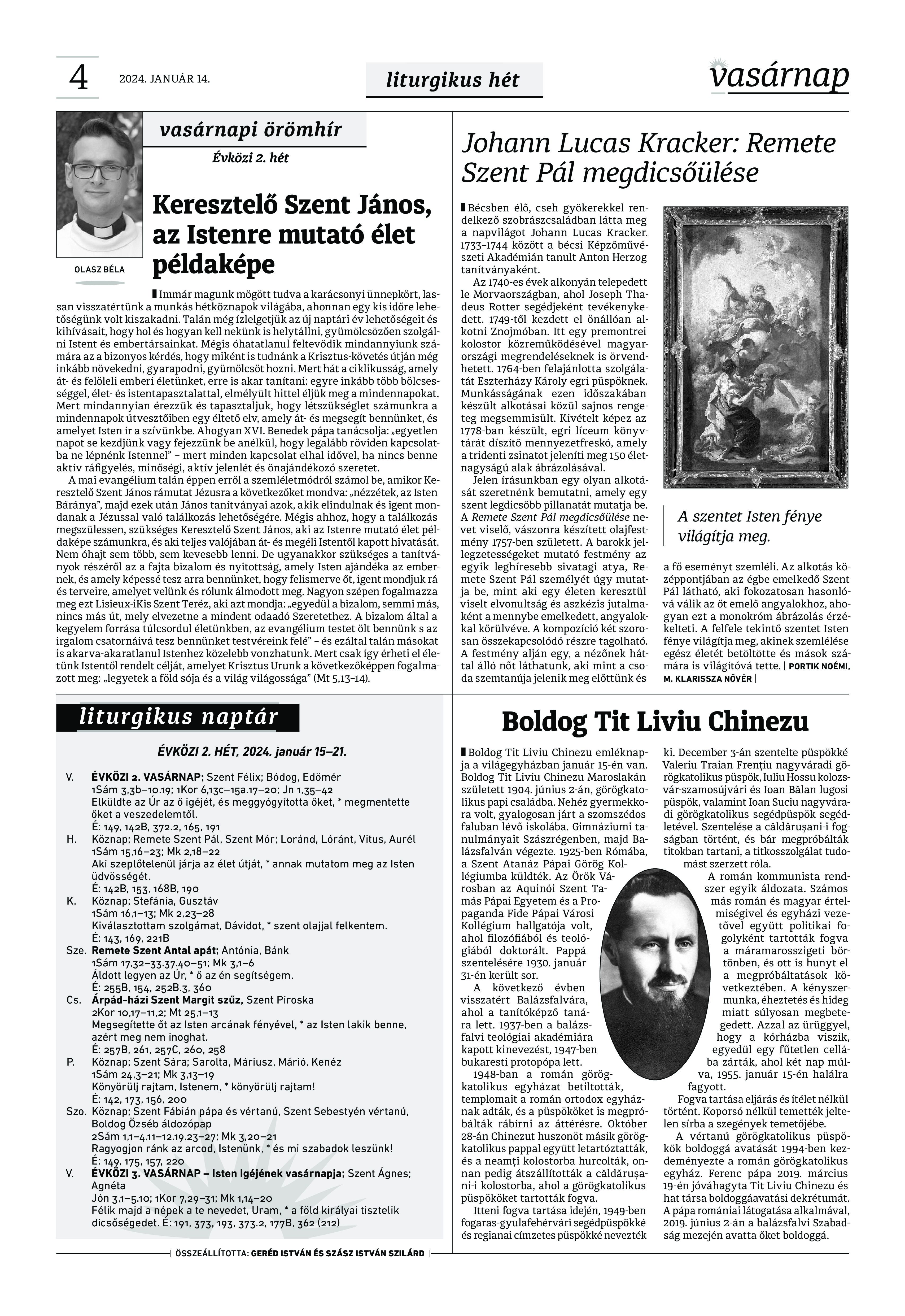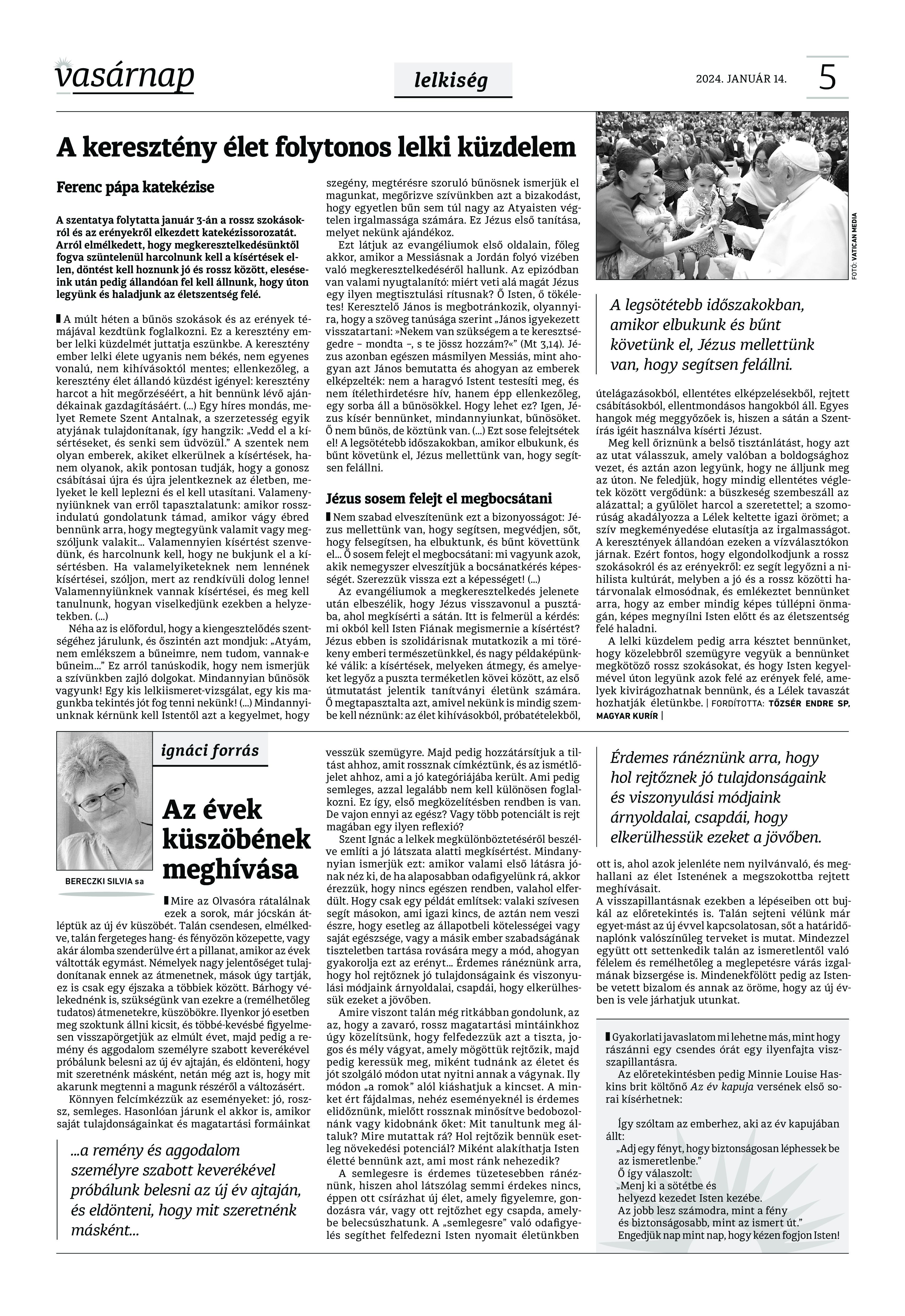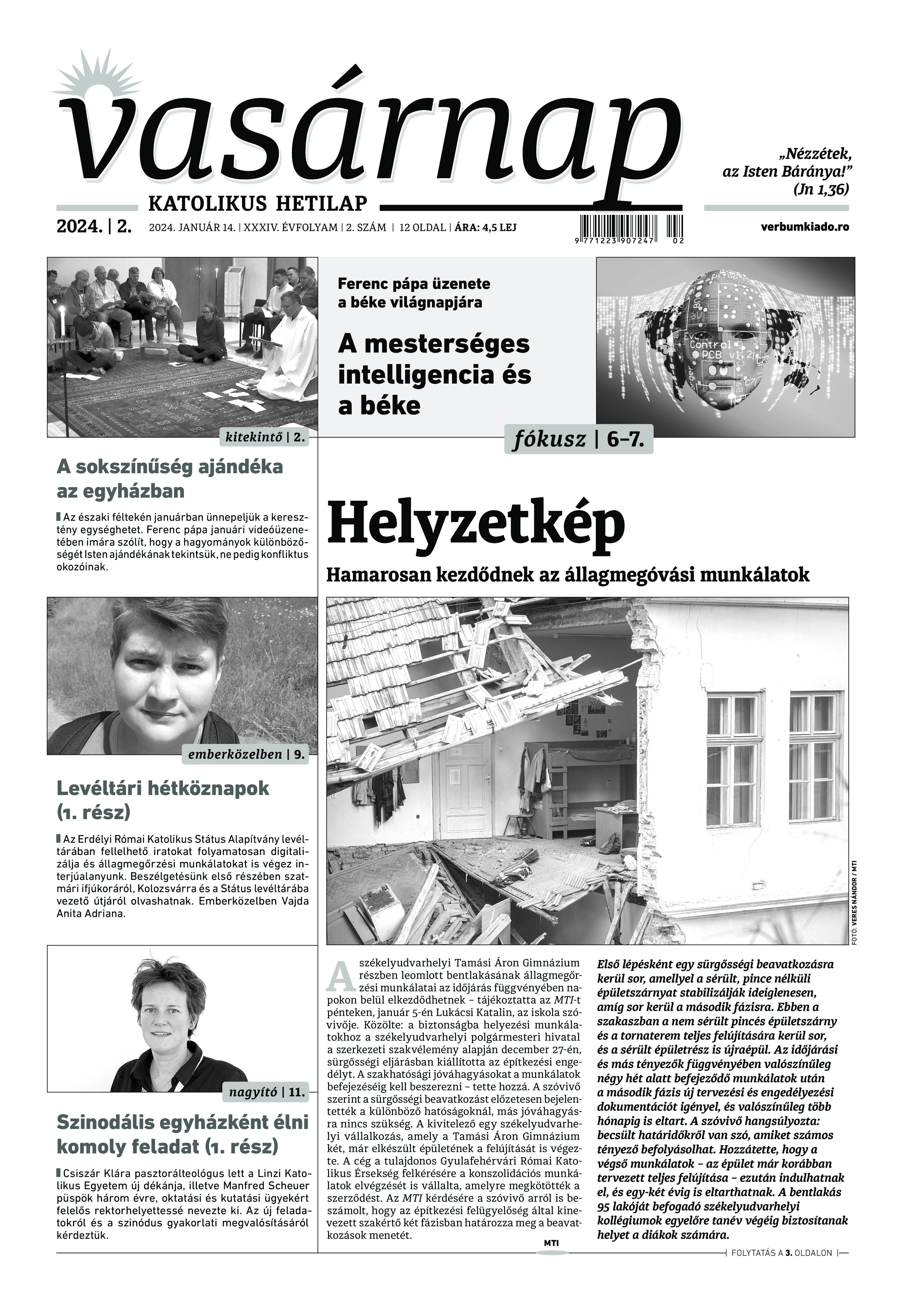 VASÁRNAP - 2024. január 14. A Vasárnap Katolikus Hetilap 2024. január 14. / XXXIV évf. / 2. számának digitális változata. 1 / 12 2 & 3 / 12 4 & 5 / 12 6 & 7 / 12 8 & 9 / 12 10 & 11 / 12 12 / 12