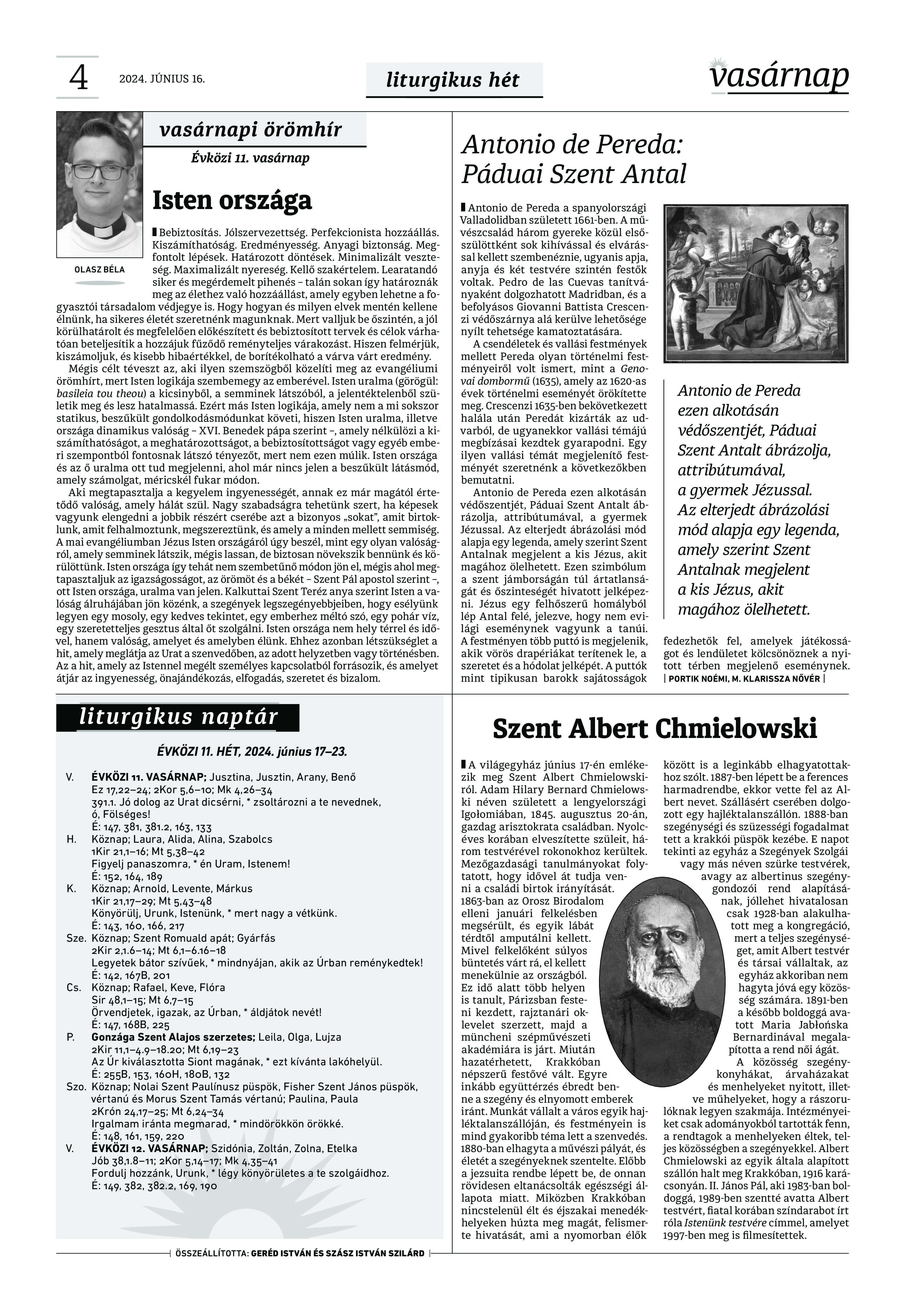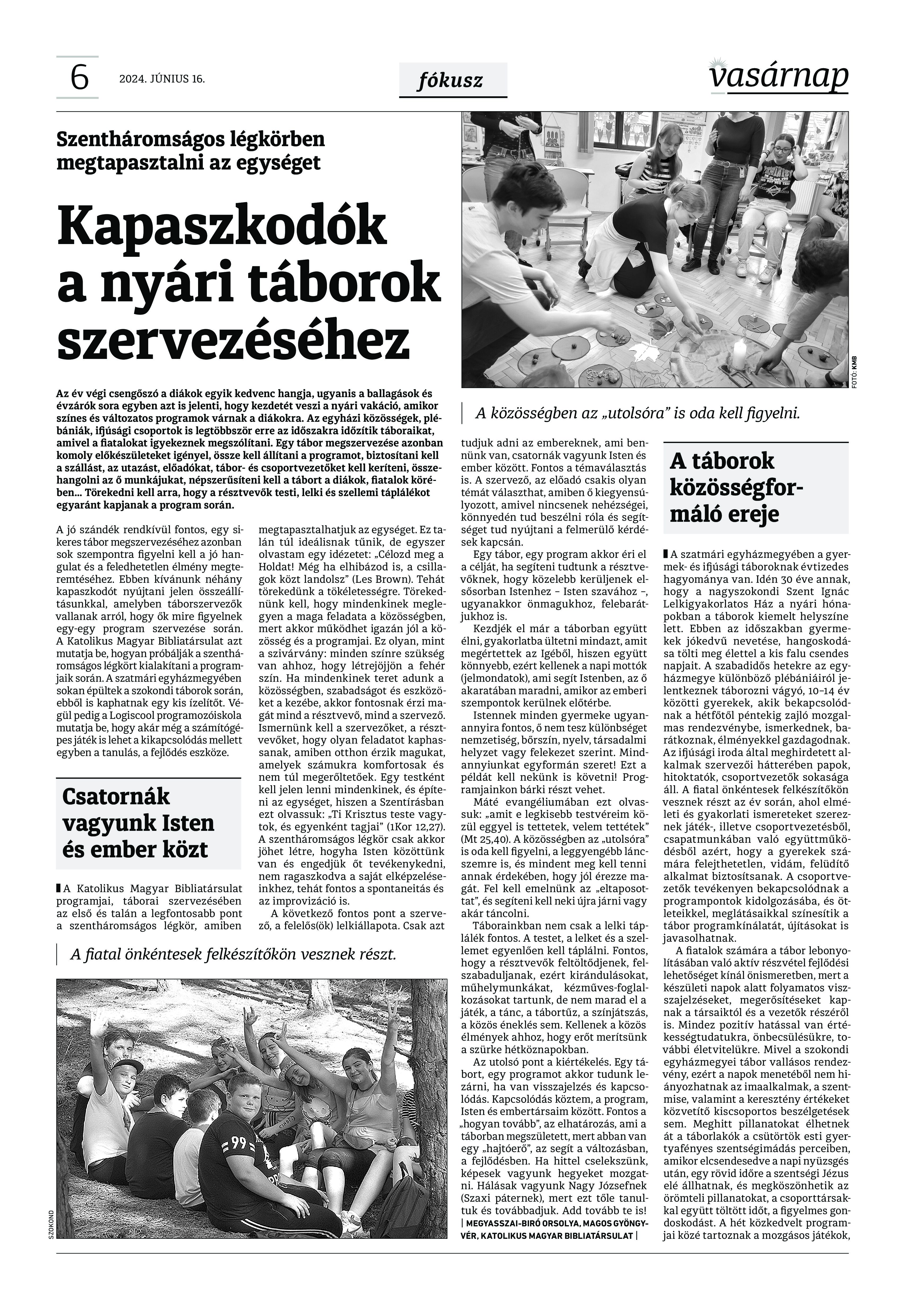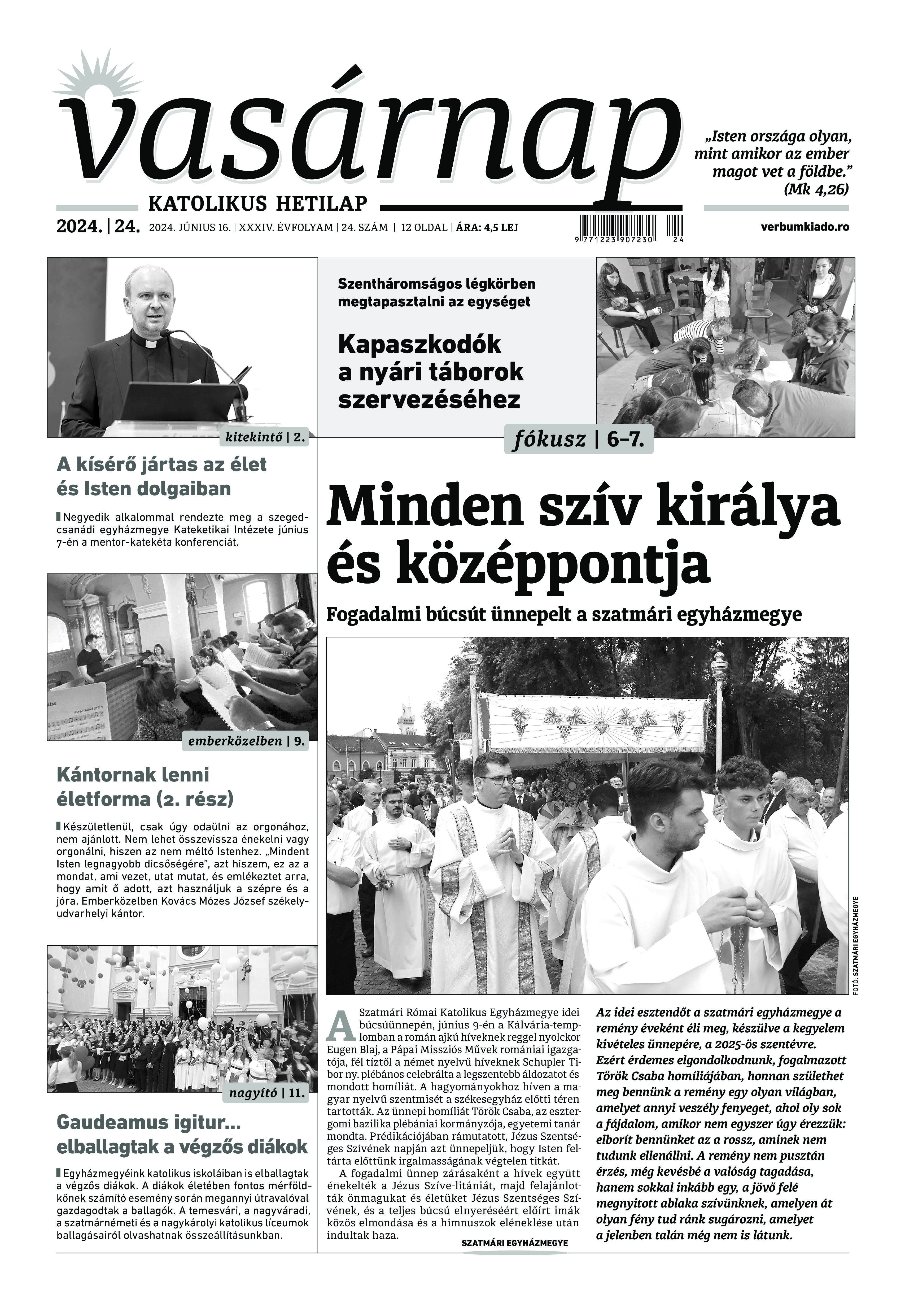 VASÁRNAP - 2024. június 16. A Vasárnap Katolikus Hetilap 2024. június 16. / XXXIV évf. / 24. számának digitális változata. 1 / 12 2 & 3 / 12 4 & 5 / 12 6 & 7 / 12 8 & 9 / 12 10 & 11 / 12 12 / 12