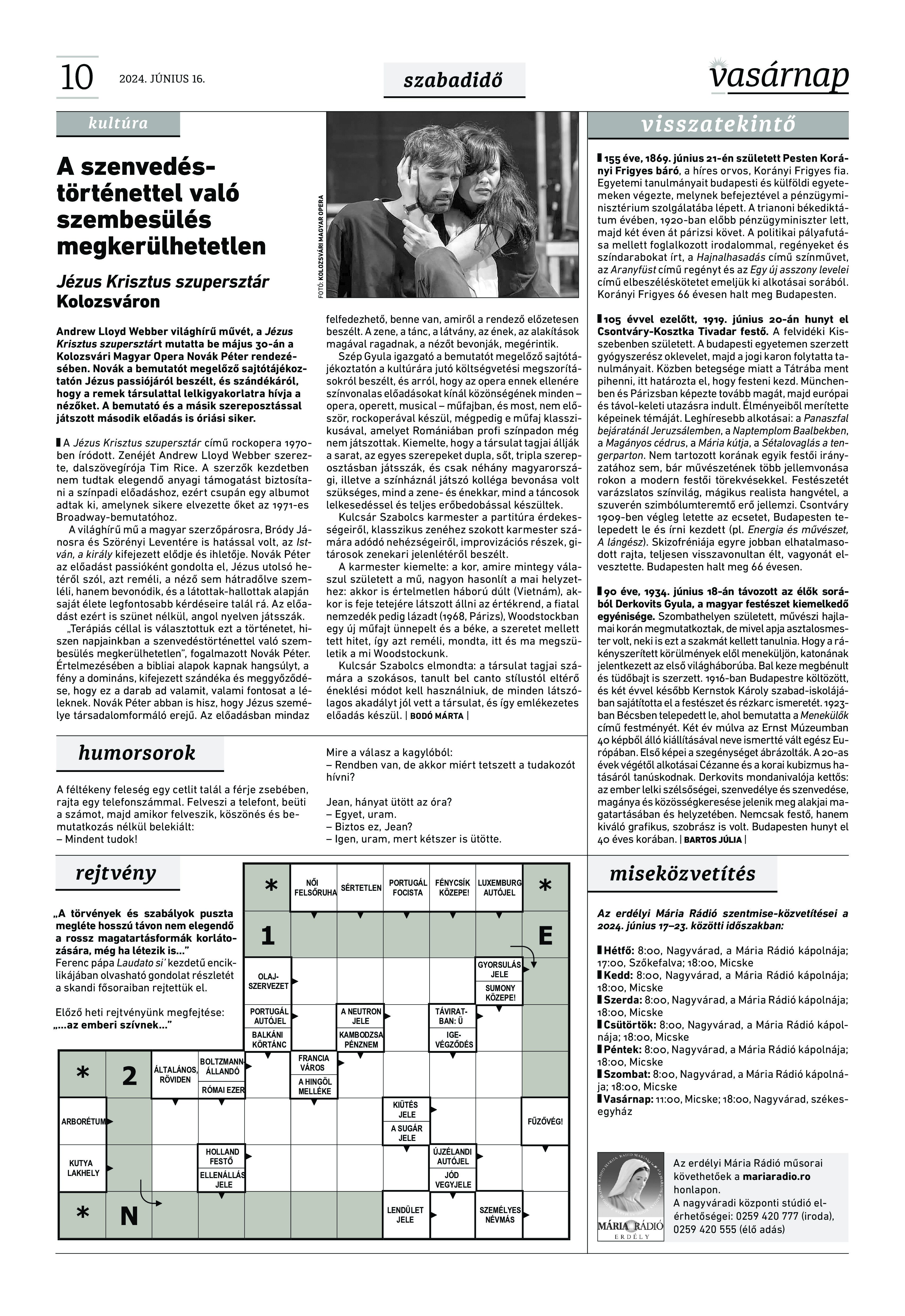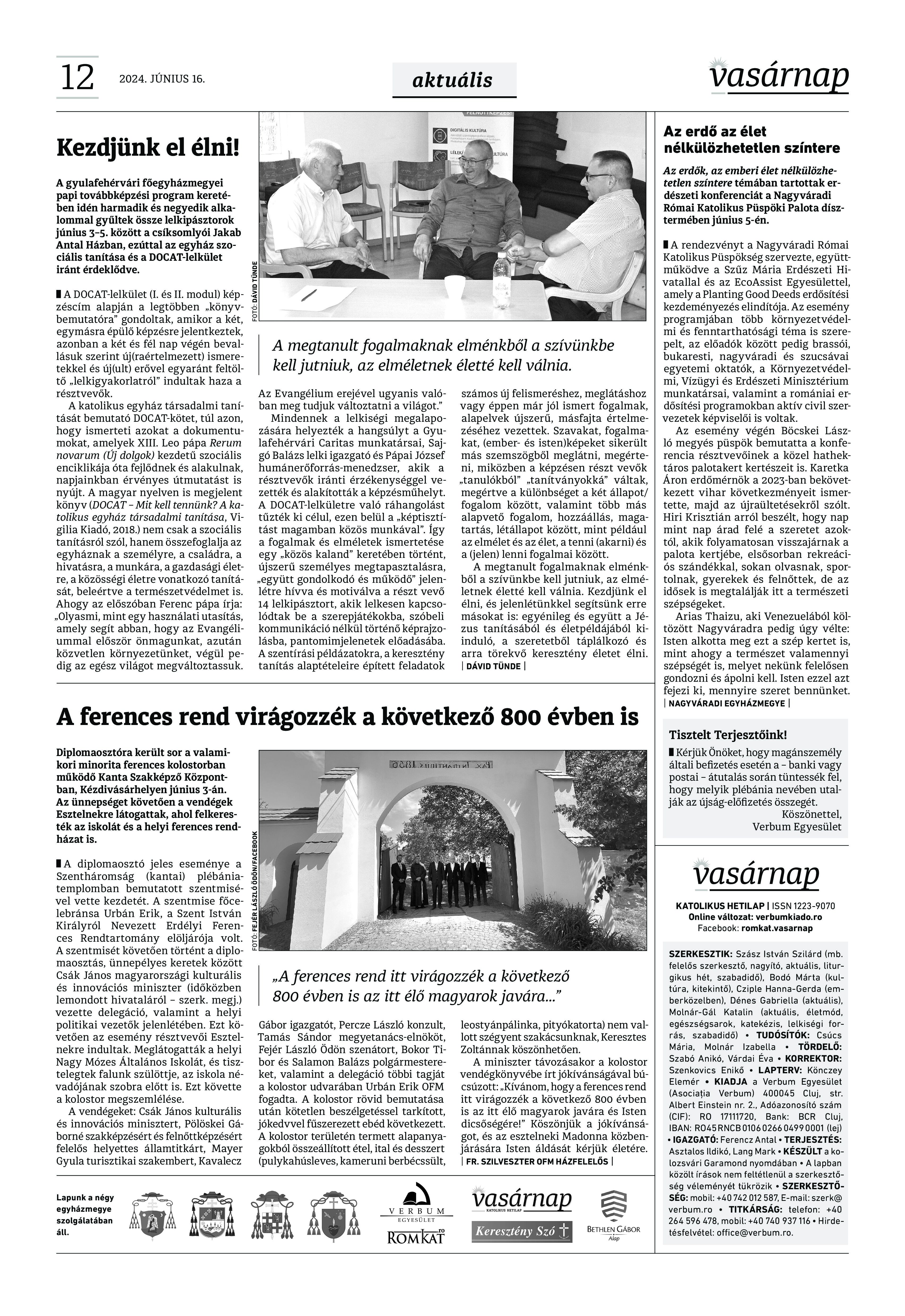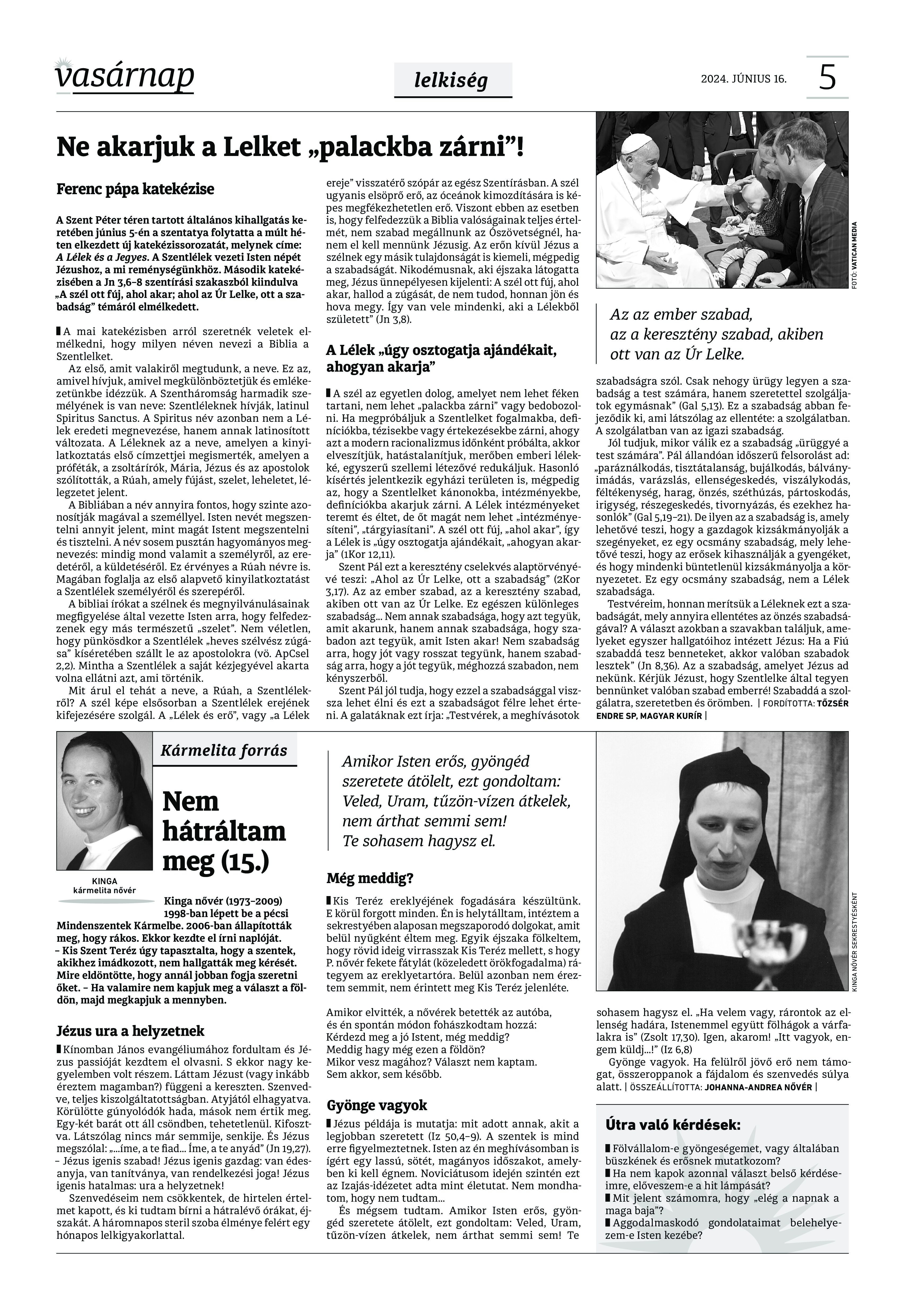 VASÁRNAP - 2024. június 16. A Vasárnap Katolikus Hetilap 2024. június 16. / XXXIV évf. / 24. számának digitális változata. 1 / 12 2 & 3 / 12 4 & 5 / 12 6 & 7 / 12 8 & 9 / 12 10 & 11 / 12 12 / 12