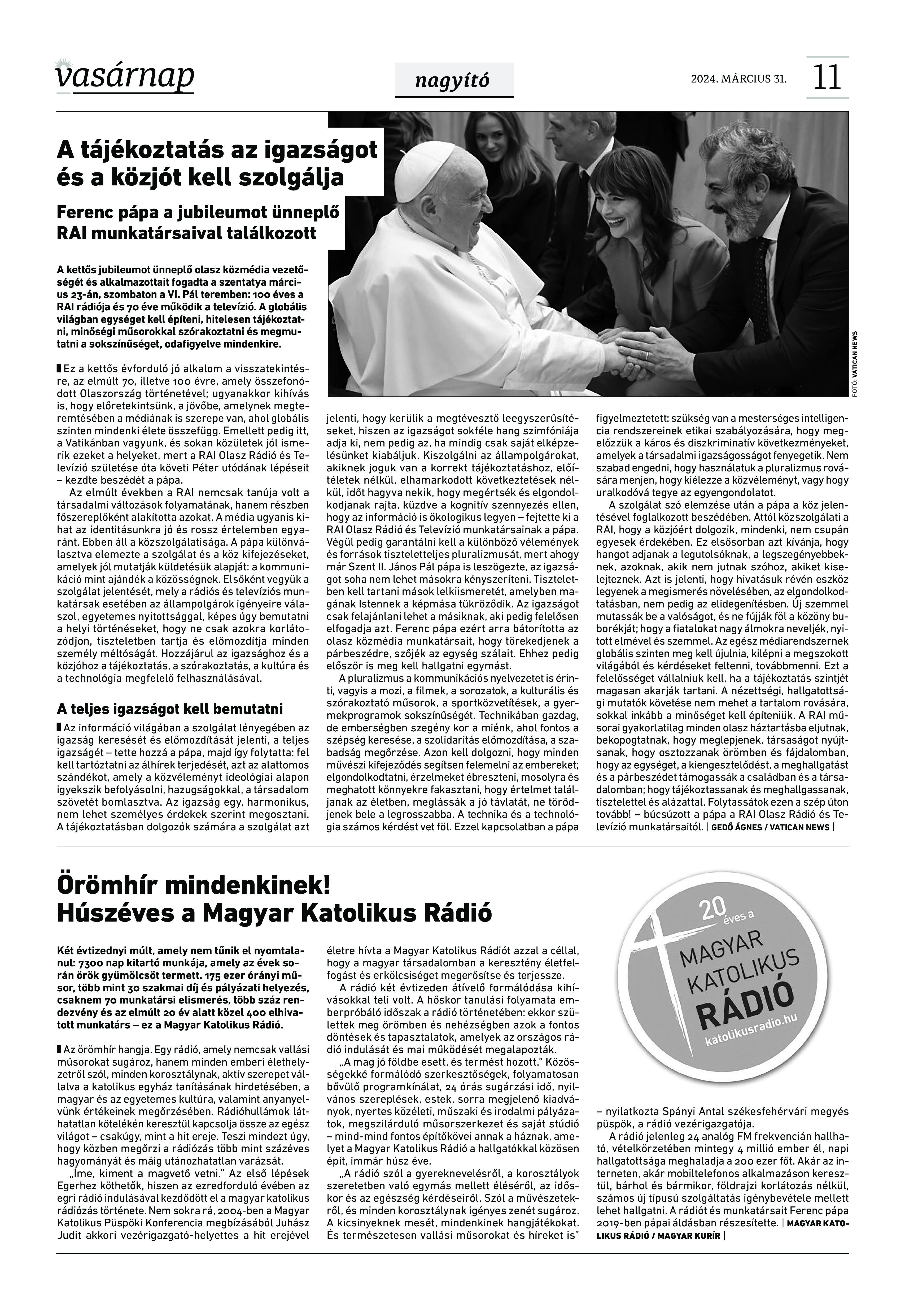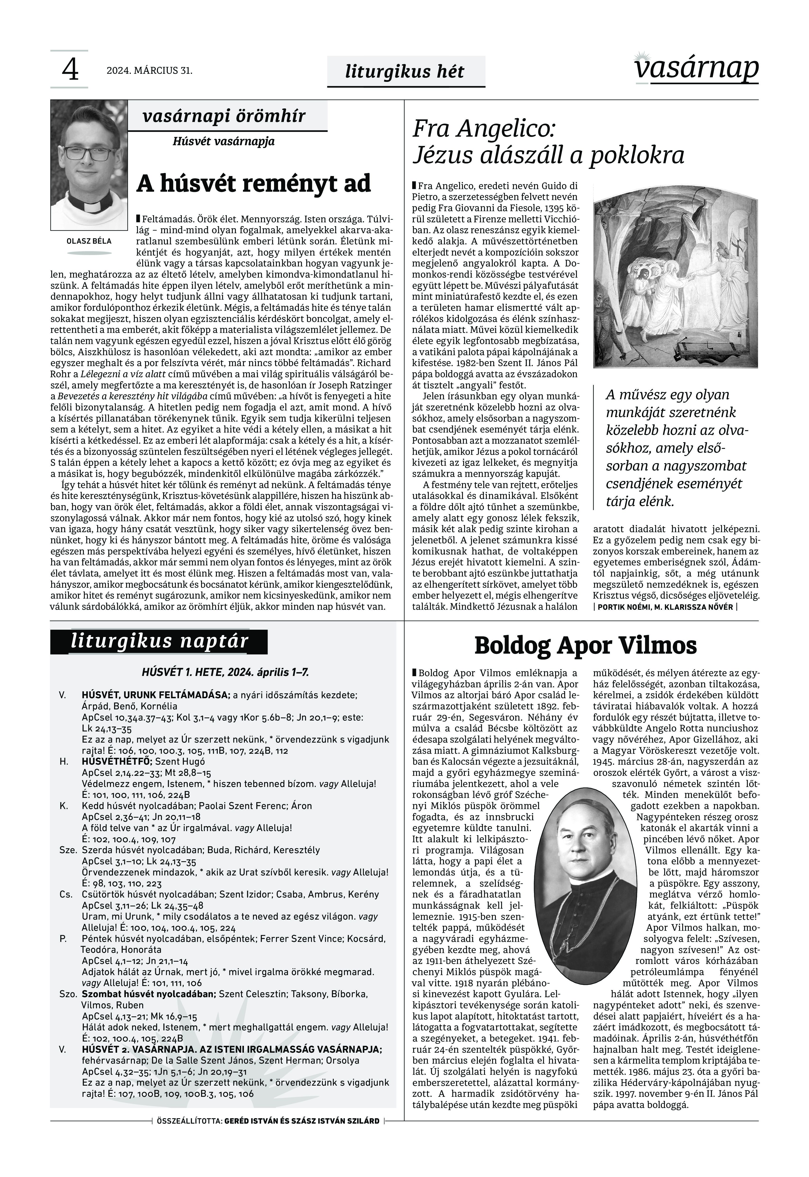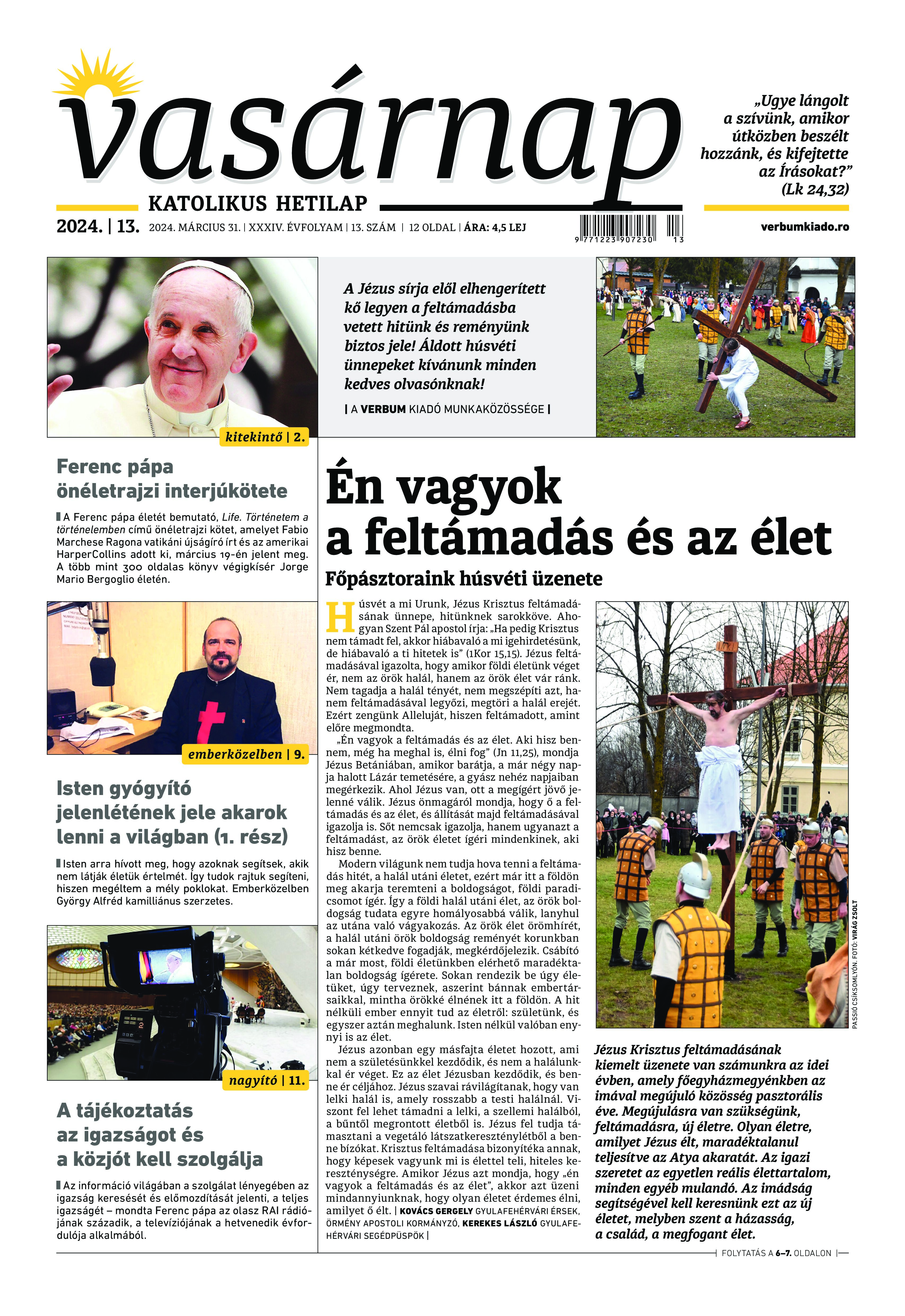 VASÁRNAP - 2024. március 31. A Vasárnap Katolikus Hetilap 2024. március 31. / XXXIV évf. / 13. számának digitális változata. 1 / 12 2 & 3 / 12 4 & 5 / 12 6 & 7 / 12 8 & 9 / 12 10 & 11 / 12 12 / 12