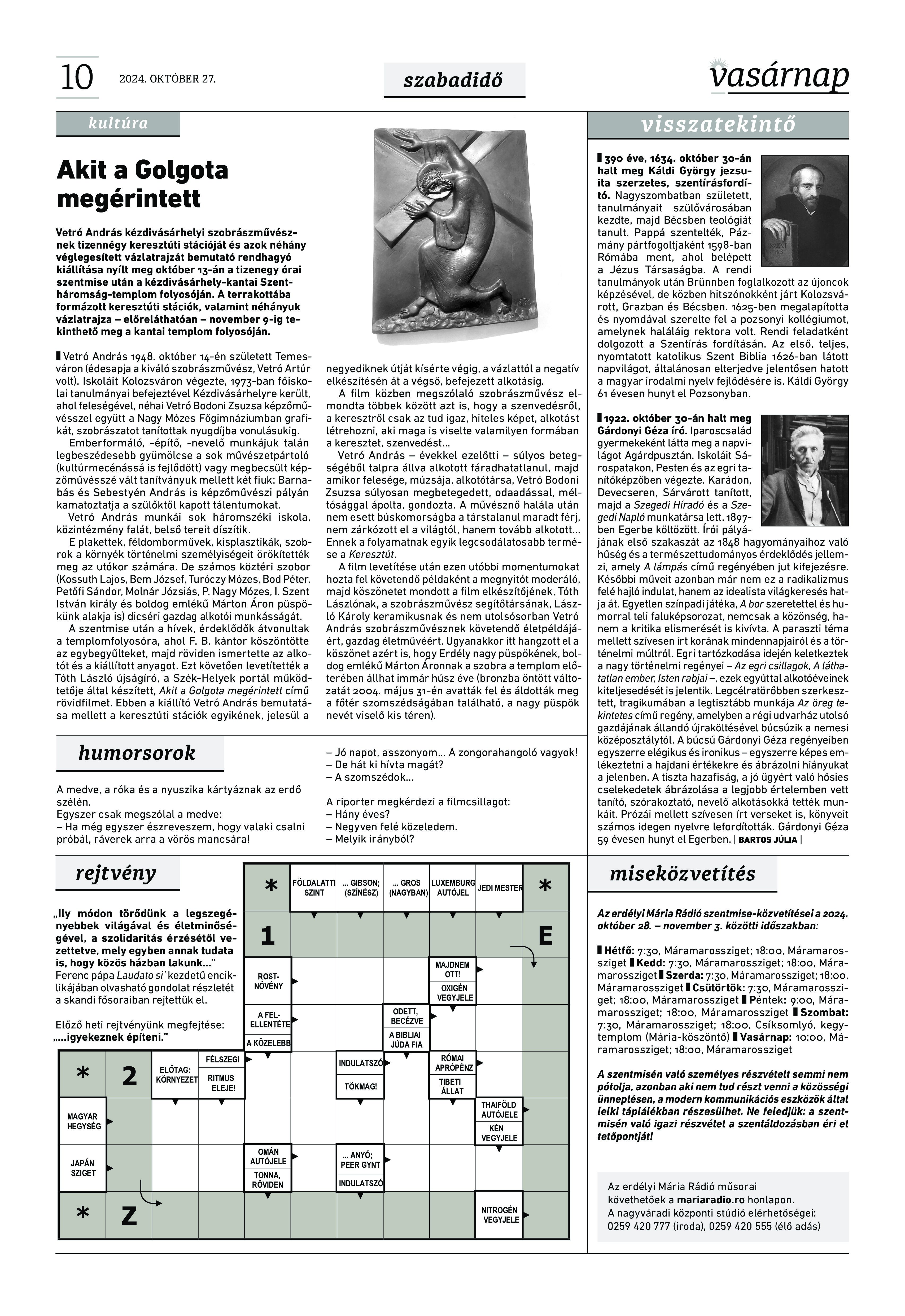 VASÁRNAP - 2024. október 27. A Vasárnap Katolikus Hetilap 2024.október 27. / XXXIV évf. / 43. számának digitális változata. 1 / 12 2 & 3 / 12 4 & 5 / 12 6 & 7 / 12 8 & 9 / 12 10 & 11 / 12 12 / 12
