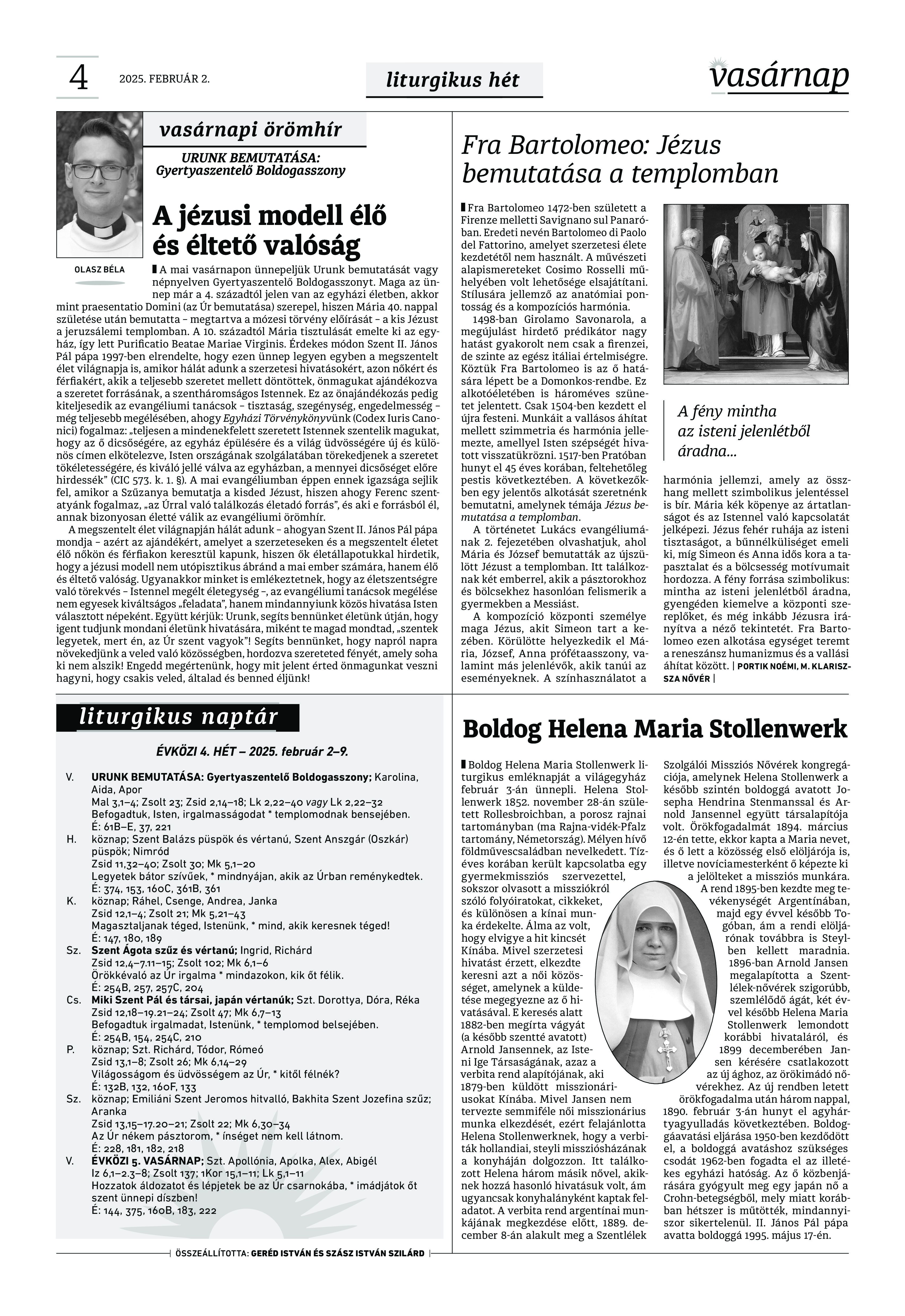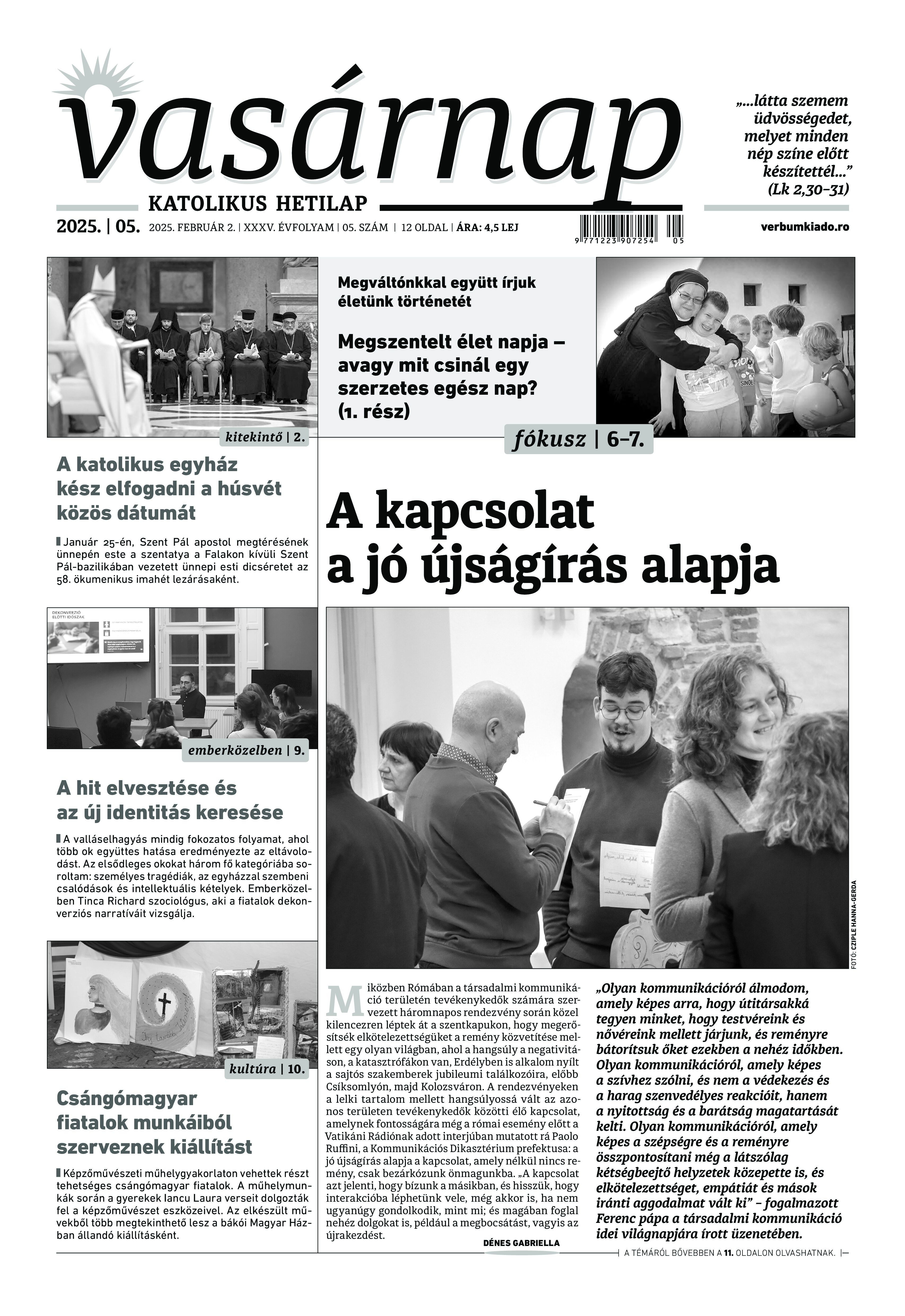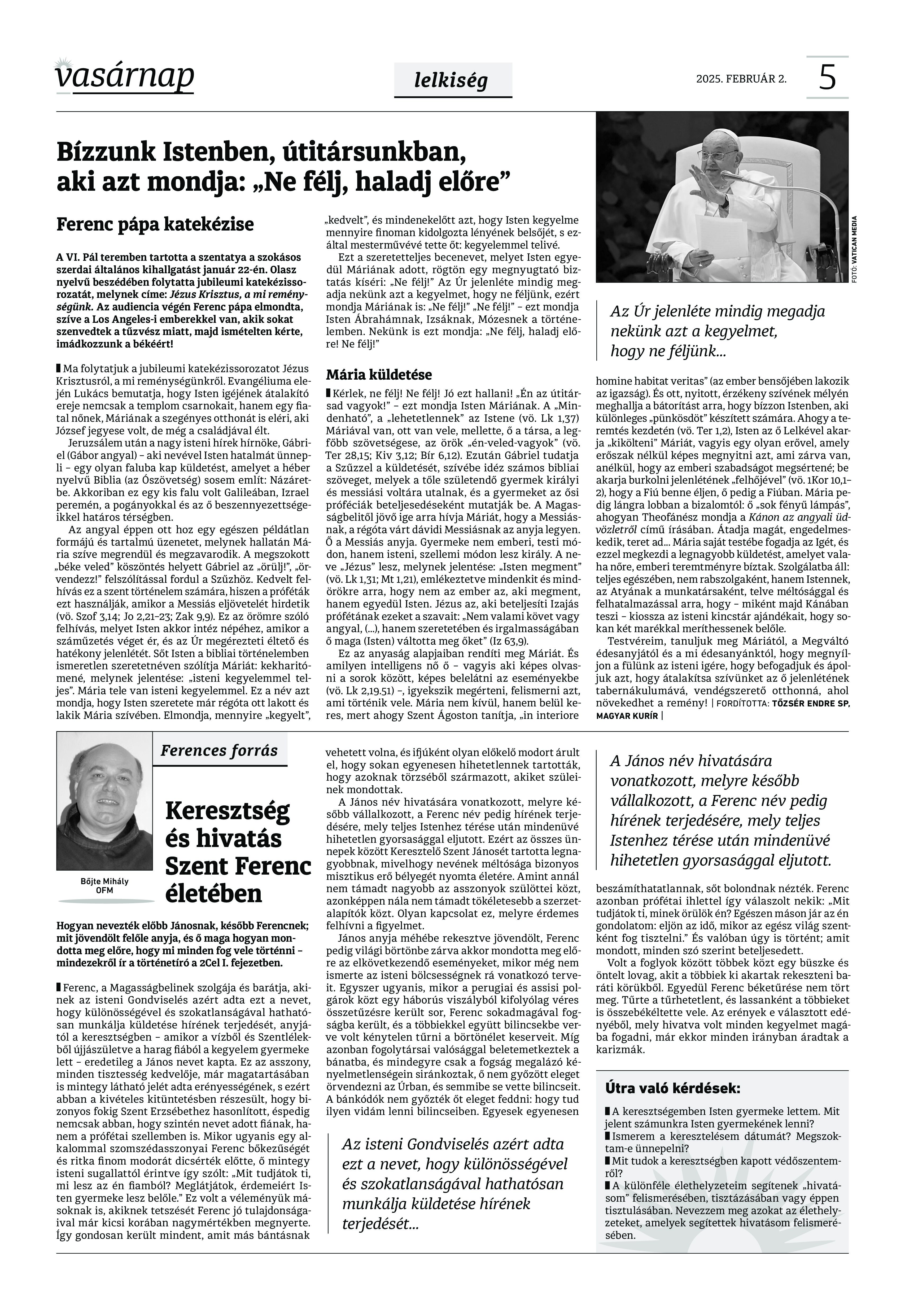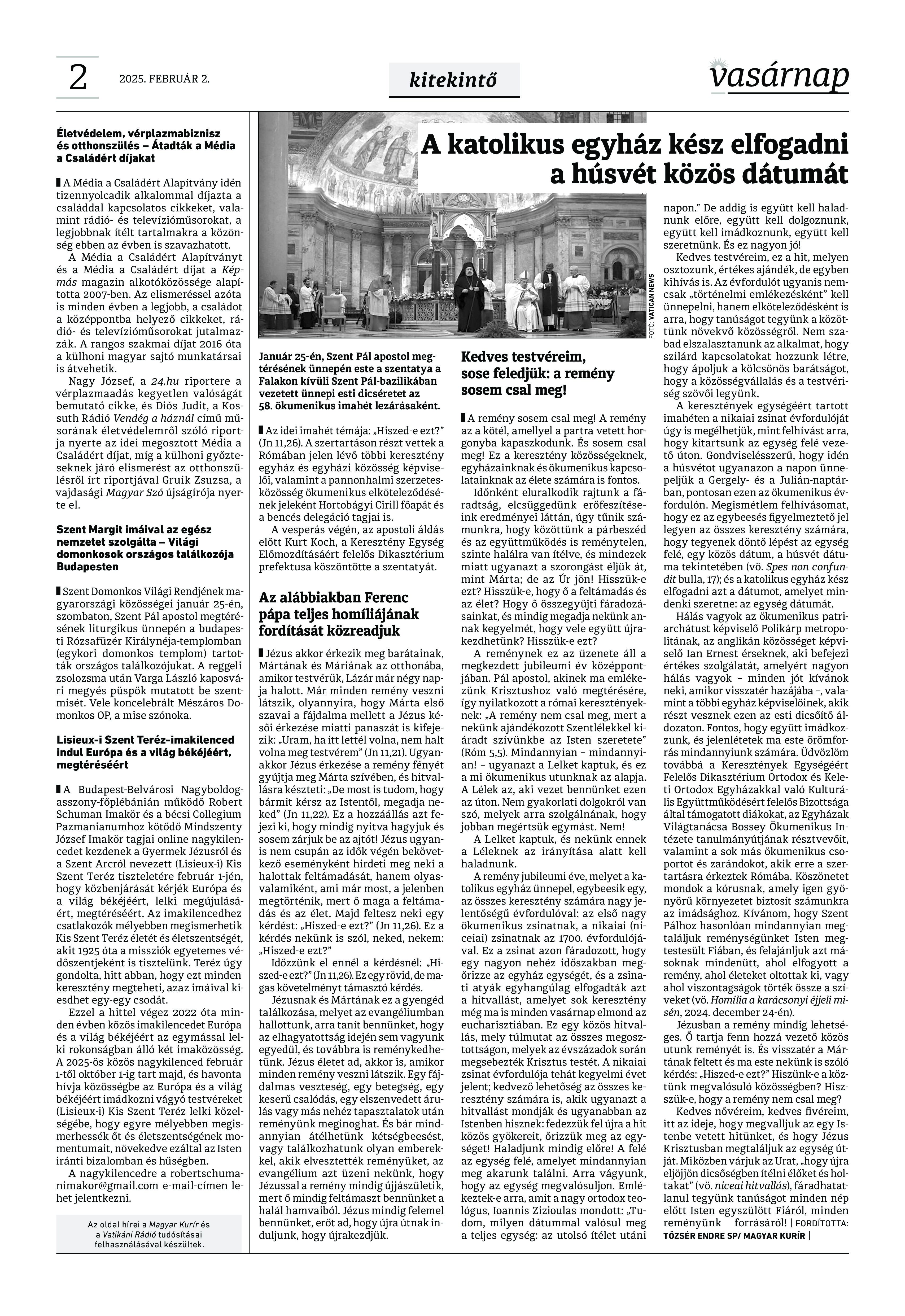 VASÁRNAP - 2025. február 2. A Vasárnap Katolikus Hetilap 2025. február 26. / XXXV évf. / 5. számának digitális változata. 1 / 12 2 & 3 / 12 4 & 5 / 12 6 & 7 / 12 8 & 9 / 12 10 & 11 / 12 12 / 12