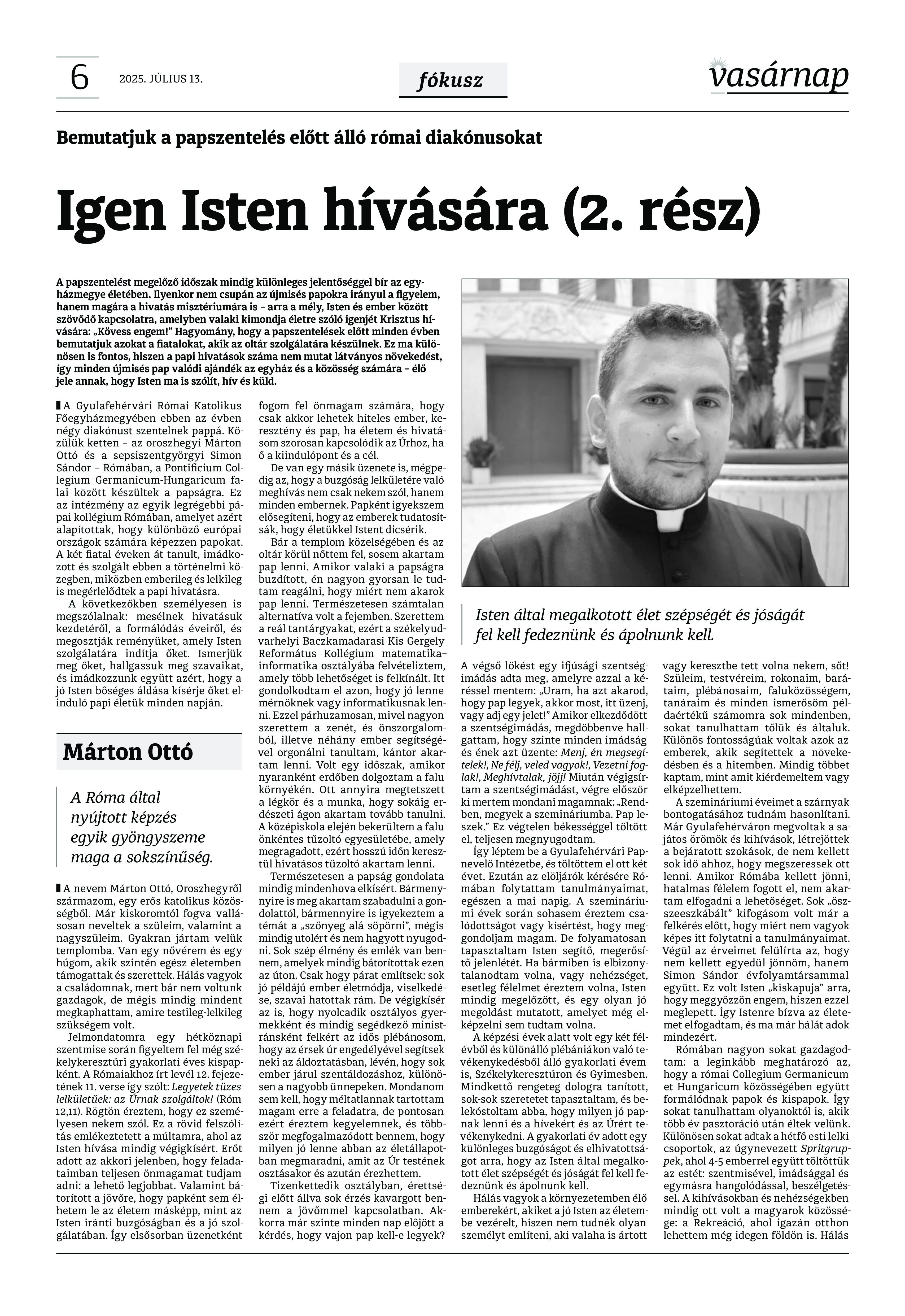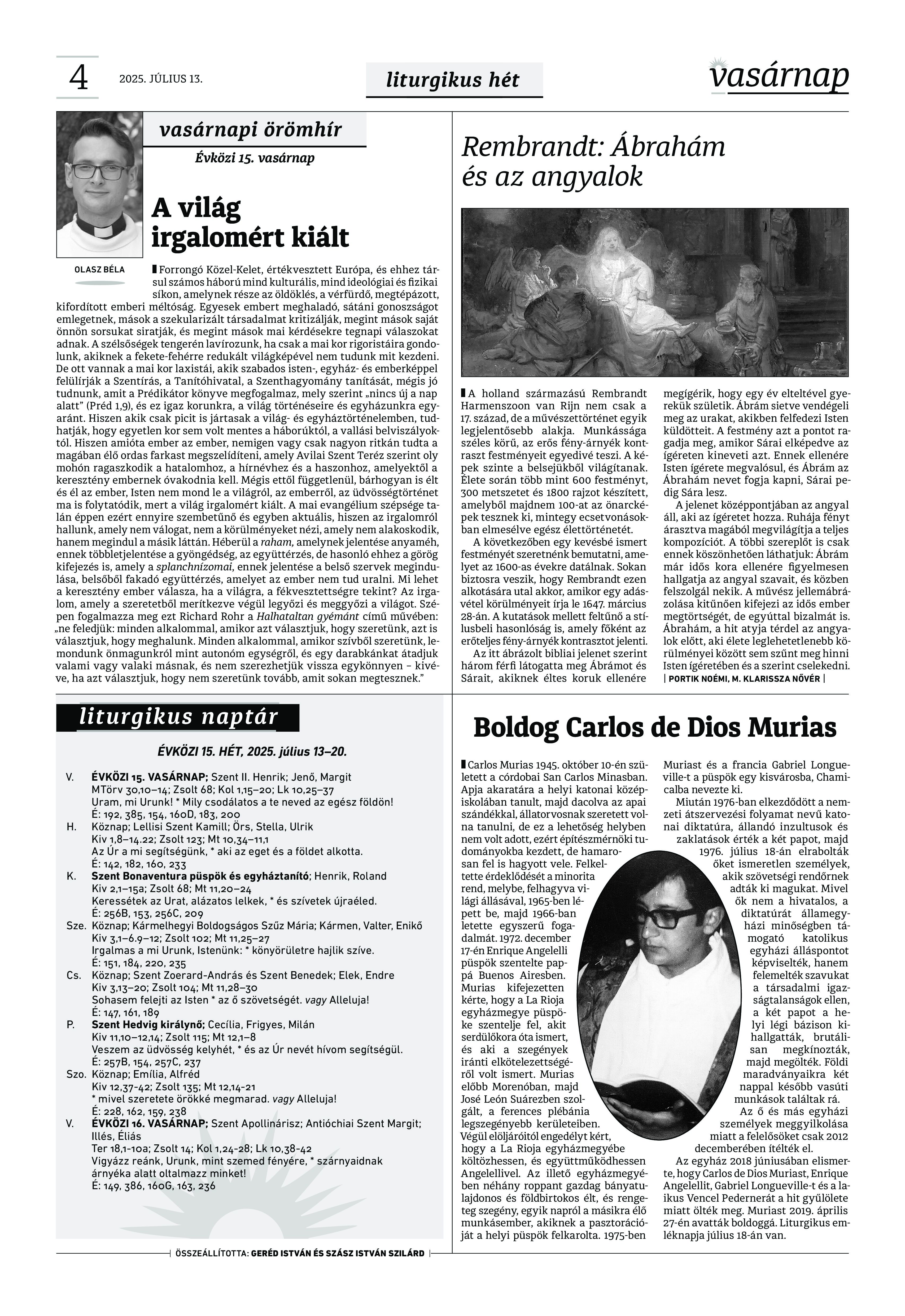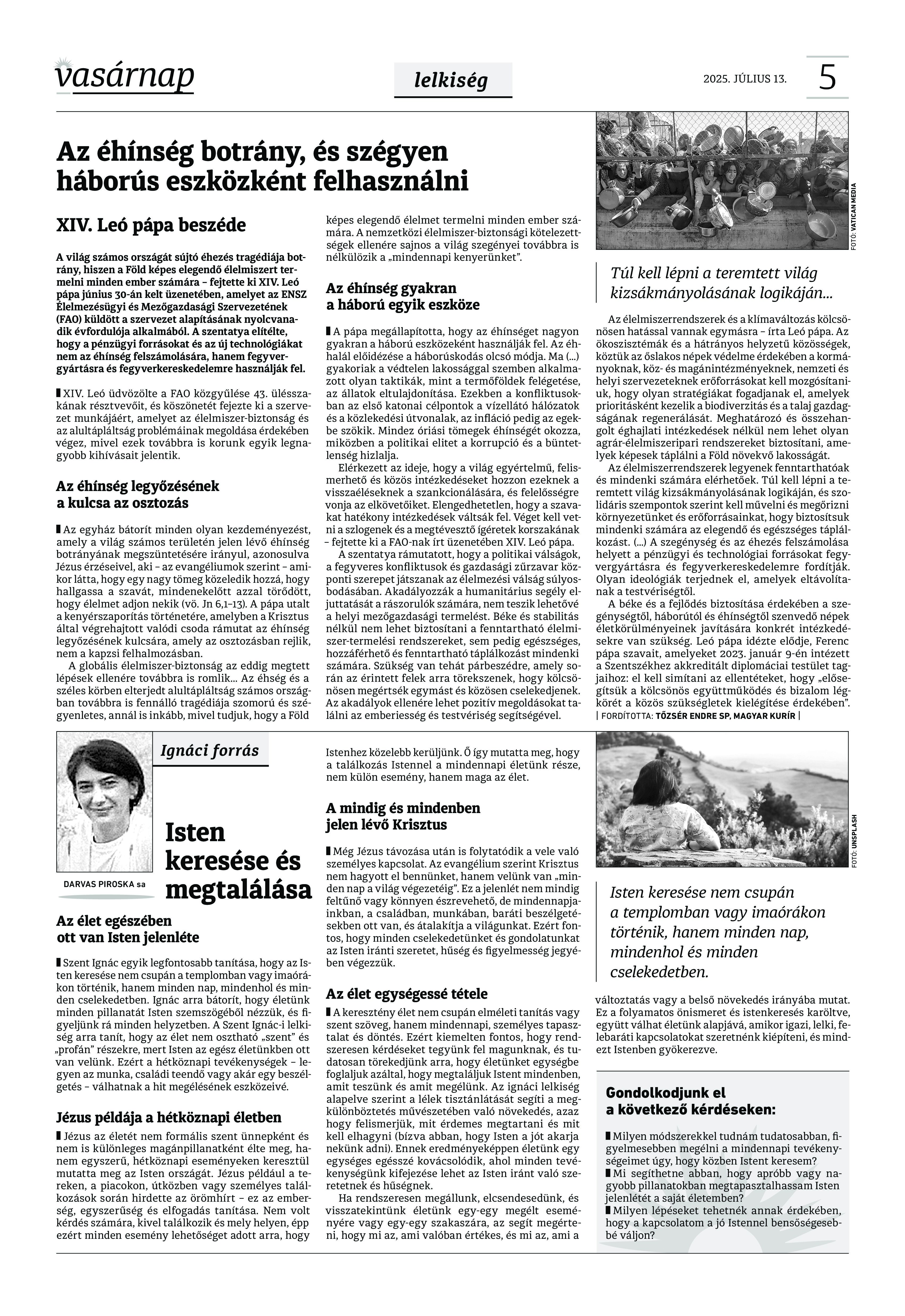 A Vasárnap Katolikus Hetilap 2025. július 13. / XXXV évf. / 28. számának digitális változata.